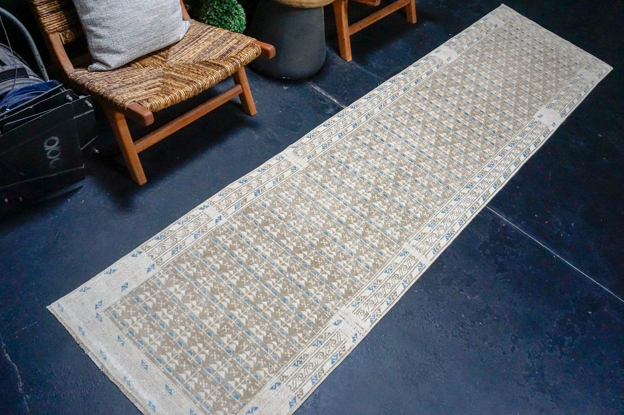 2’6 x 10’3 Classic Vintage Runner Muted Taupe, Blue + Cream '4441