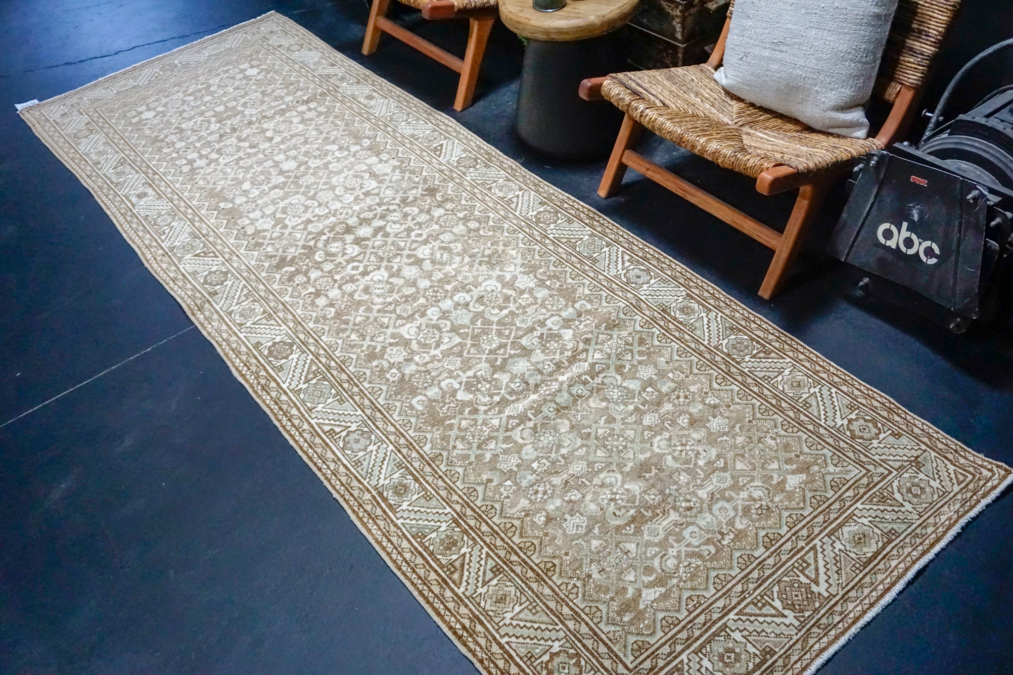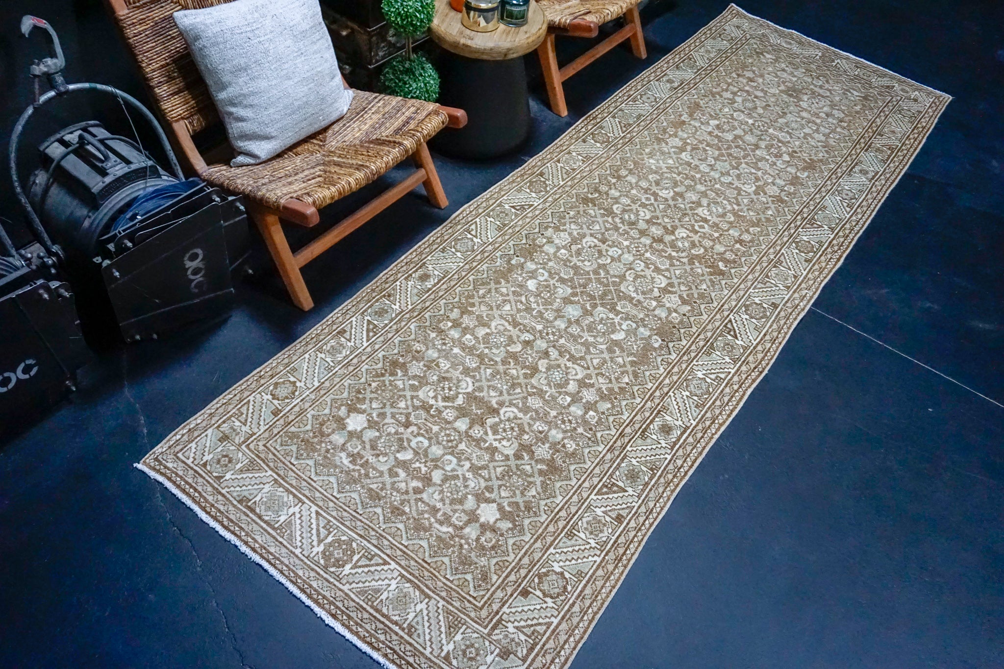 3’2 x 9’6 Antique Runner Muted Brown, Copper, Ecru and Bone '4460