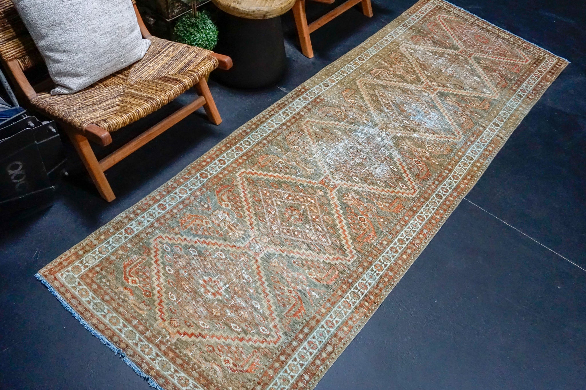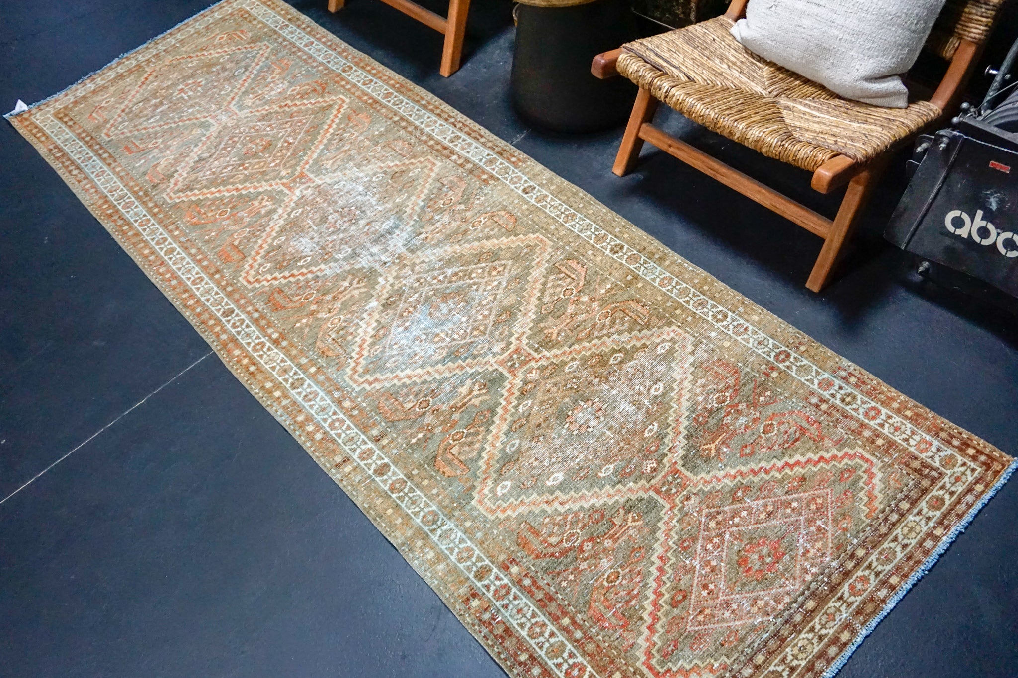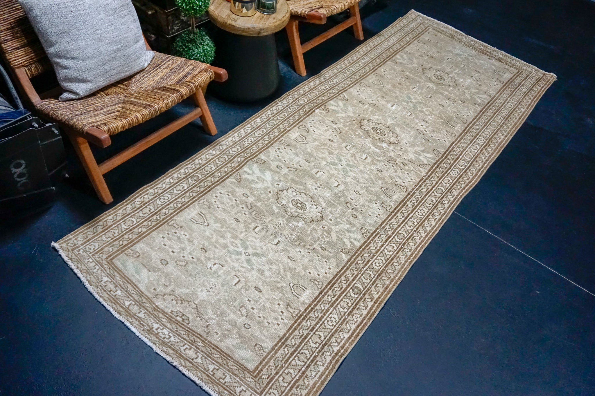 3’3 x 12’7 Classic Vintage Runner Beige, Green and Brown SB '4444