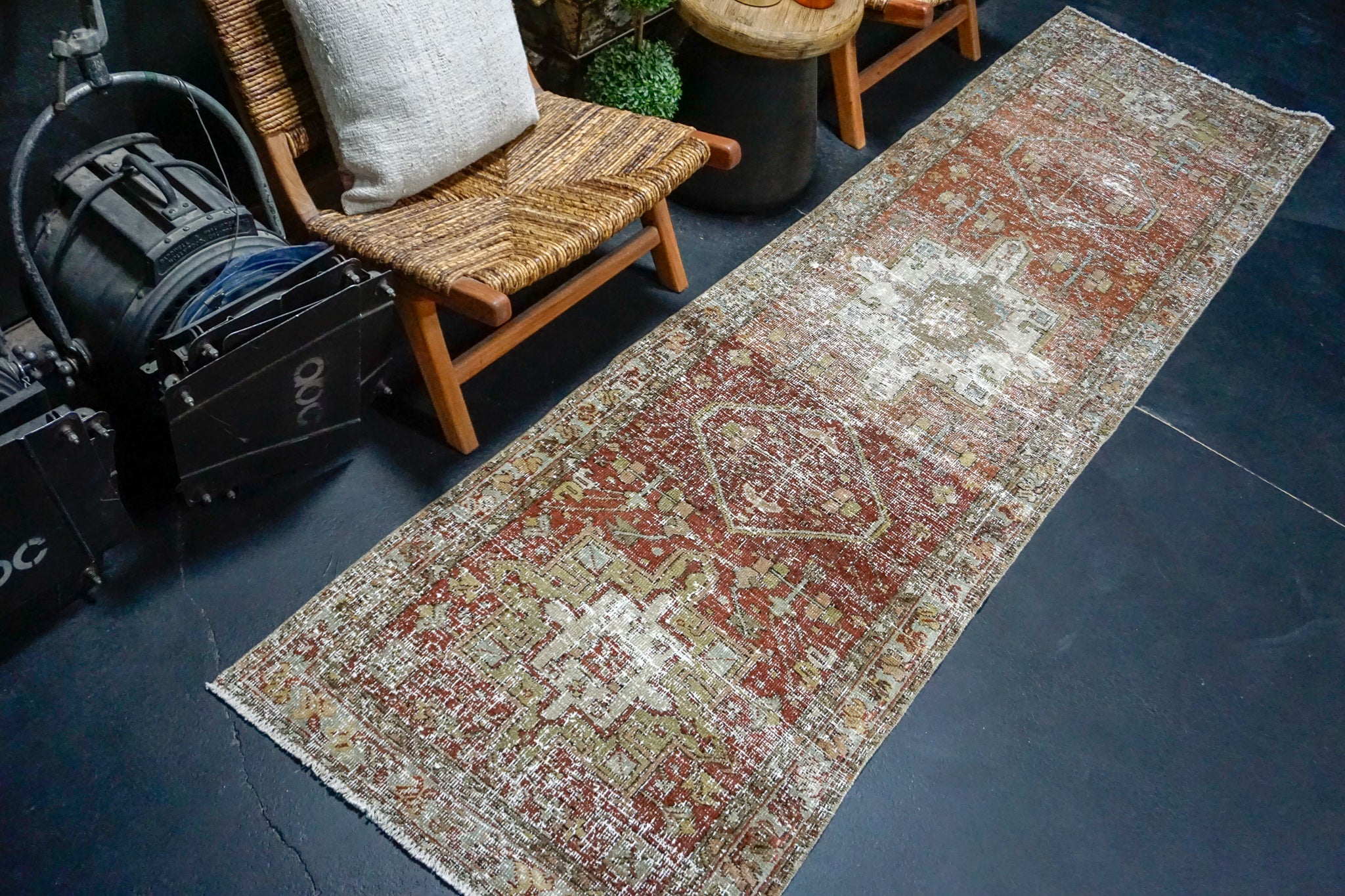 2’9 x 9’10 Classic Vintage Runner Muted Wine, Brick + Green '4618