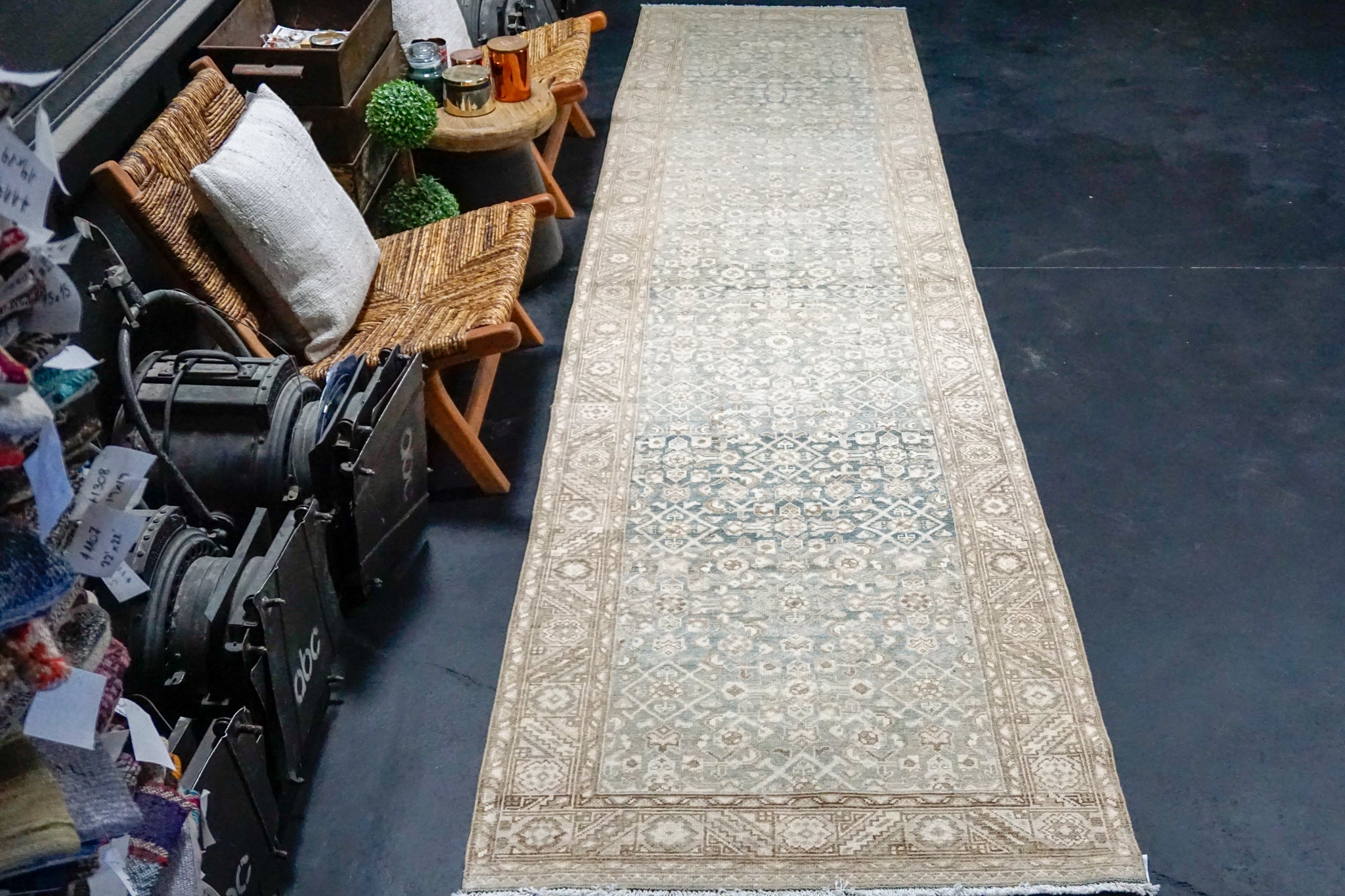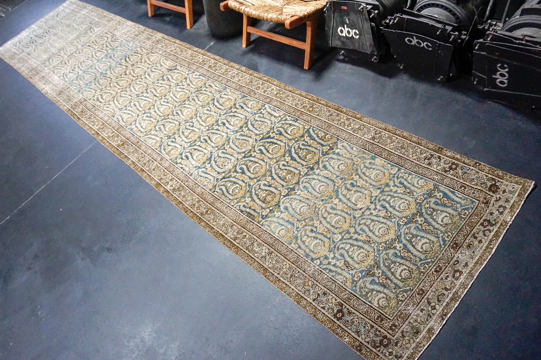 3’4 x 16’4 Antique Runner Muted Turquoise Blue, Brown, Gray + Mocha '4502