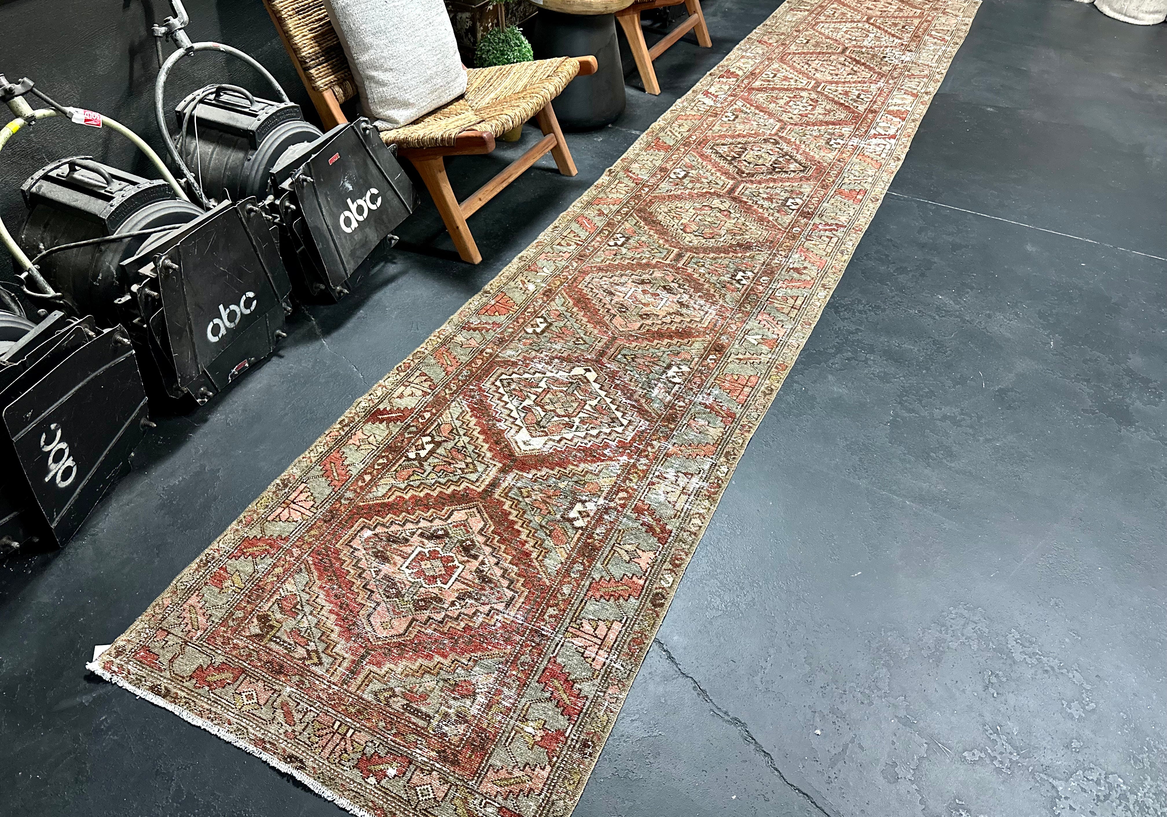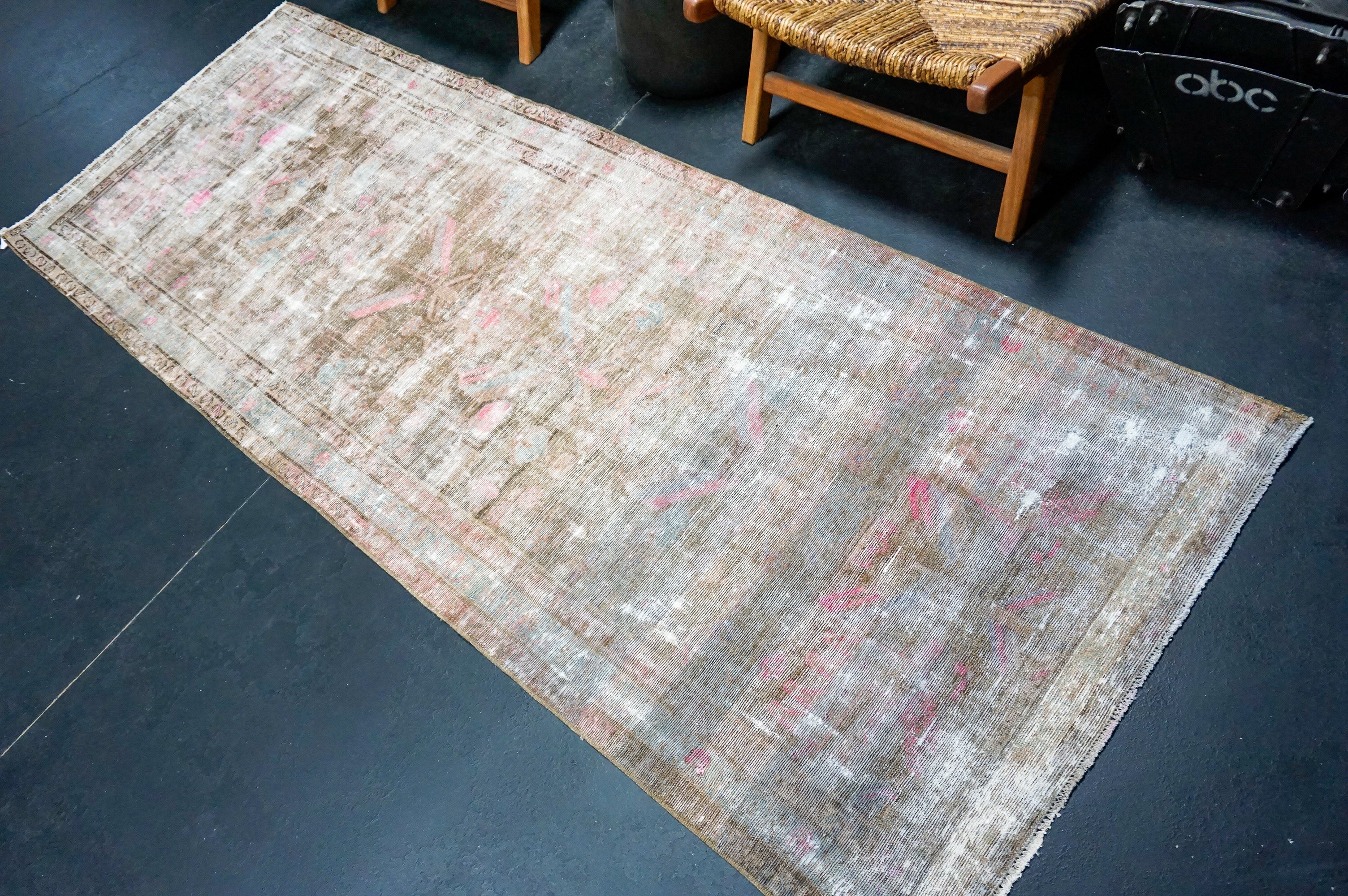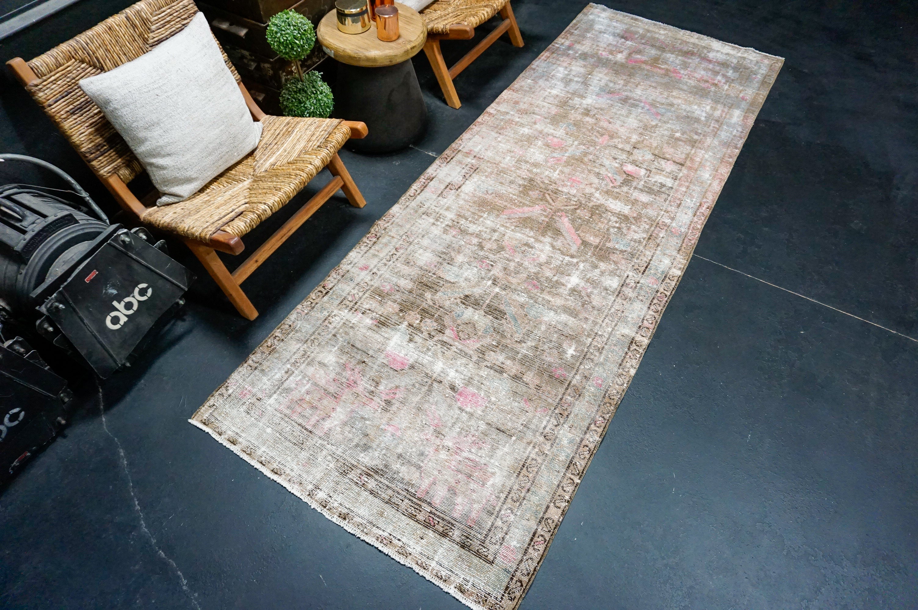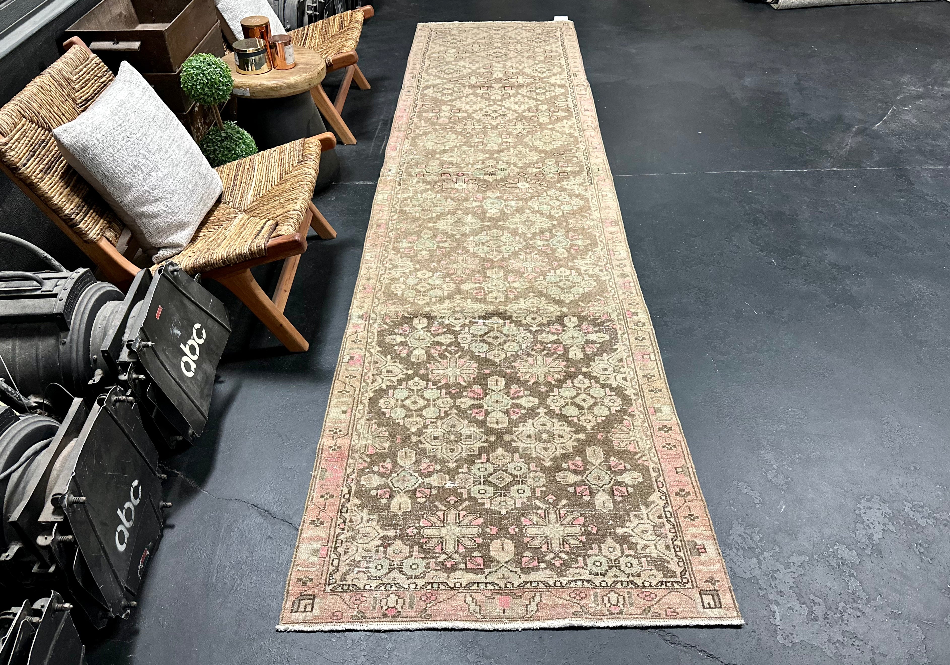 3’1 x 12’6 Classic Vintage Runner Muted Brown, Mint Green & Pink '4977