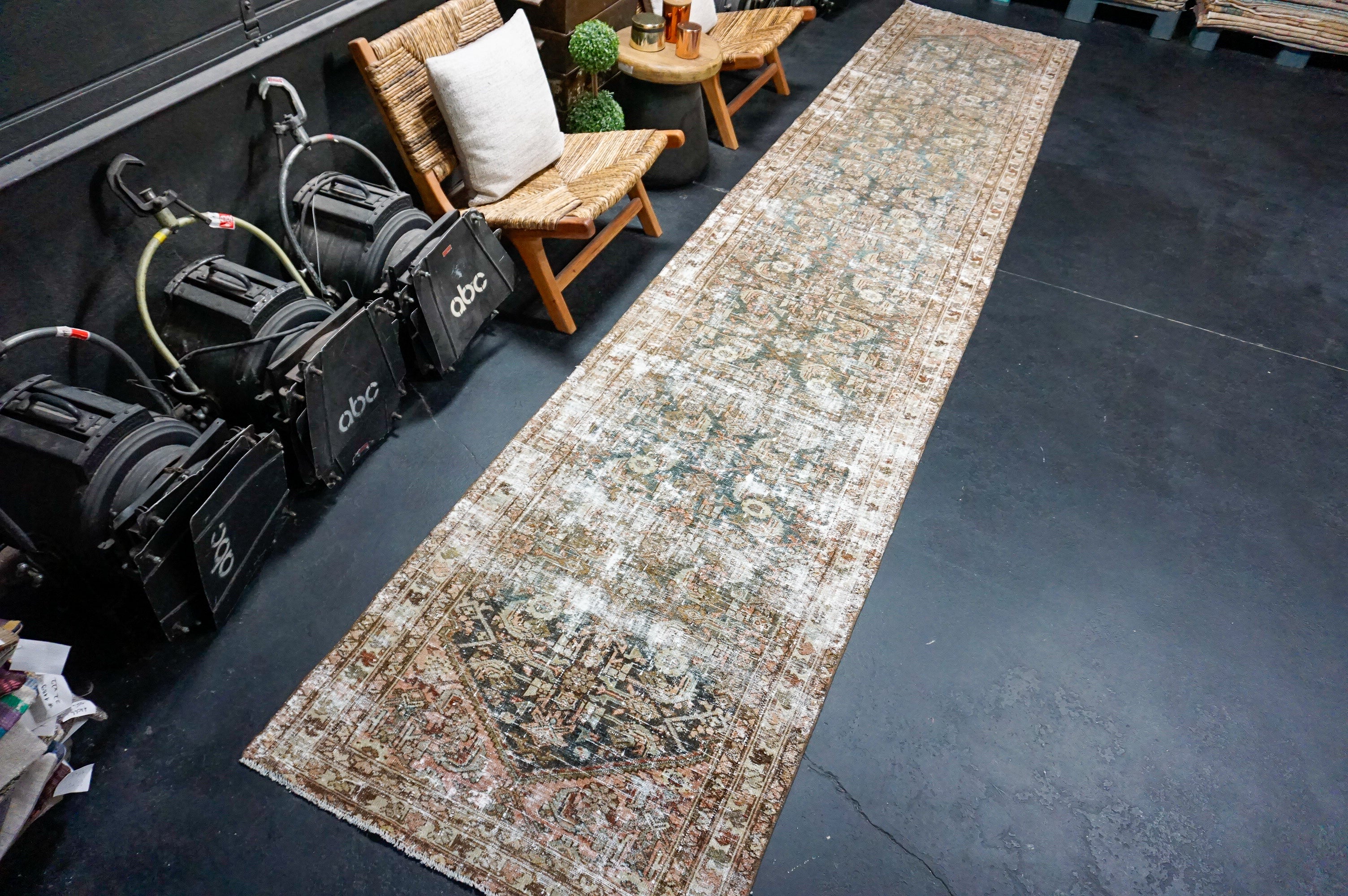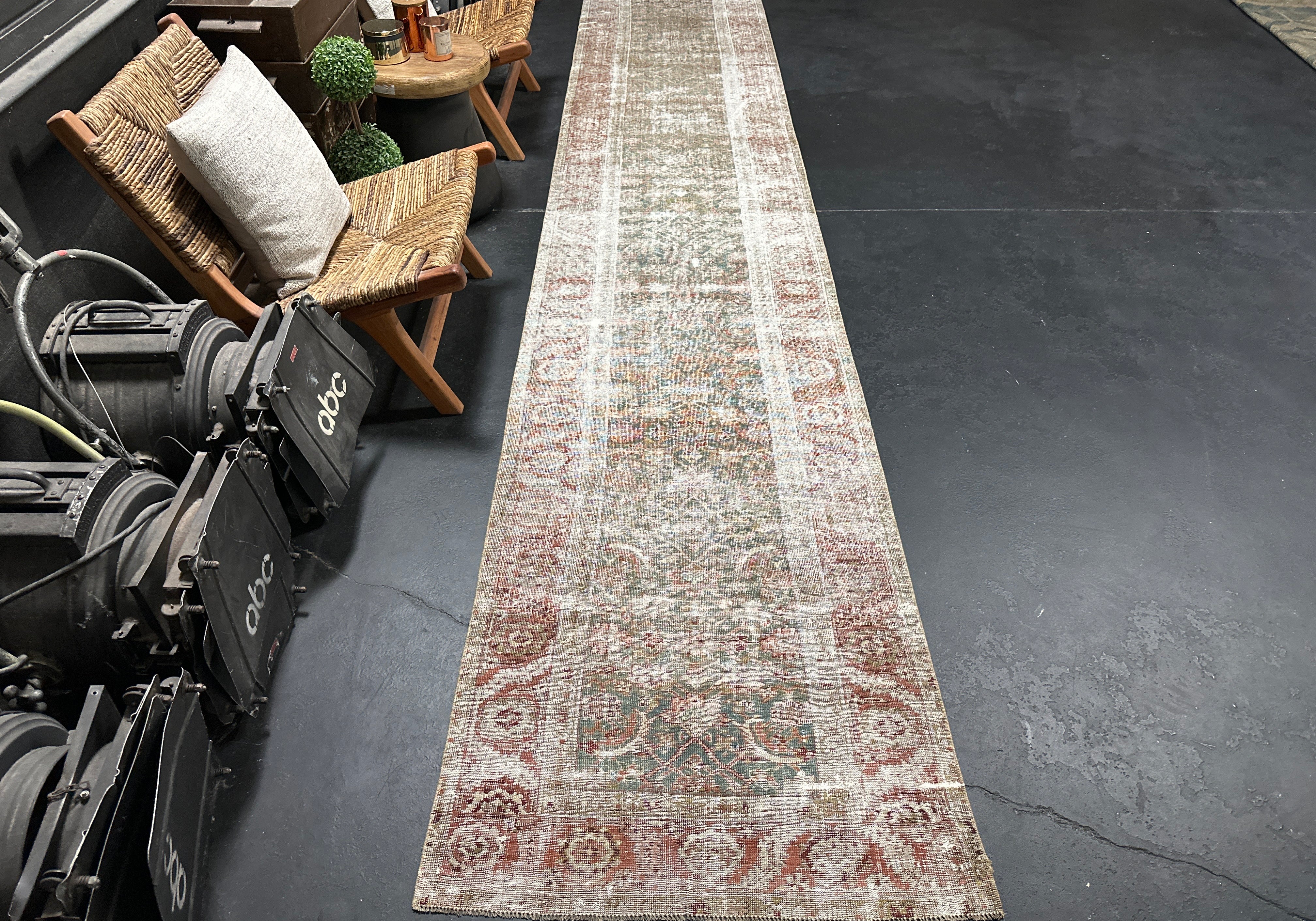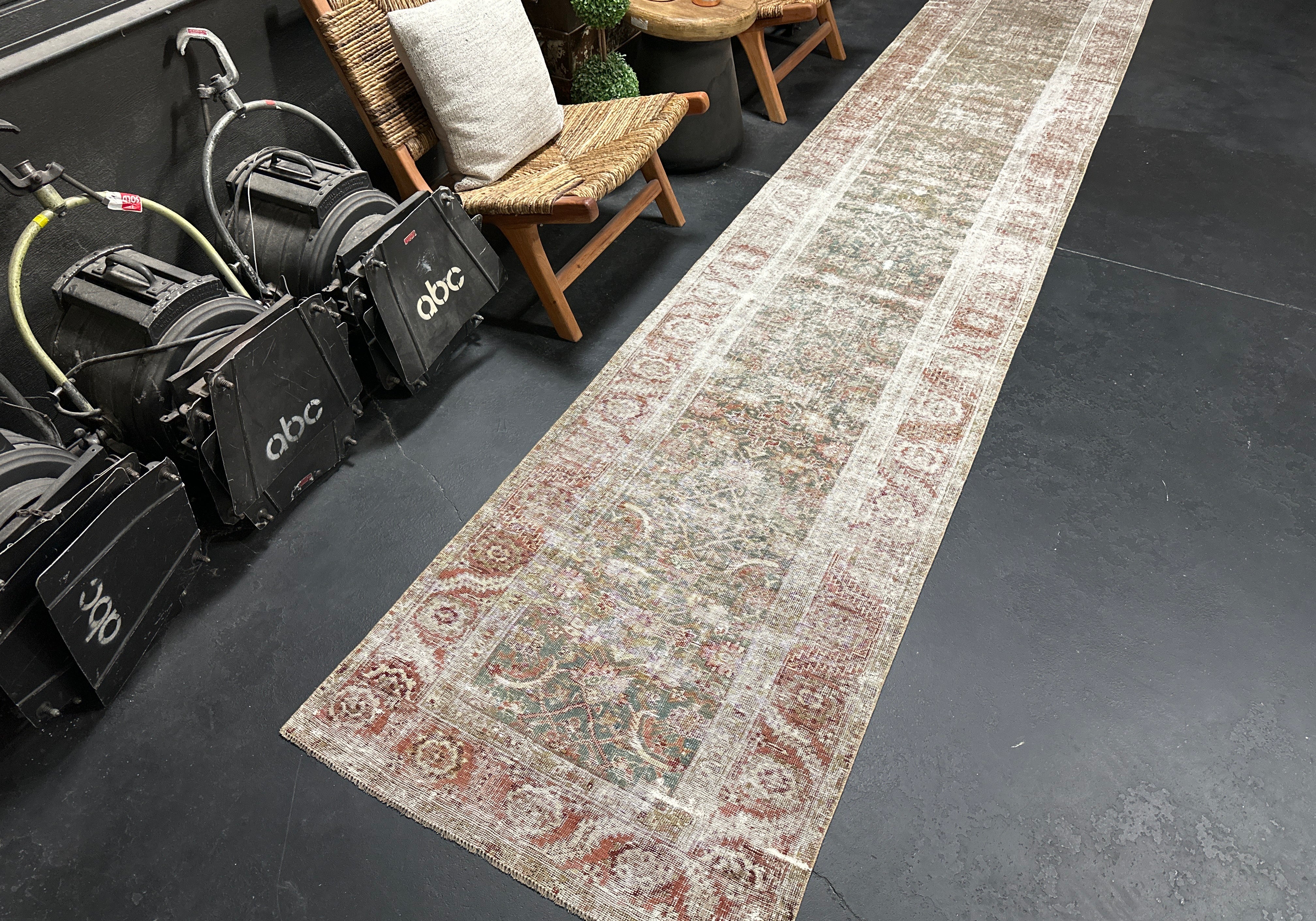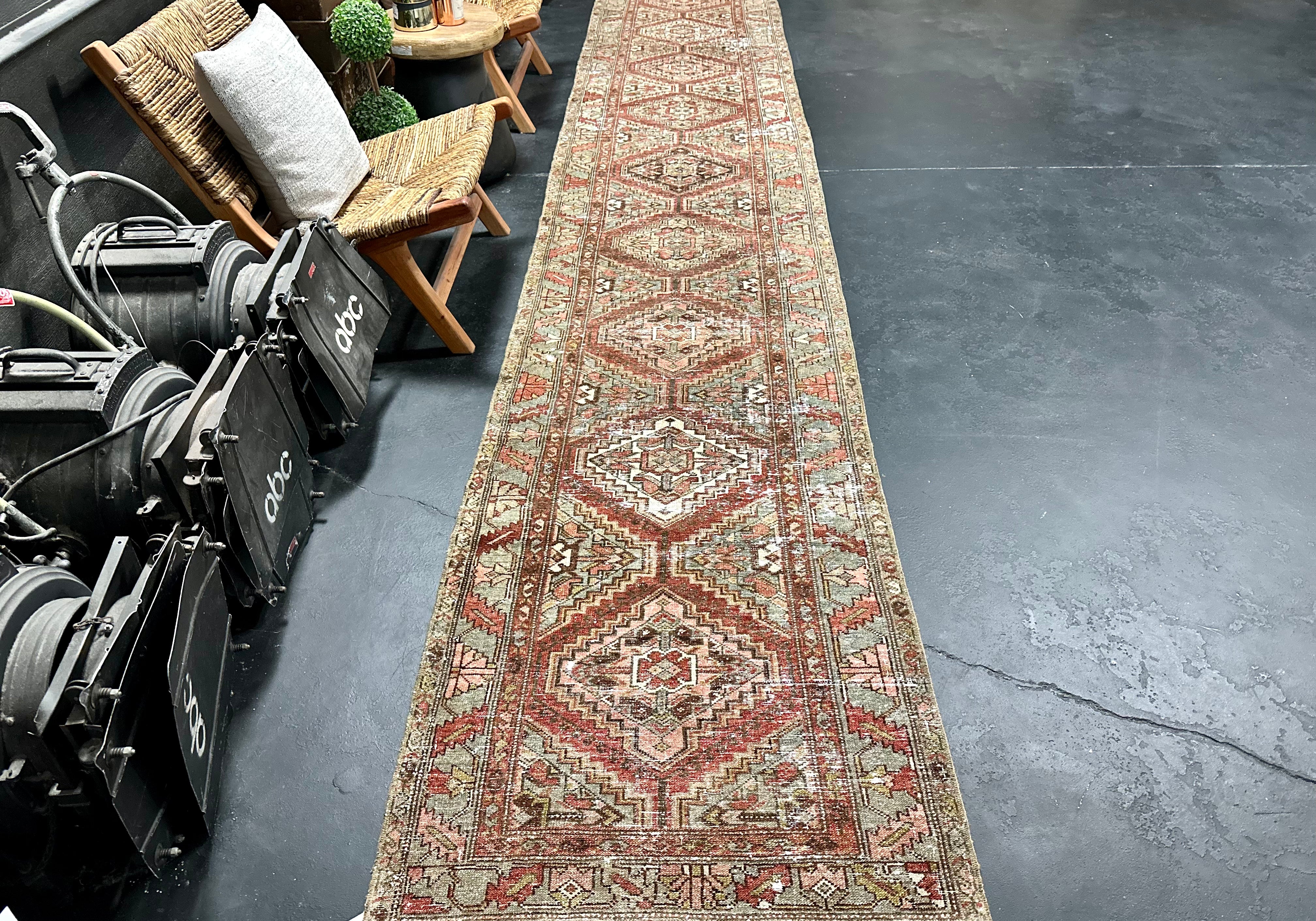 3’1 x 12’6 Classic Vintage Runner Muted Brown, Mint Green & Pink '4977