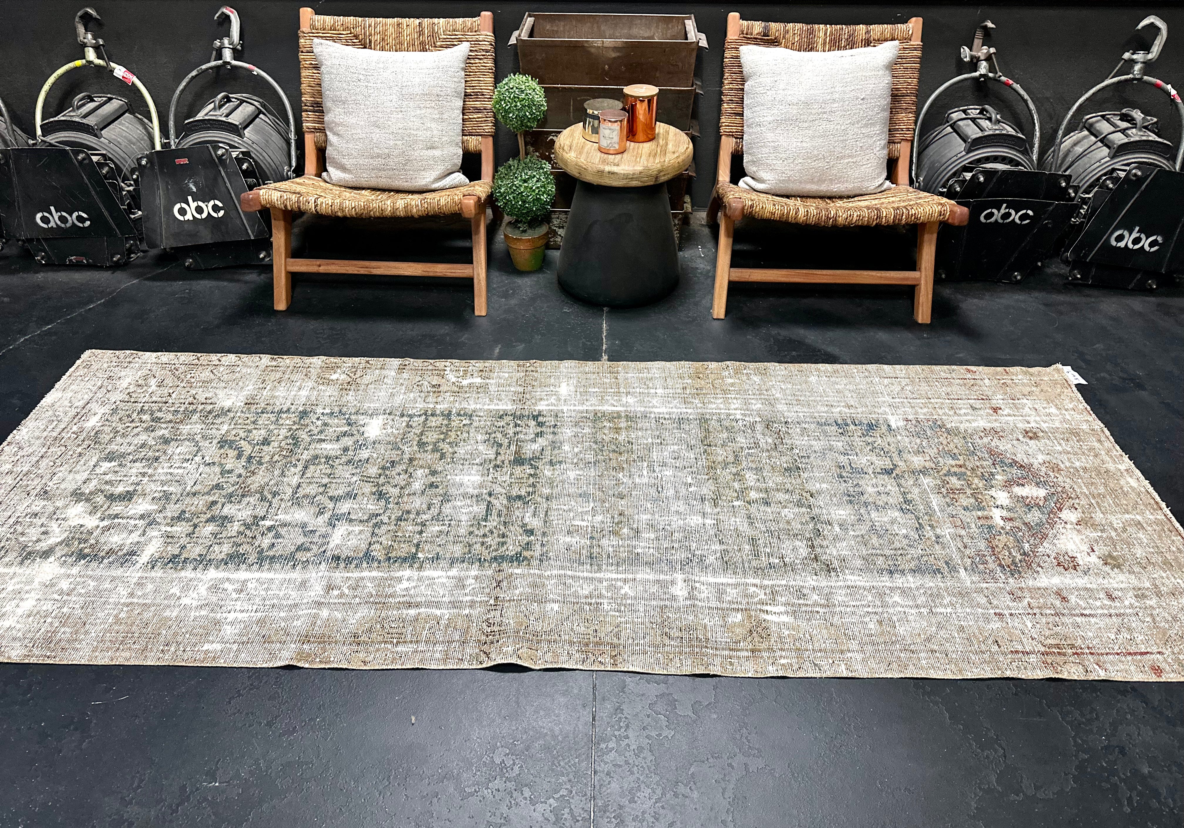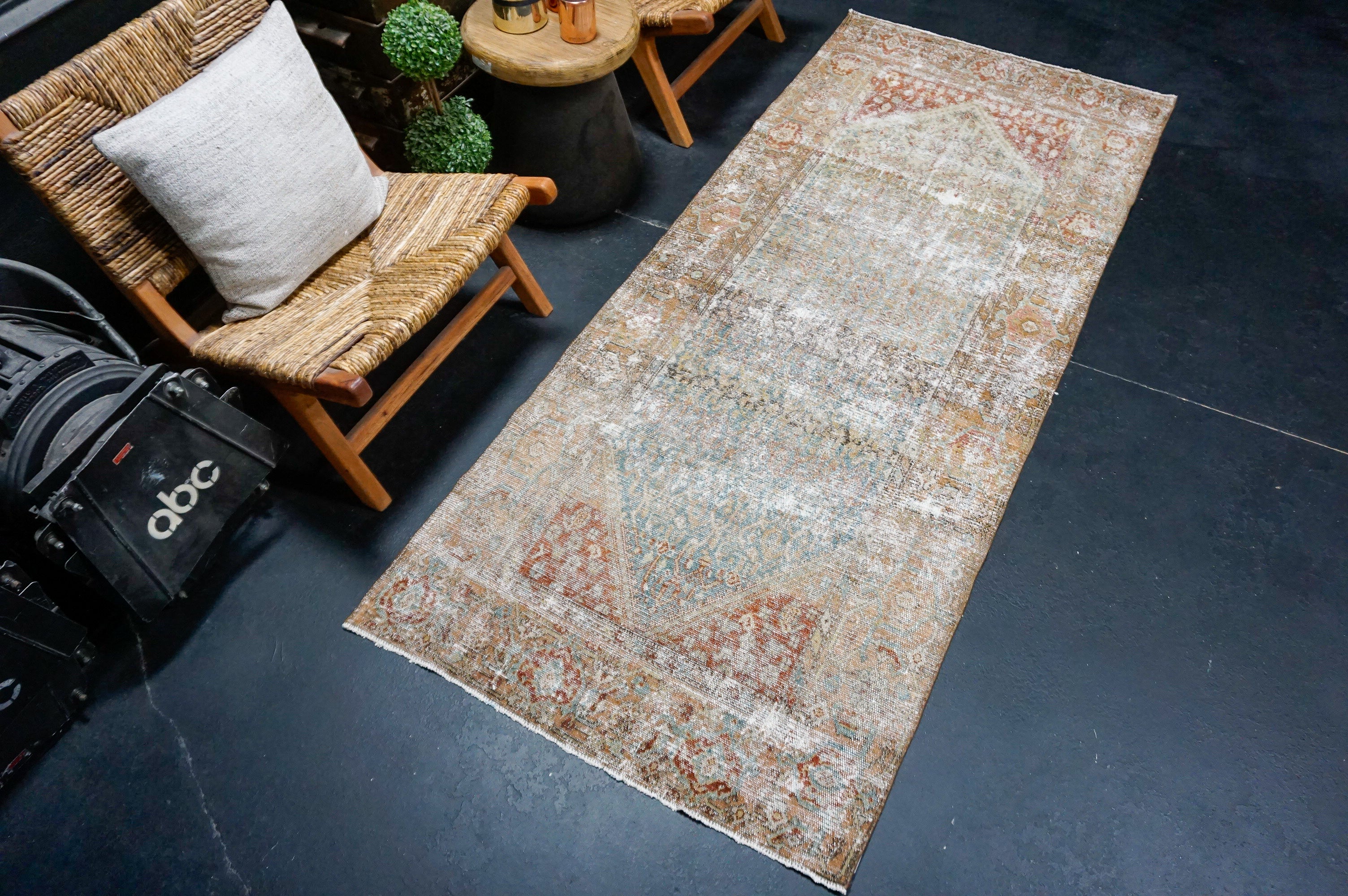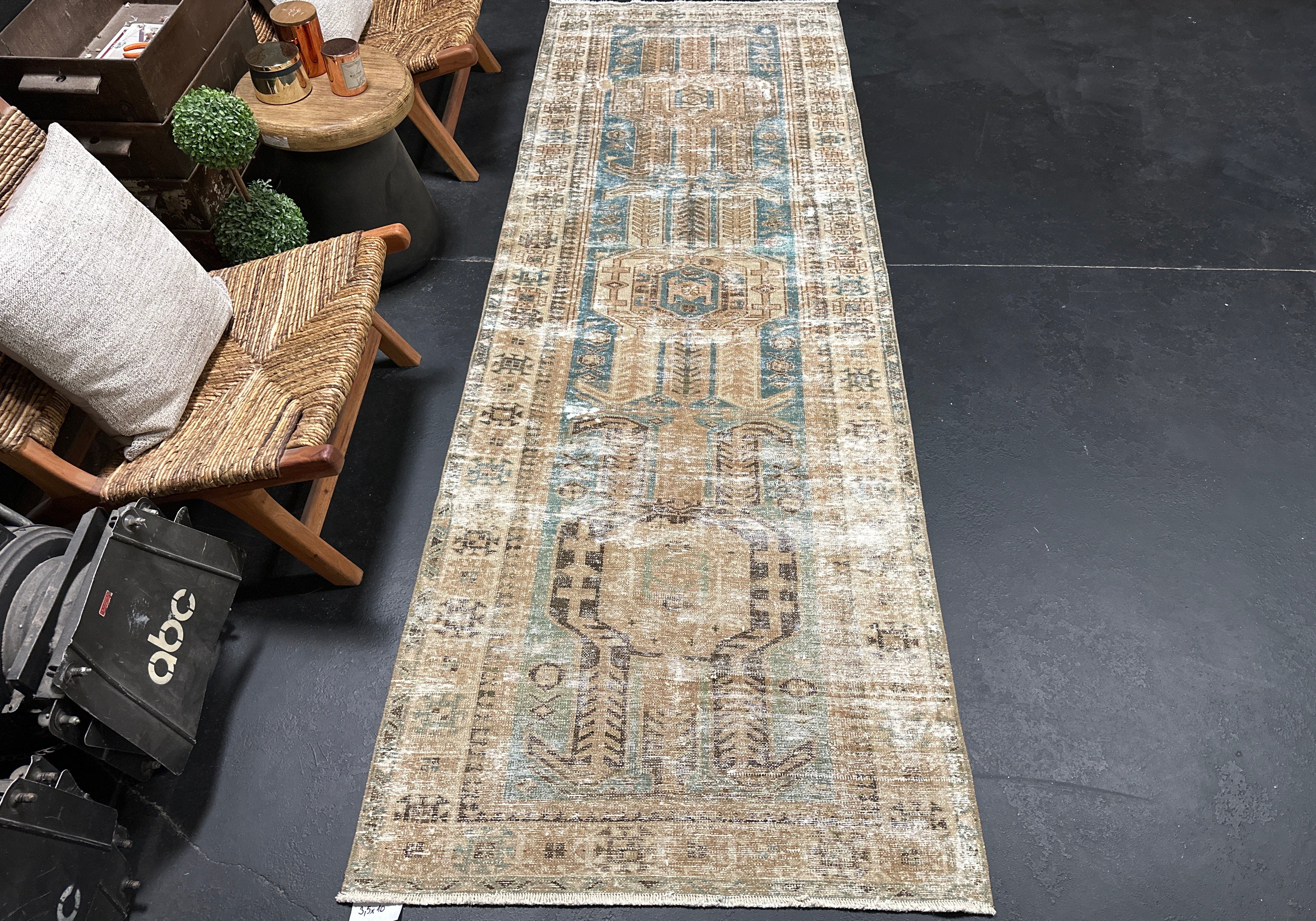 3’5 x 10’ Classic Vintage Runner Muted Turquoise Blue & Beige '5236