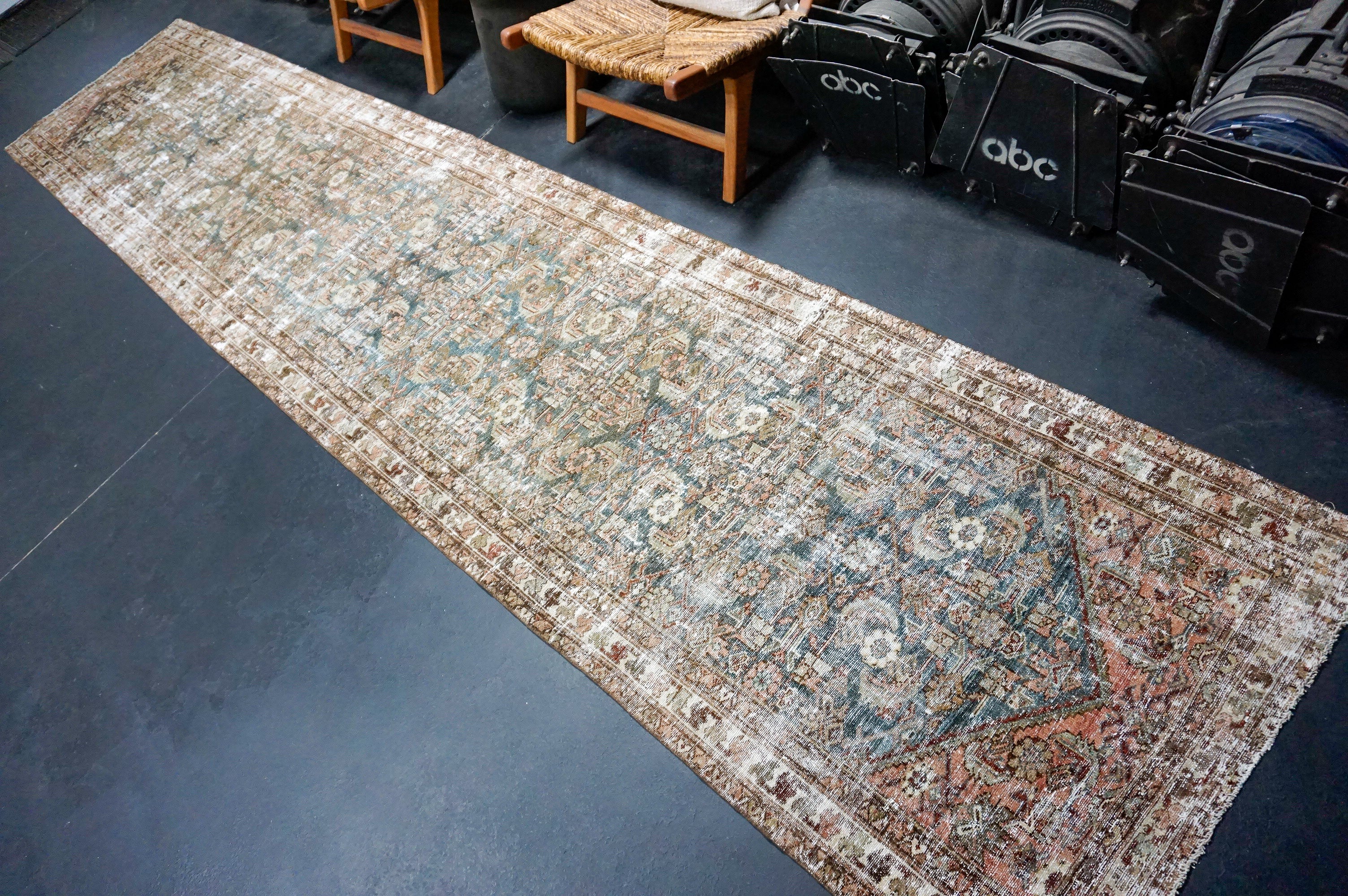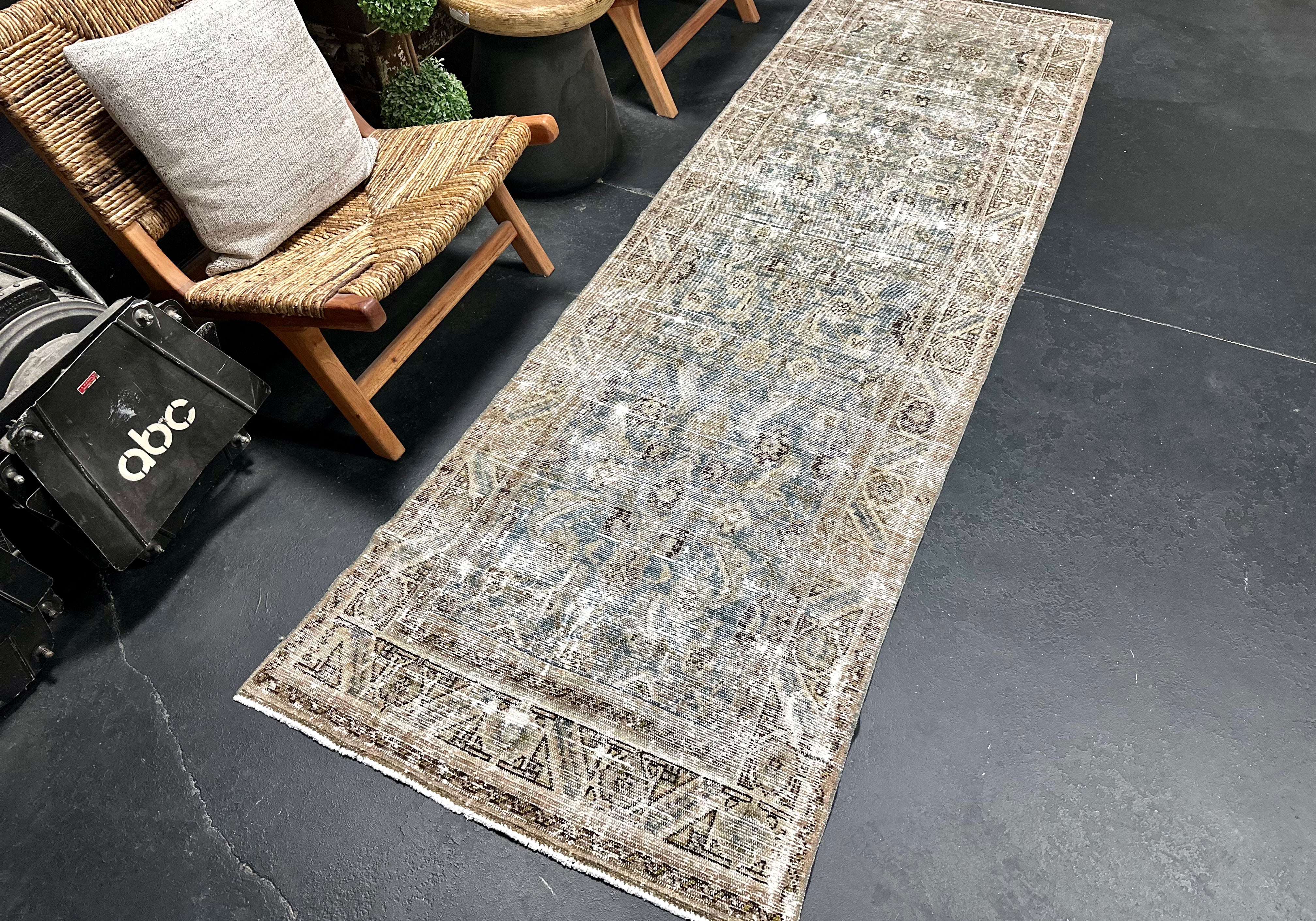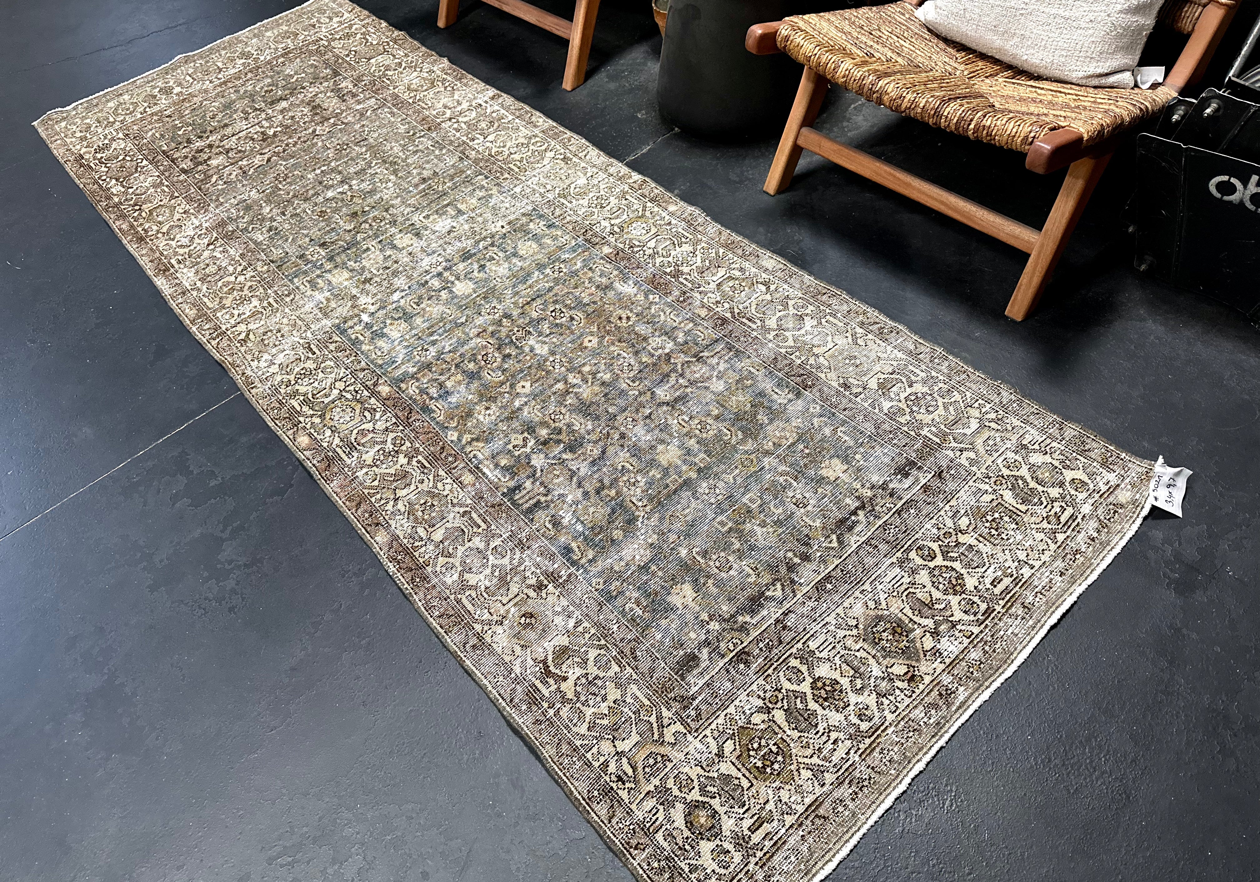 3’ x 9’6 Classic Antique Runner Muted Turquoise Blue & Greige SB '5023