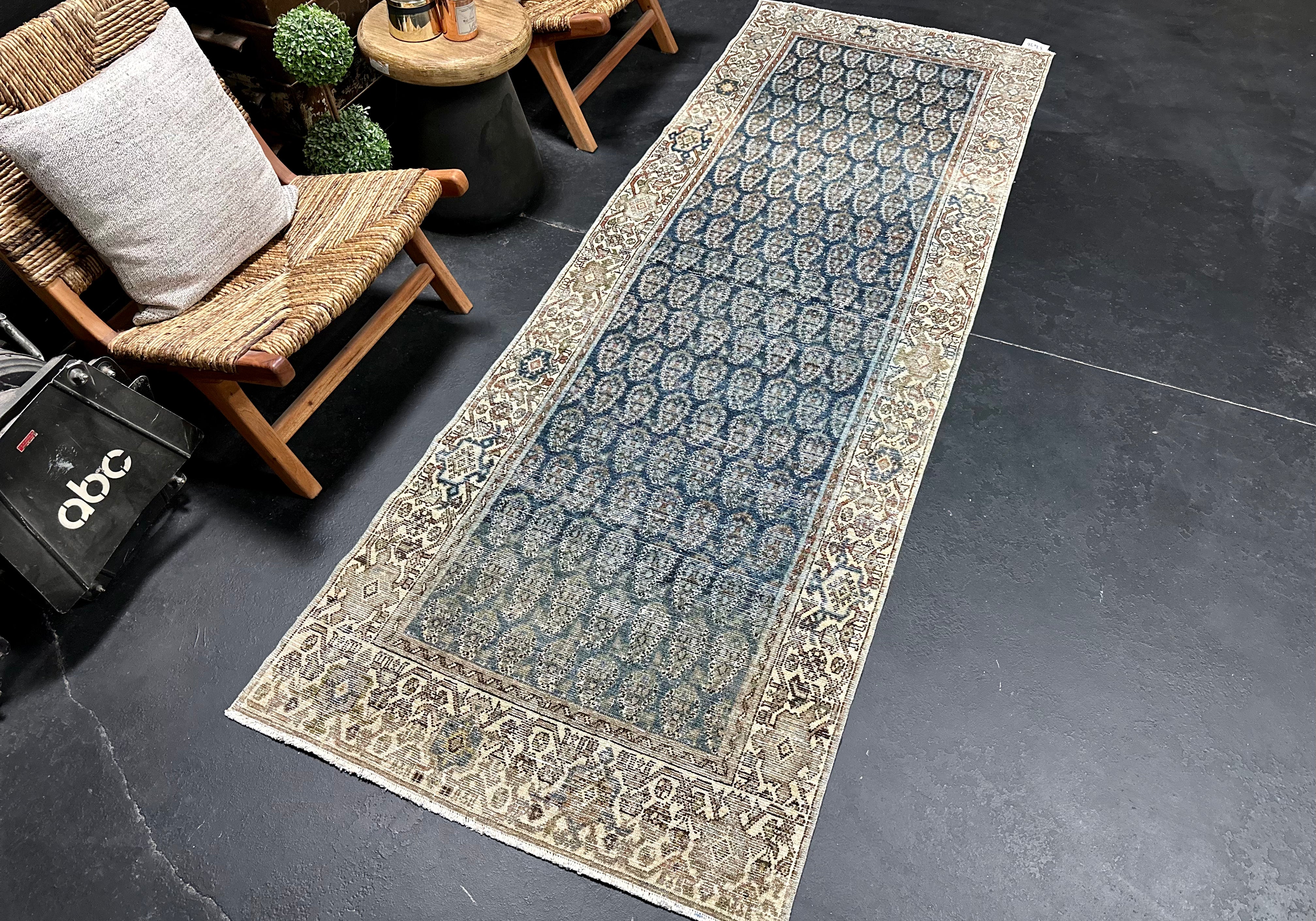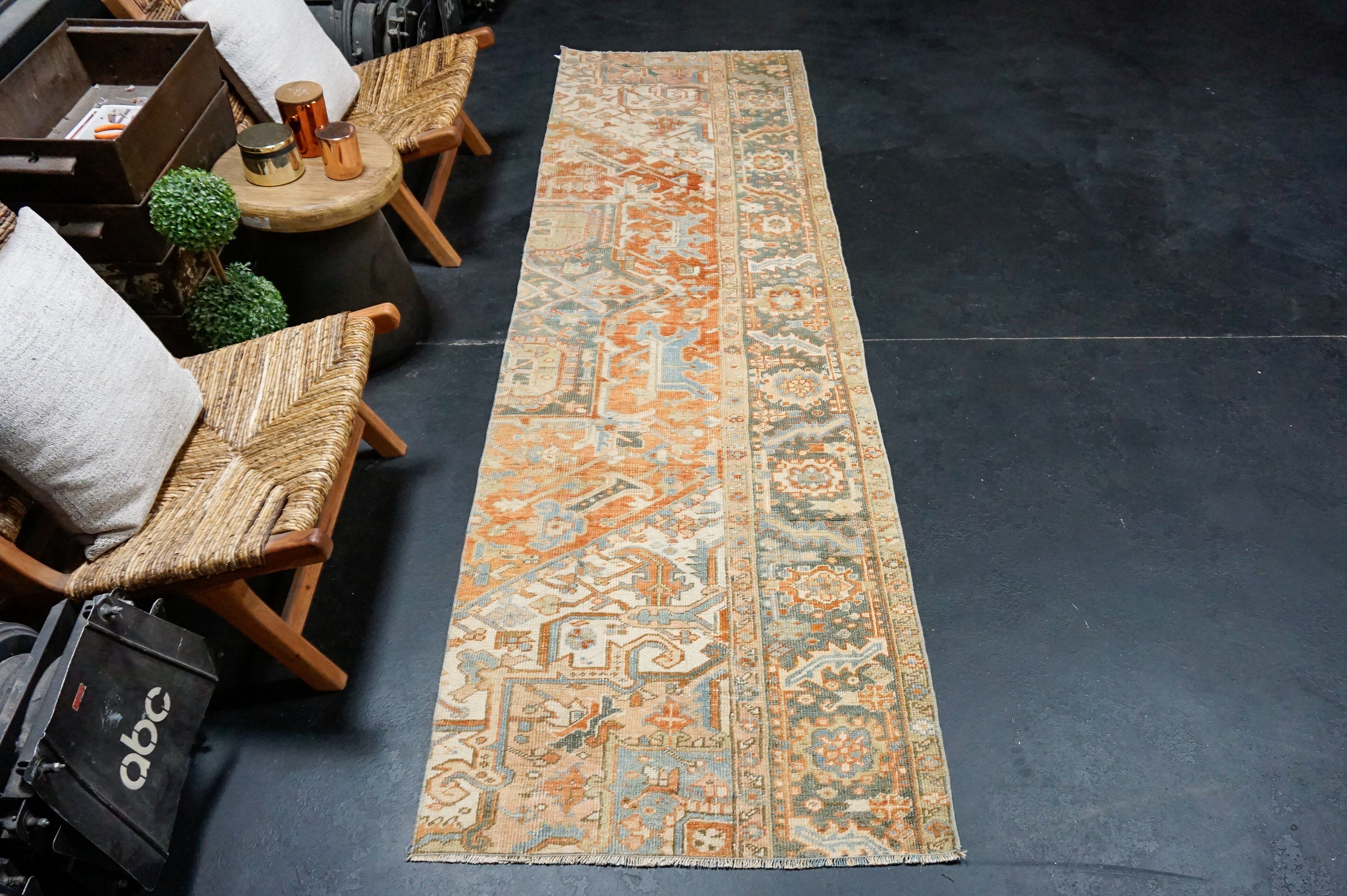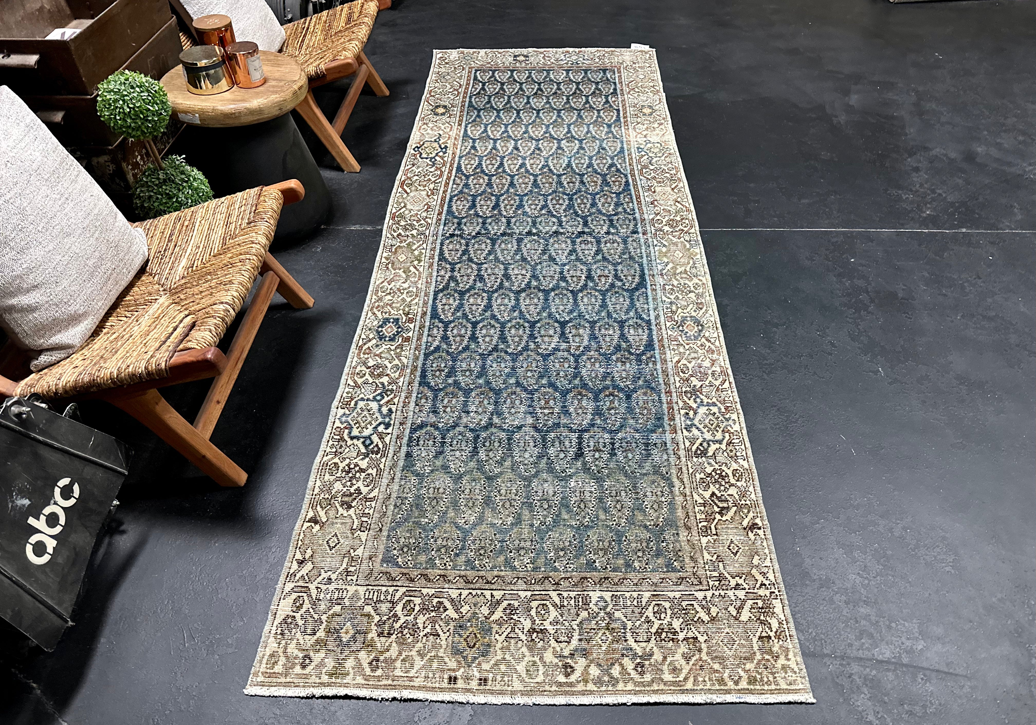 3’3 x 9’6 Classic Vintage Runner Muted Indigo Blue, Copper & Bone SB '4942