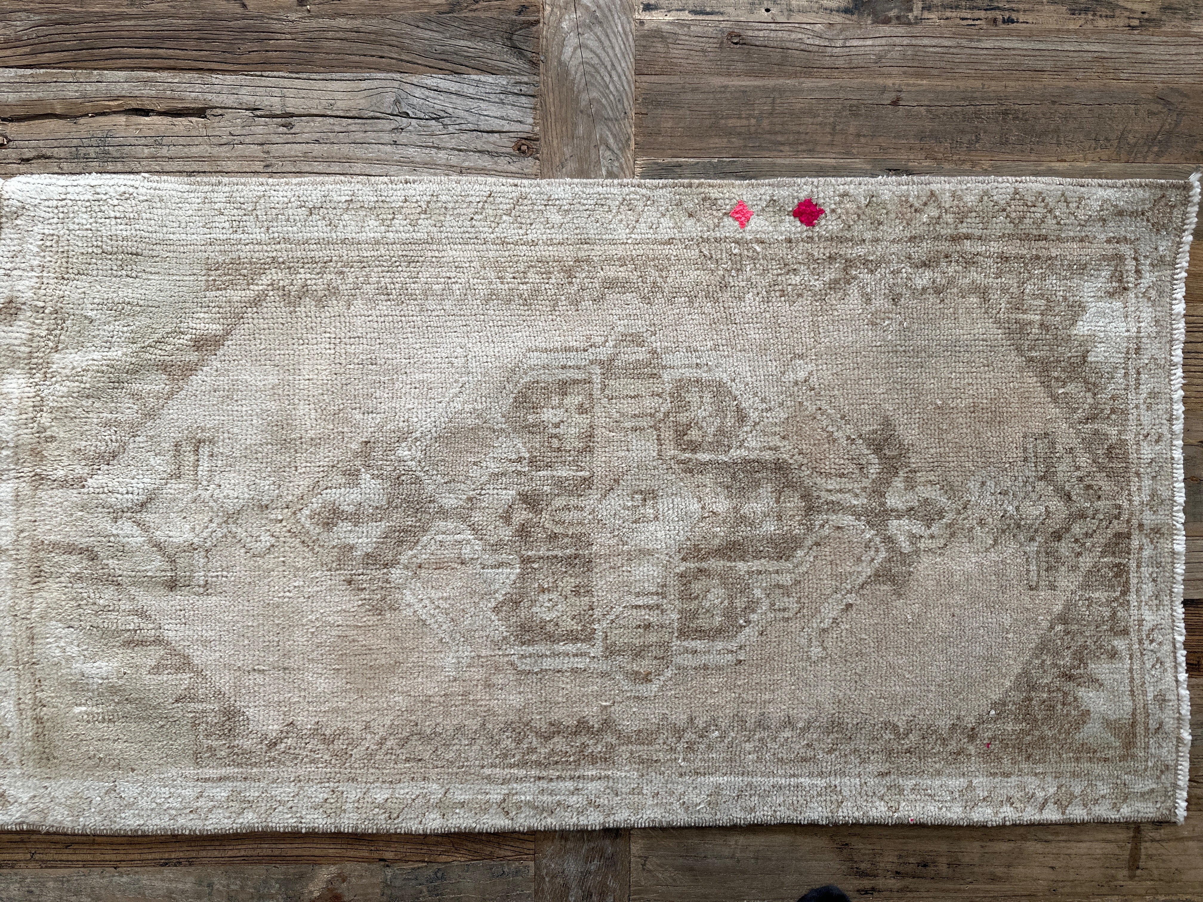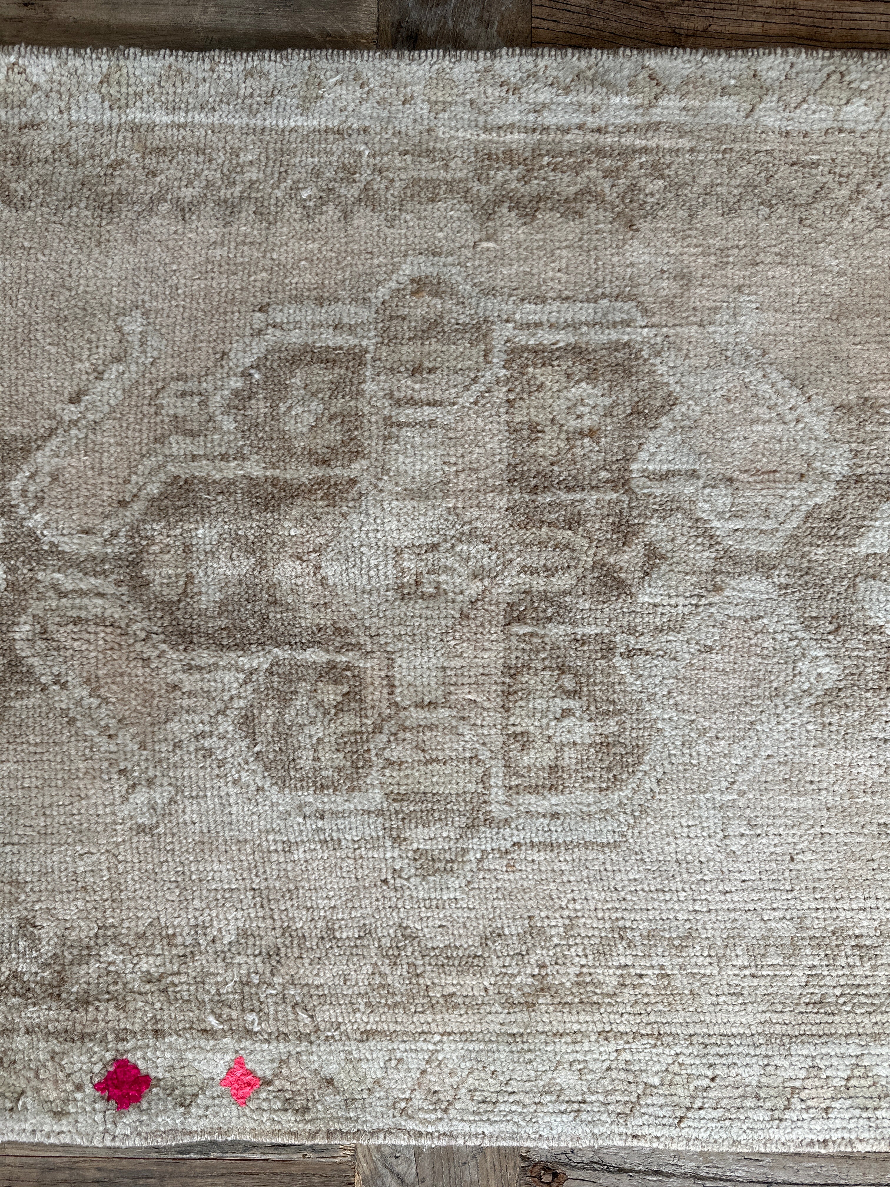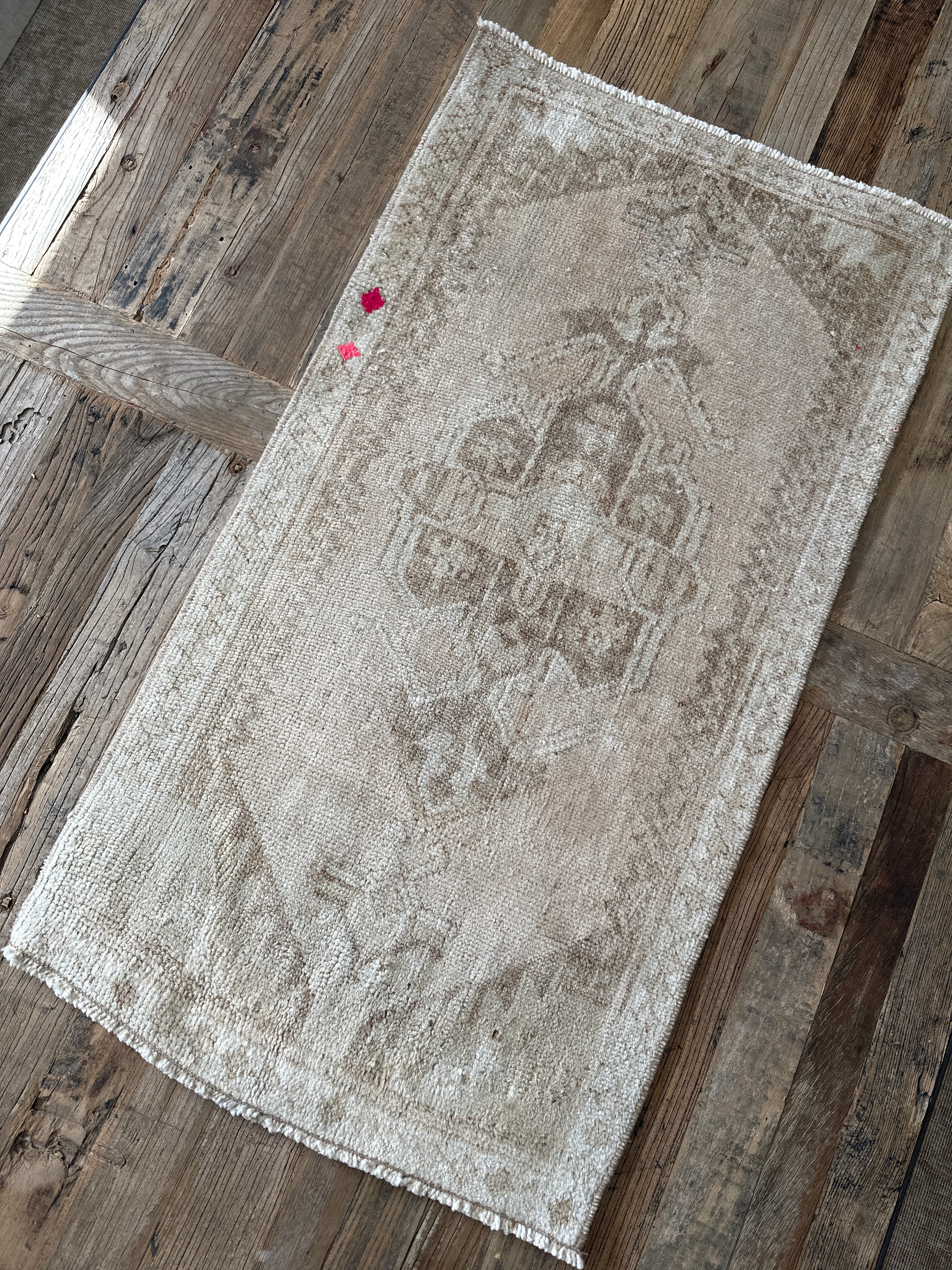 1’10 x 3’3 Antique Turkish Taspinar Rug Muted Beige, Gray + Taupe '4849