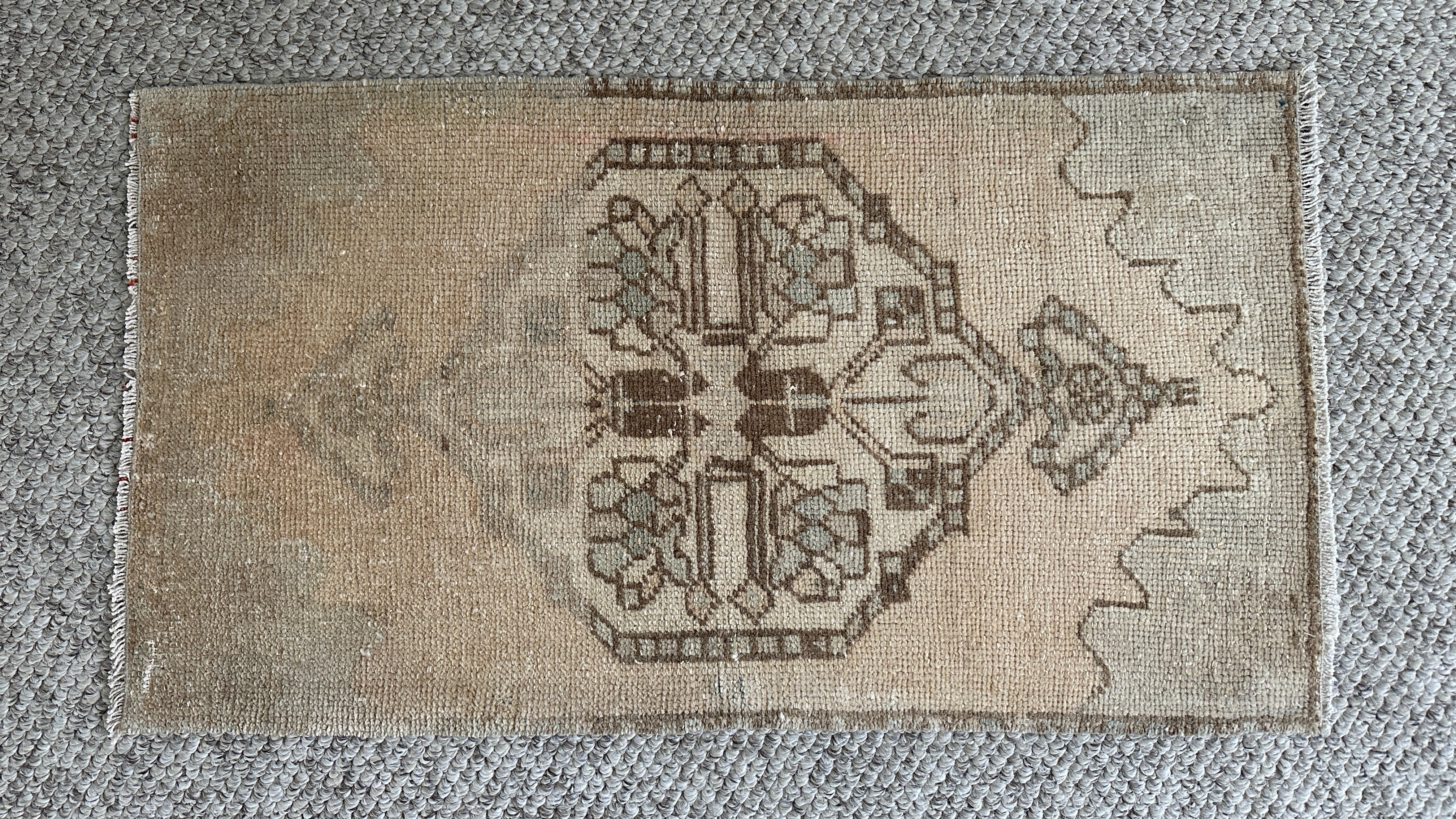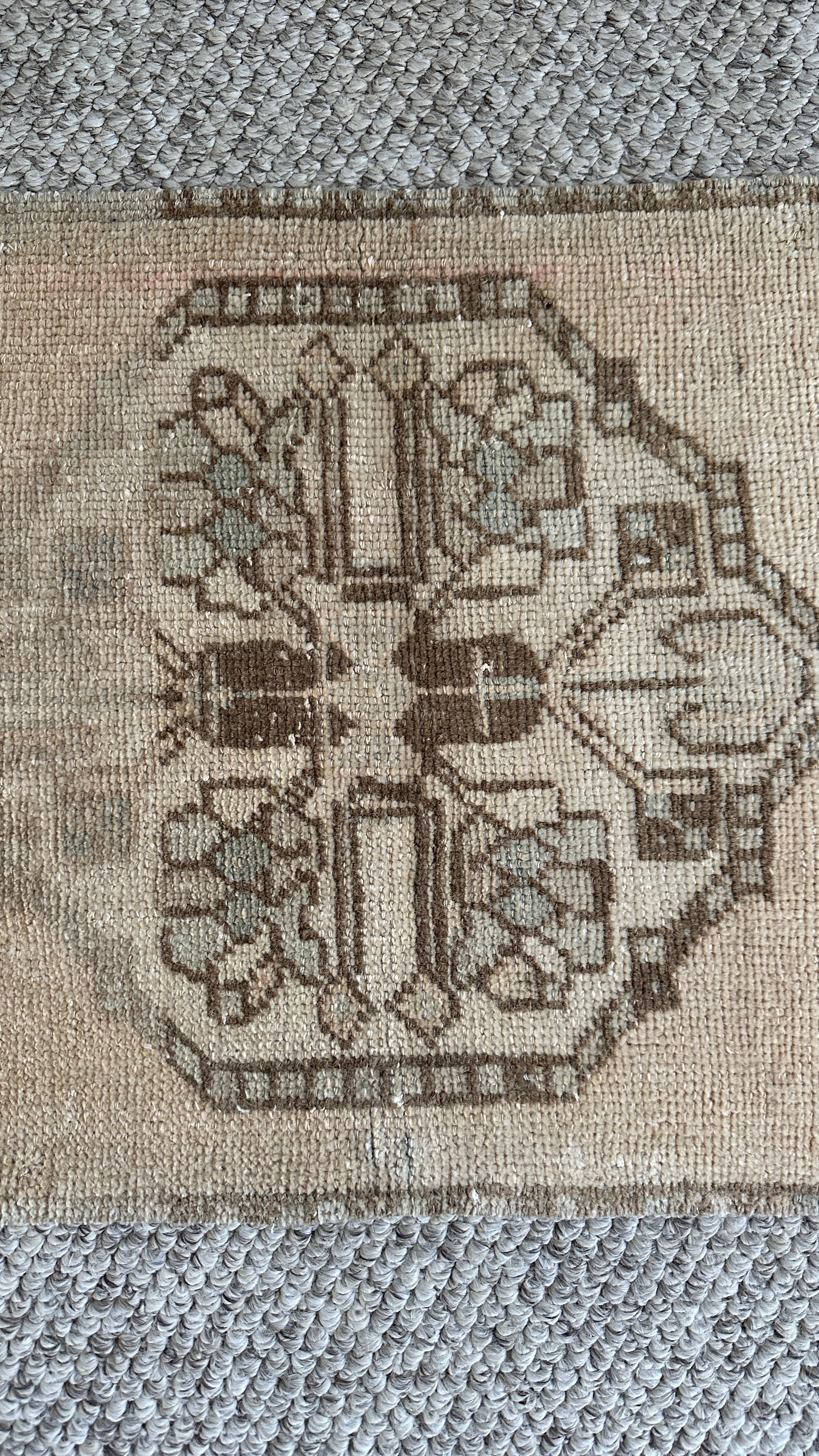 1’8 x 3’ Vintage Oushak Mat Muted Taupe, Blush, Gray & Brown 4903