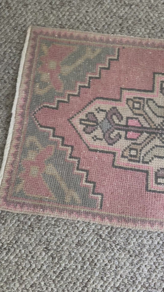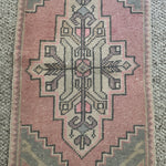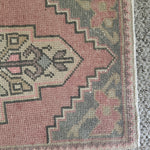 1’8 x 3’ Vintage Turkish Oushak Rug Muted Pink, Blue-Gray & Beige 4774