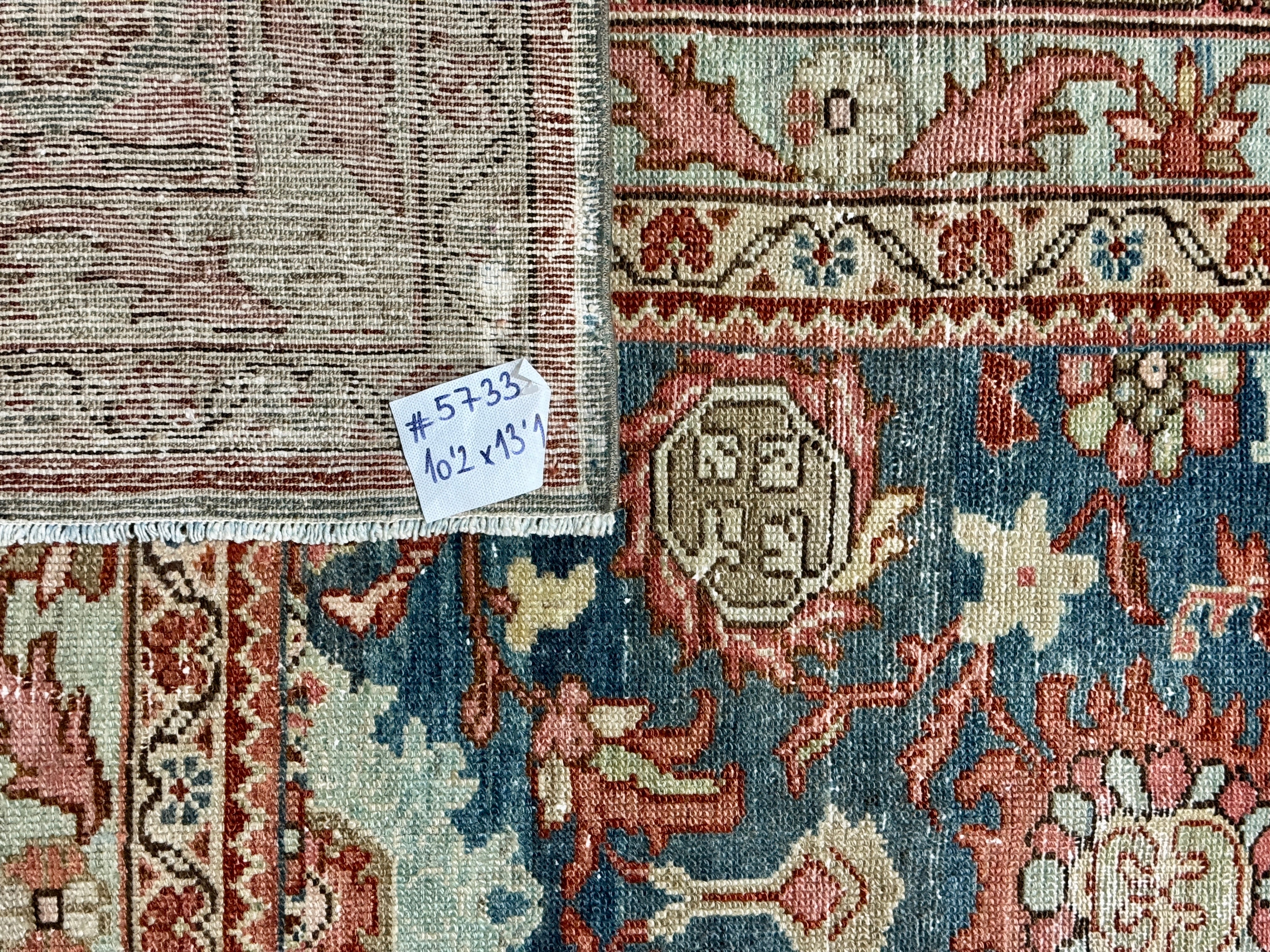 10’2 x 13’1 Rare Antique Malayer Rug Blue, Terra Cotta & Rust 5733
