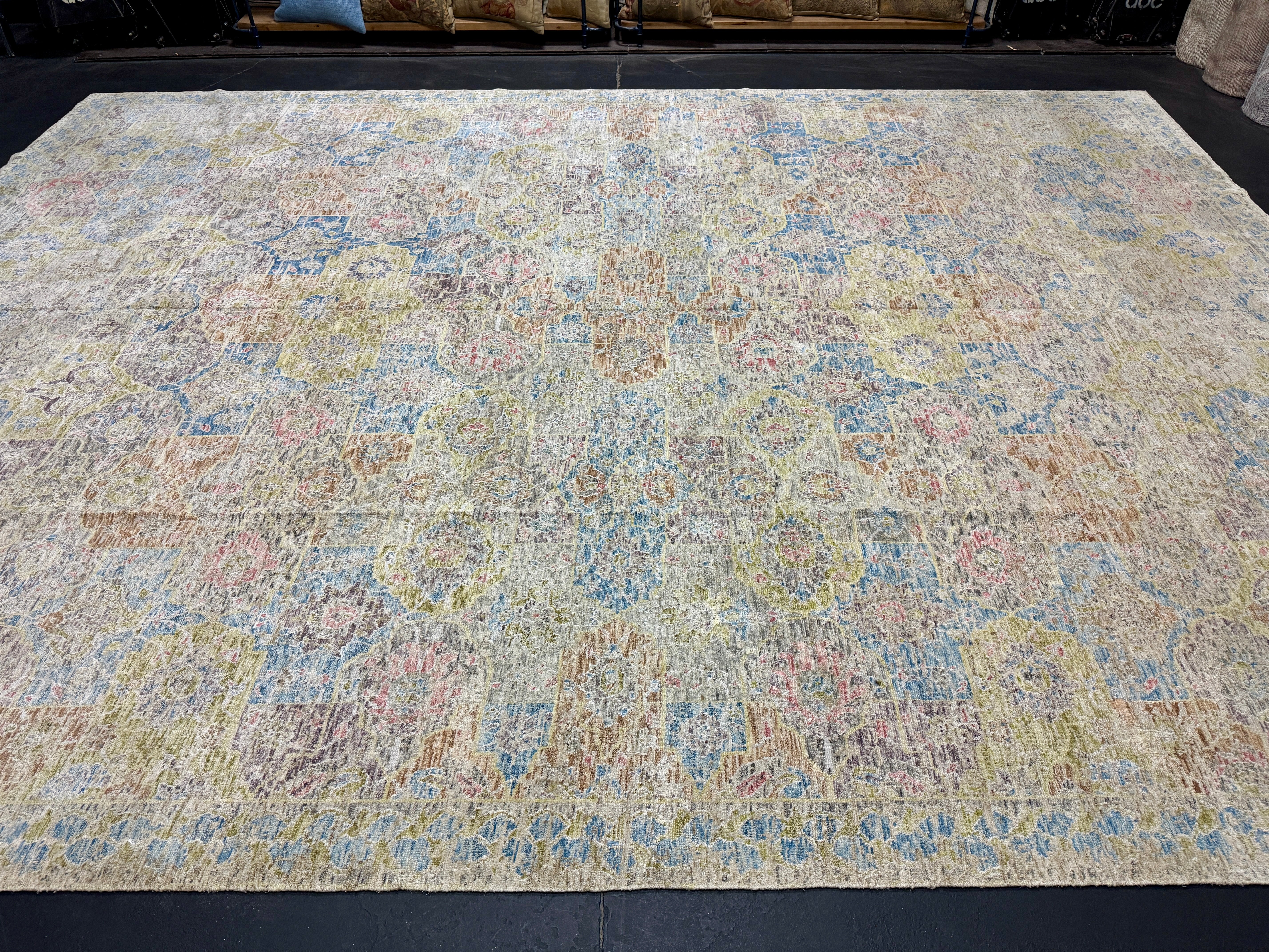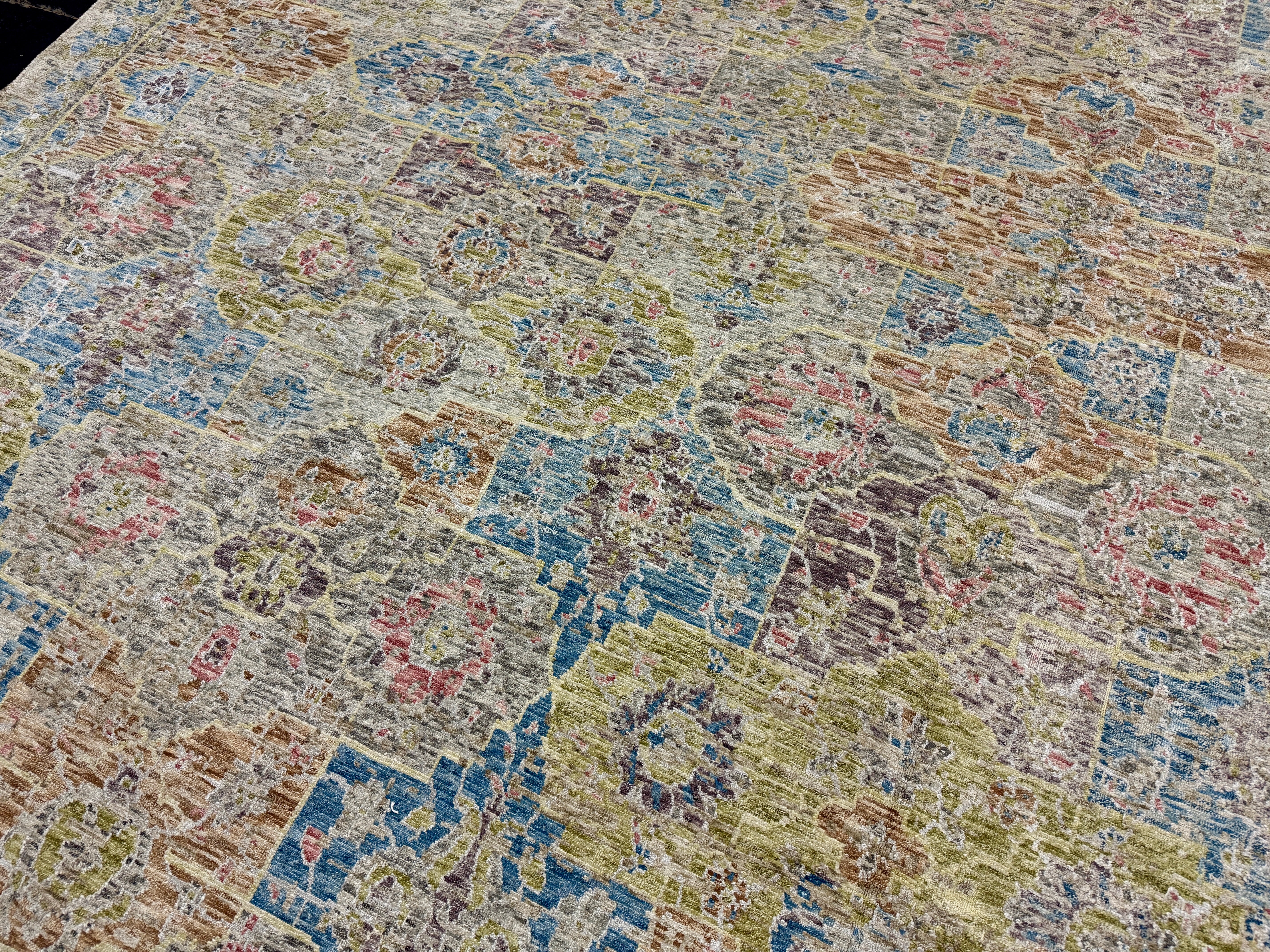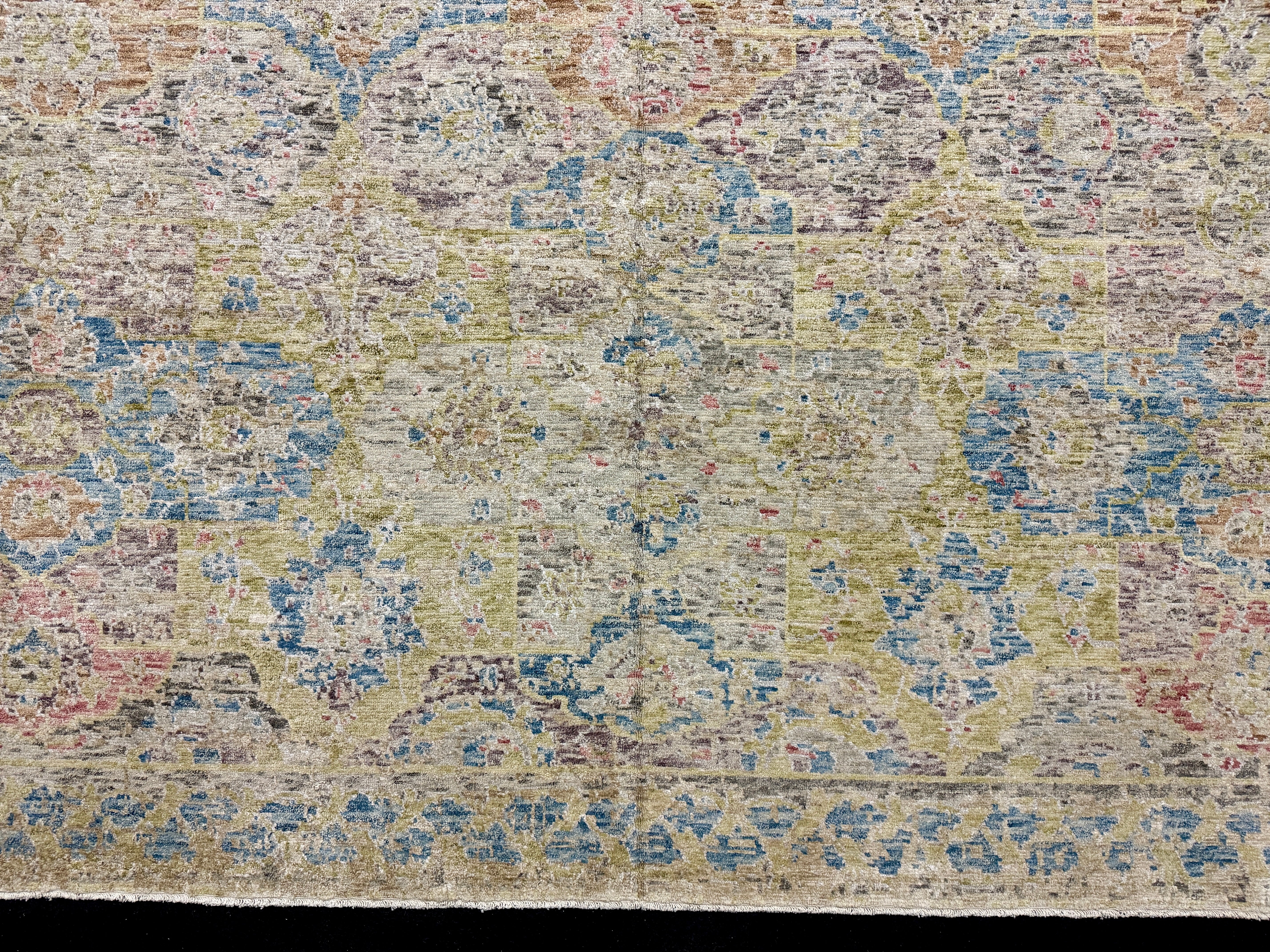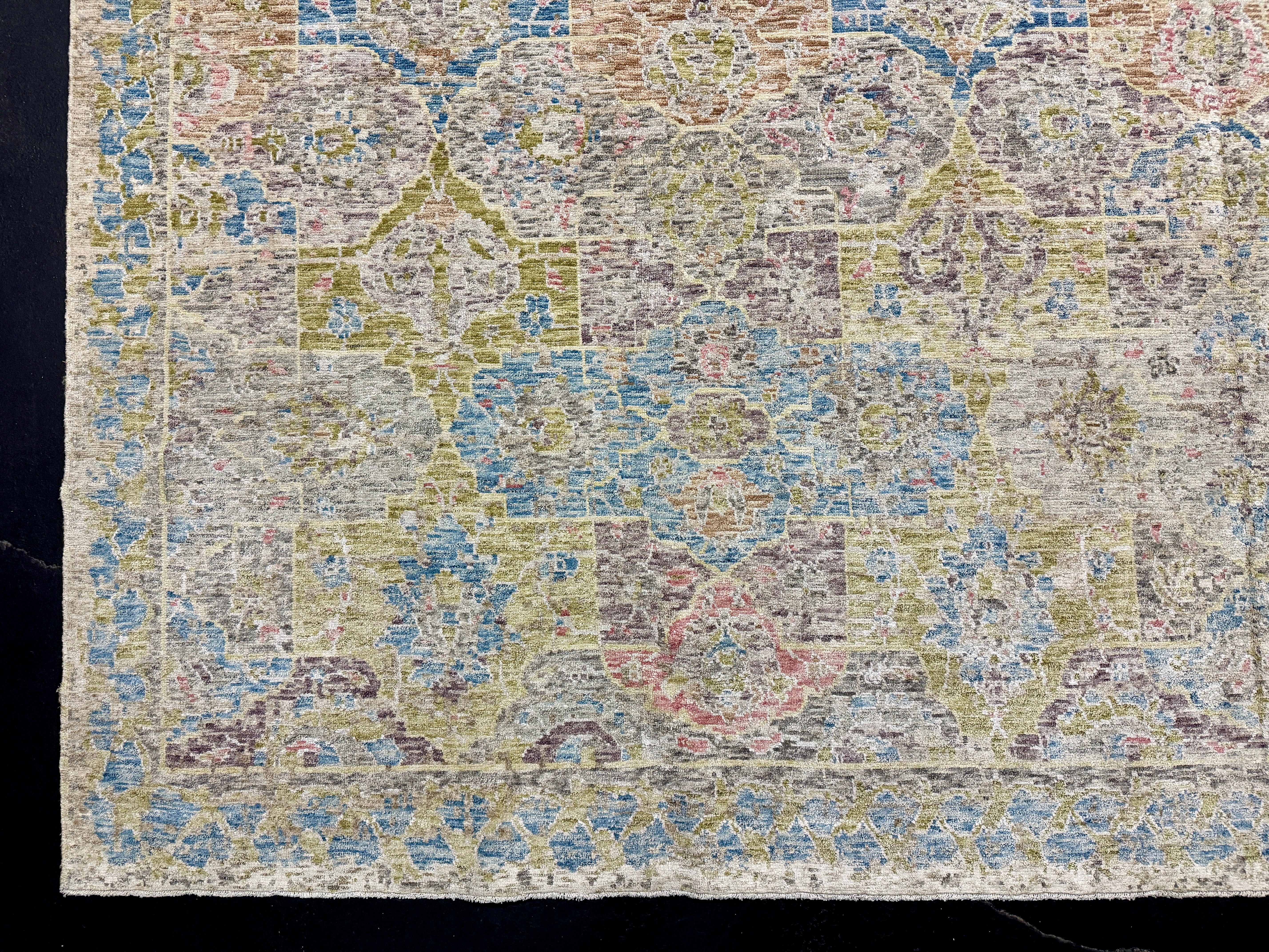 10’3 x 13’10 Silk and Wool Rug Silver, Blue, Chartreuse, Aubergine & Pink K0001