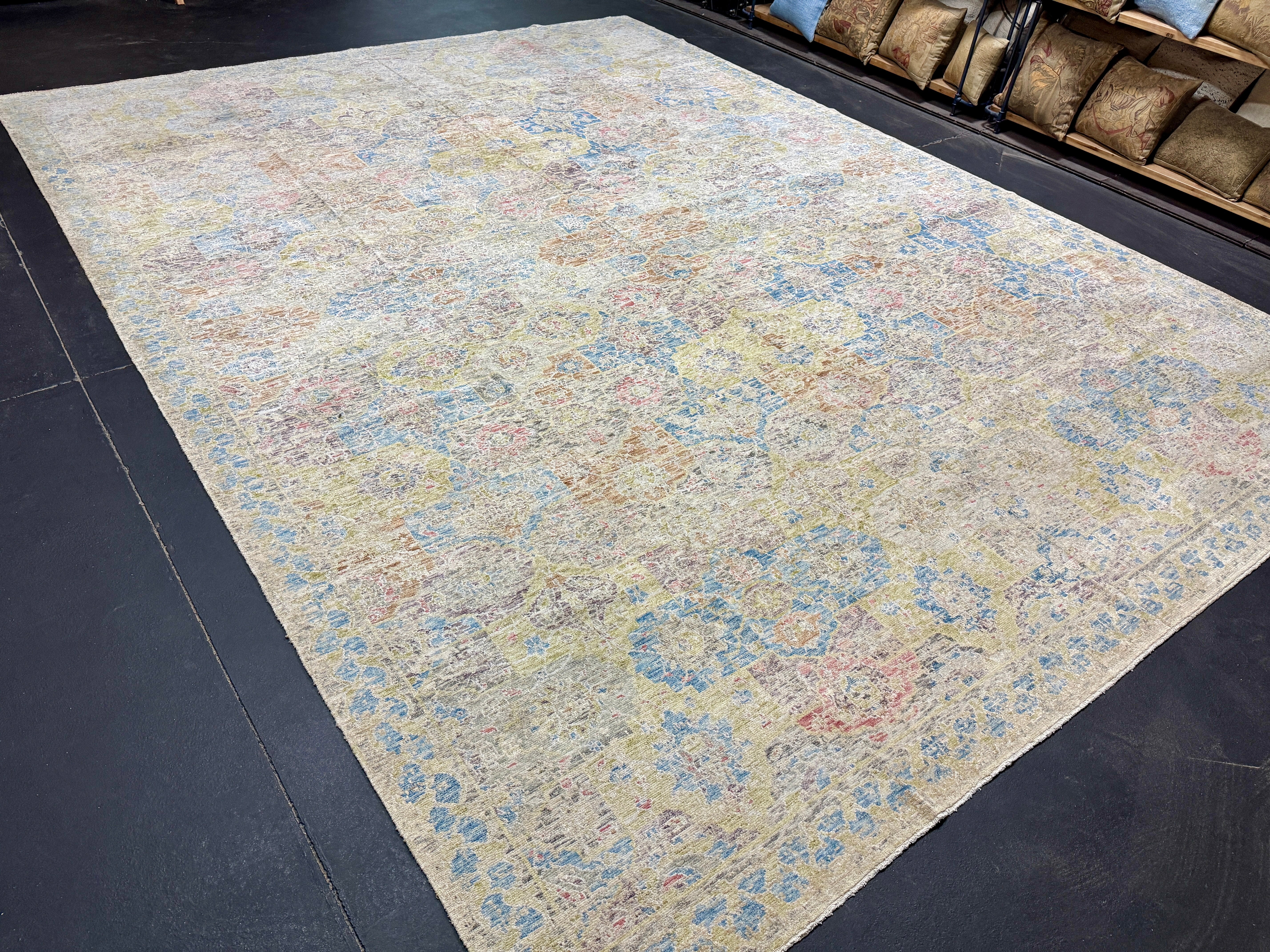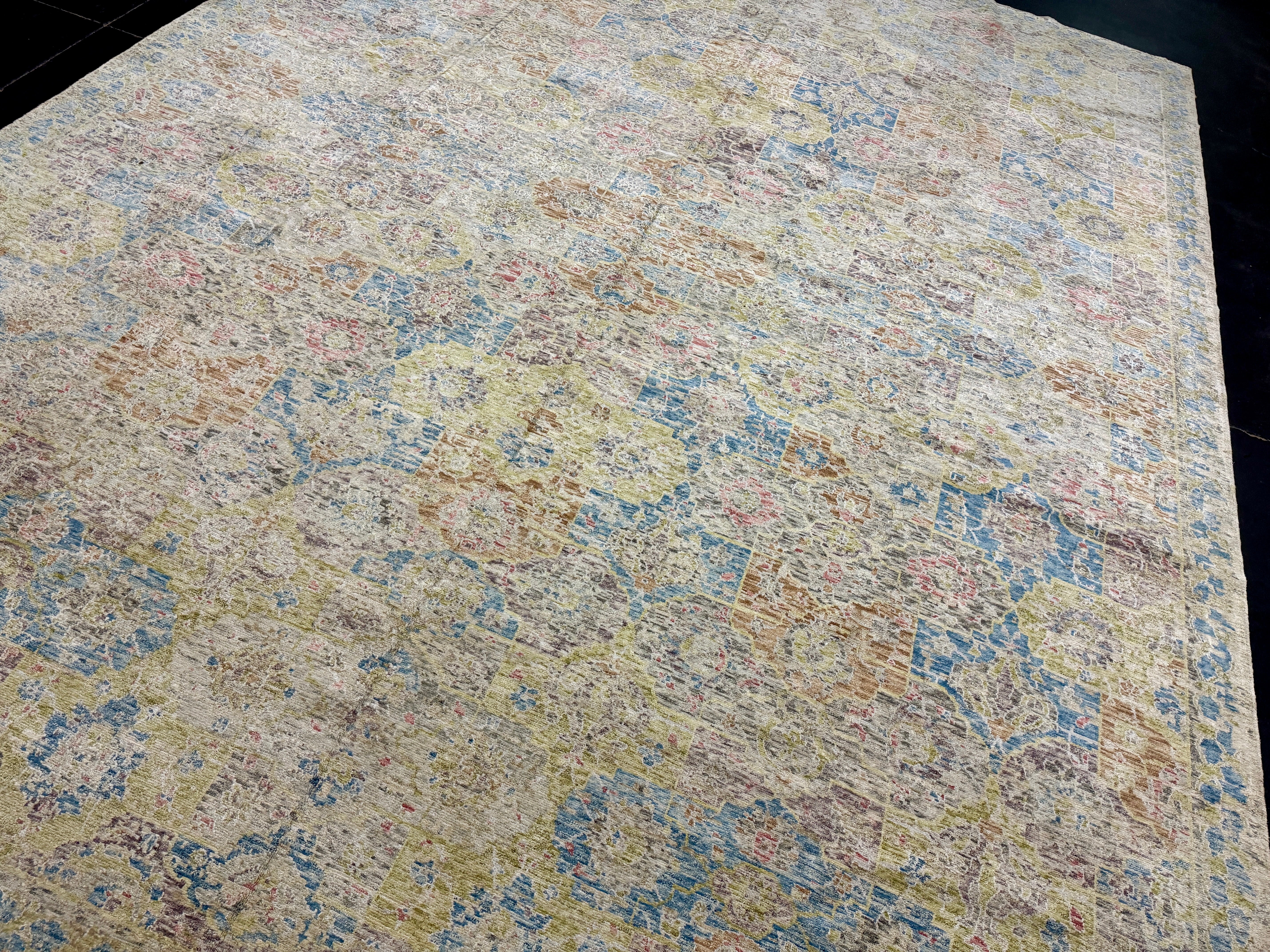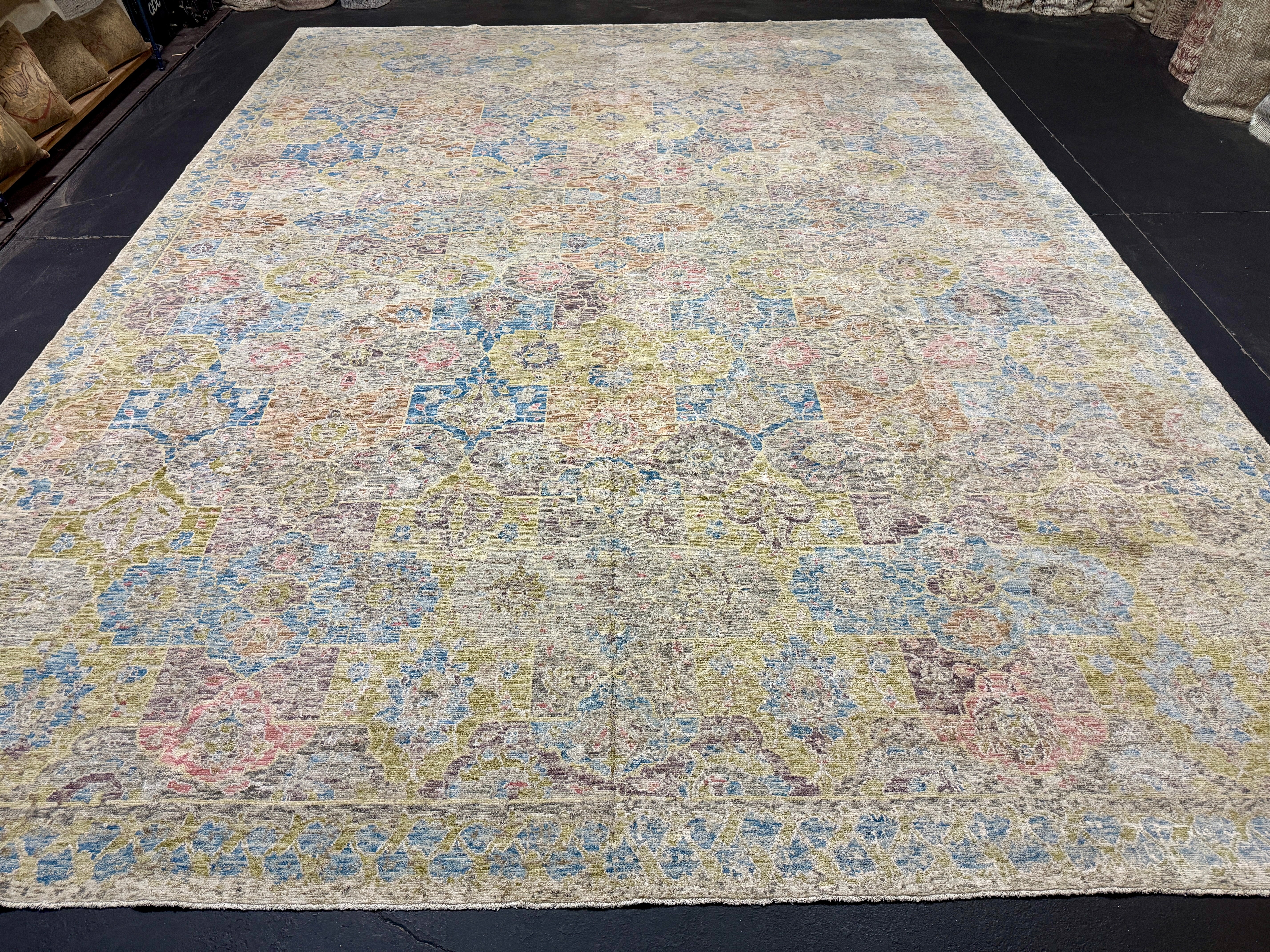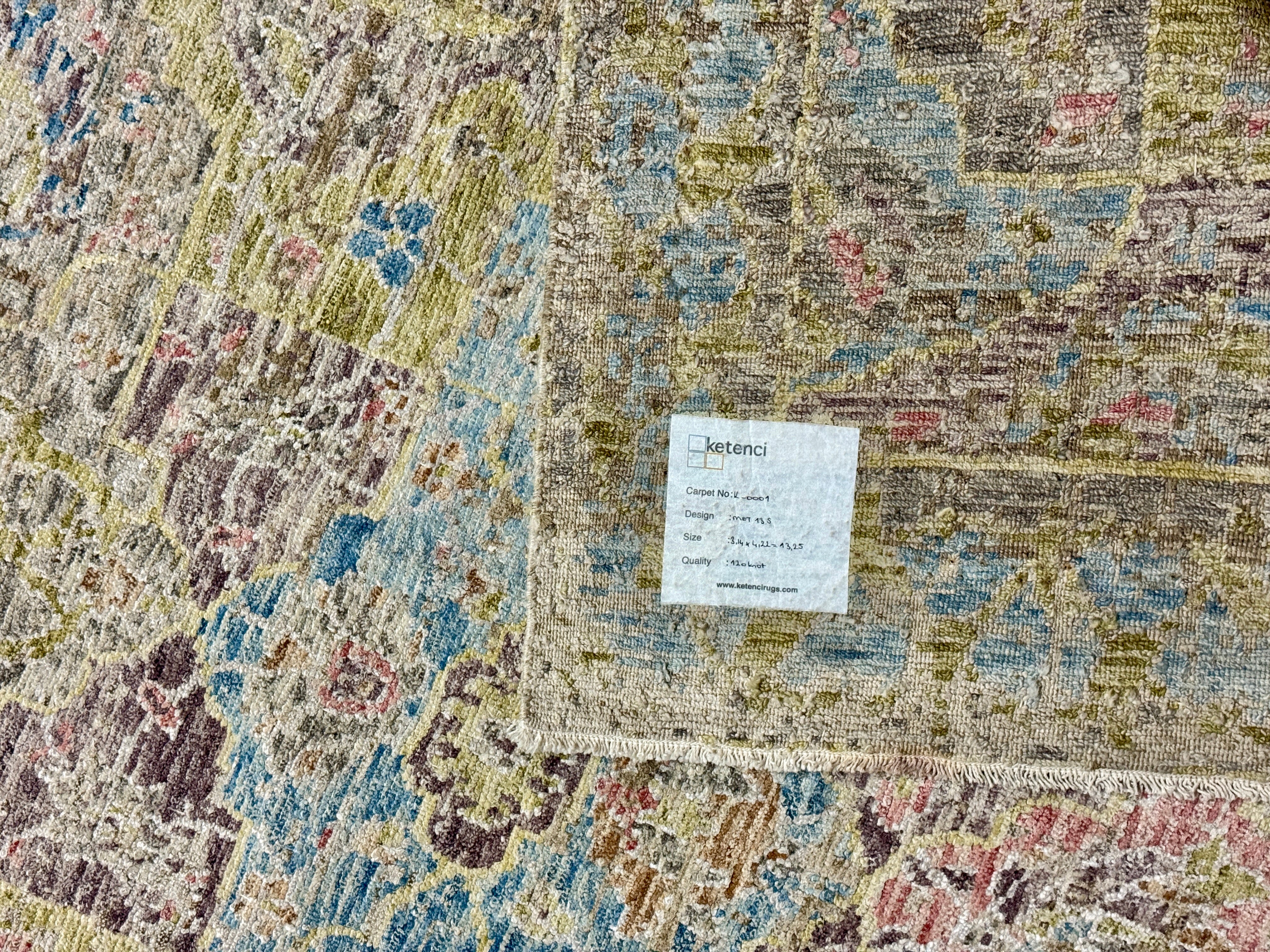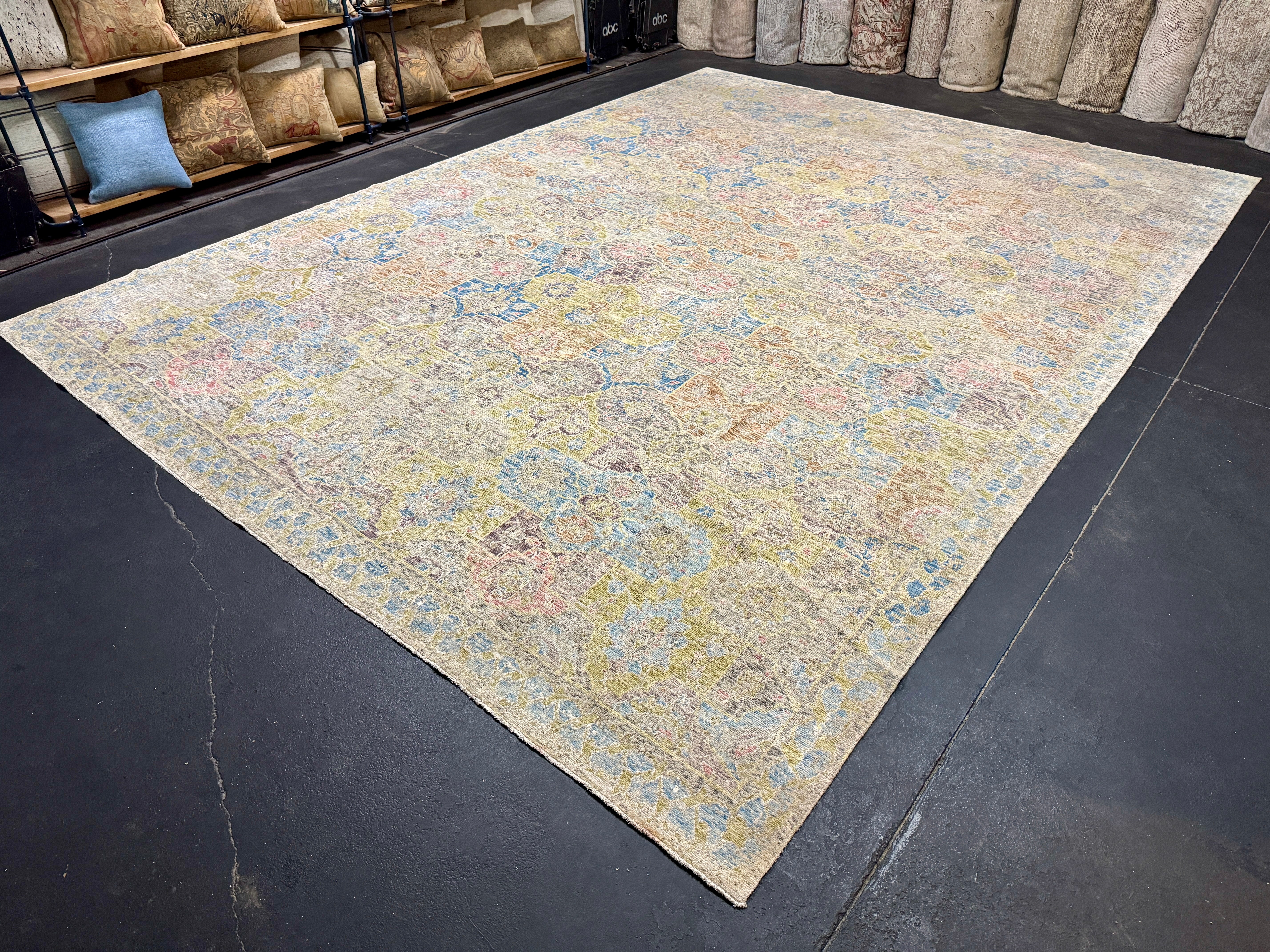 10’3 x 13’10 Silk and Wool Rug Silver, Blue, Chartreuse, Aubergine & Pink K0001