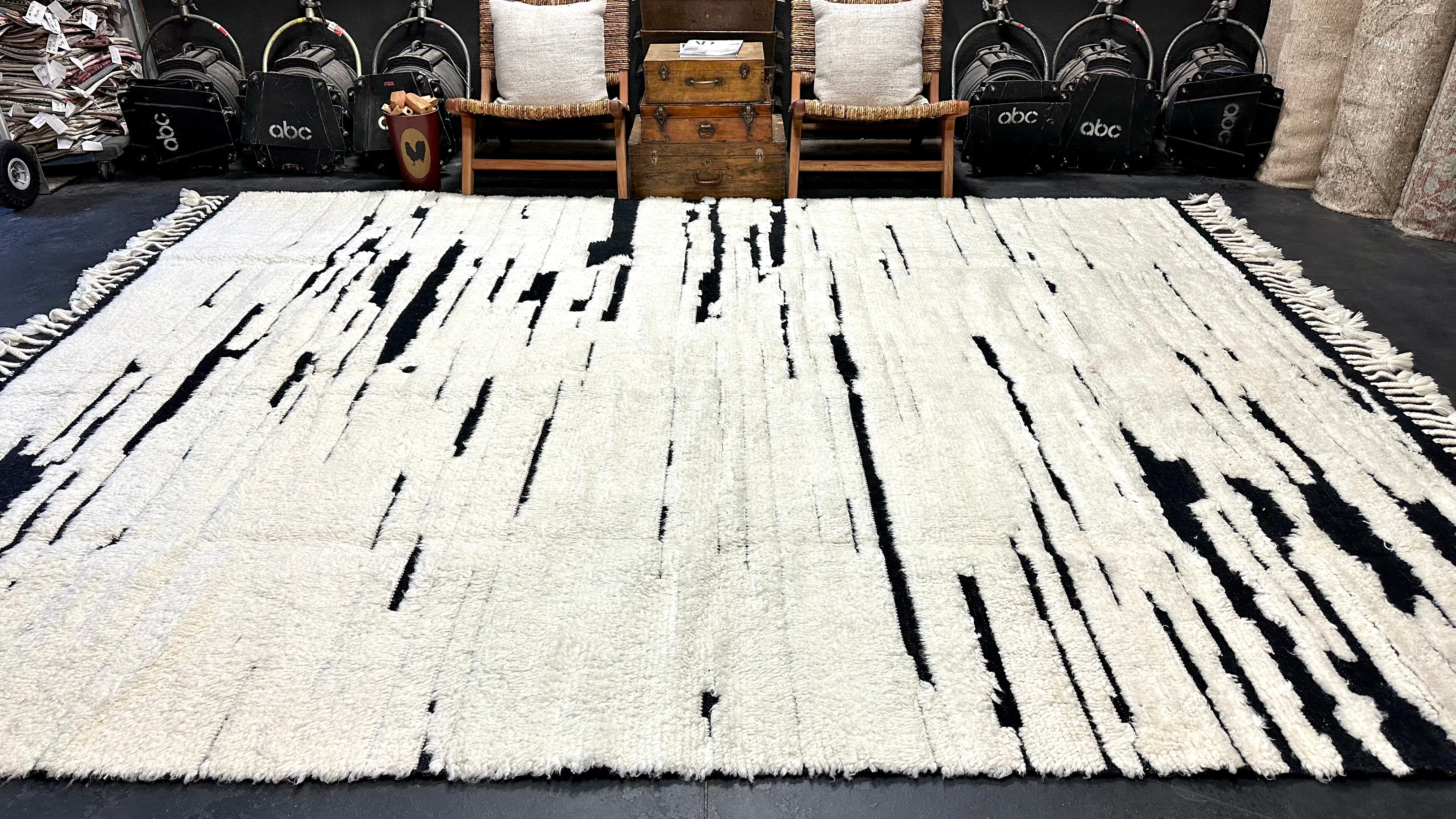 10’4 x 14’ Moroccan Rug Black and White Shag “Ruzgar” Pure Turkish Wool M-3782