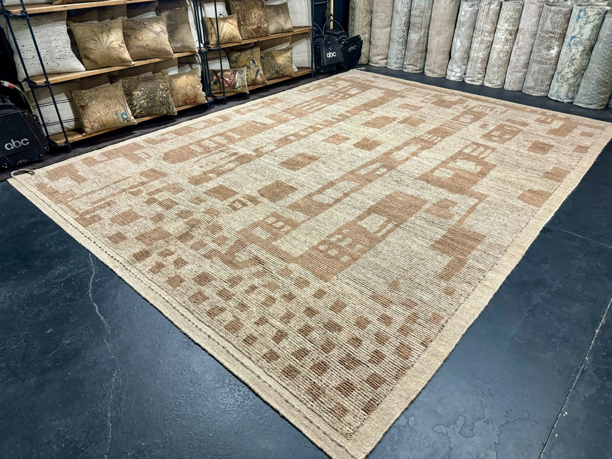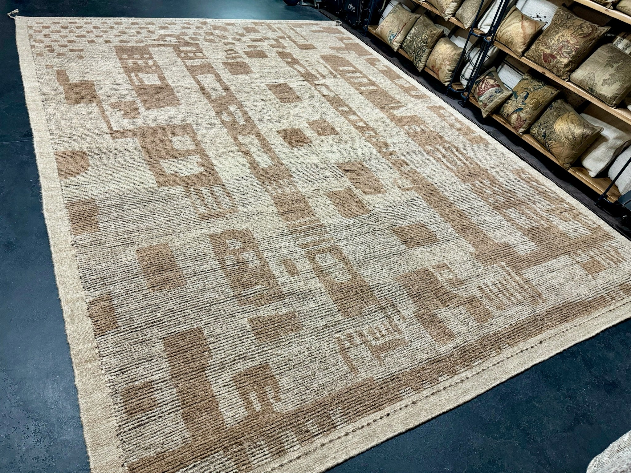 10’5 x 14’2 Moroccan Rug Pure Soft Organic Wool Natural Warm Copper-Beige and Gray-Beige MK4291