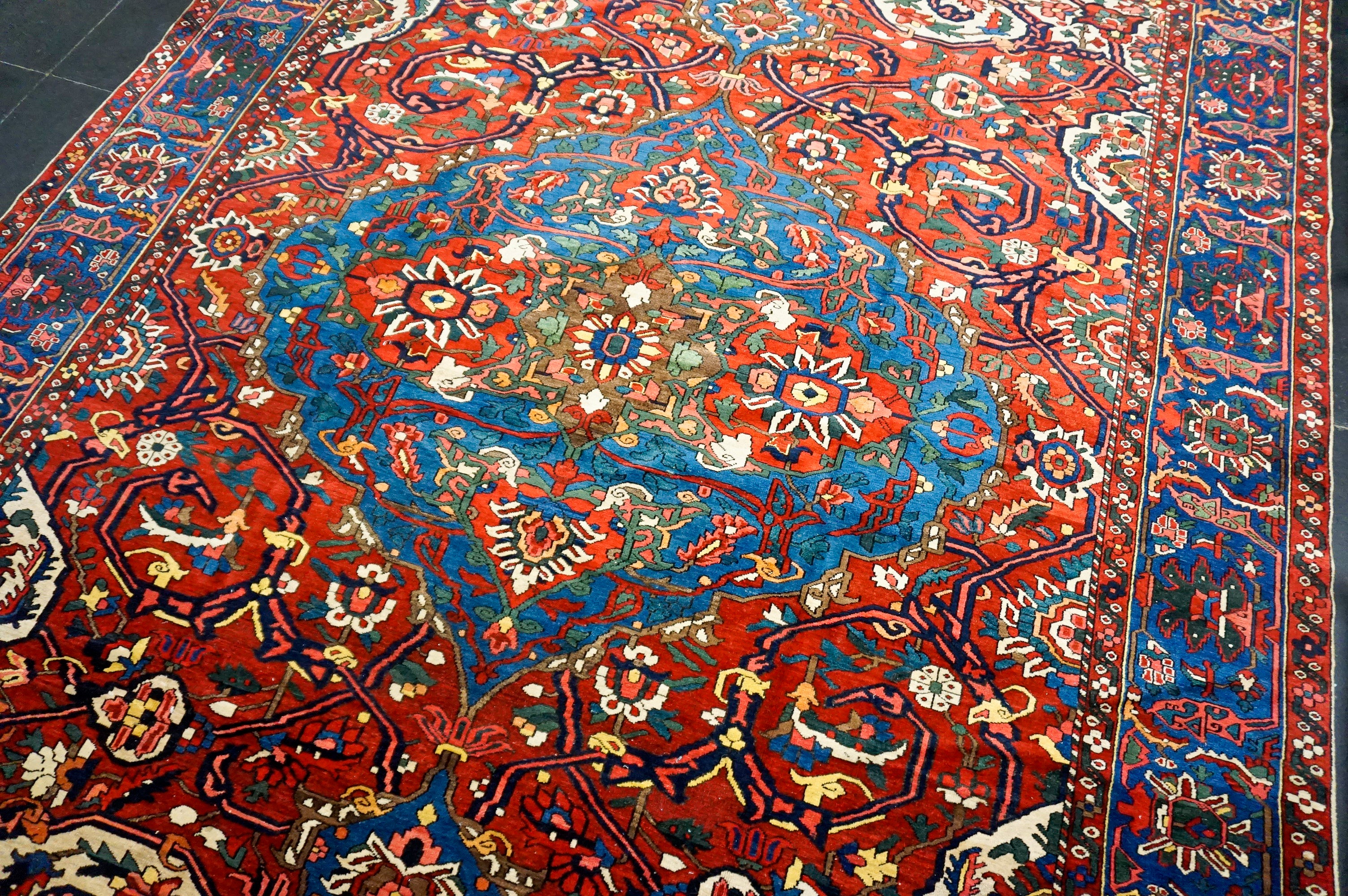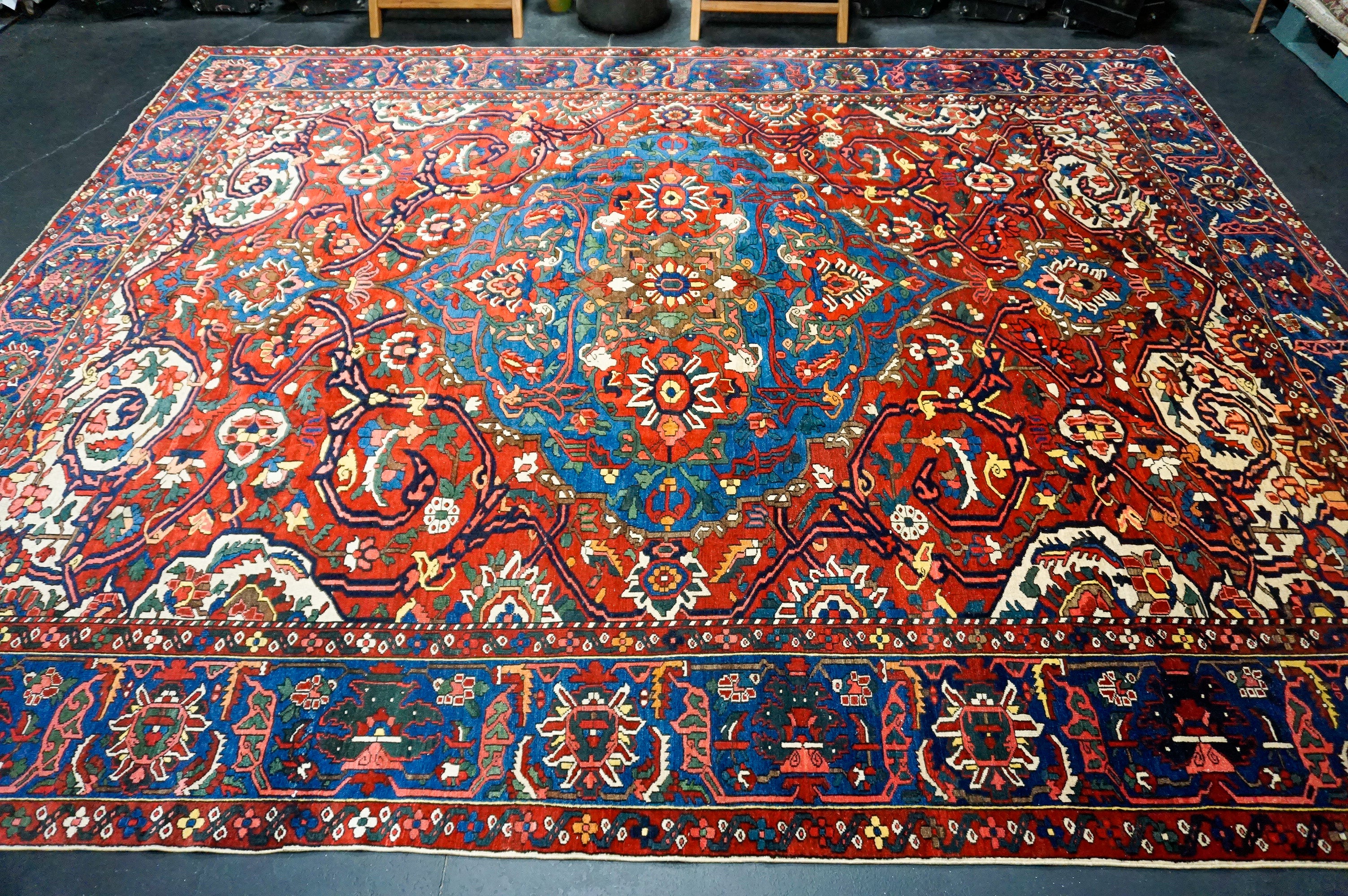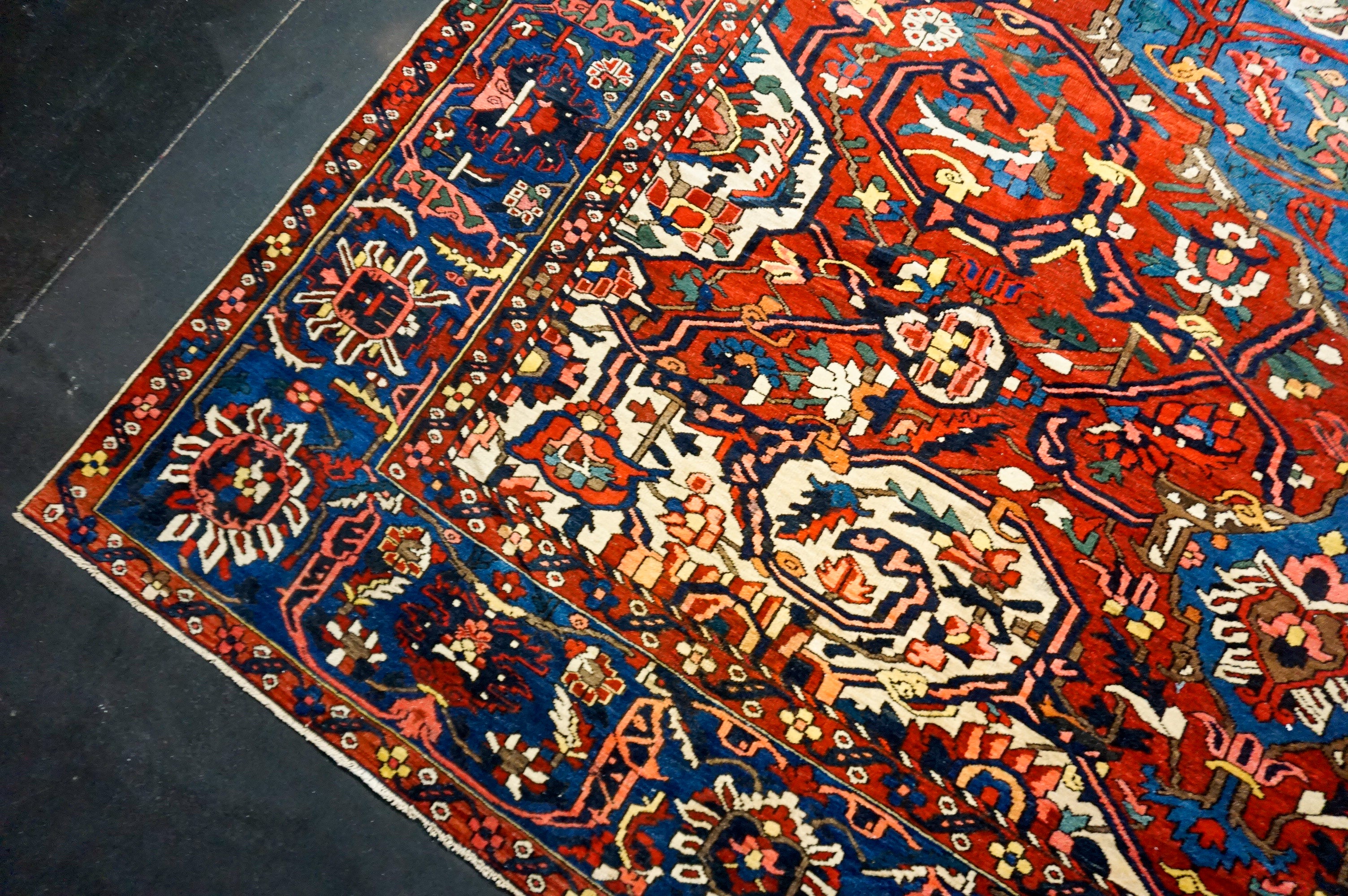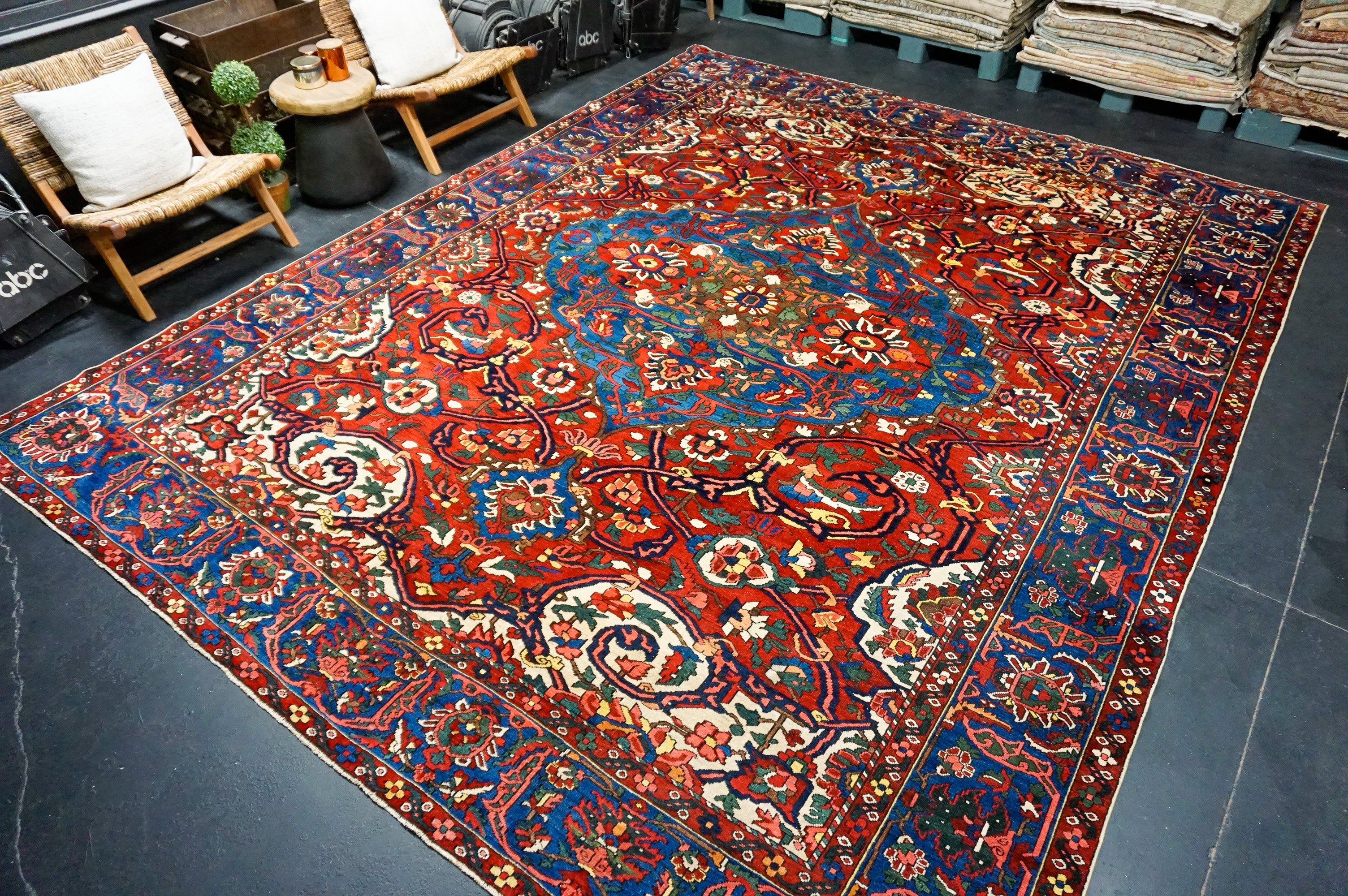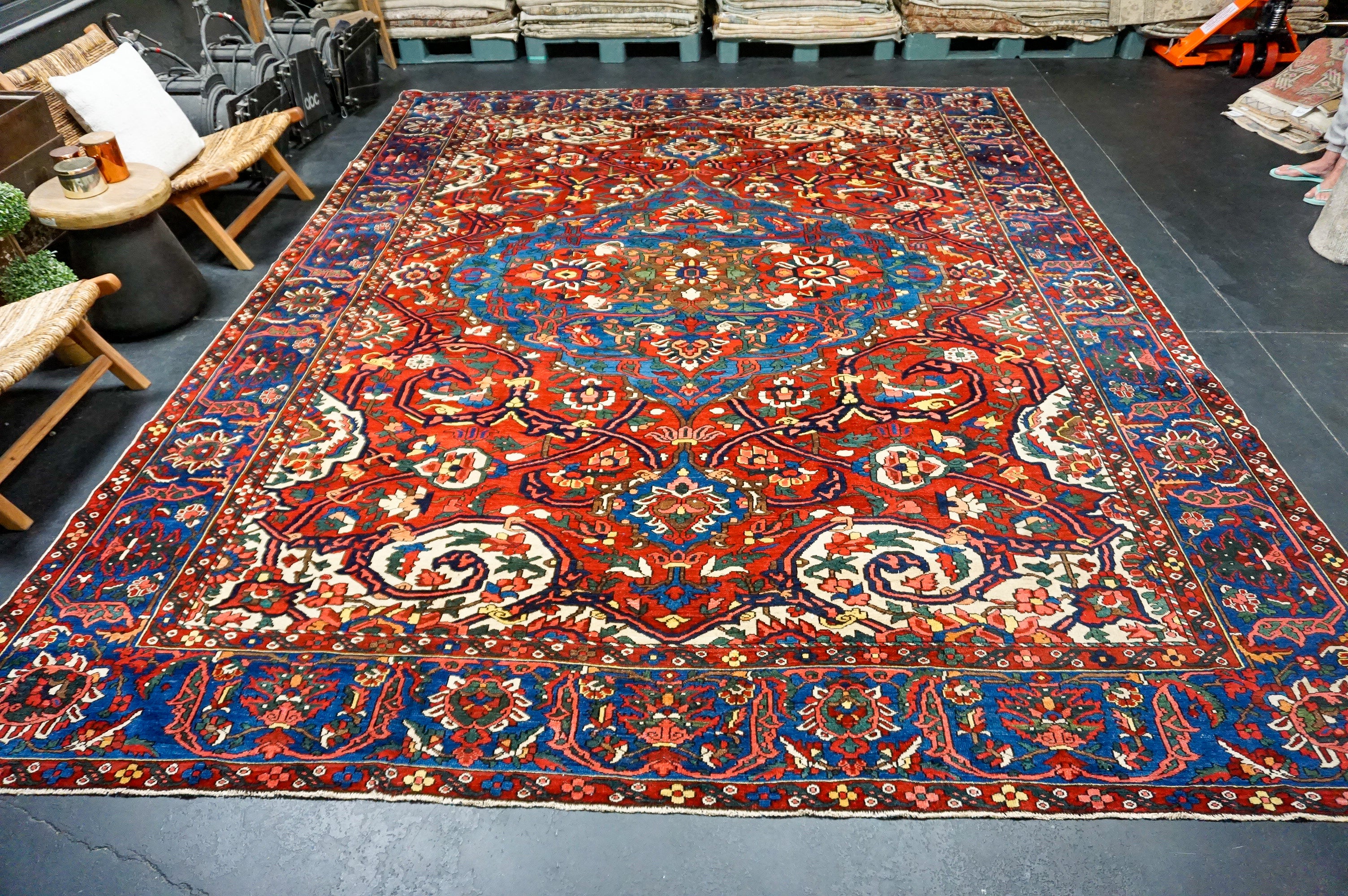 This is a classic antique Bahktiari rug circa 1930’s...it is handmade with pure wool and has a velvety feel. Just perfect for the library