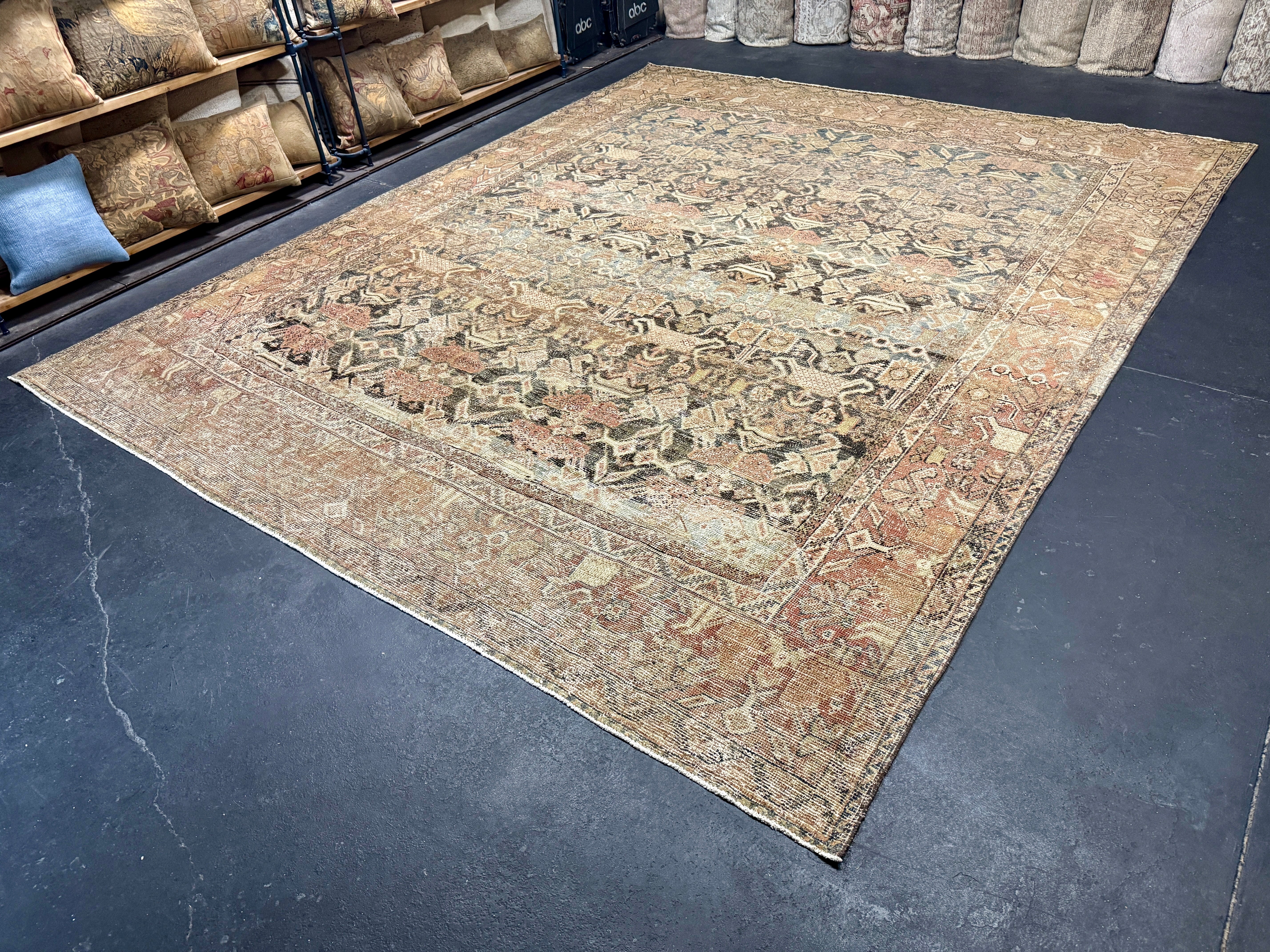 10’ x 12’ Classic Antique Carpet Muted Black, Rust & Gray 5769