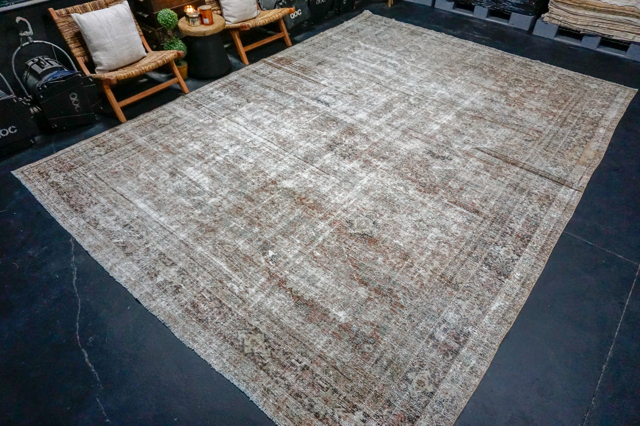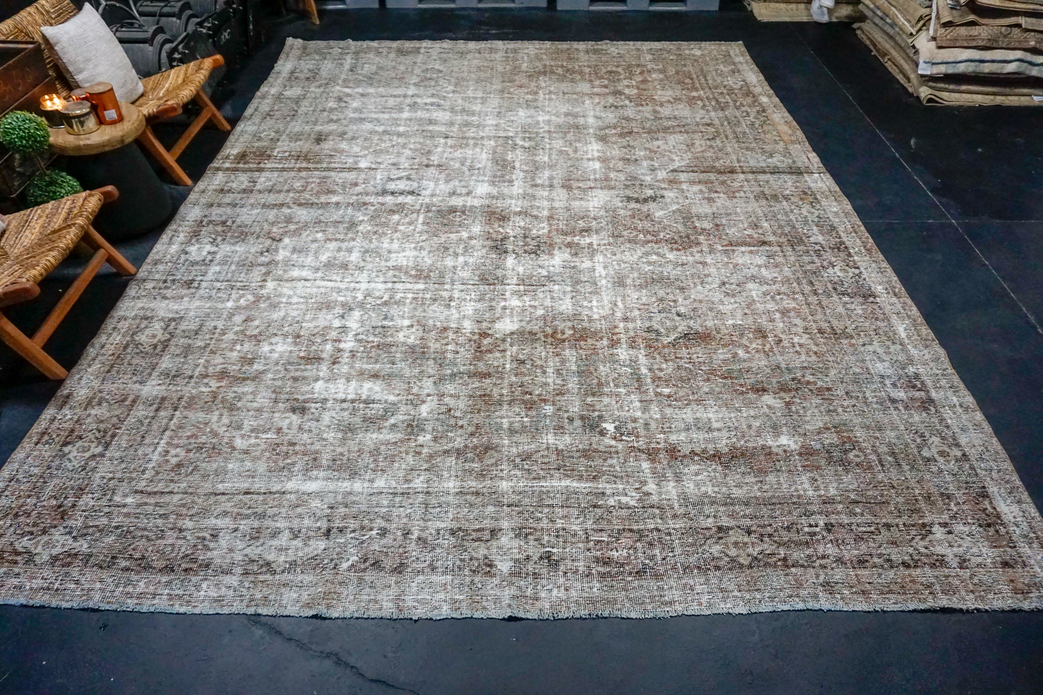 Restoration is the process to turn a vintage rug into a pristine, repaired, blocked and stretched work of art. All of our professionally restored pieces are immaculately clean and ready for your home.