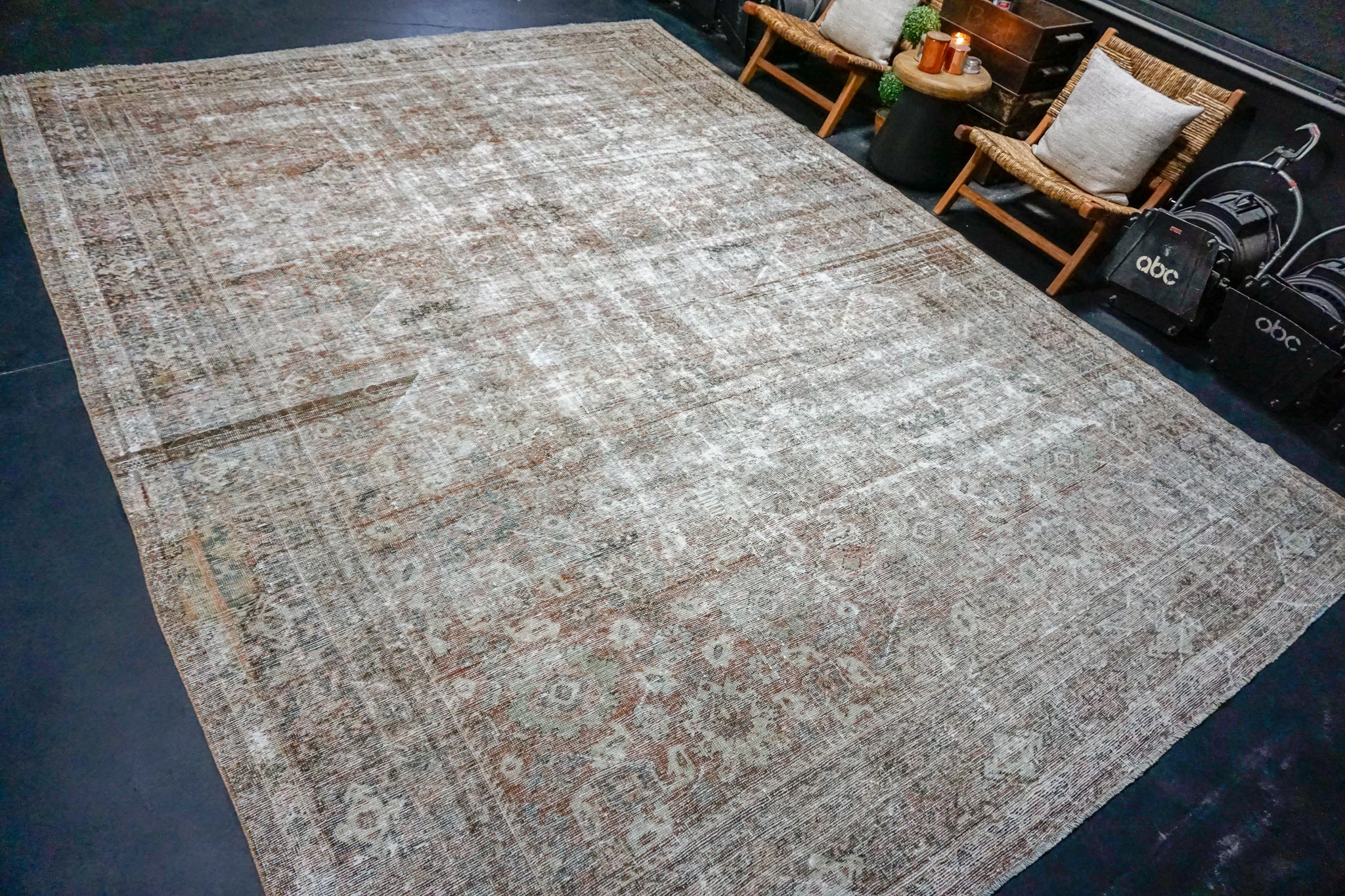 10’ x 13’7 Classic Vintage Rug Muted Black, Rust, Gray + Slate SB '4479