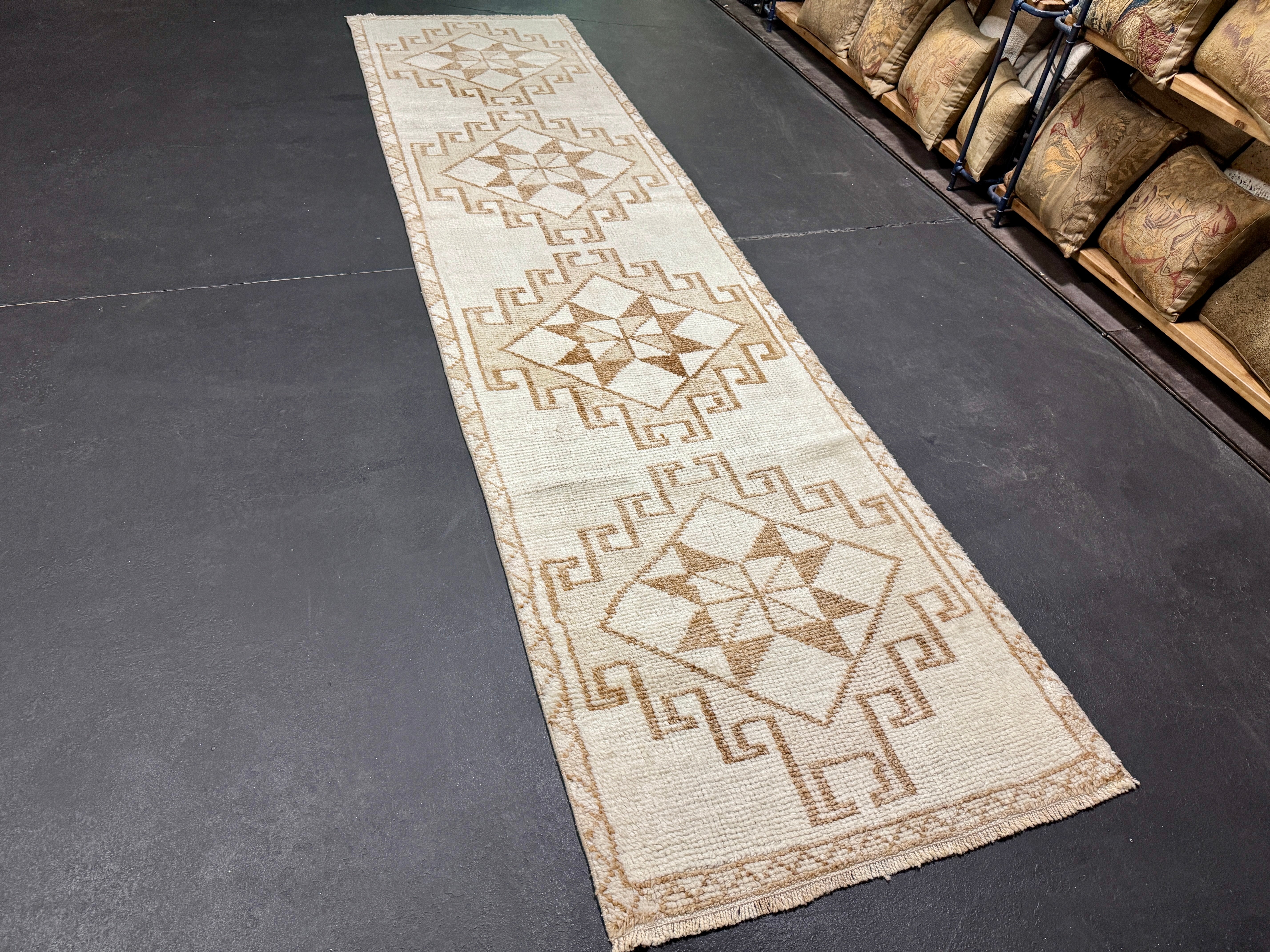 2’10 x 11’6 Vintage Herki Runner Cream, Beige & Light Brown 5519