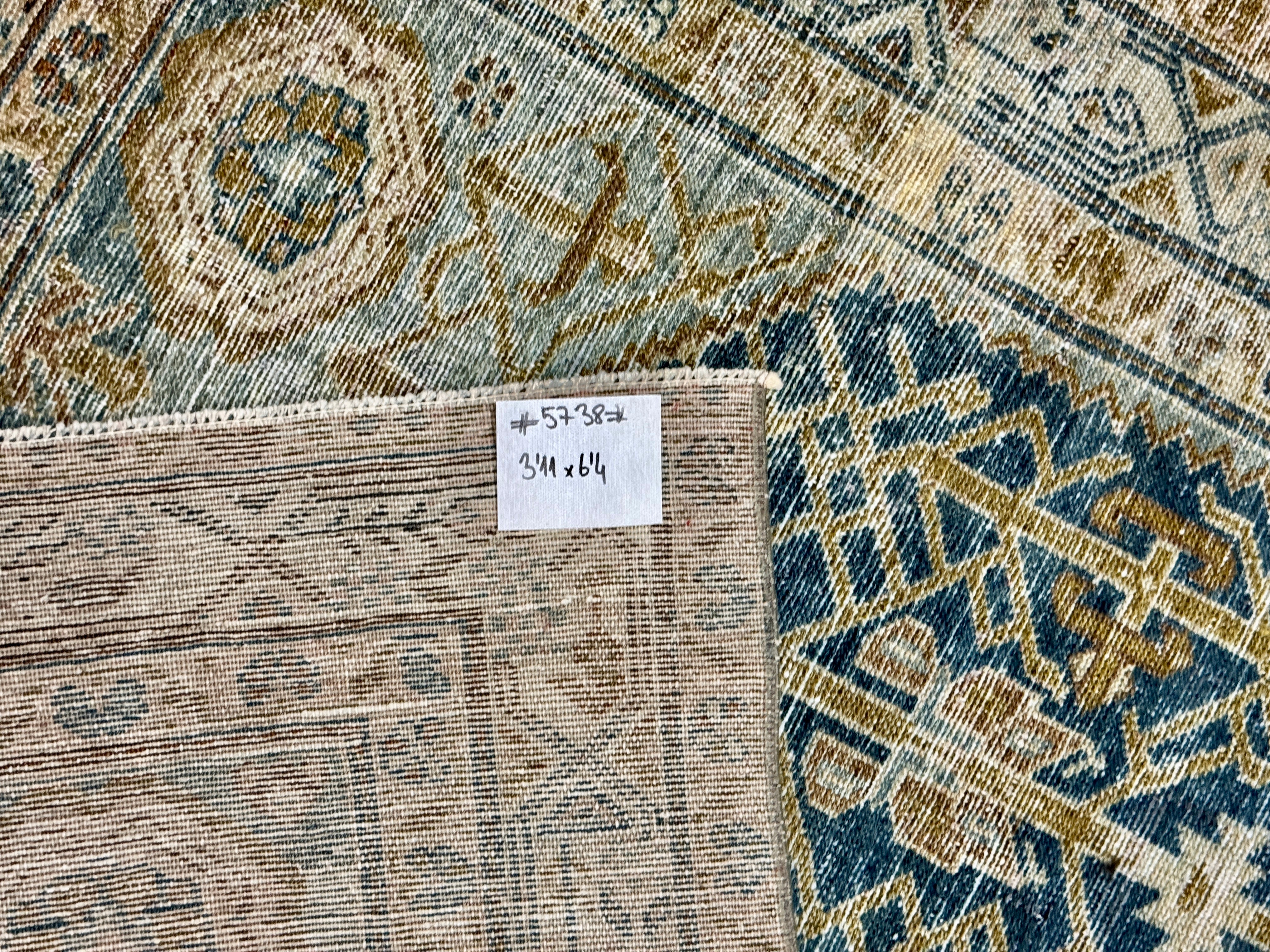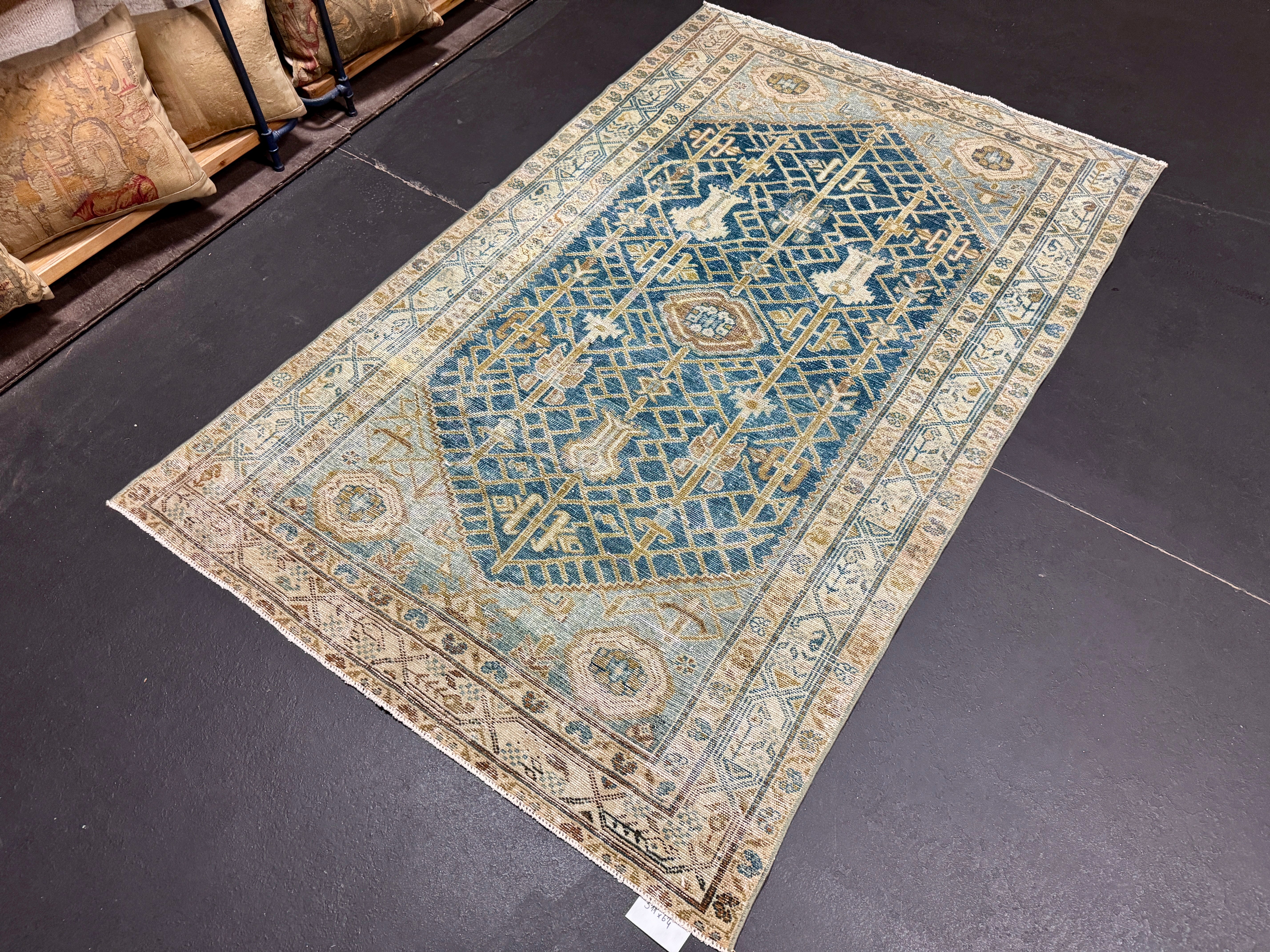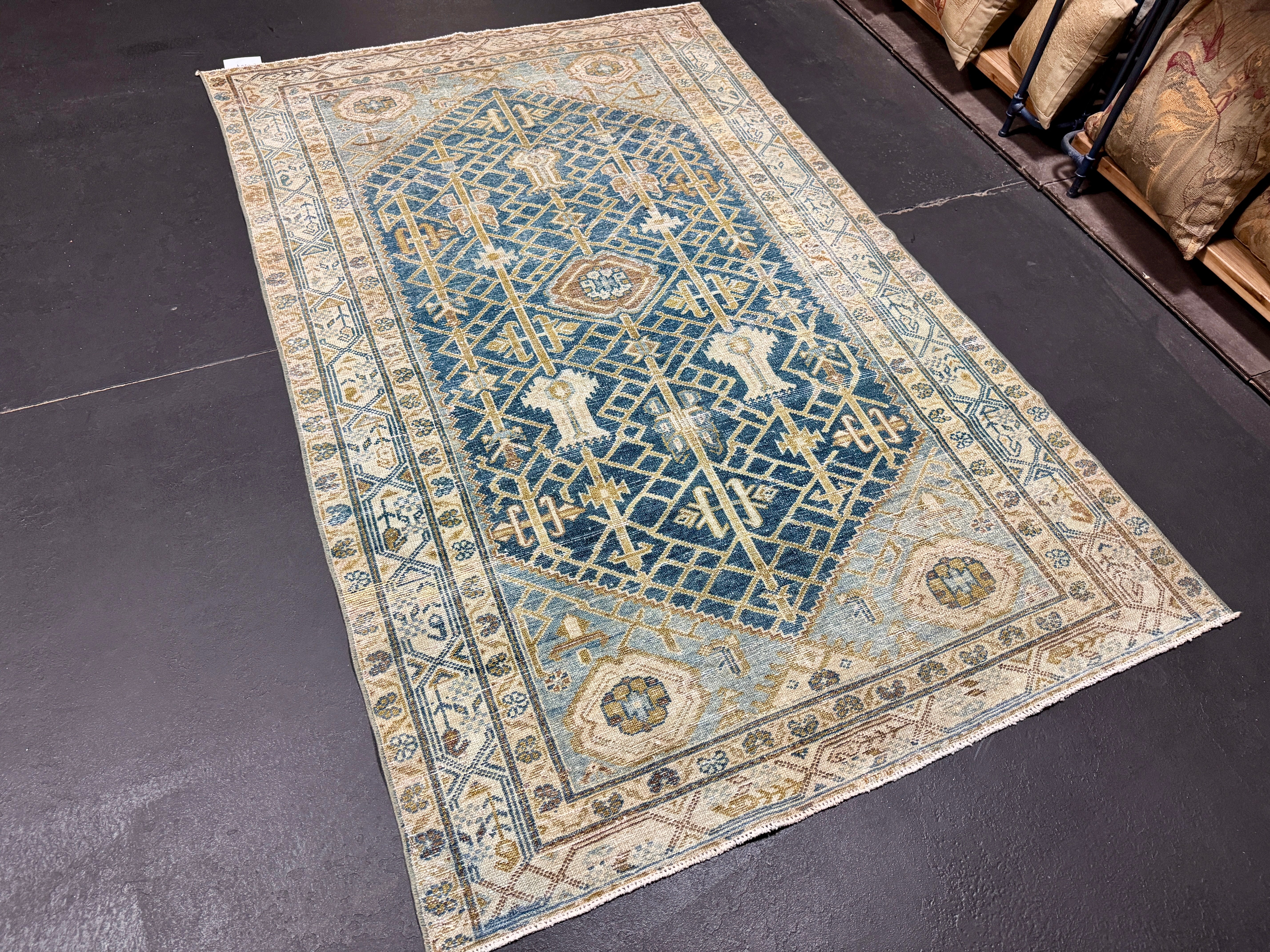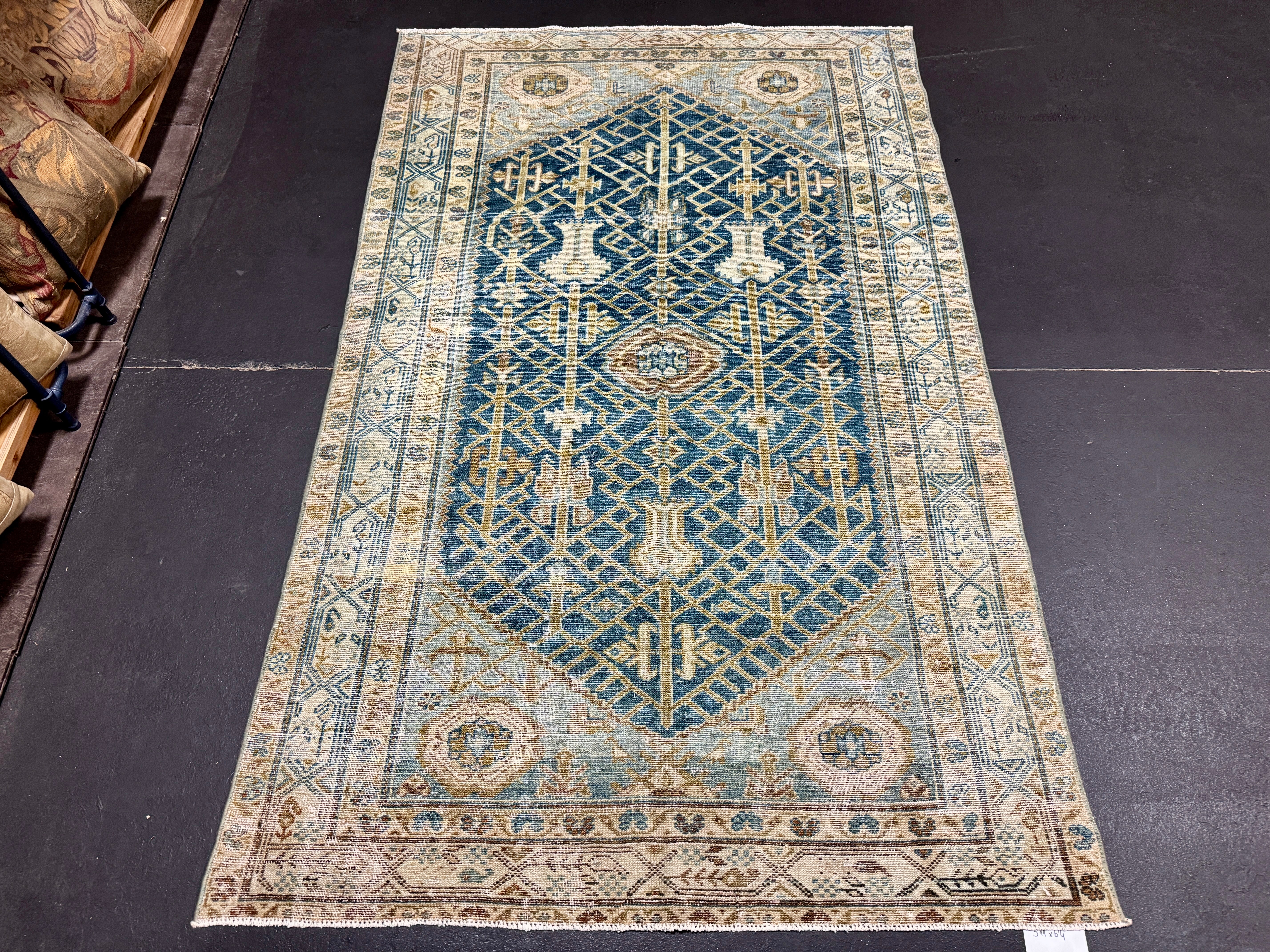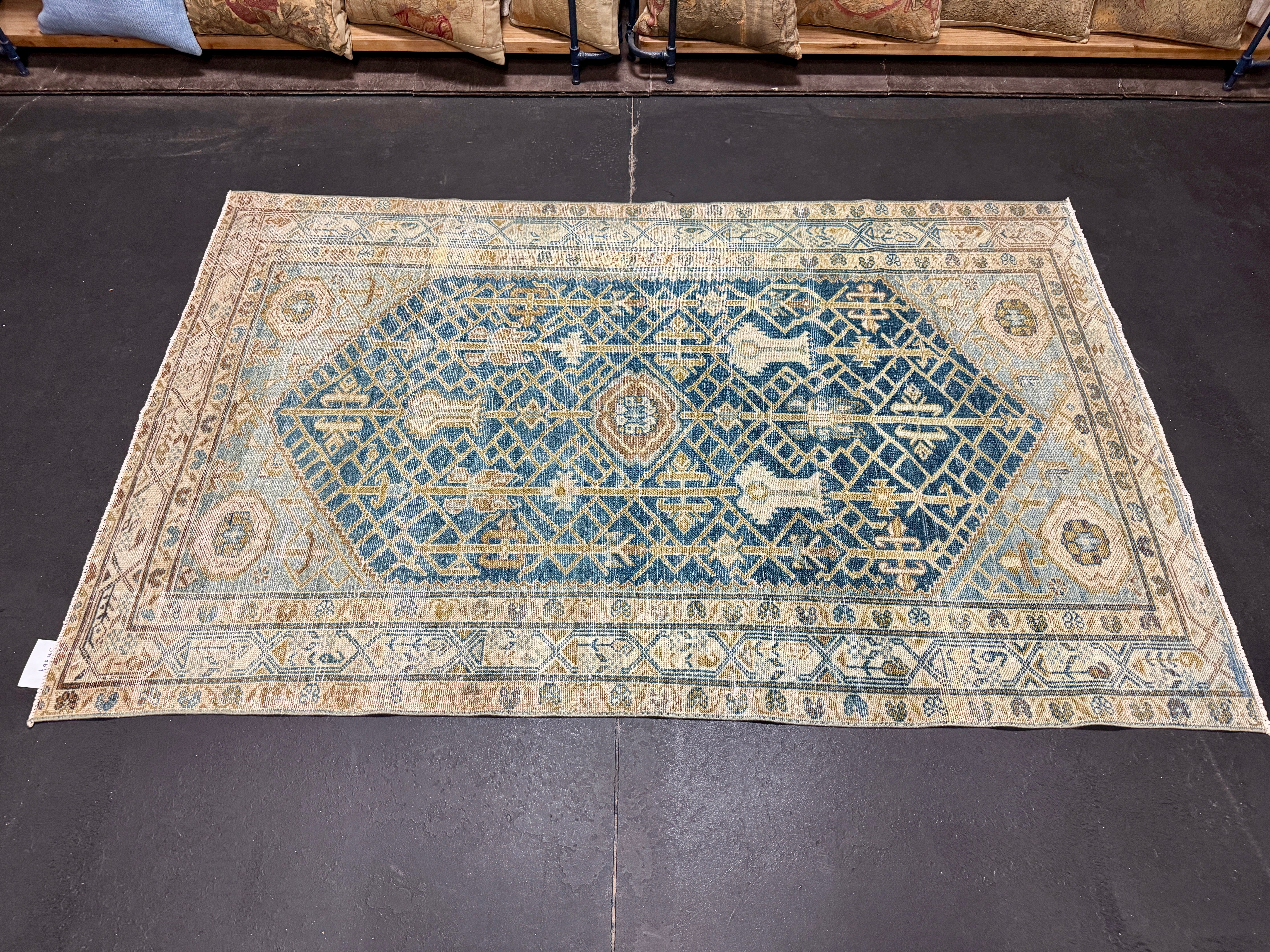 3’11 x 6’4 Classic Vintage Rug Denim Blue, Bronze and Ivory 5738