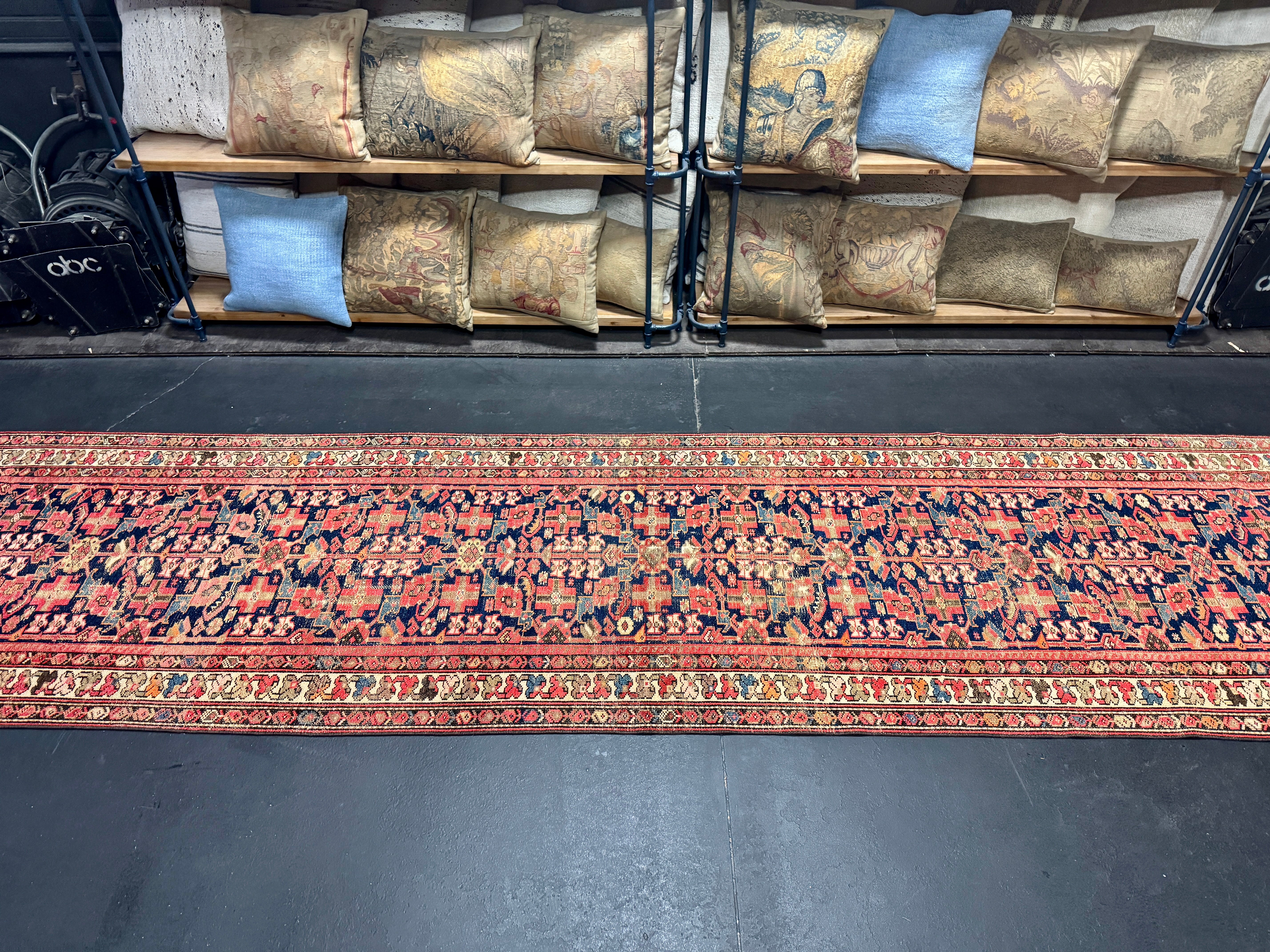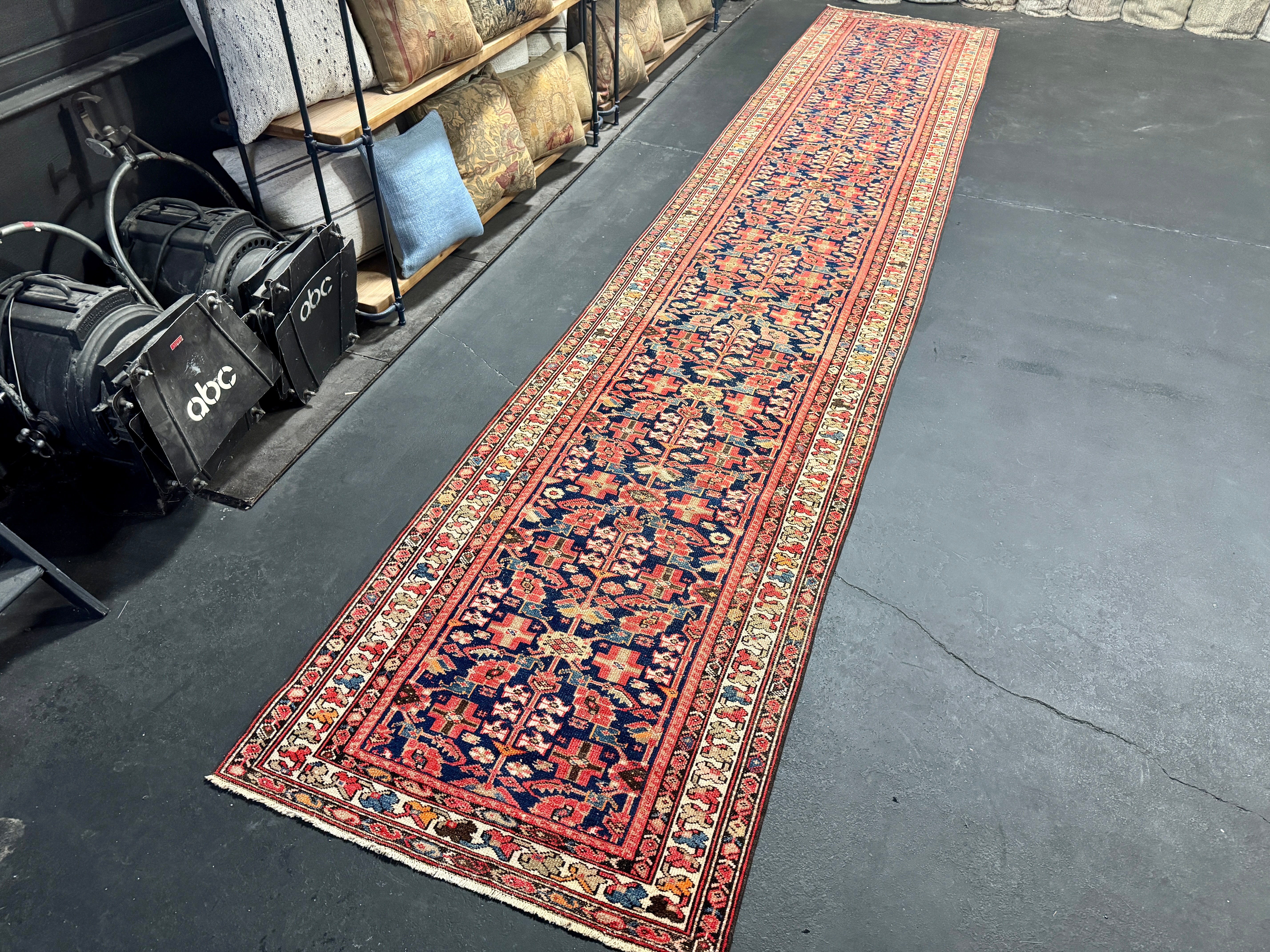 3’2 x 16’11 Classic Antique Runner Muted Red, Blue & Cream 5763