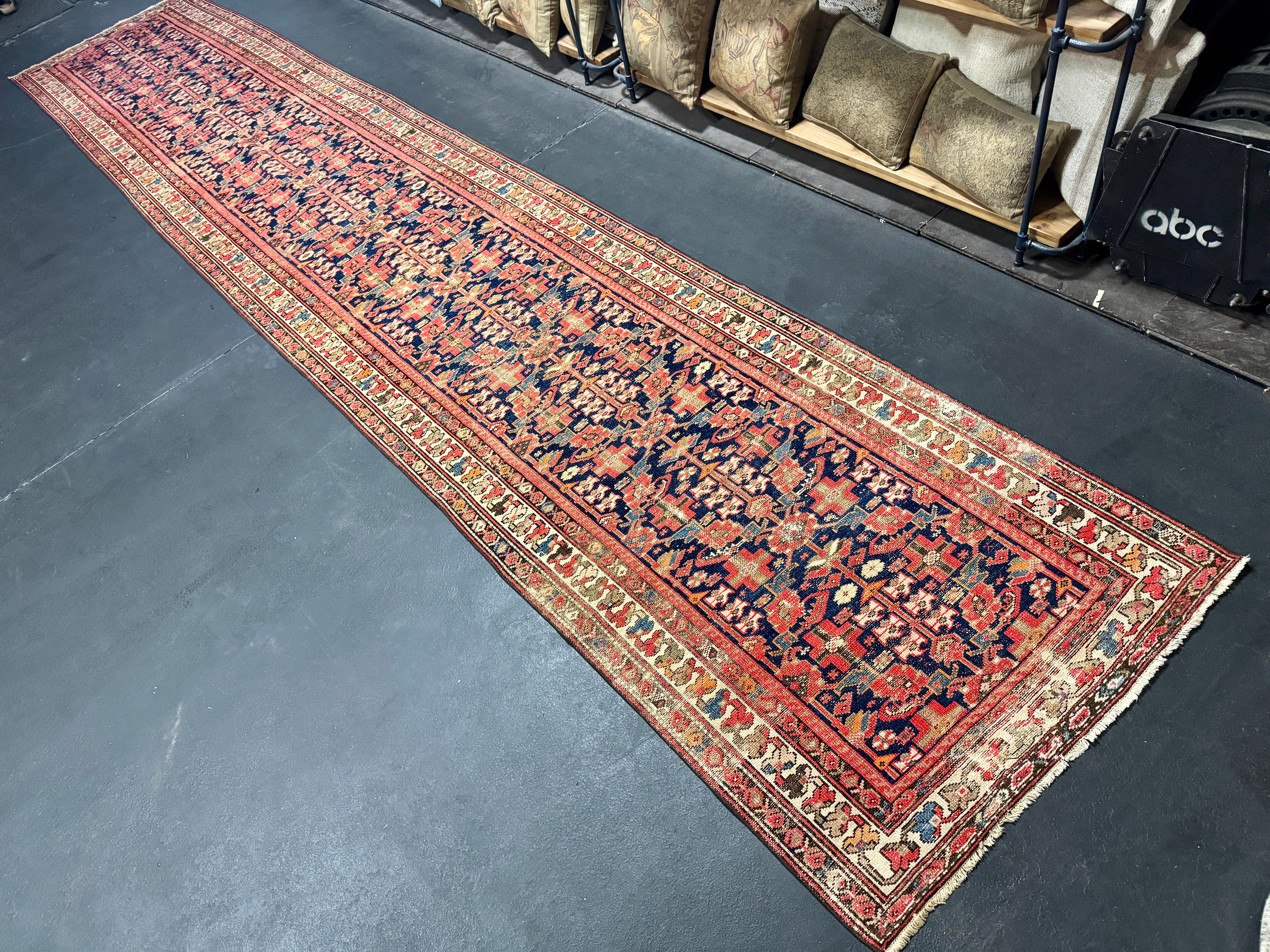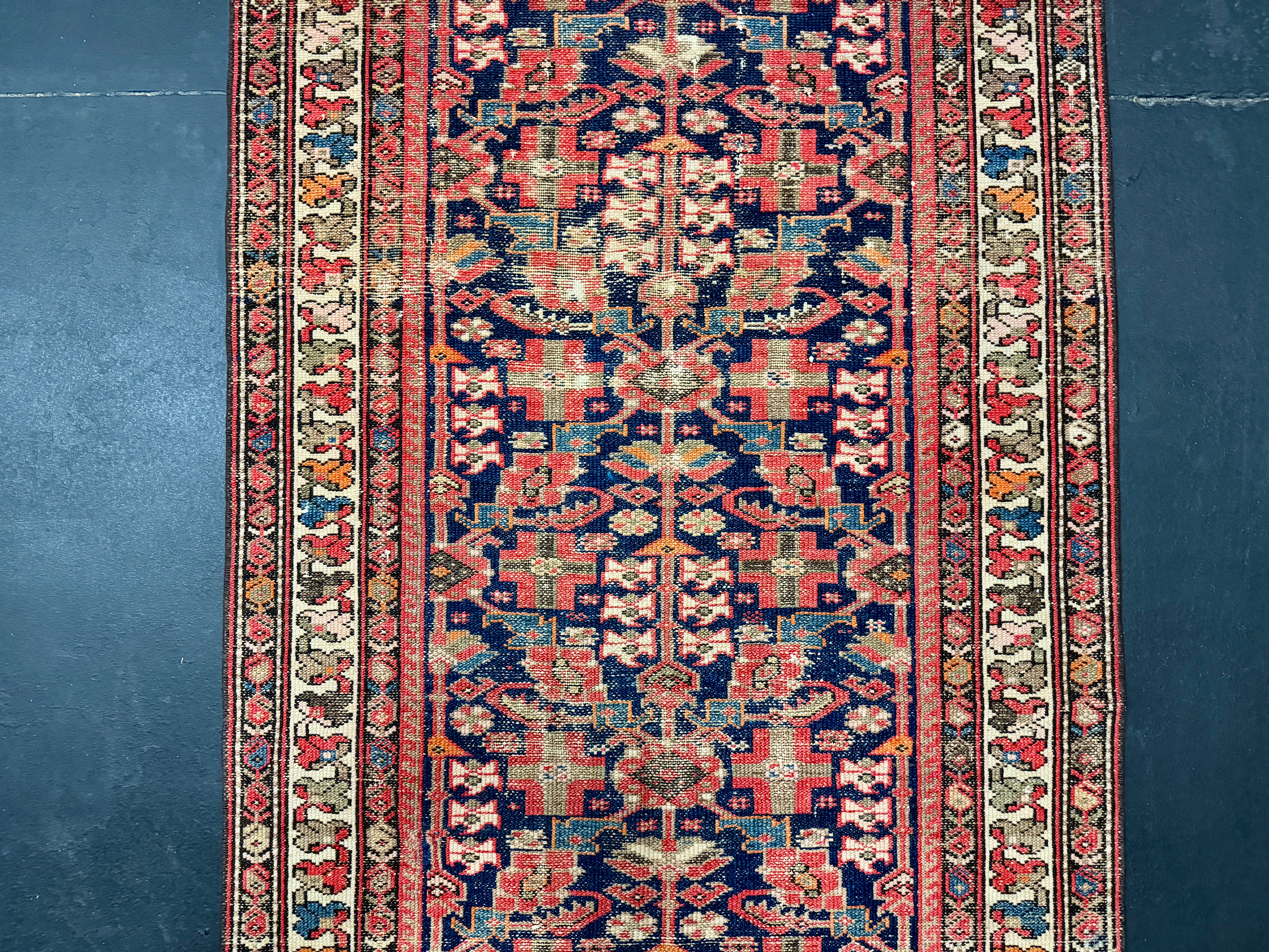 This classic antique Persian Malayer runner is handmade using pure hand spun wool.