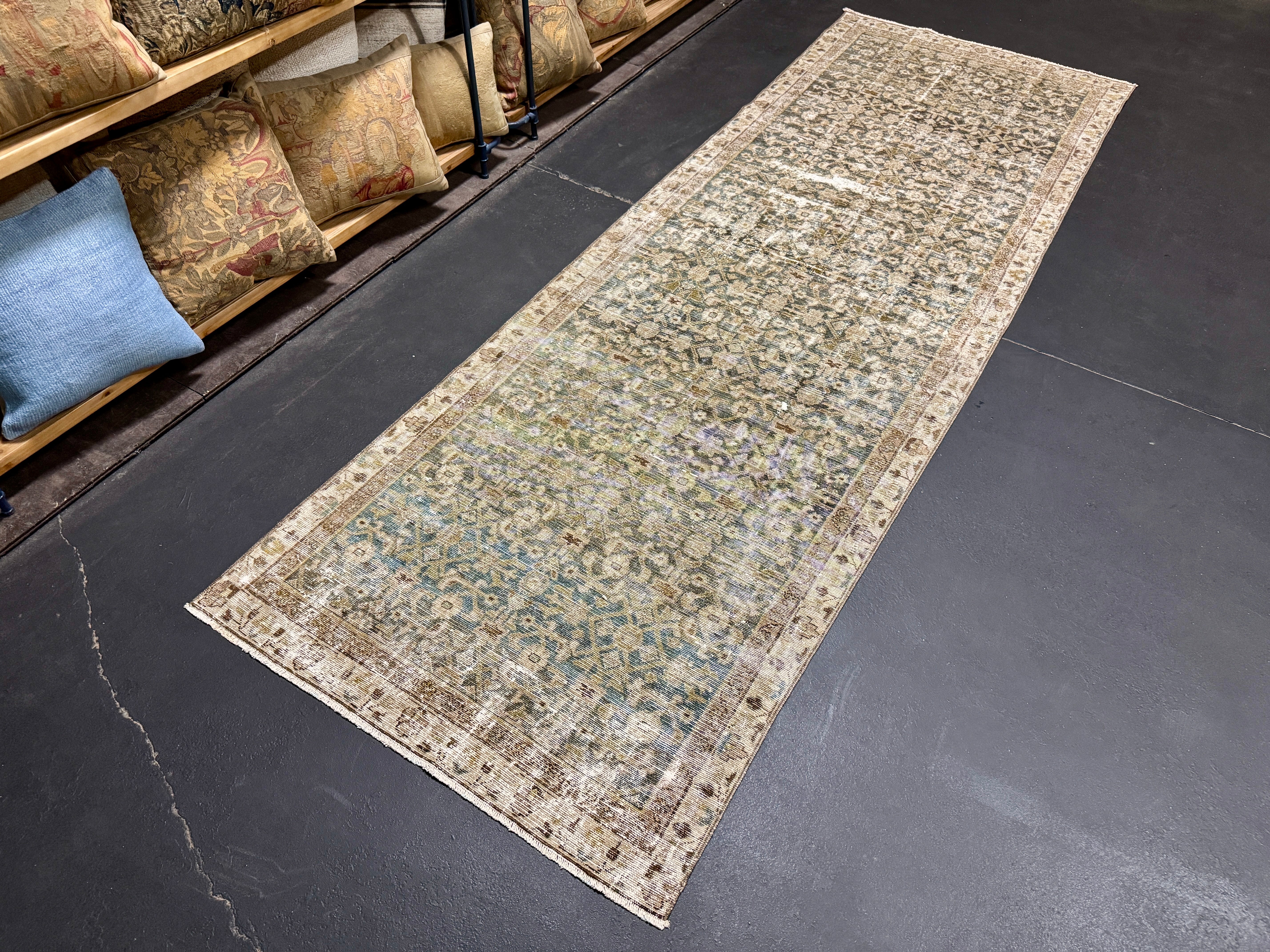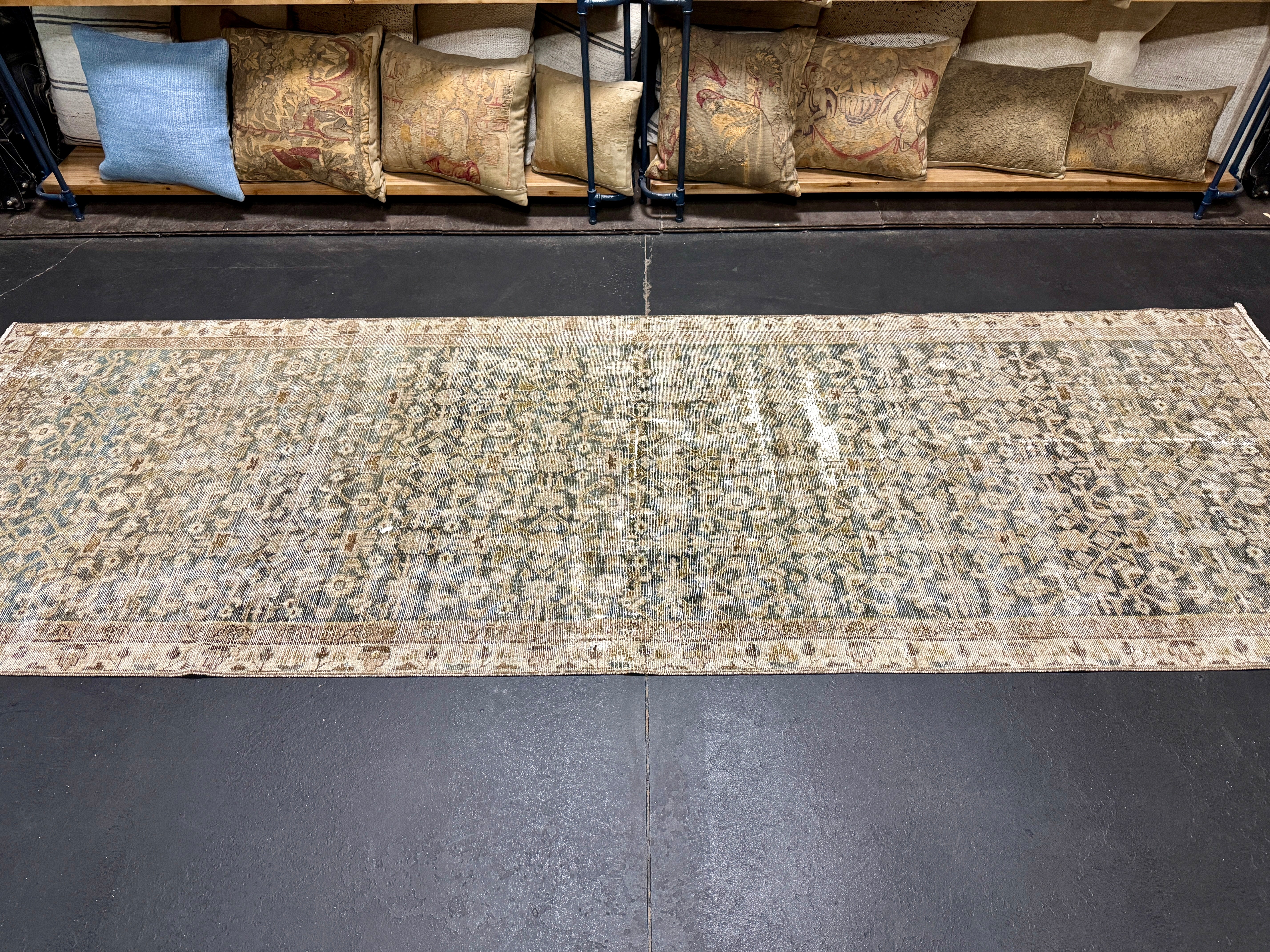 Restoration is the process to turn a vintage rug into a pristine, repaired, blocked and stretched work of art. All of our professionally restored pieces are immaculately clean and ready for your home.