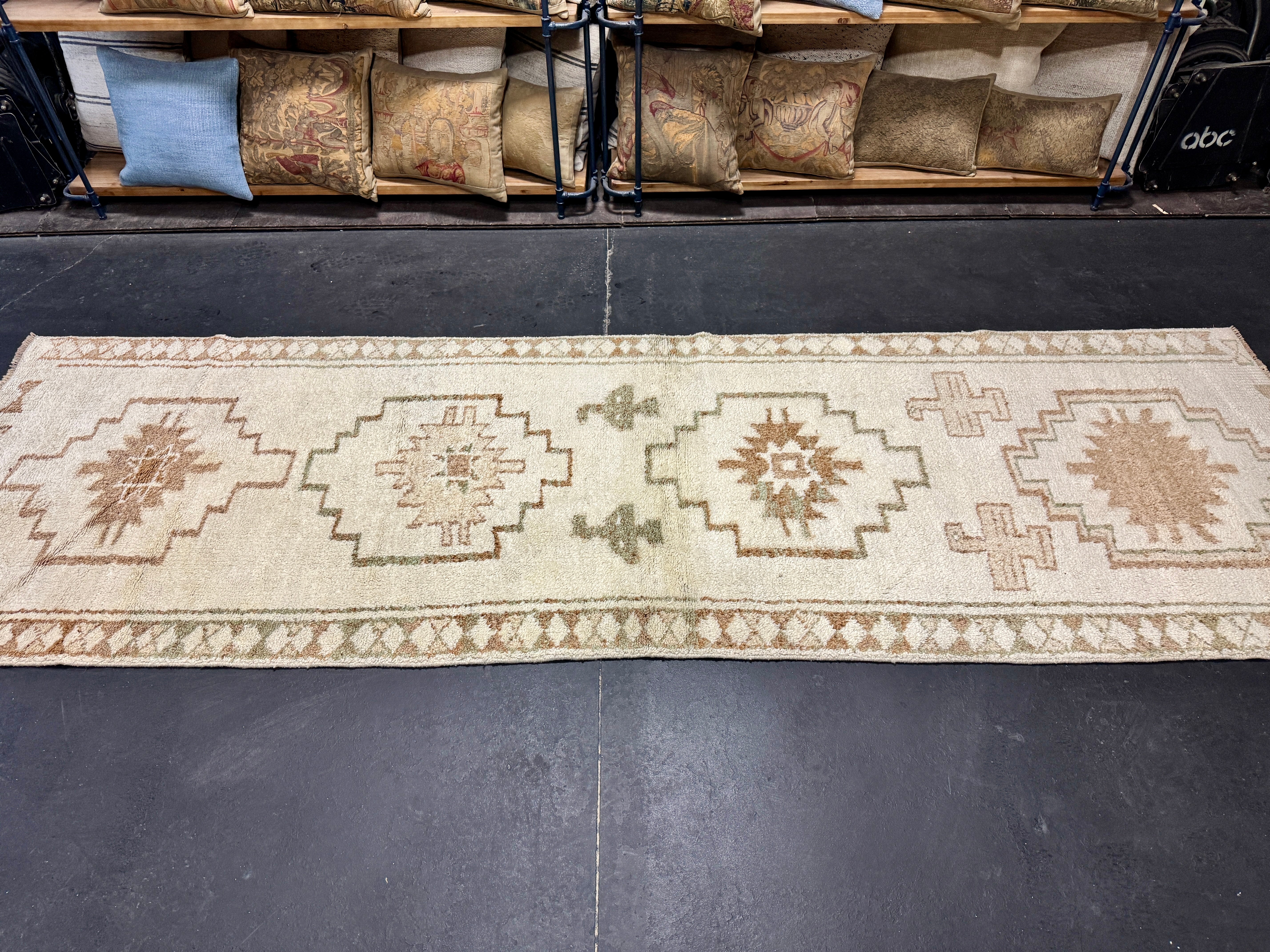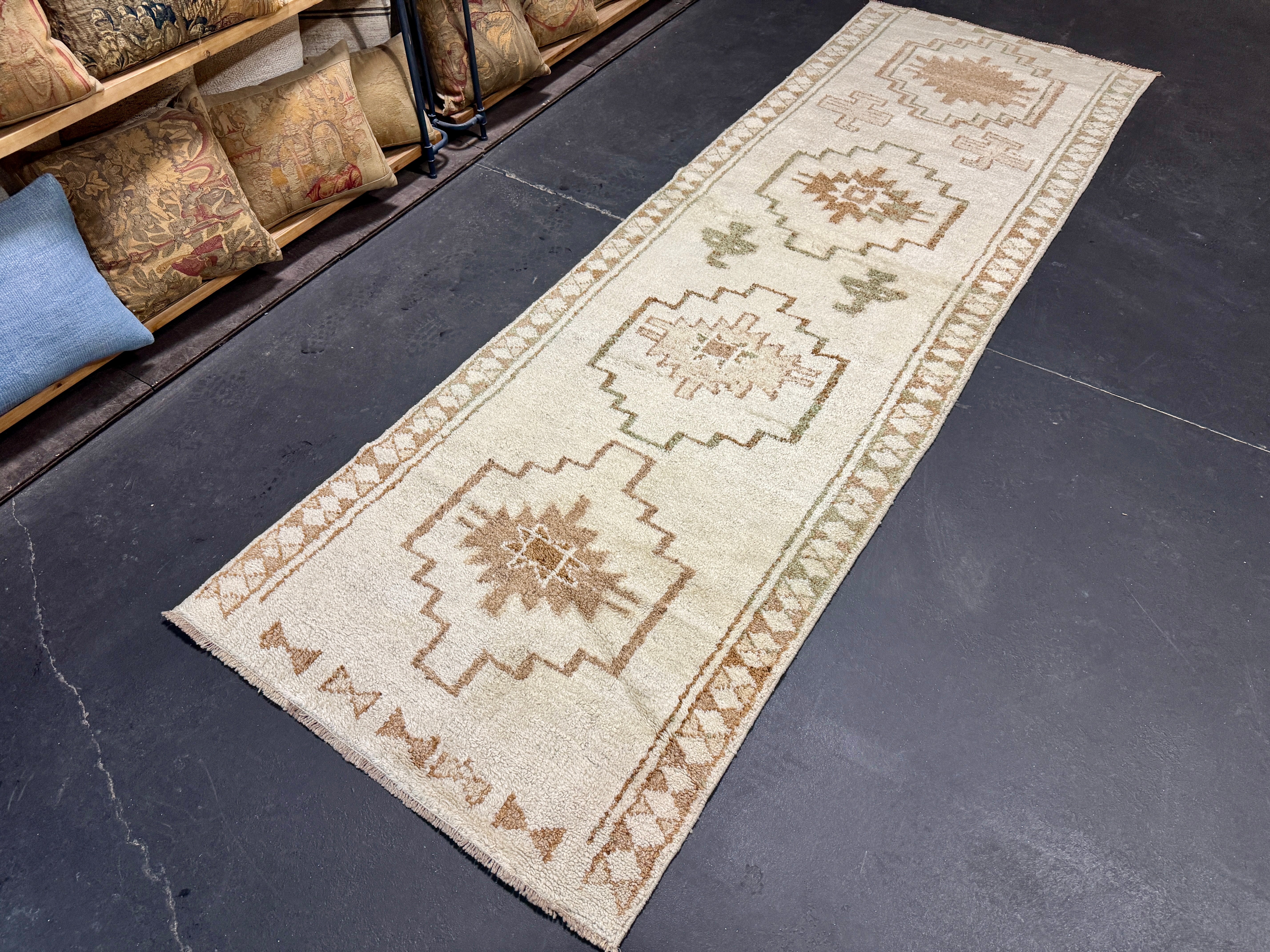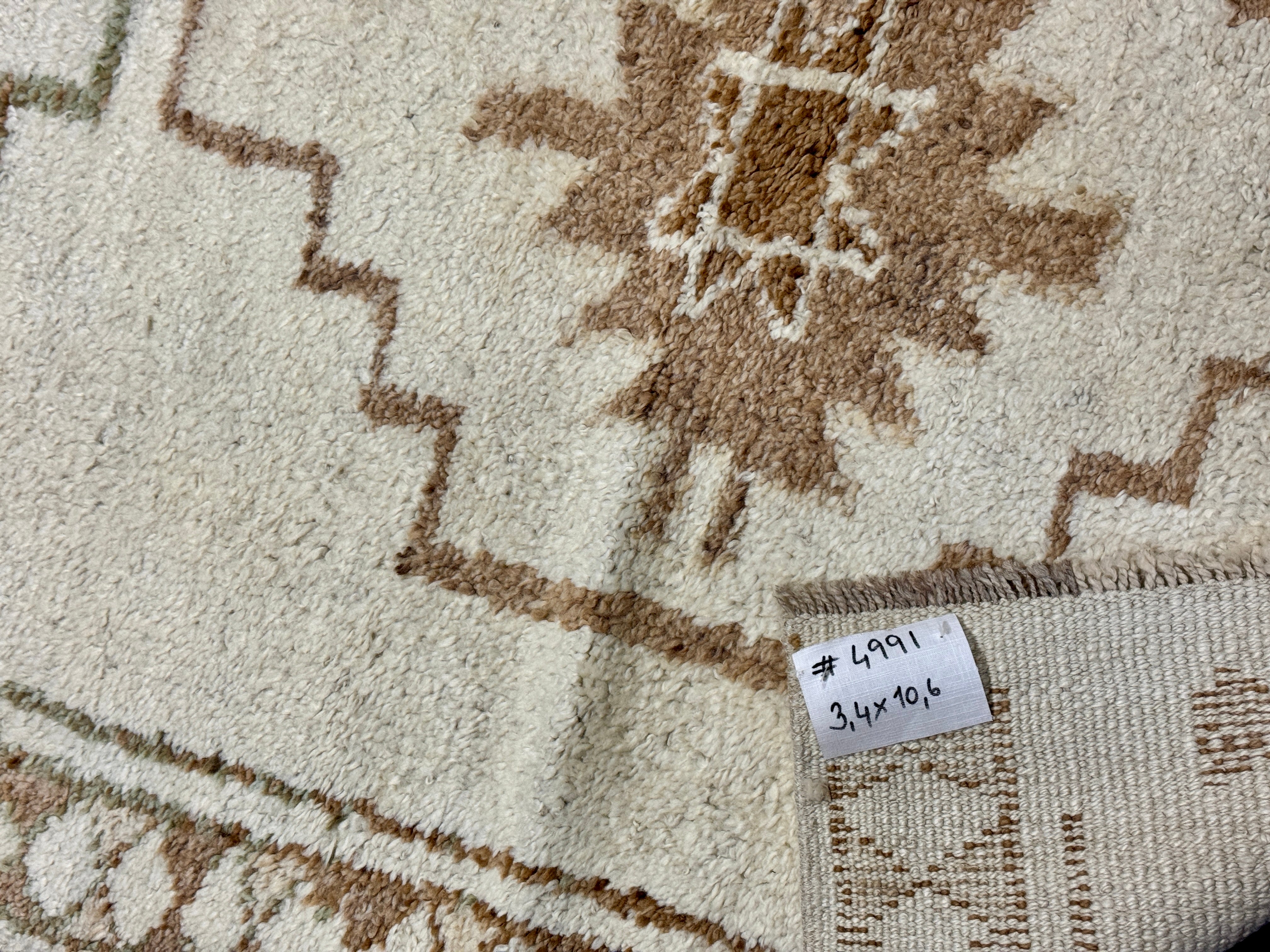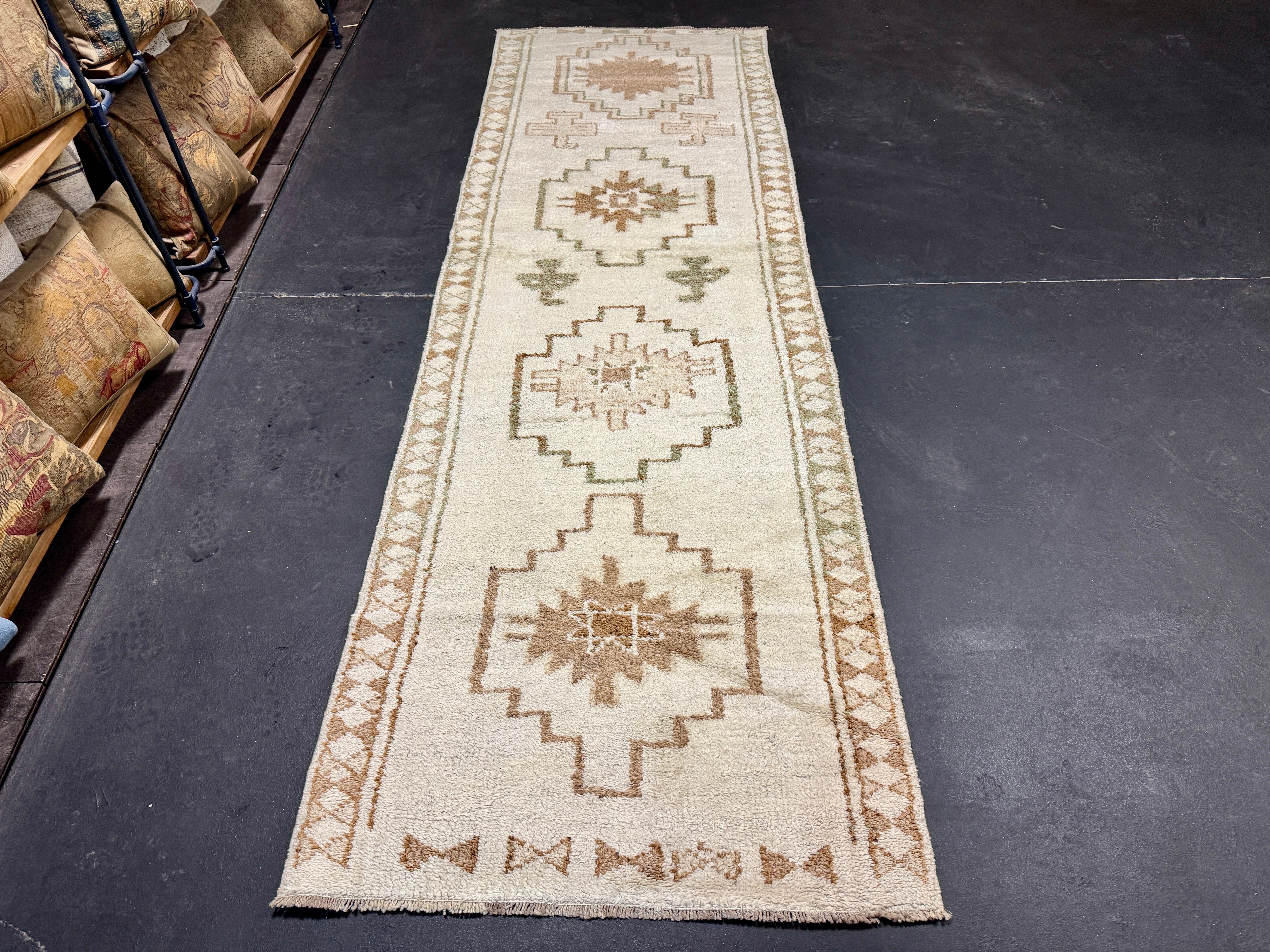 3’4 x 10’6 Vintage Herki Runner Cream & Light Brown + Green 4991