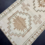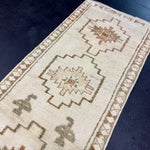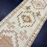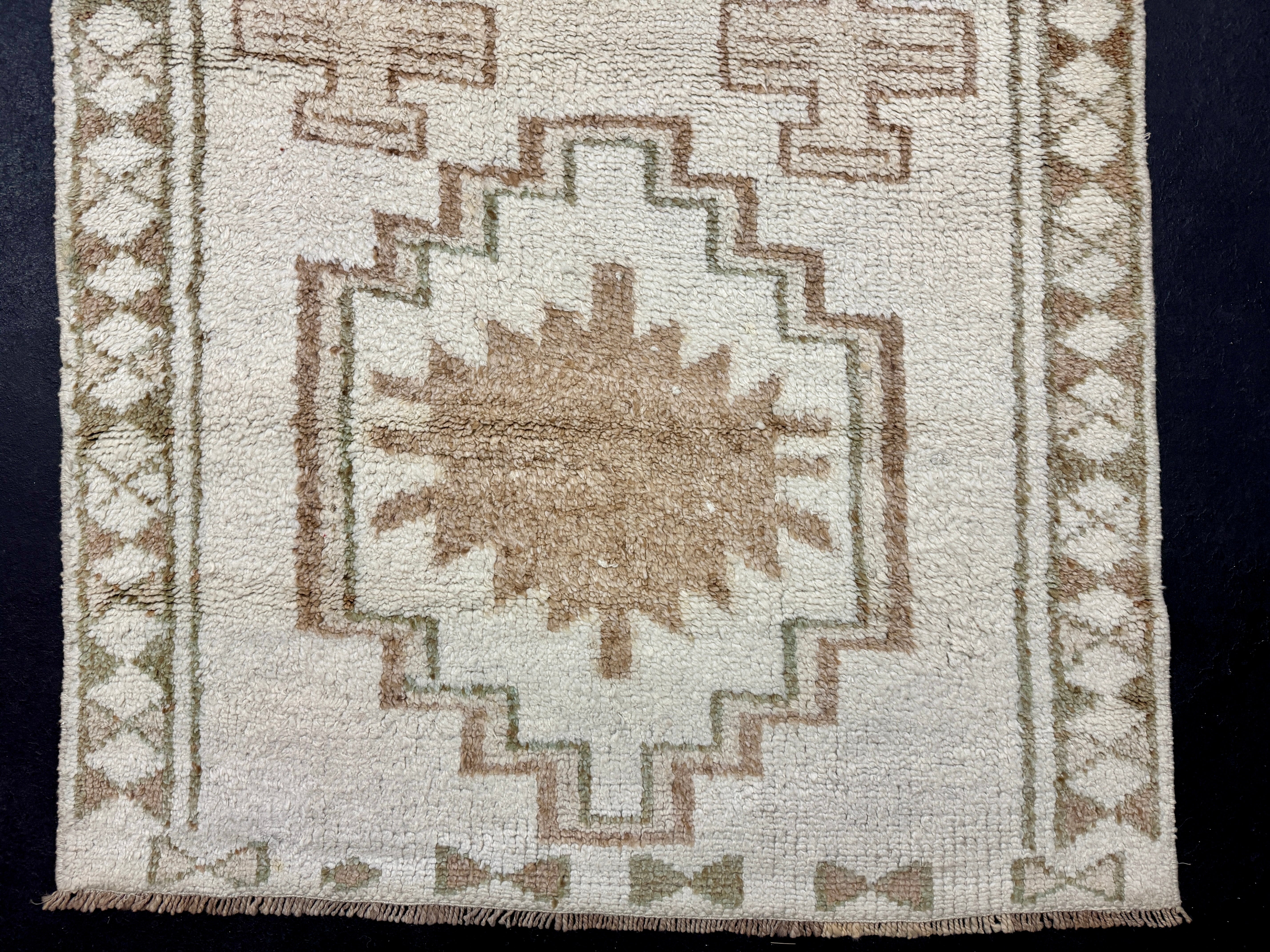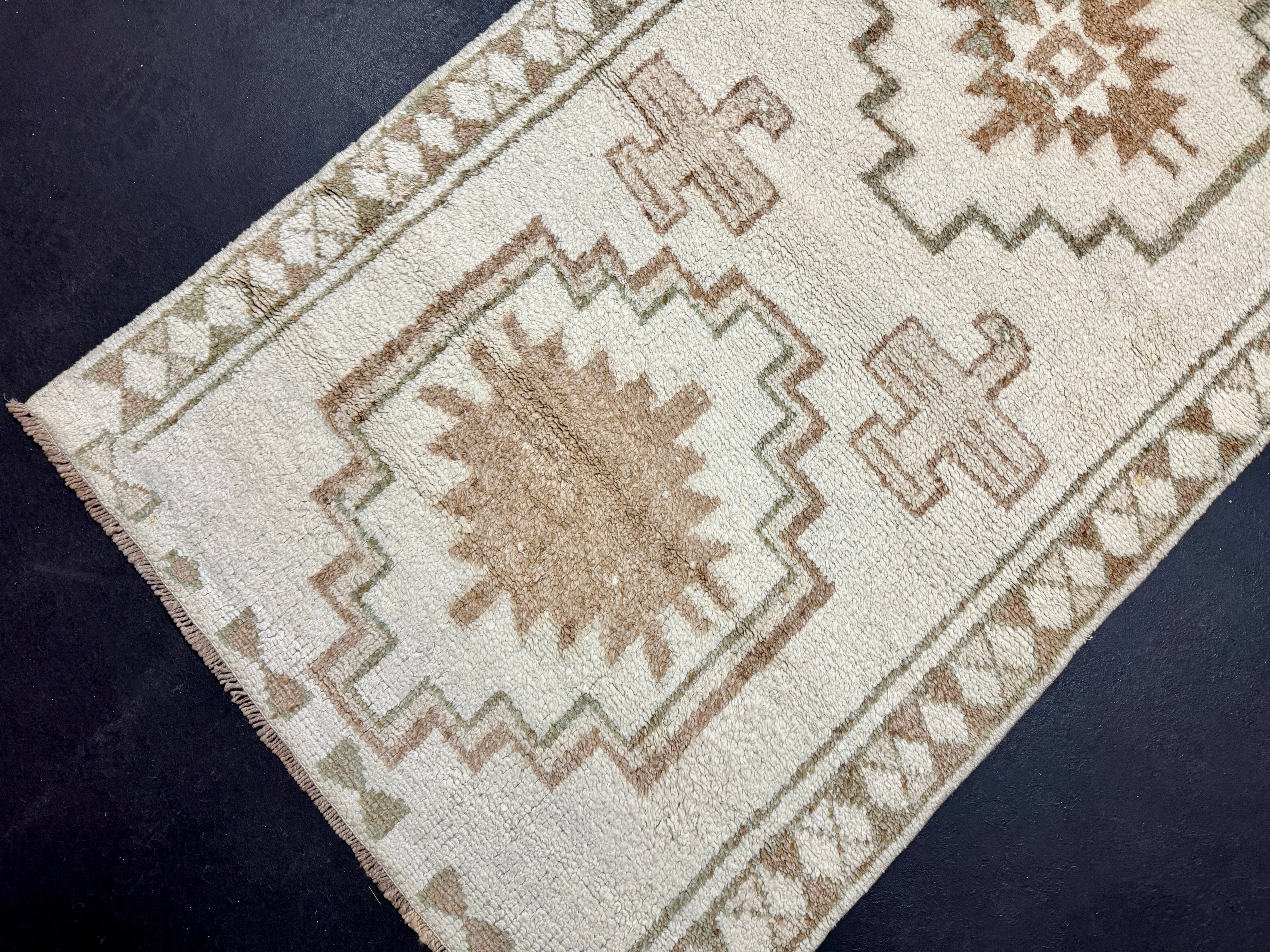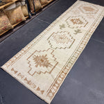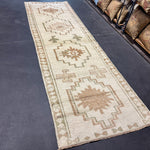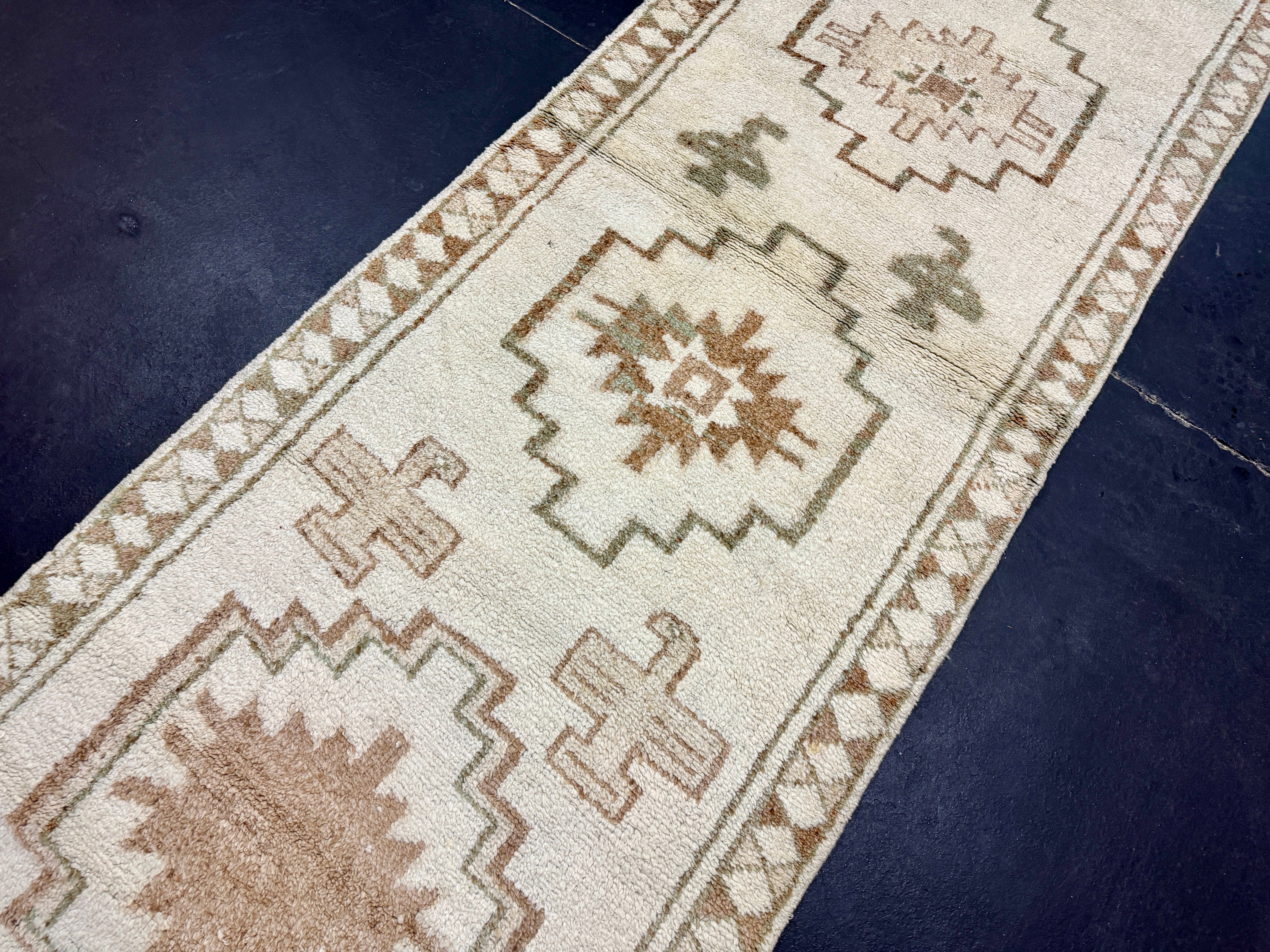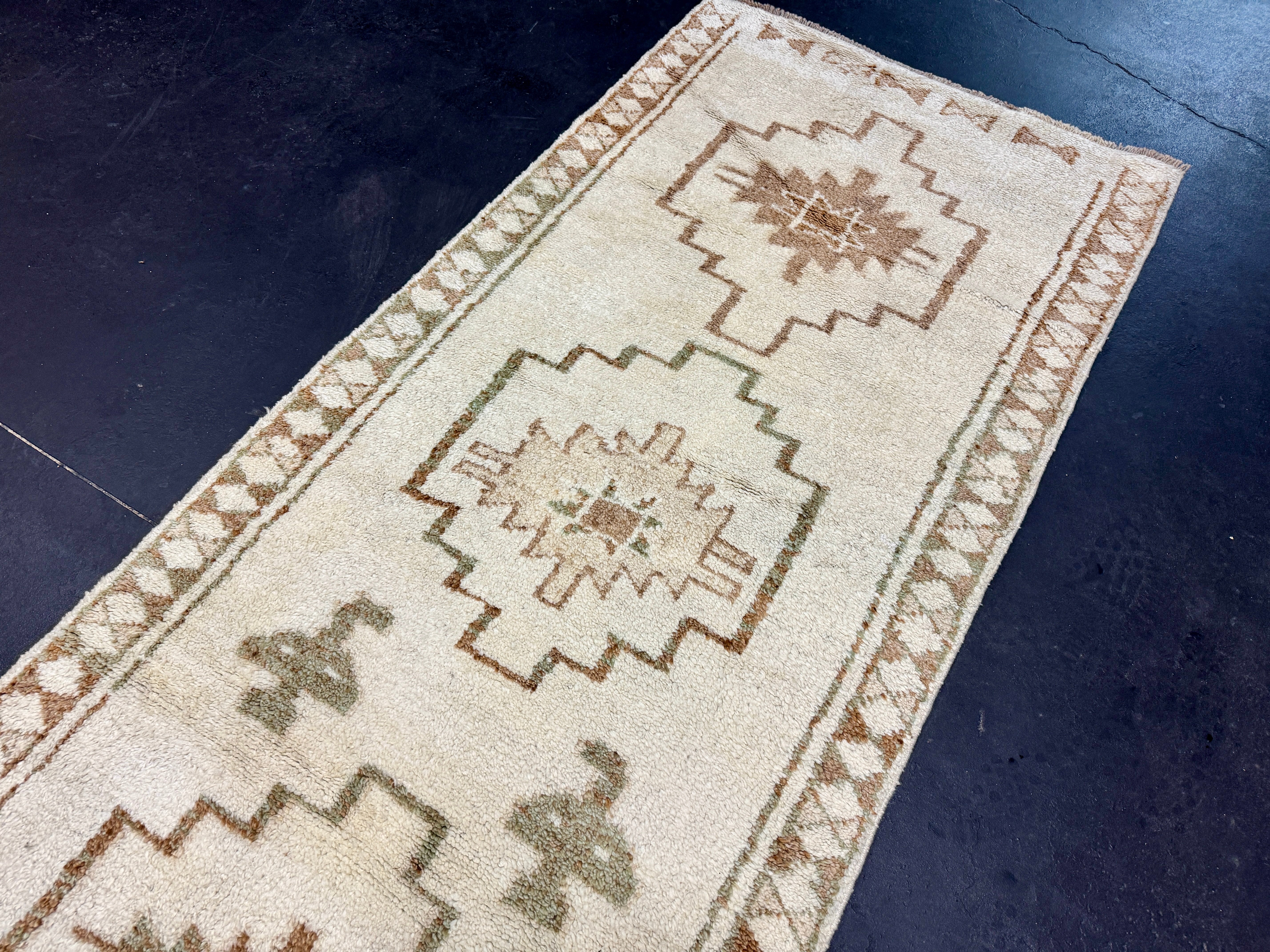 3’4 x 10’6 Vintage Herki Runner Cream & Light Brown + Green 4991