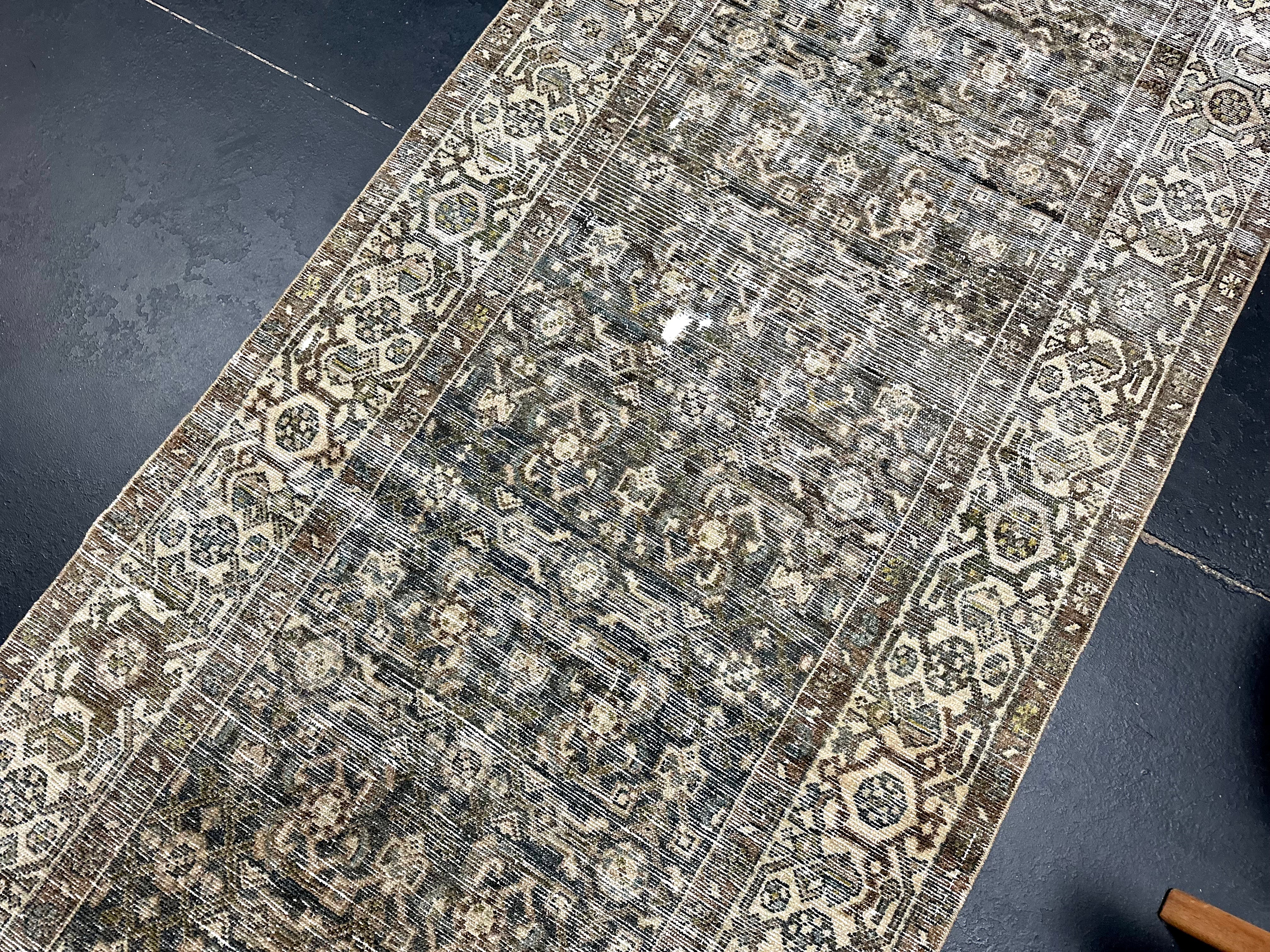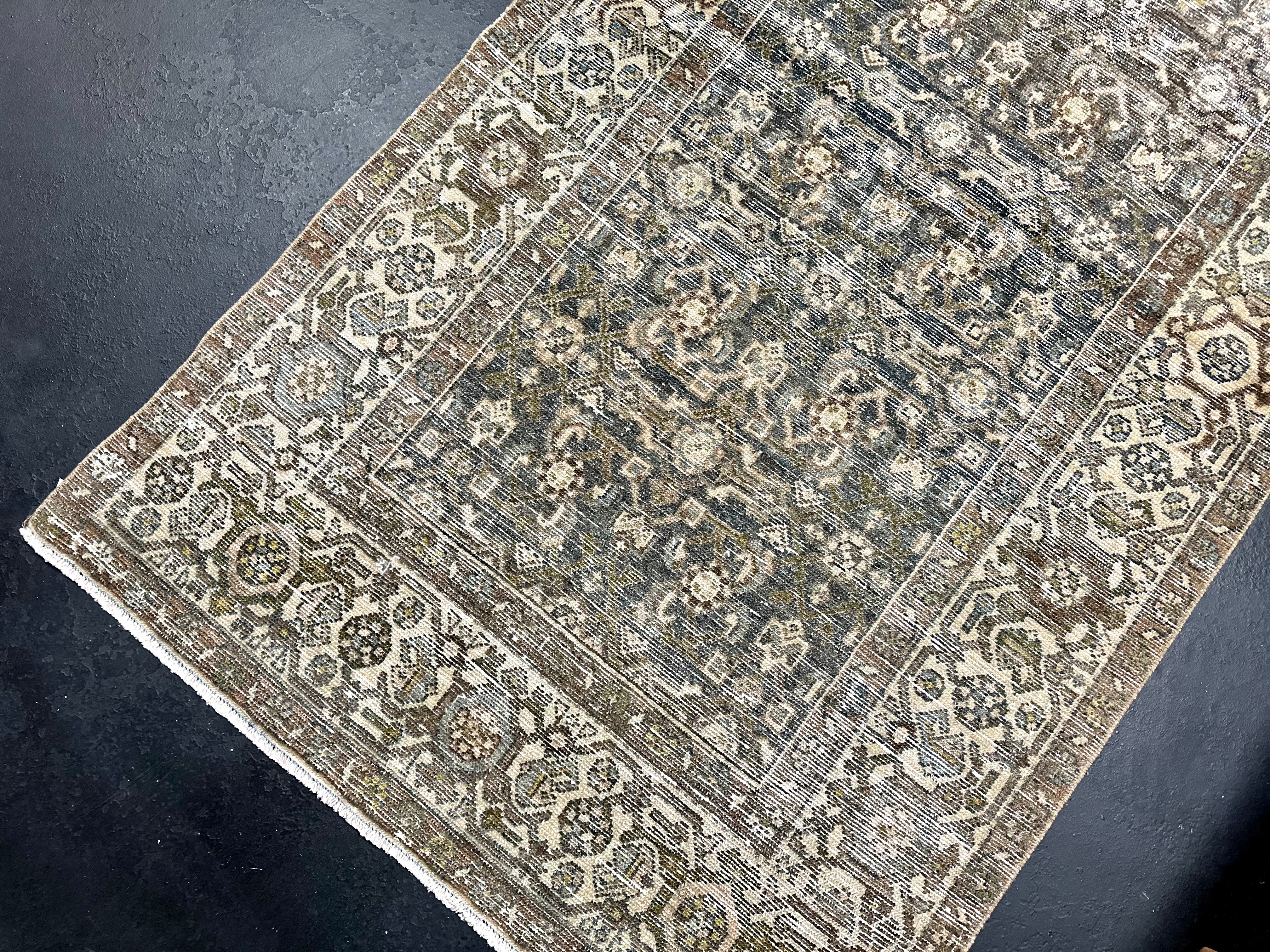 3’4 x 9’10 Classic Vintage Runner Muted Indigo Blue, Brown & Beige SB '4976