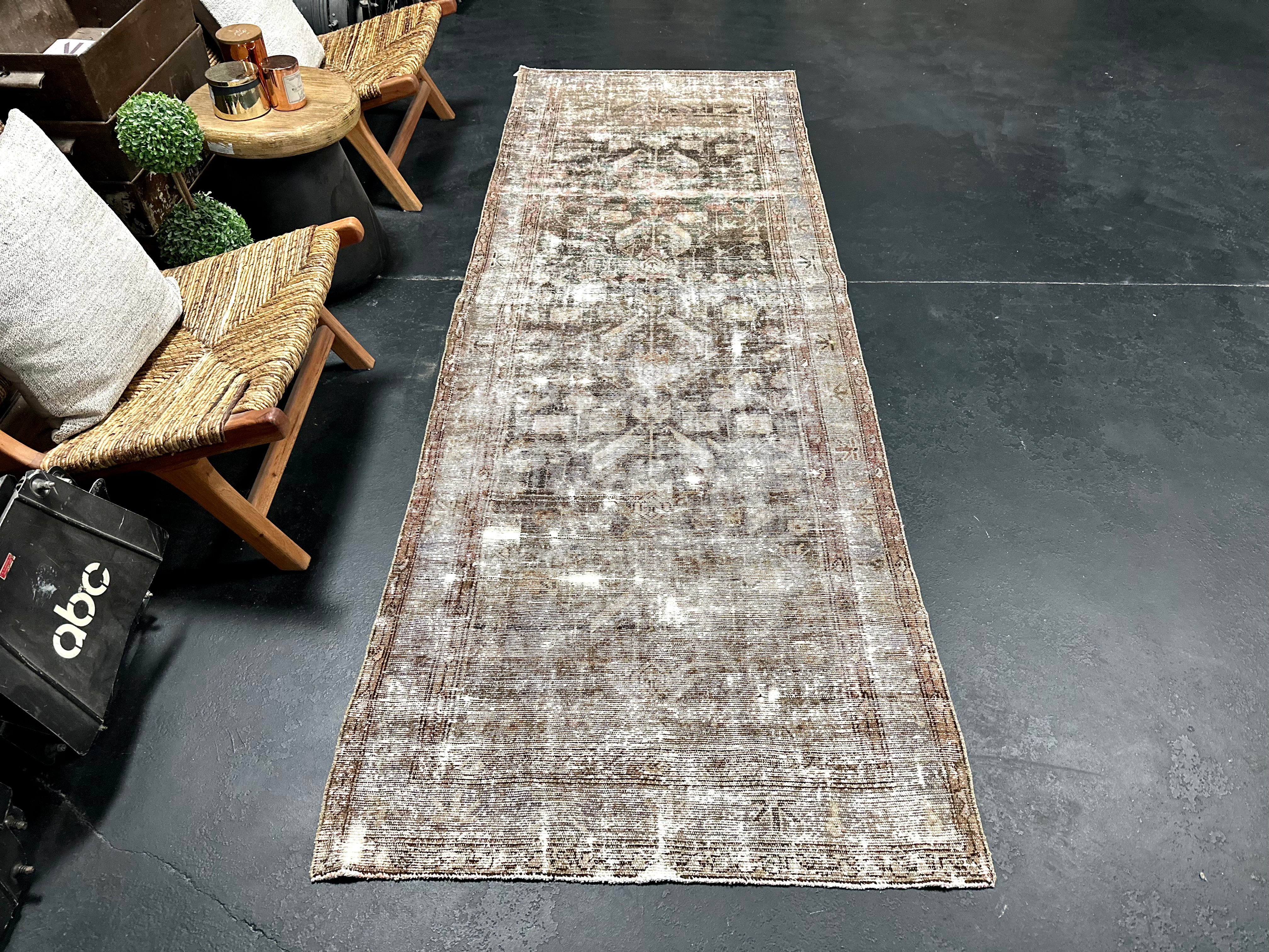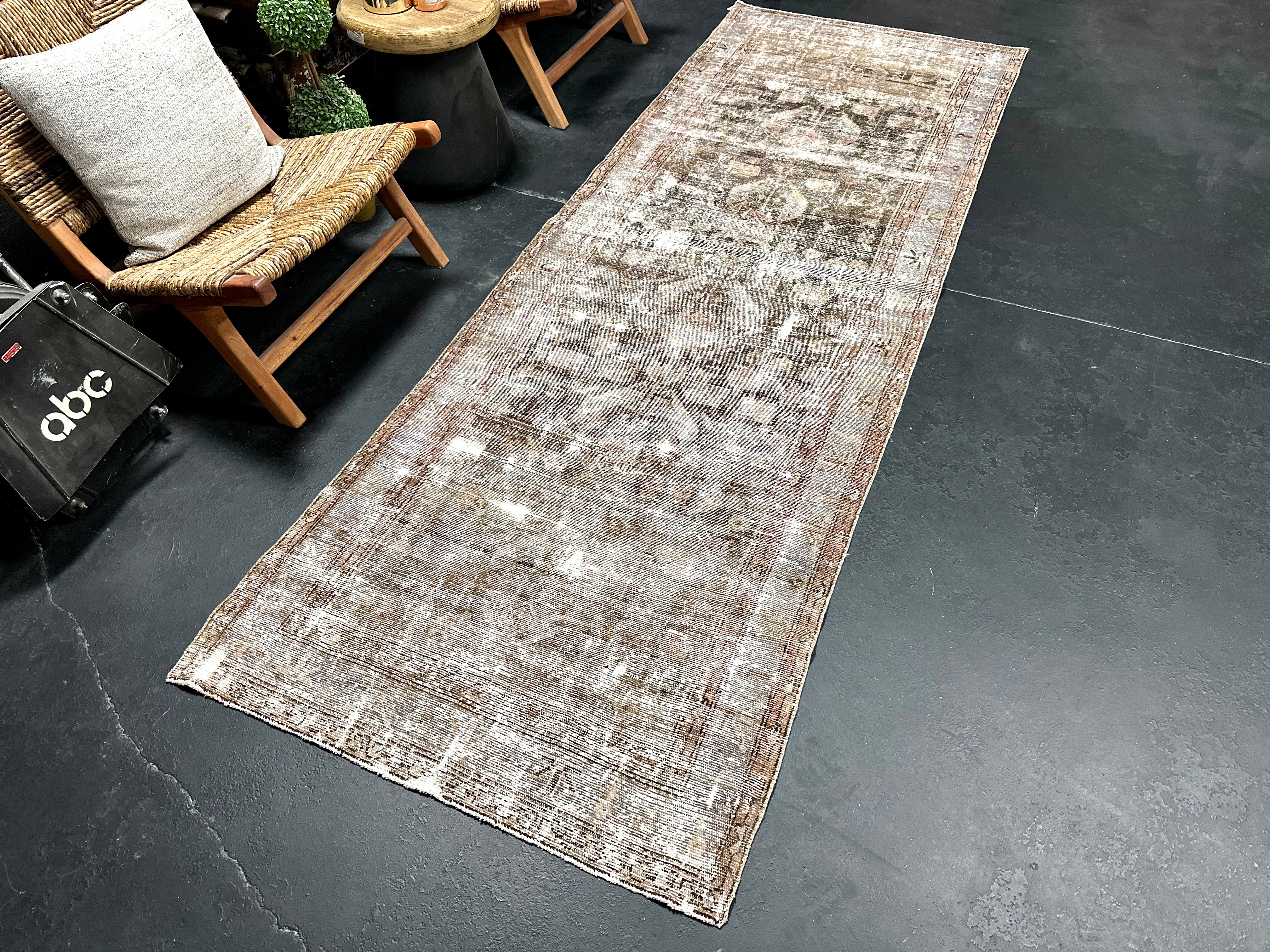 3’4 x 9’7 Classic Vintage Runner Muted Brown, Periwinkle & Pink SB '5024