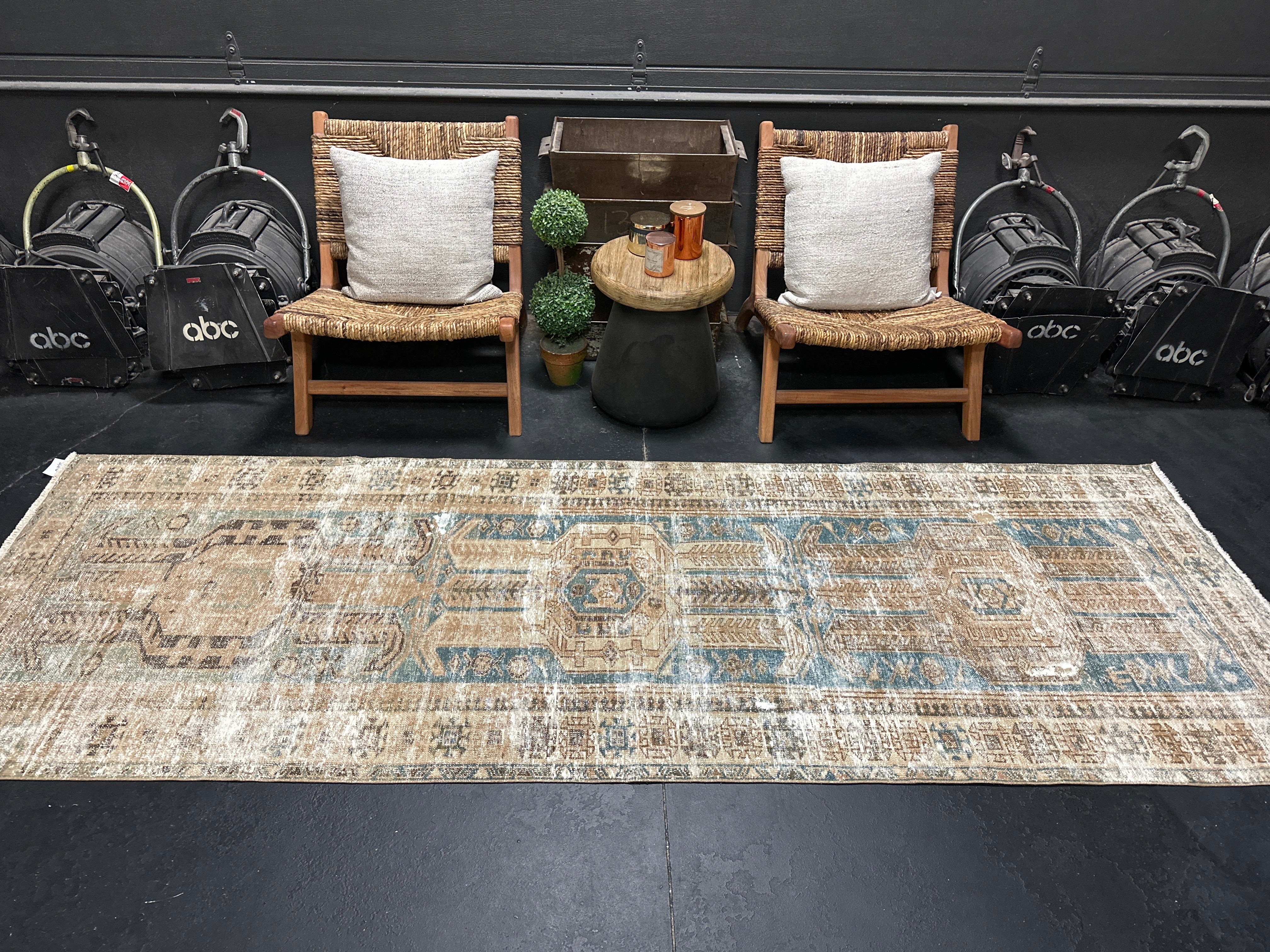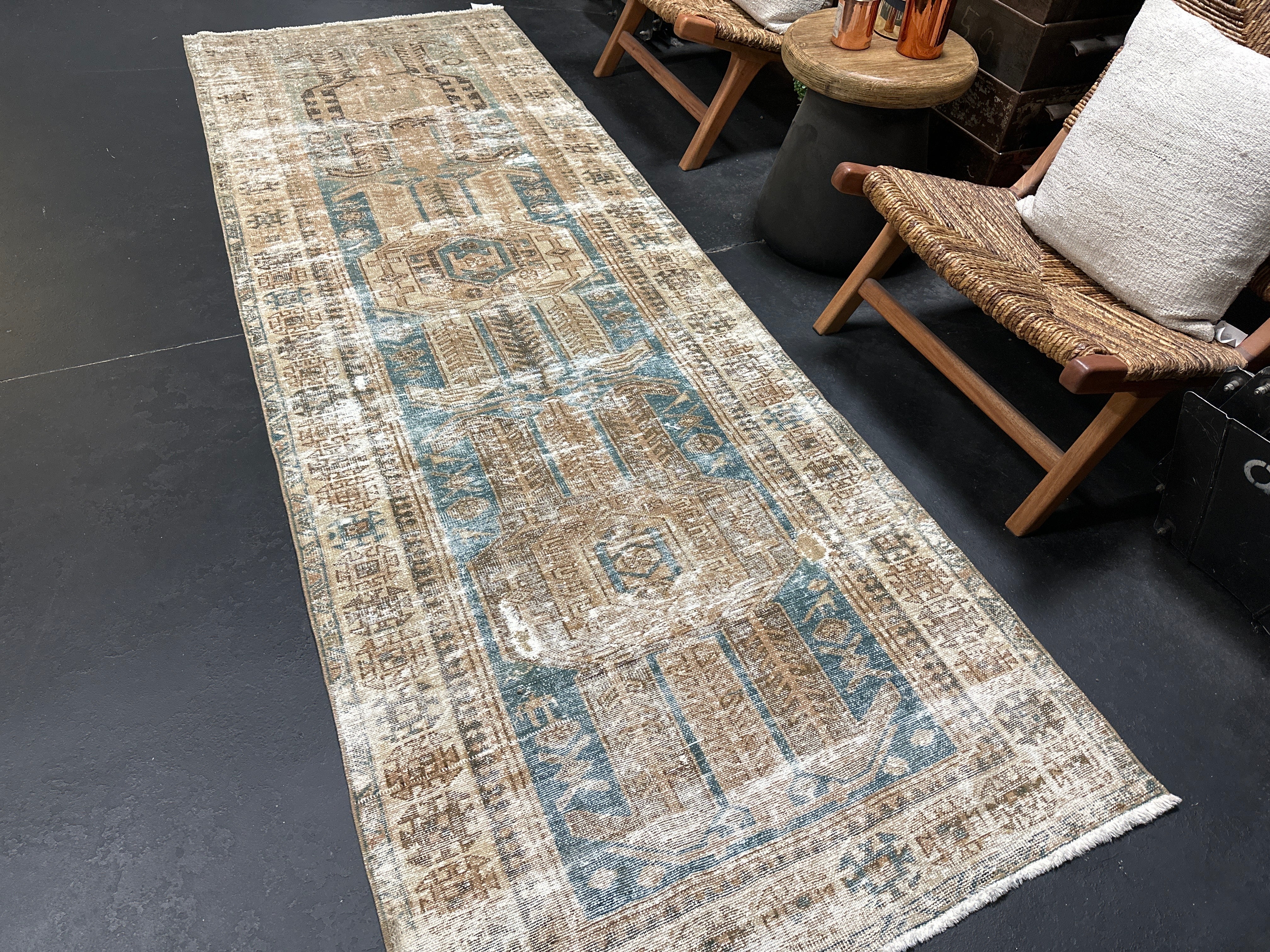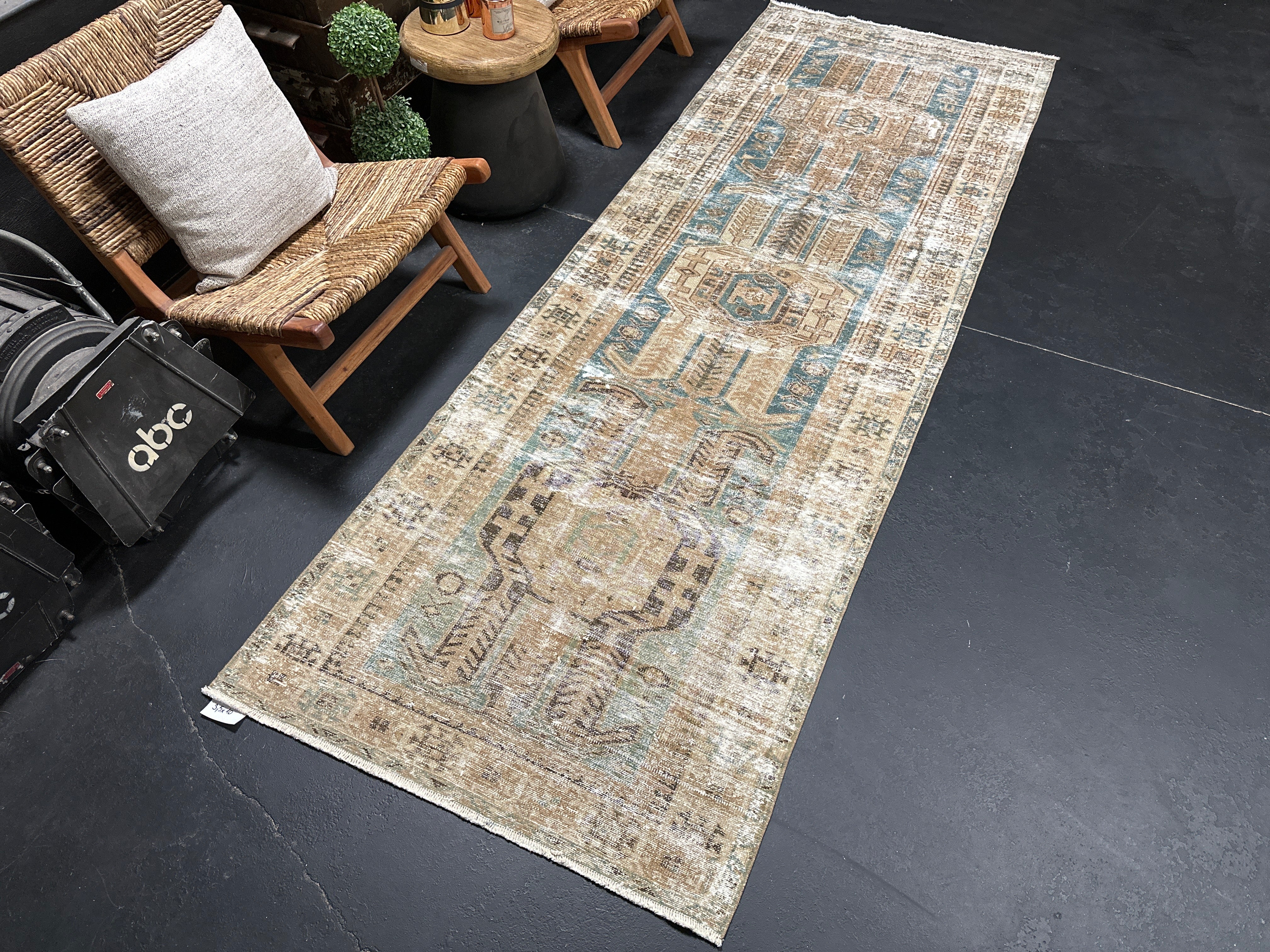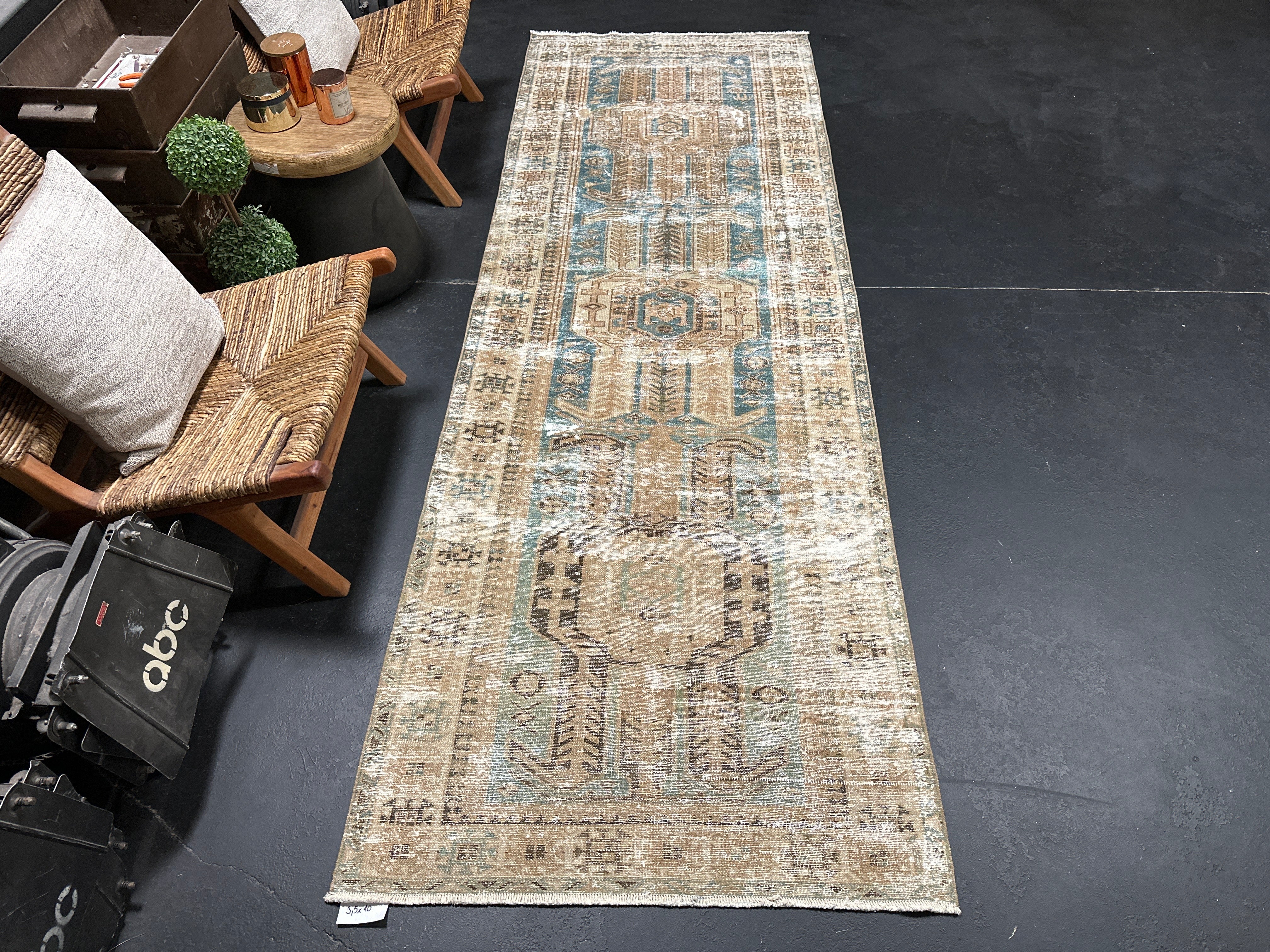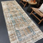 3’5 x 10’ Classic Vintage Runner Muted Turquoise Blue & Beige '5236