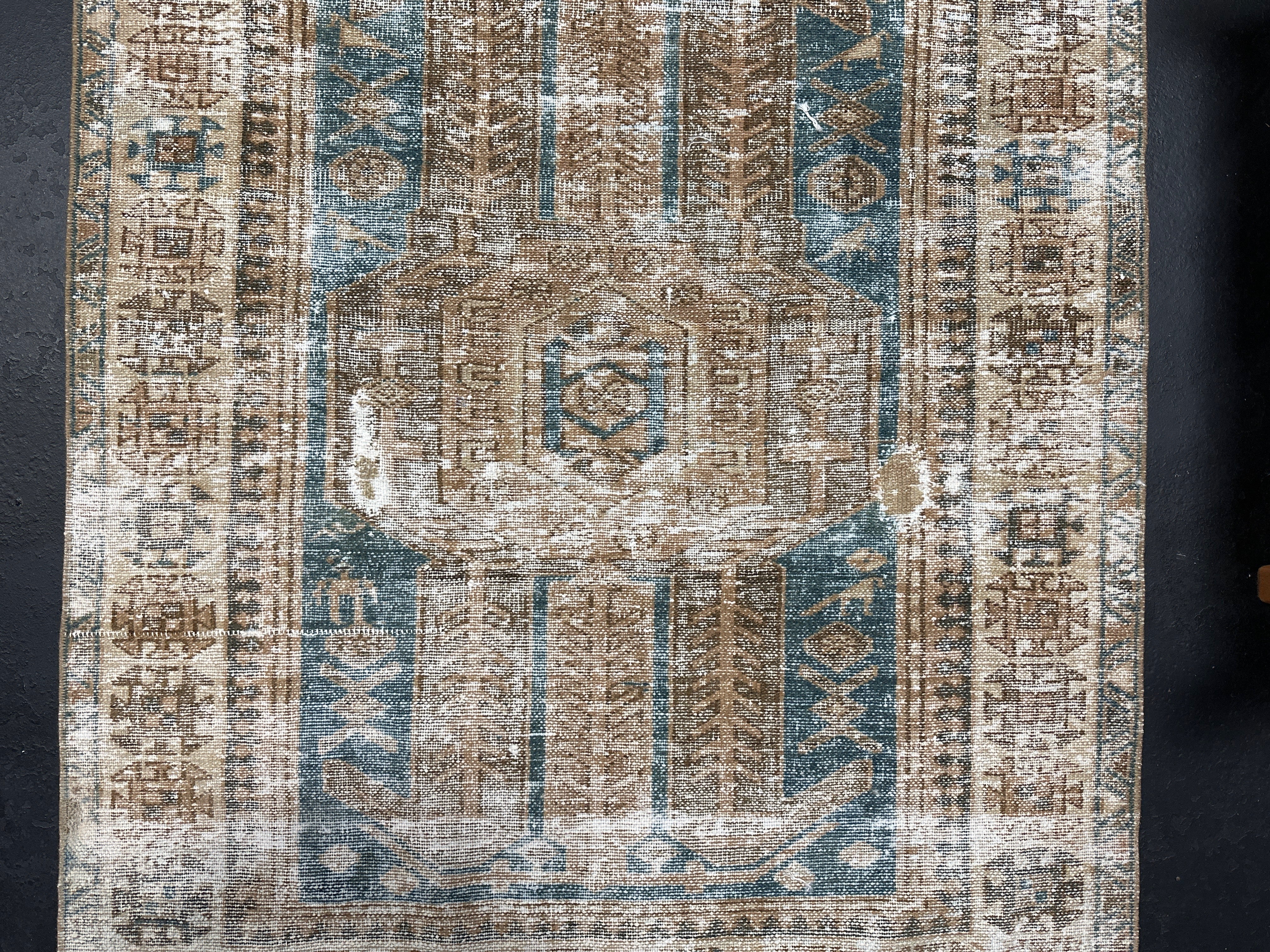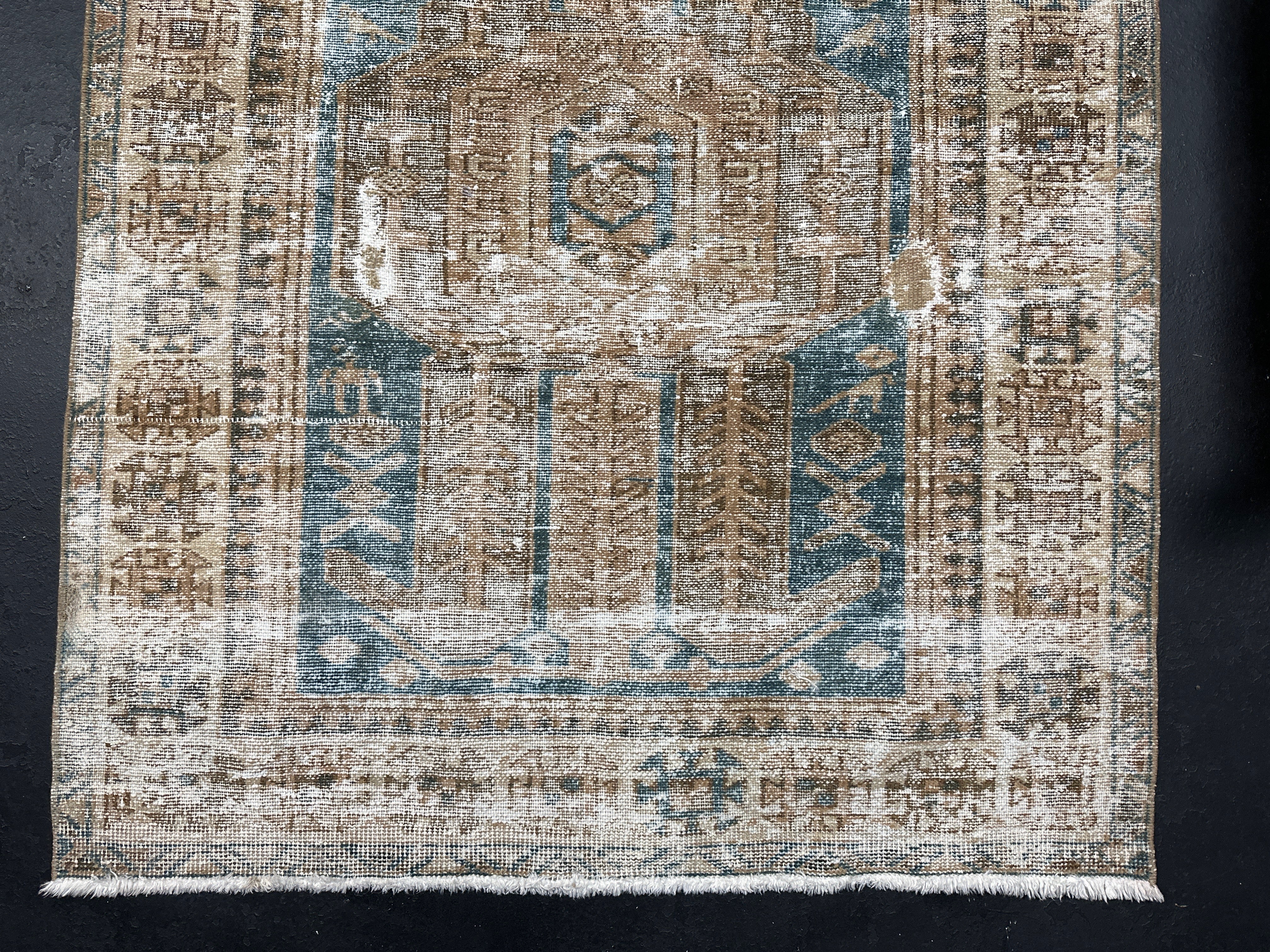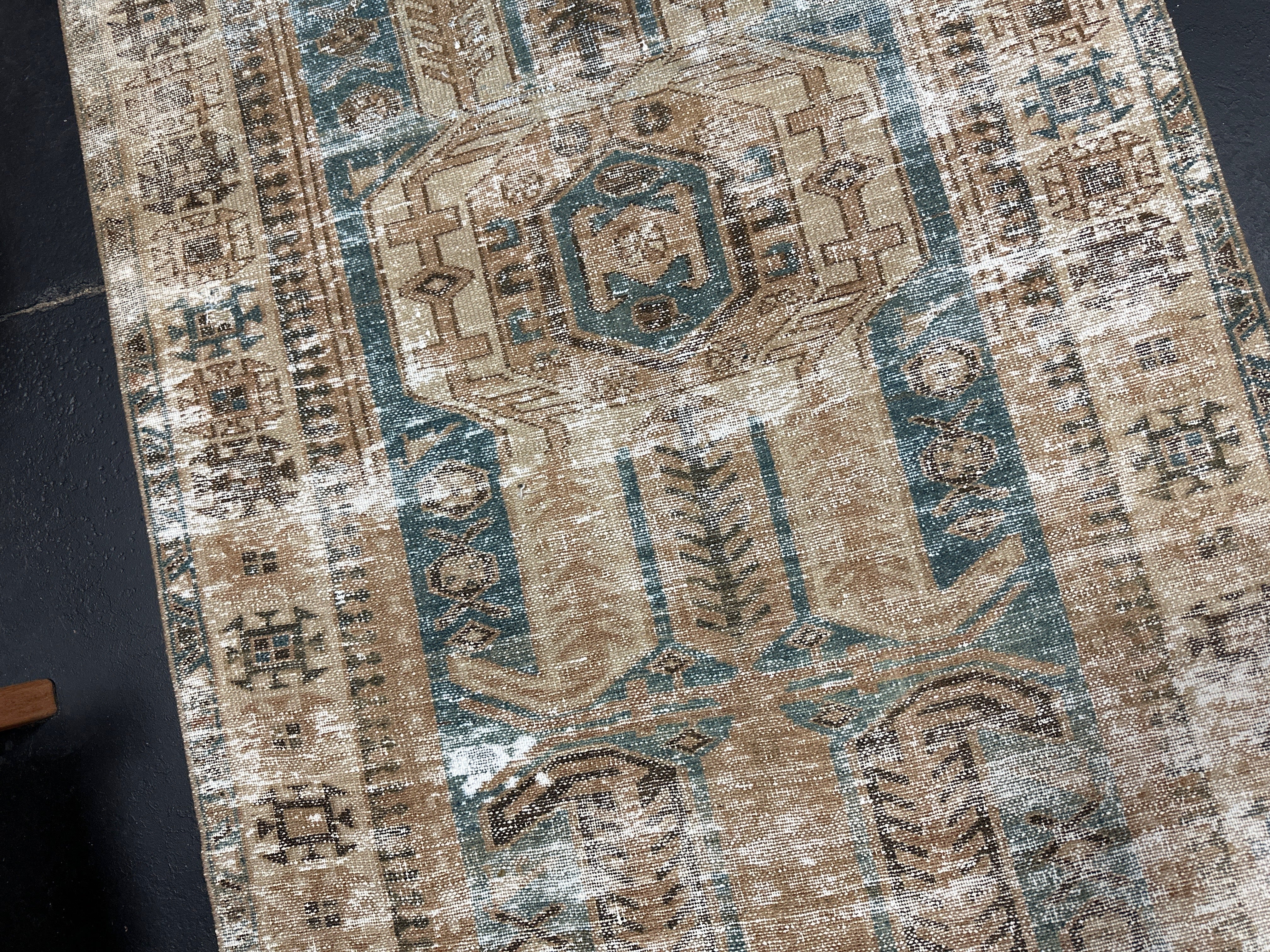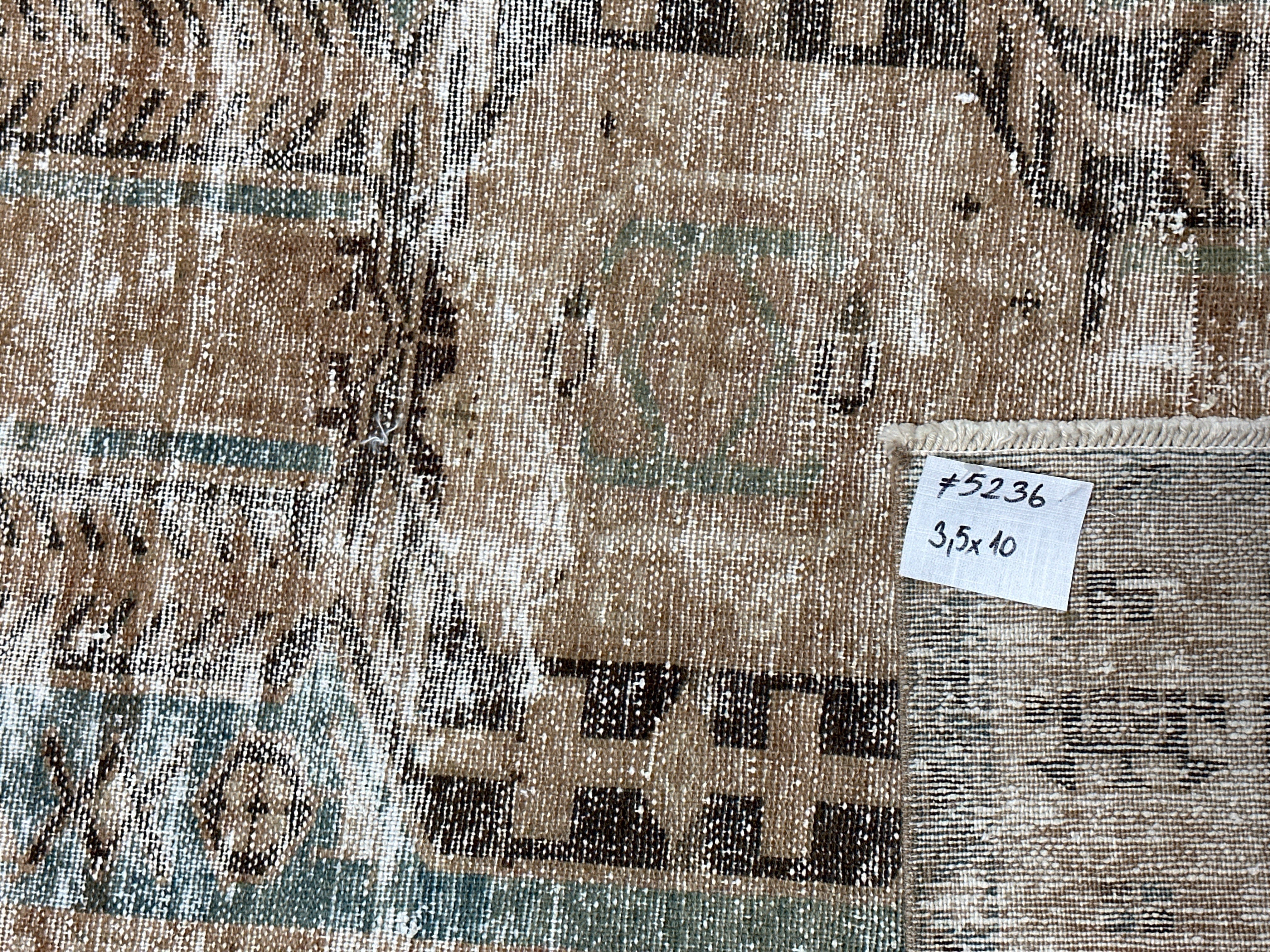 3’5 x 10’ Classic Vintage Runner Muted Turquoise Blue & Beige '5236