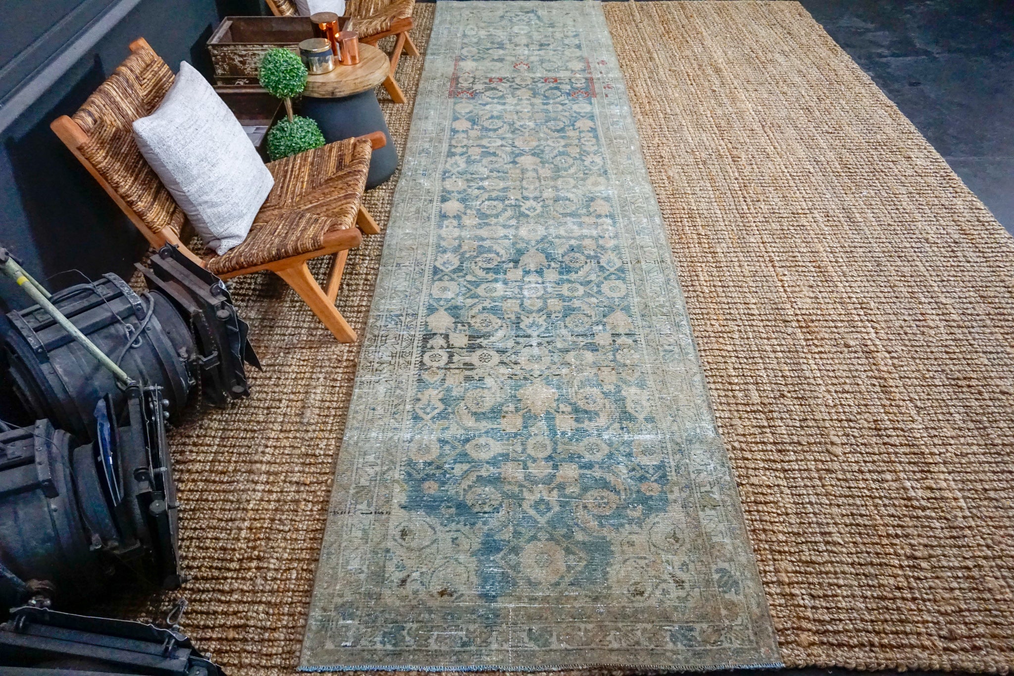 3'3 x 14’ Vintage Malayer Runner Denim Blue and Greige SB '2920