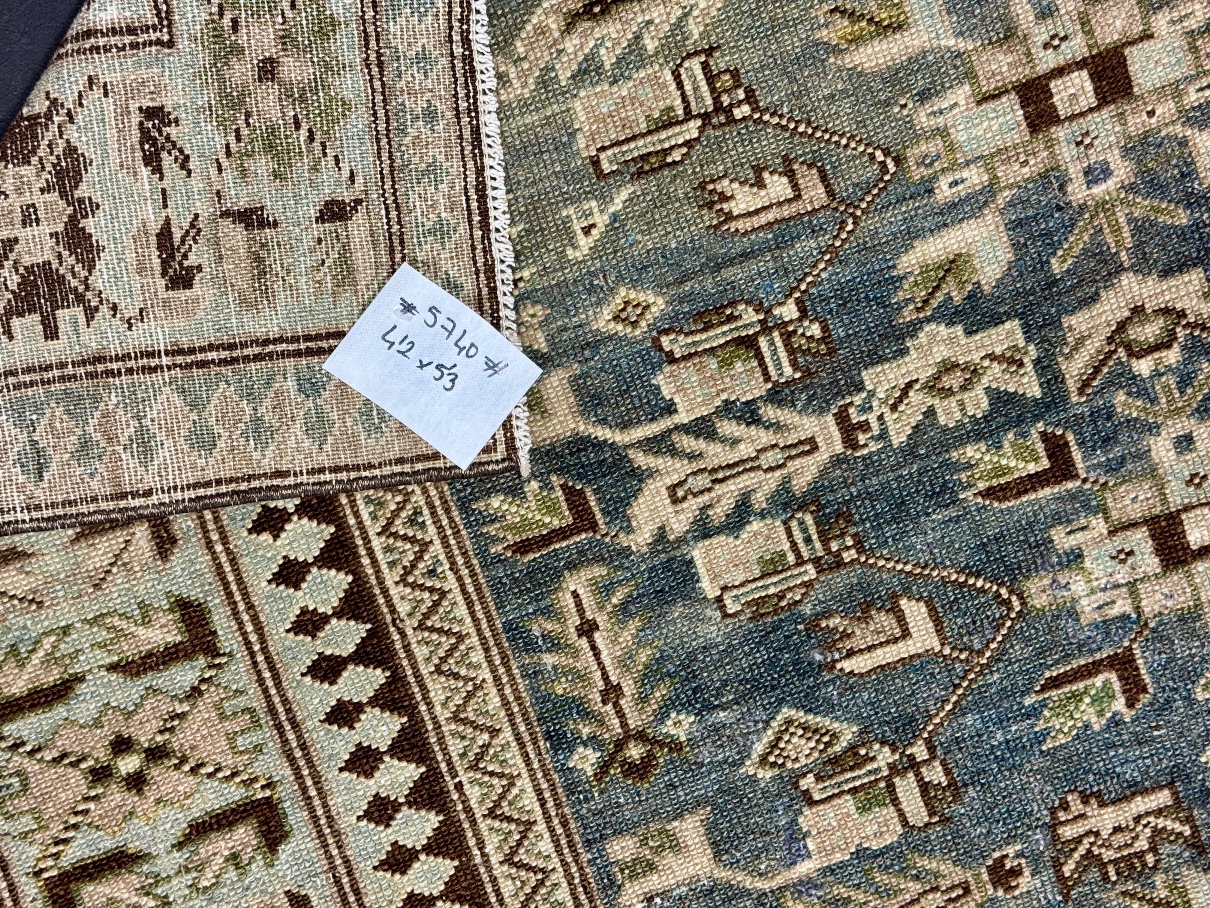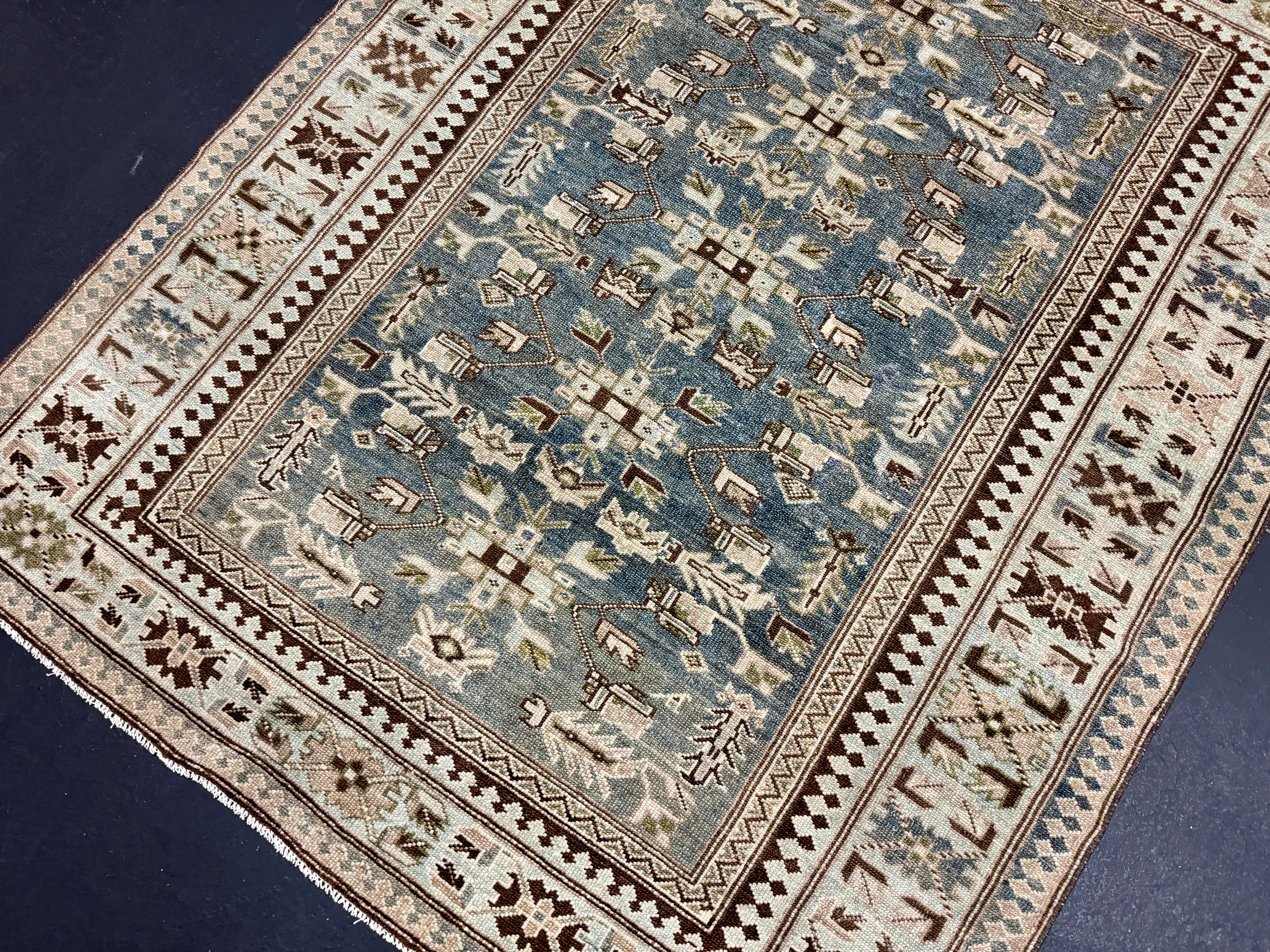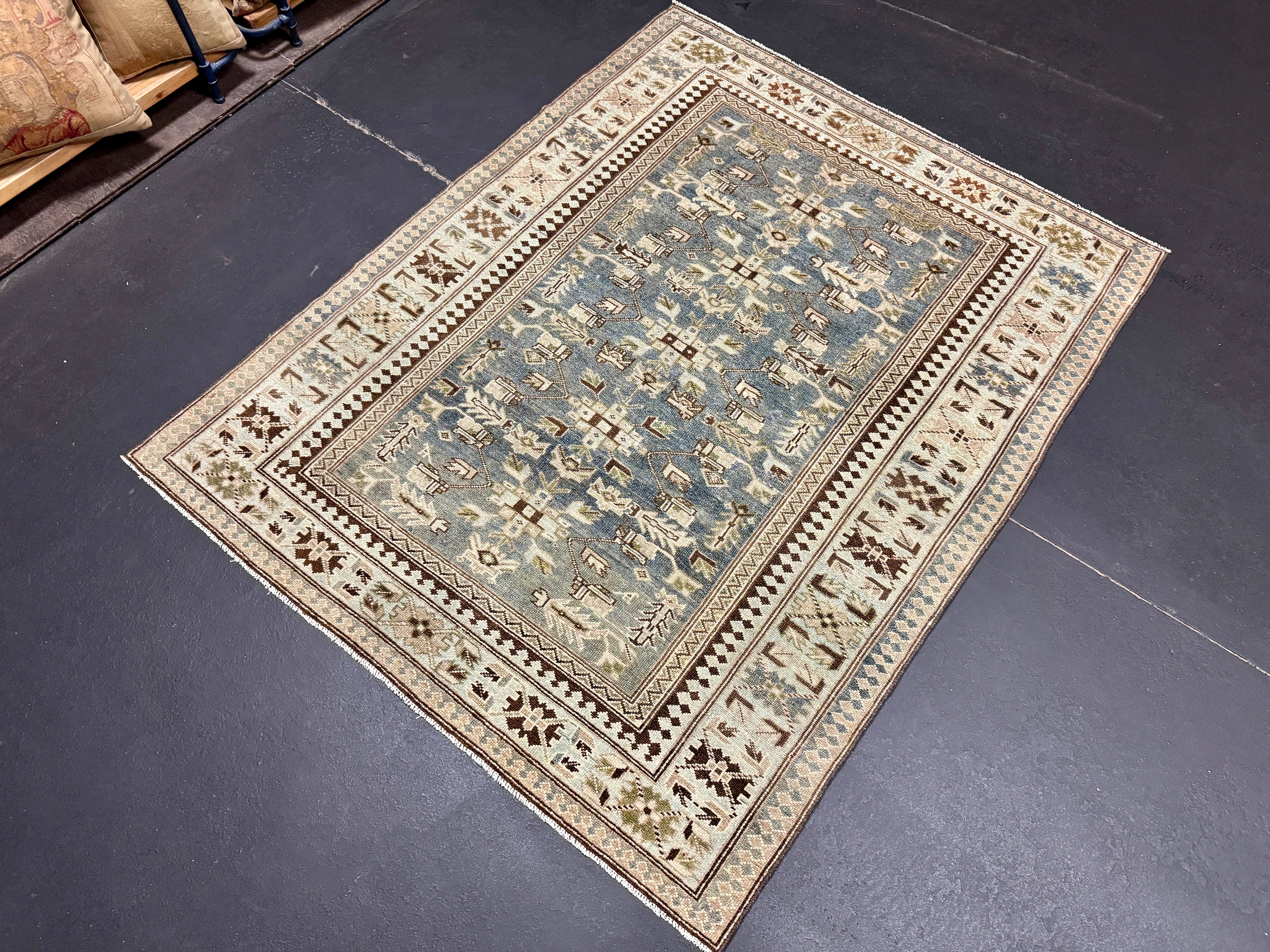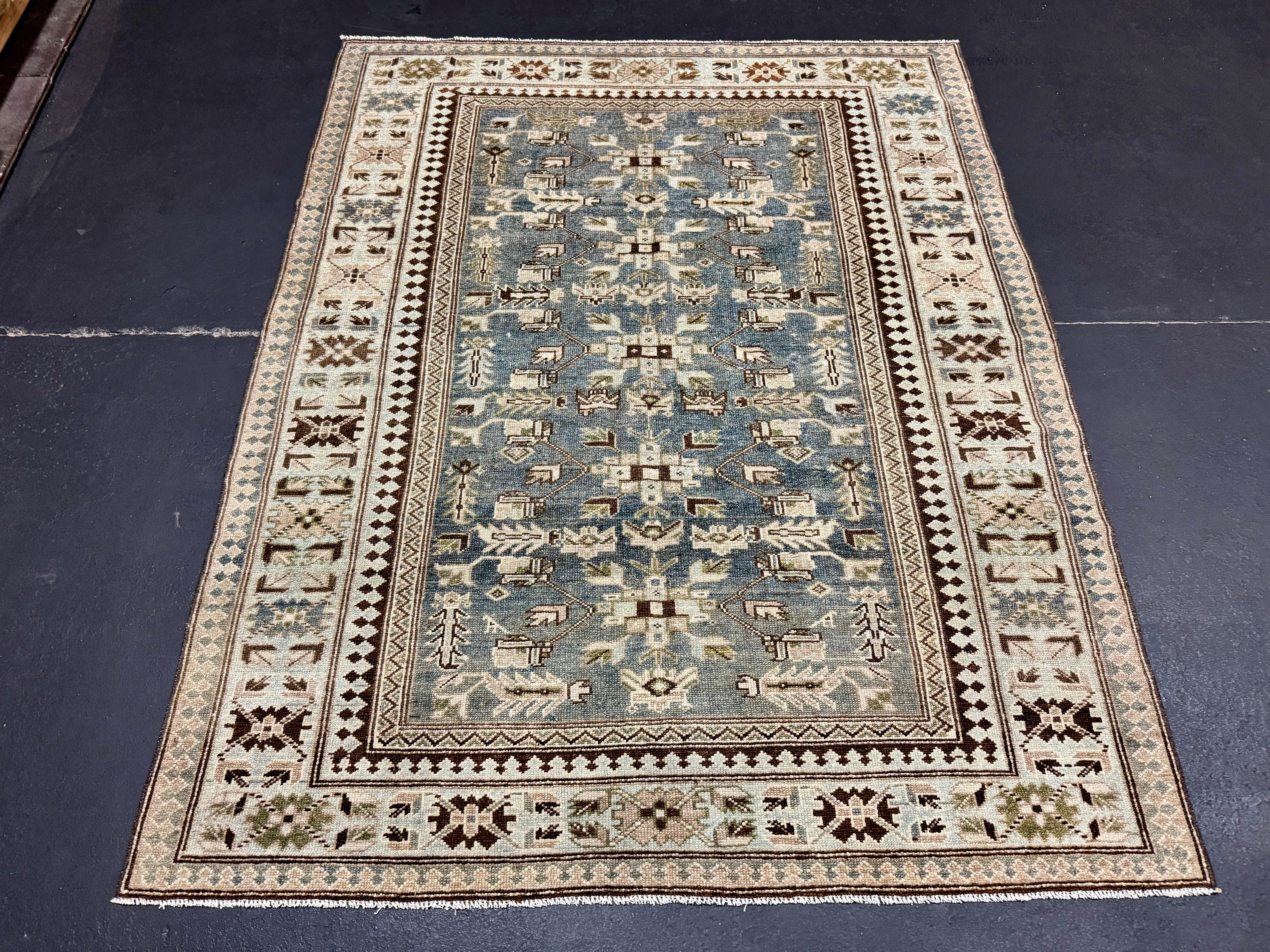 4’2 x 5’3 Classic Antique Rug Muted Midnight Blue, Gray Blue, Green & Brown 5740