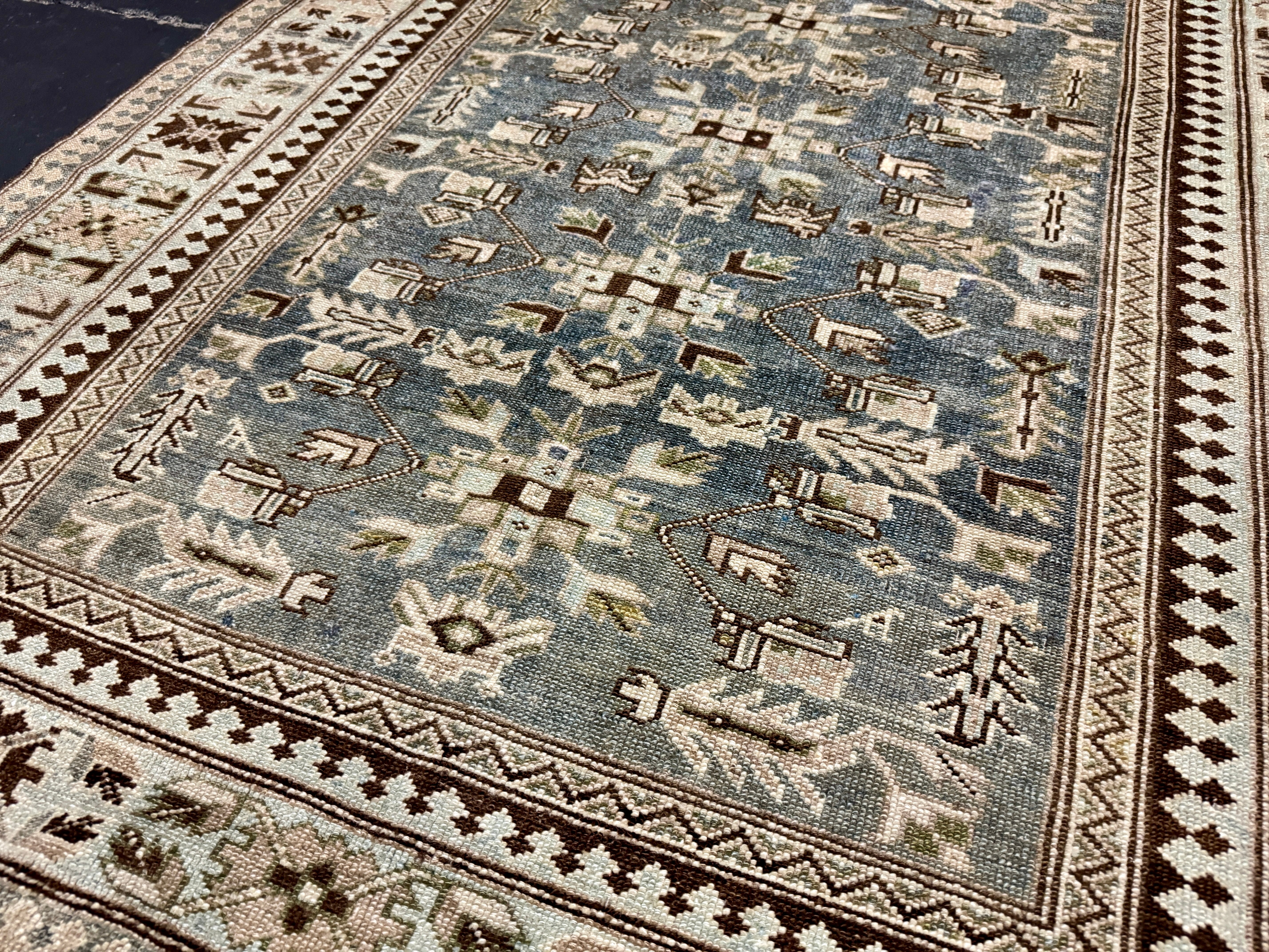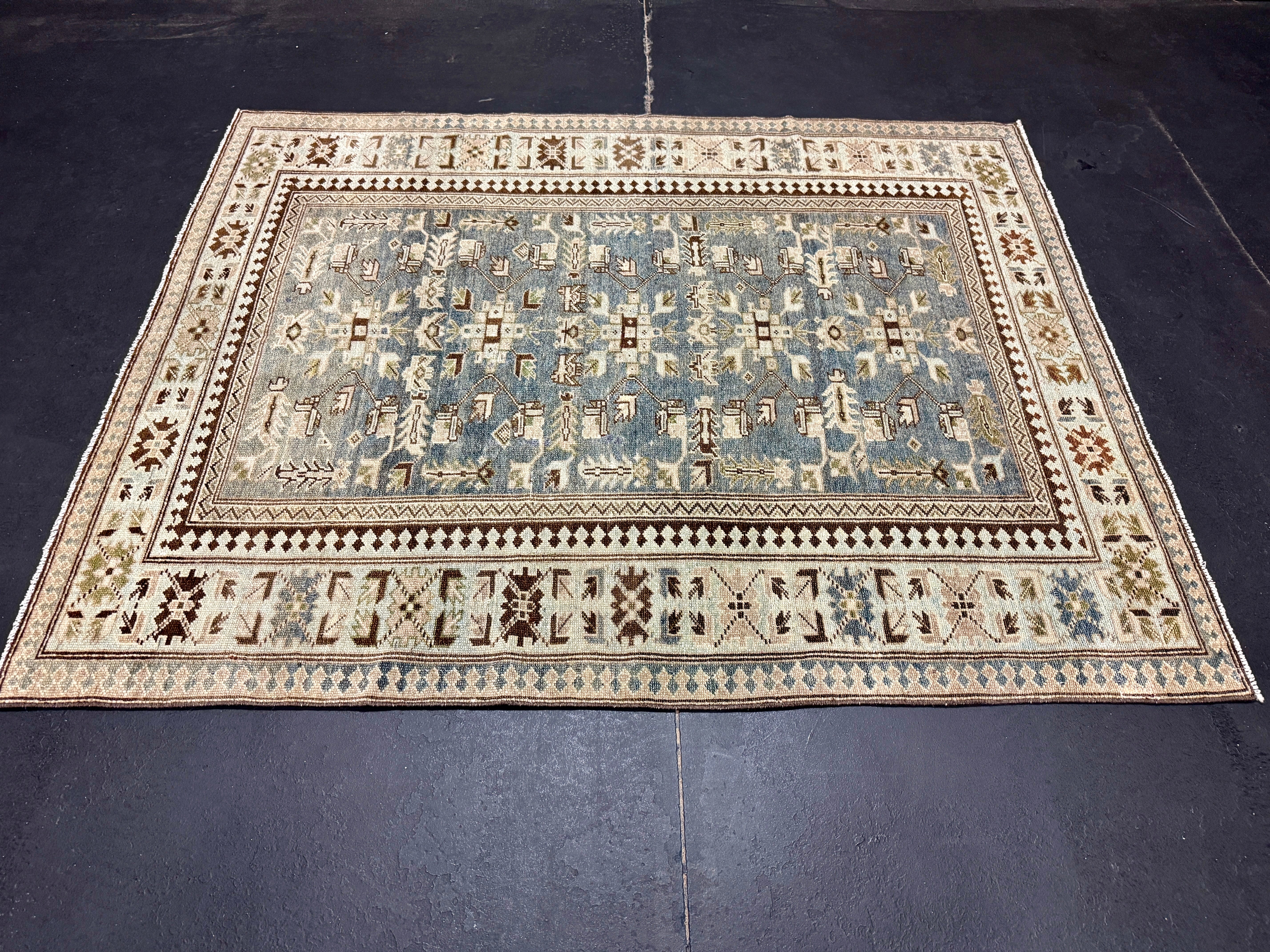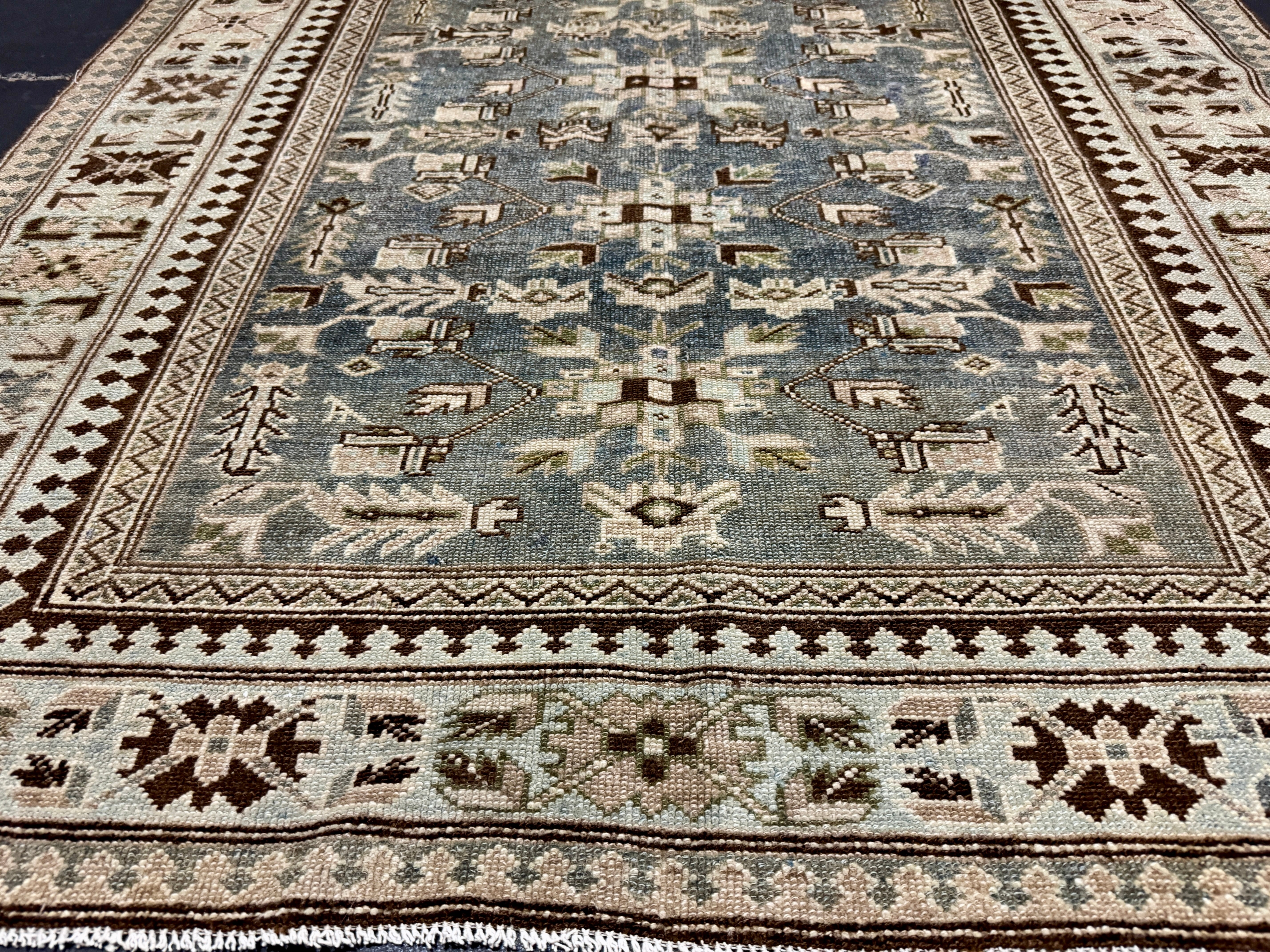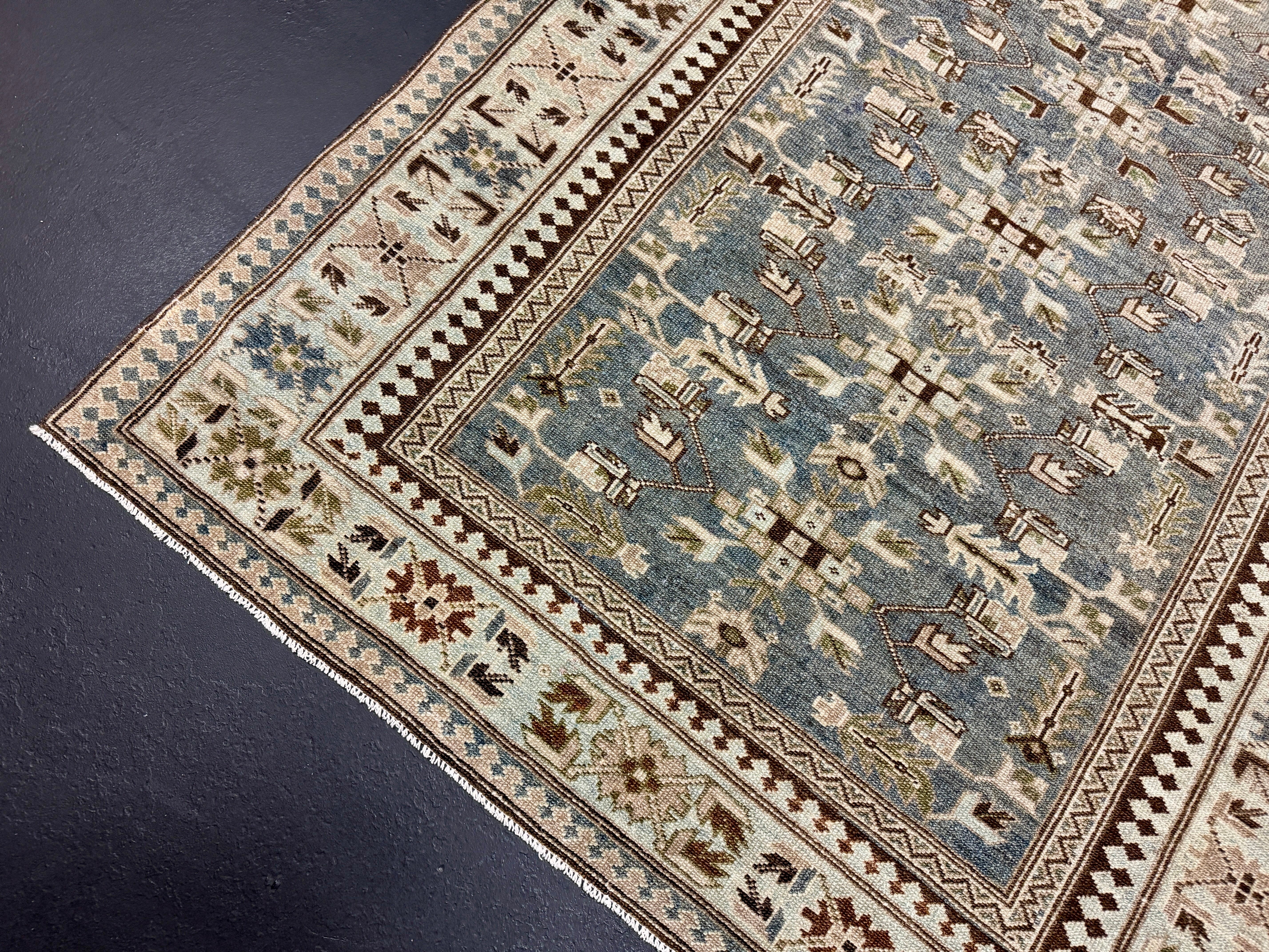 4’2 x 5’3 Classic Antique Rug Muted Midnight Blue, Gray Blue, Green & Brown 5740