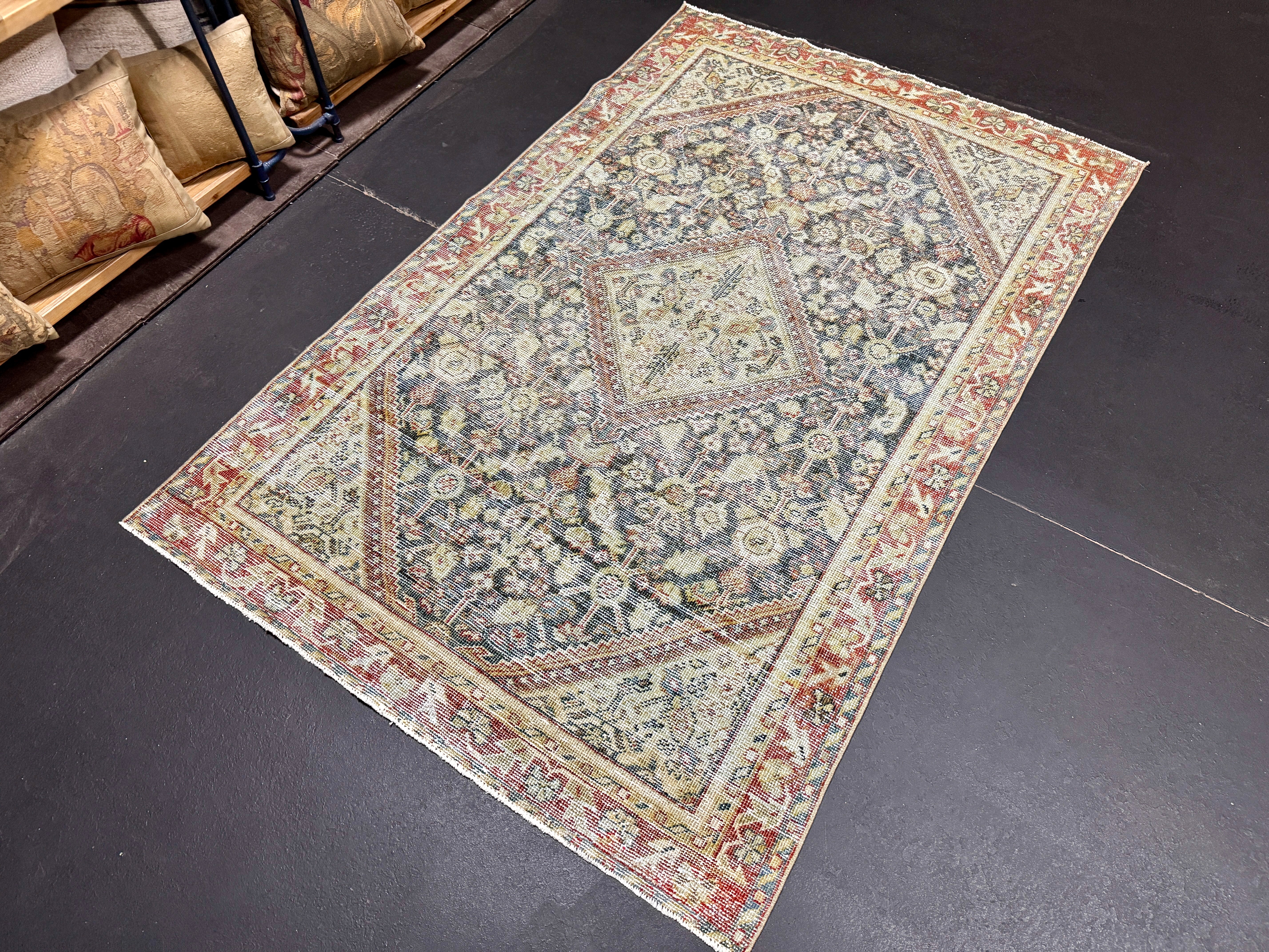 4’2 x 6’6 Classic Vintage Rug Muted Black, Rust, Sage & Bone 5744