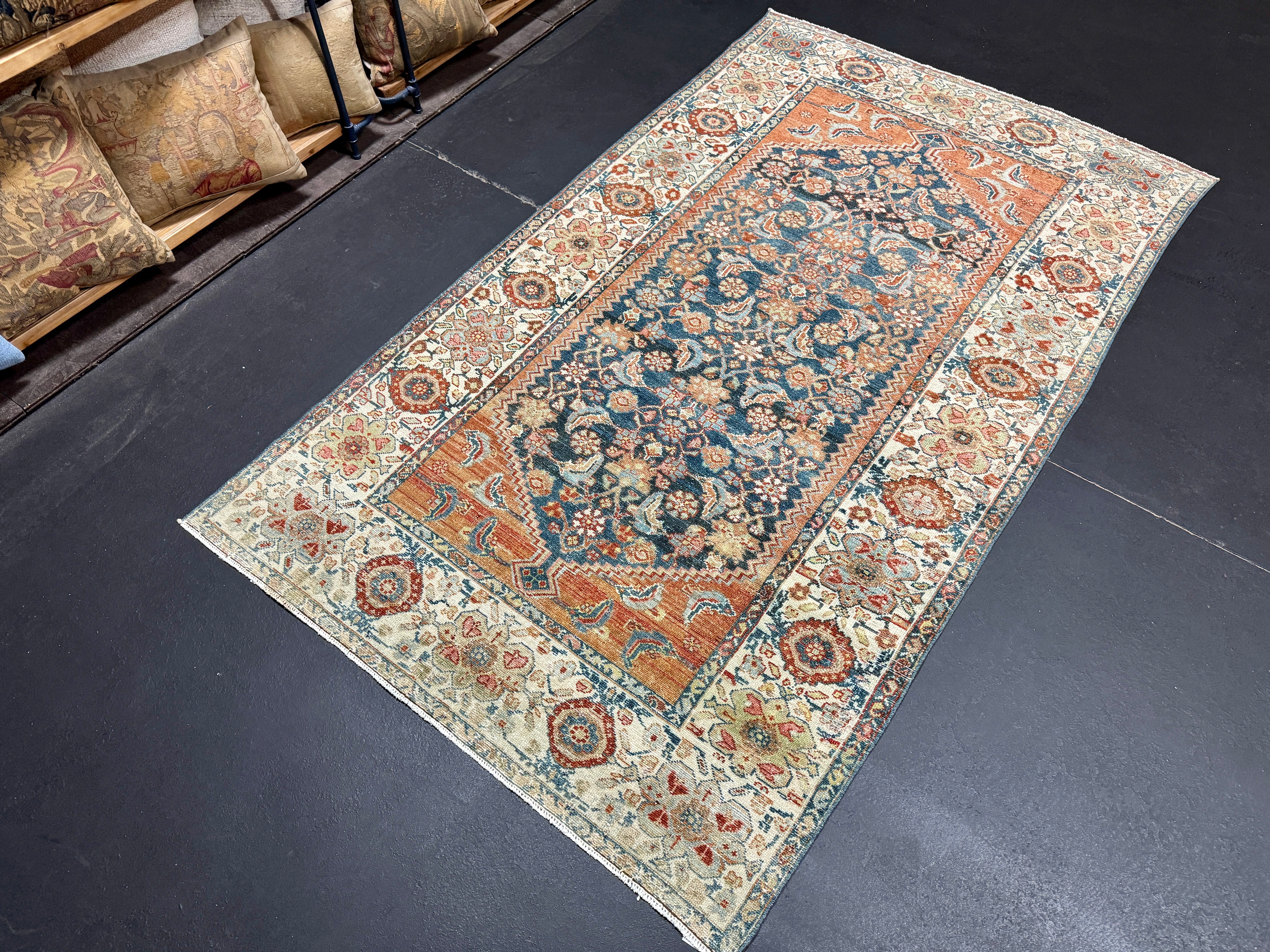 4’3 x 7’4 Classic Vintage Rug Denim, Burnt Orange & Ivory 5745