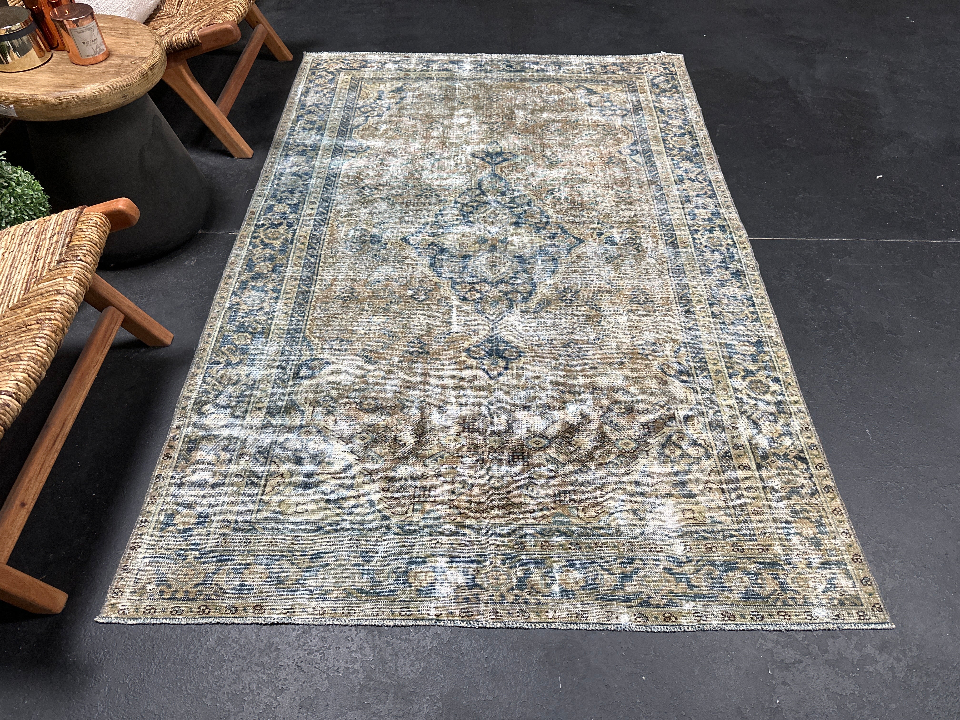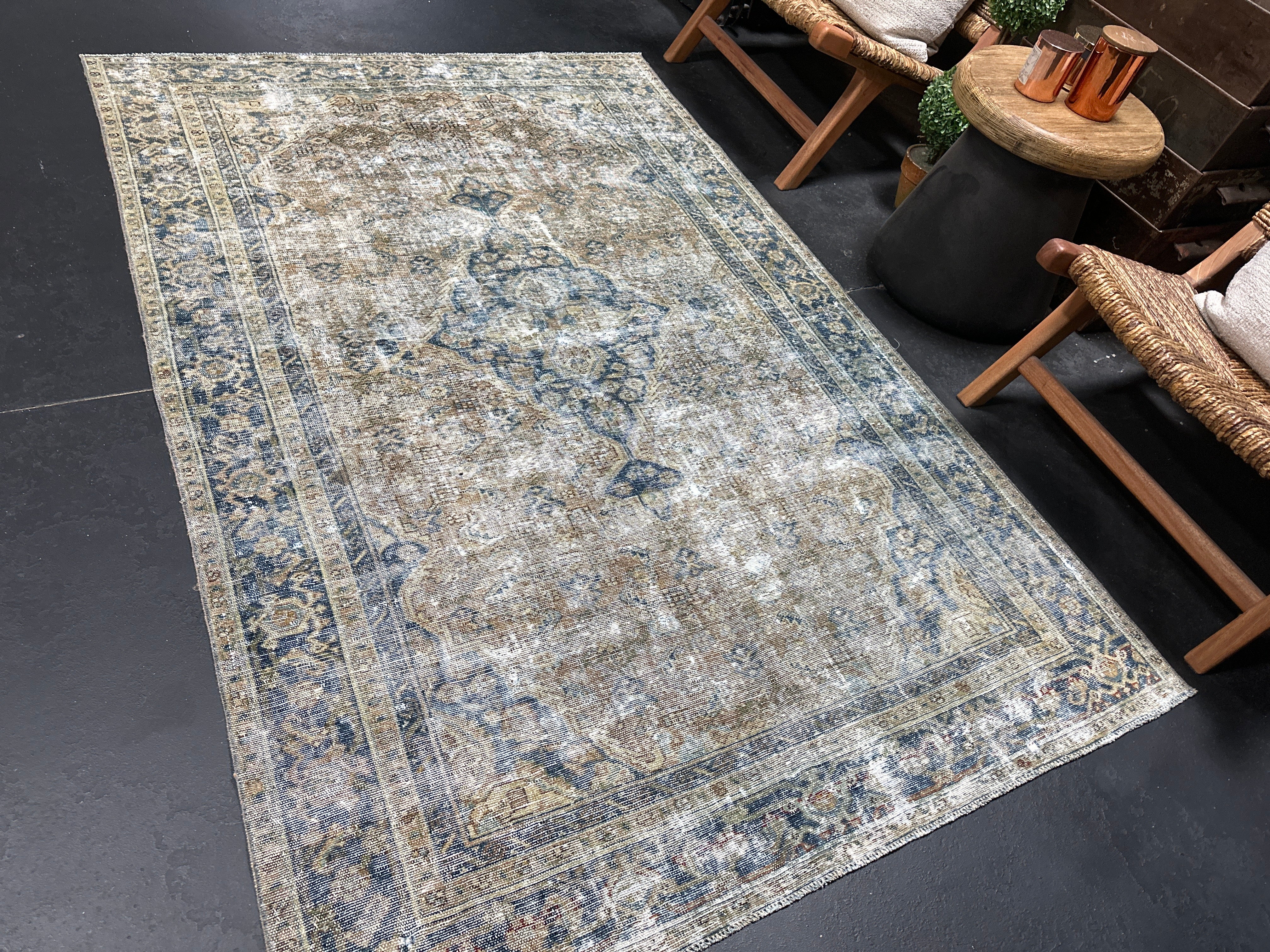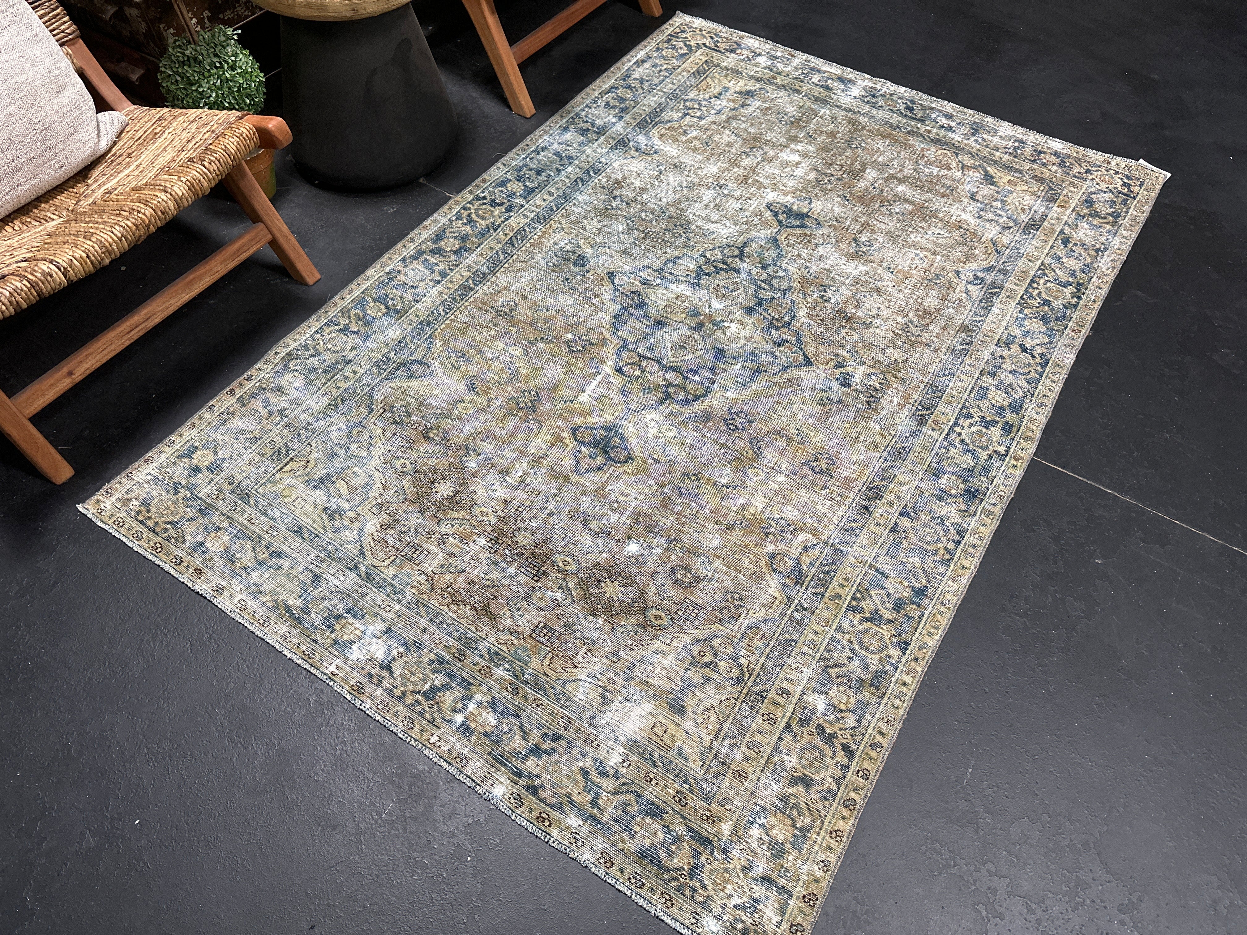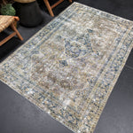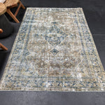 4’5 x 6’8 Classic Antique Rug Muted Indigo Blue, Camel & Gray SB '5244