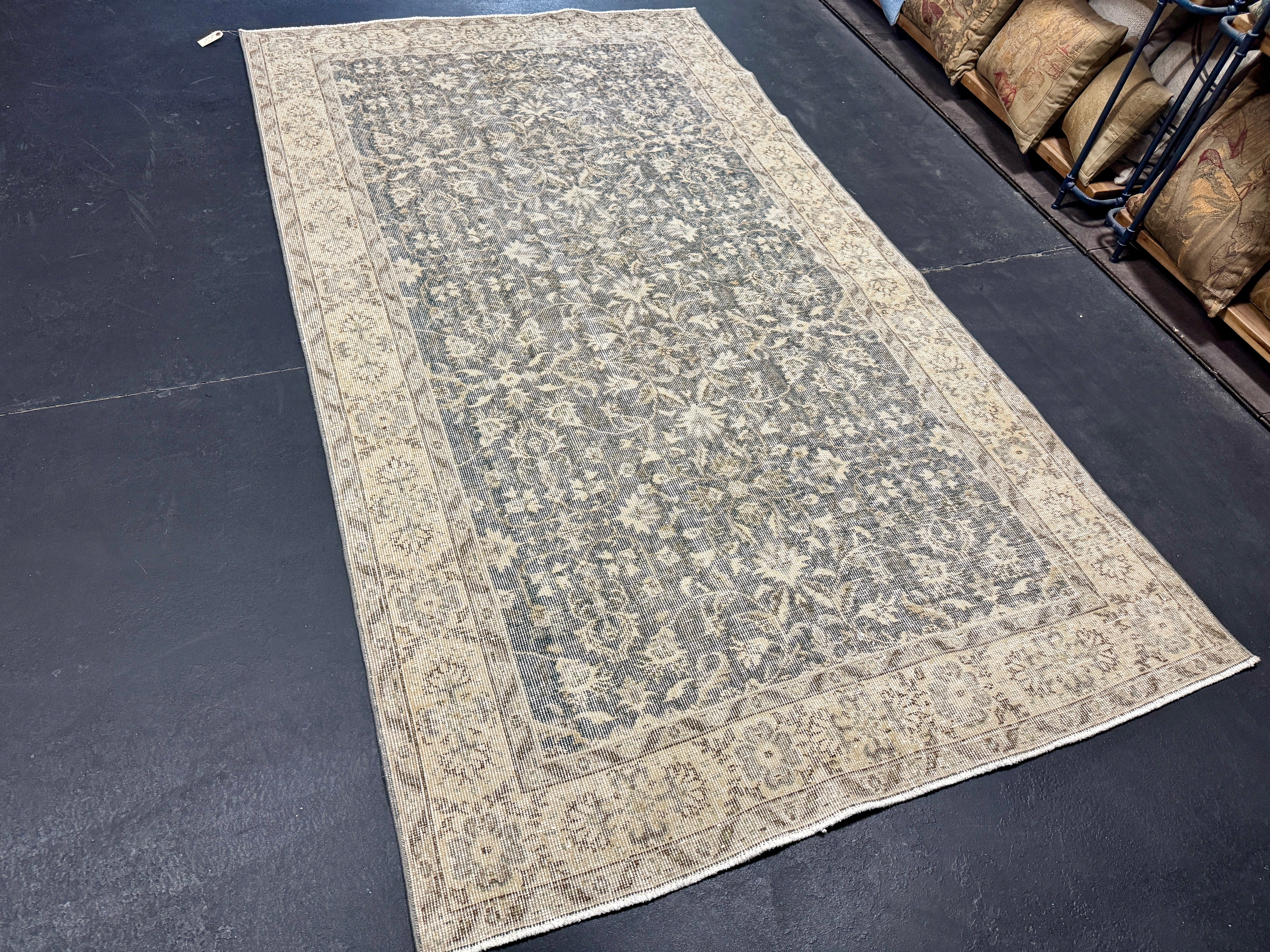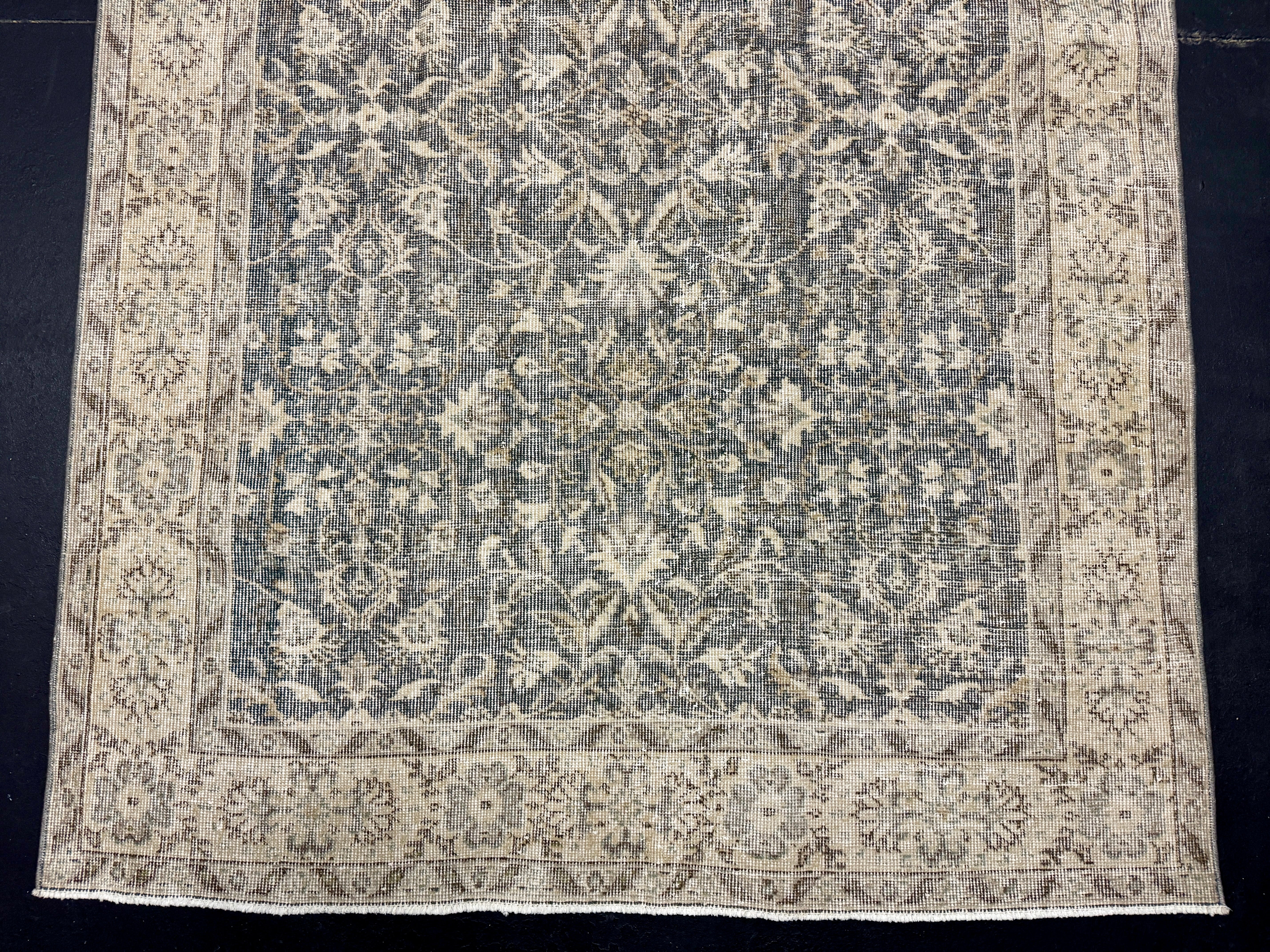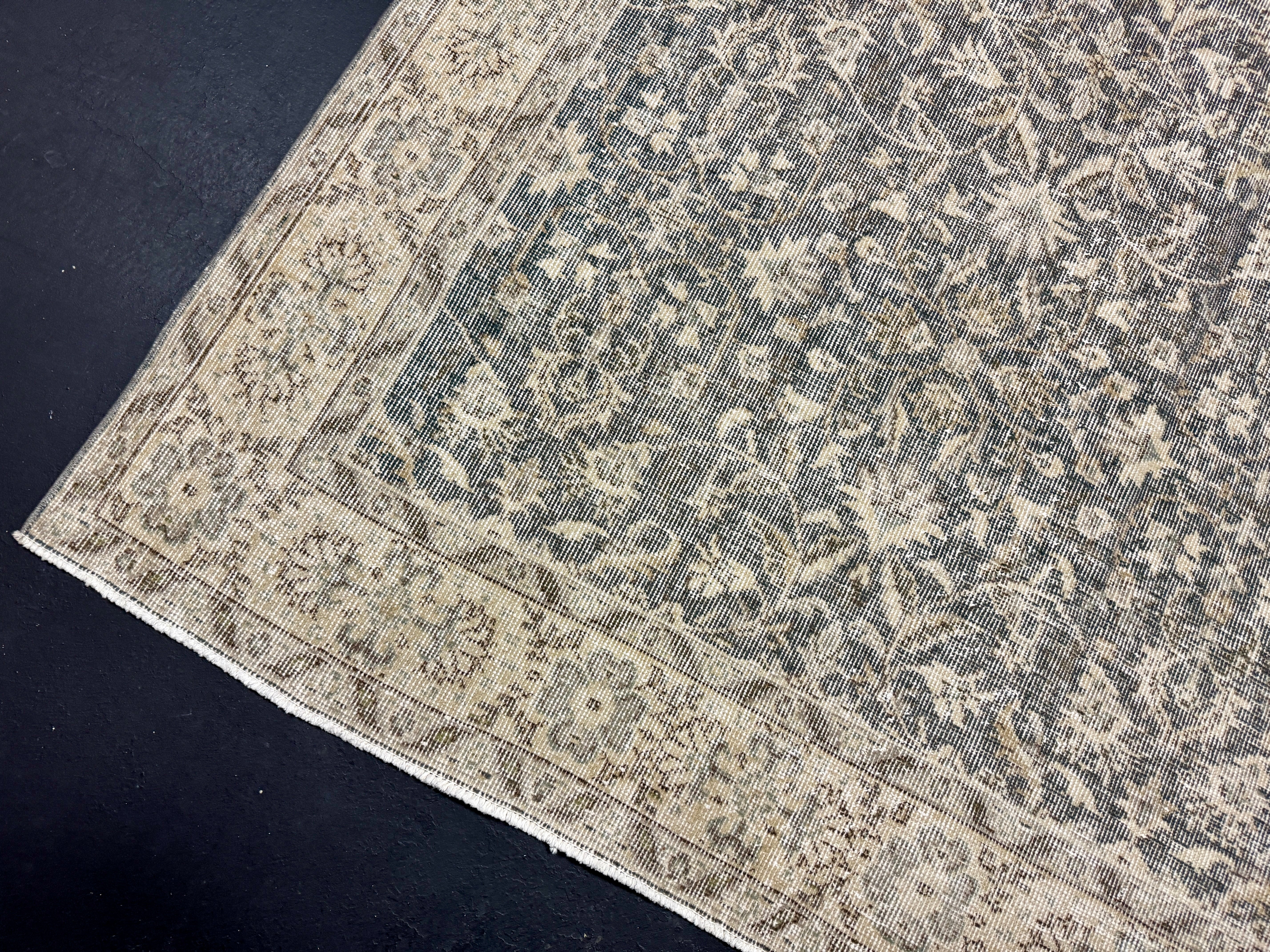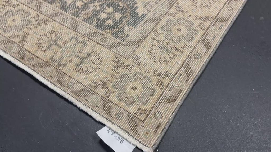 4’8 x 8’5 Vintage Oushak Rug Muted Forest Green and Beige 5760