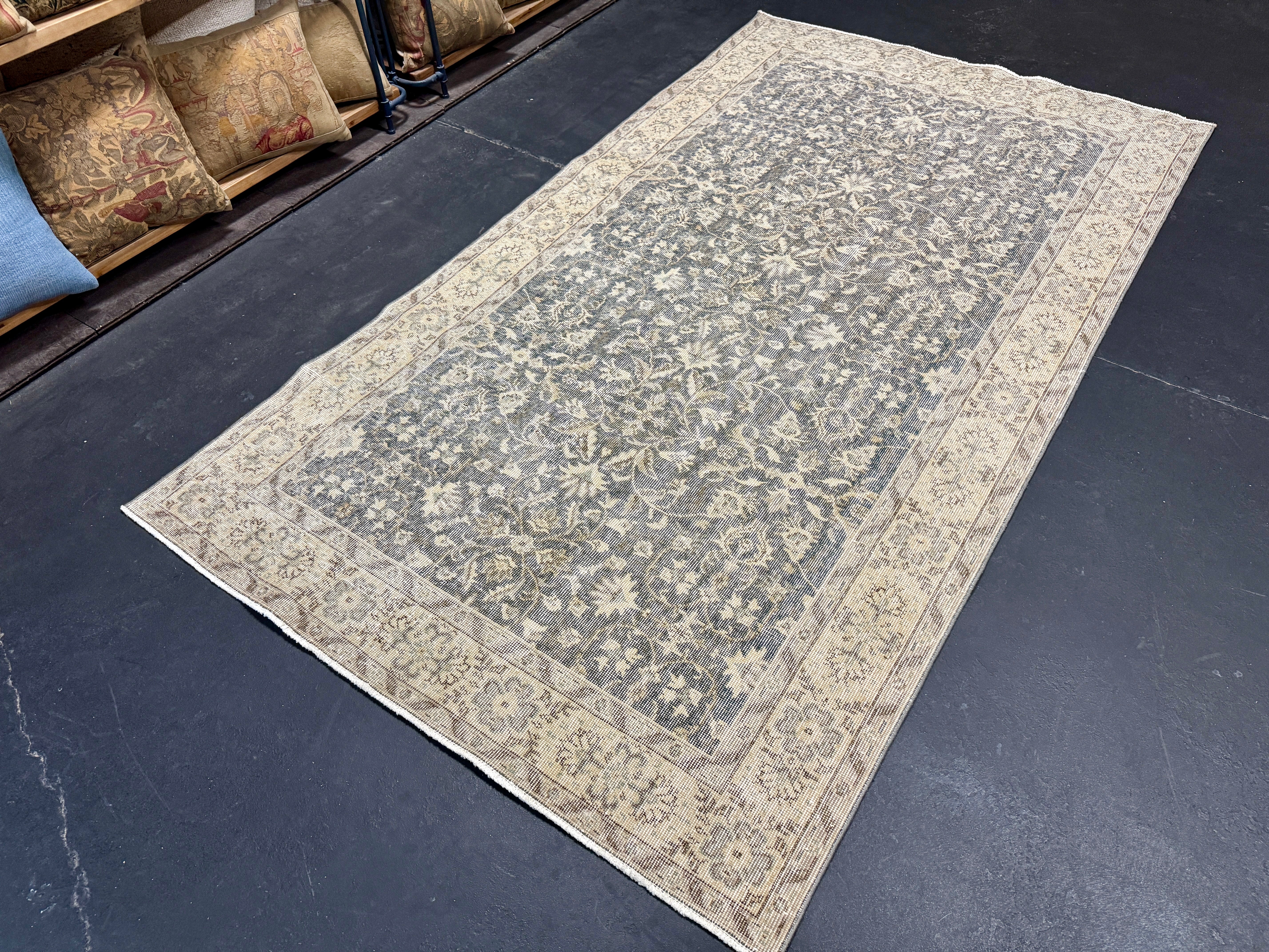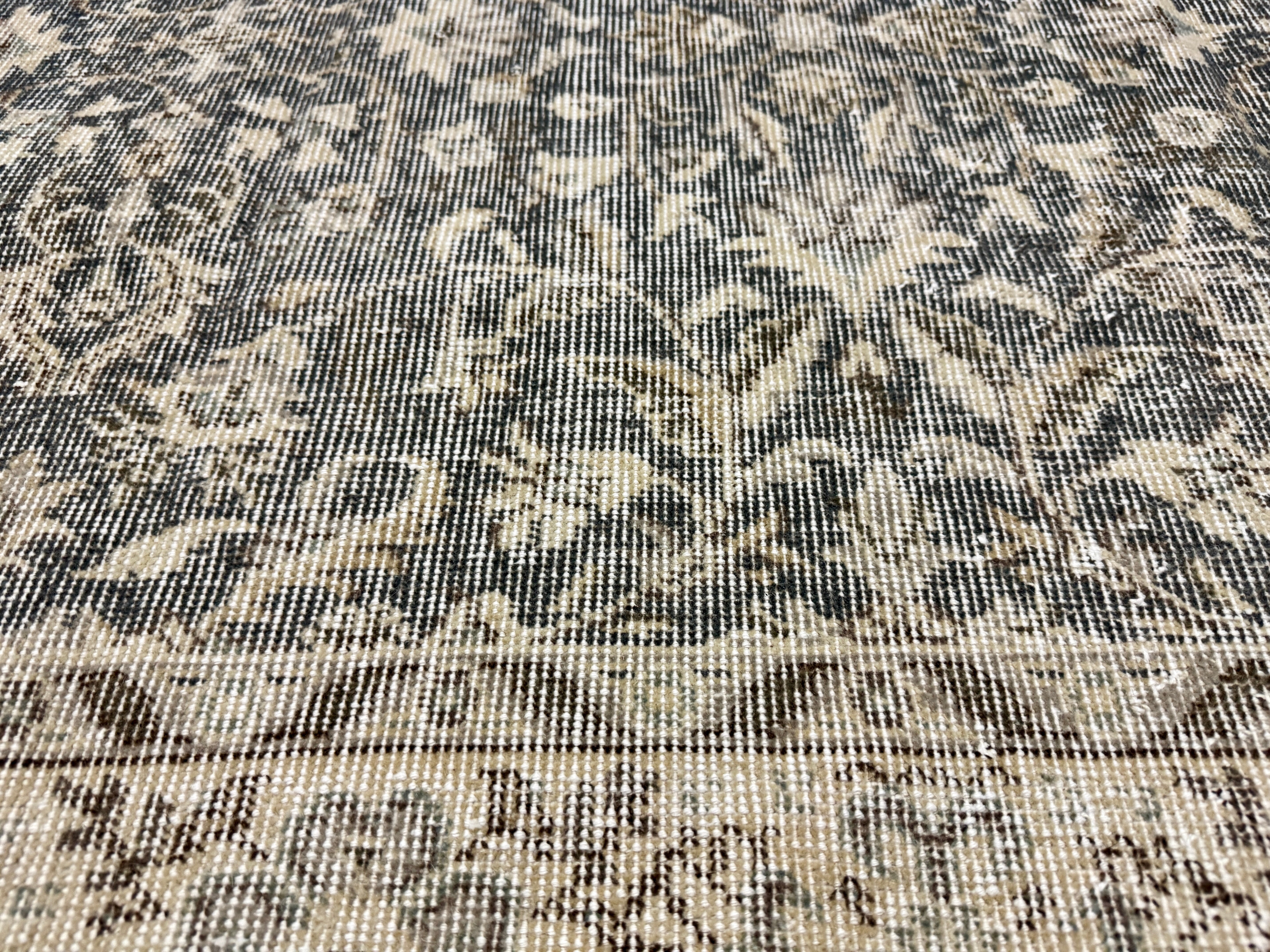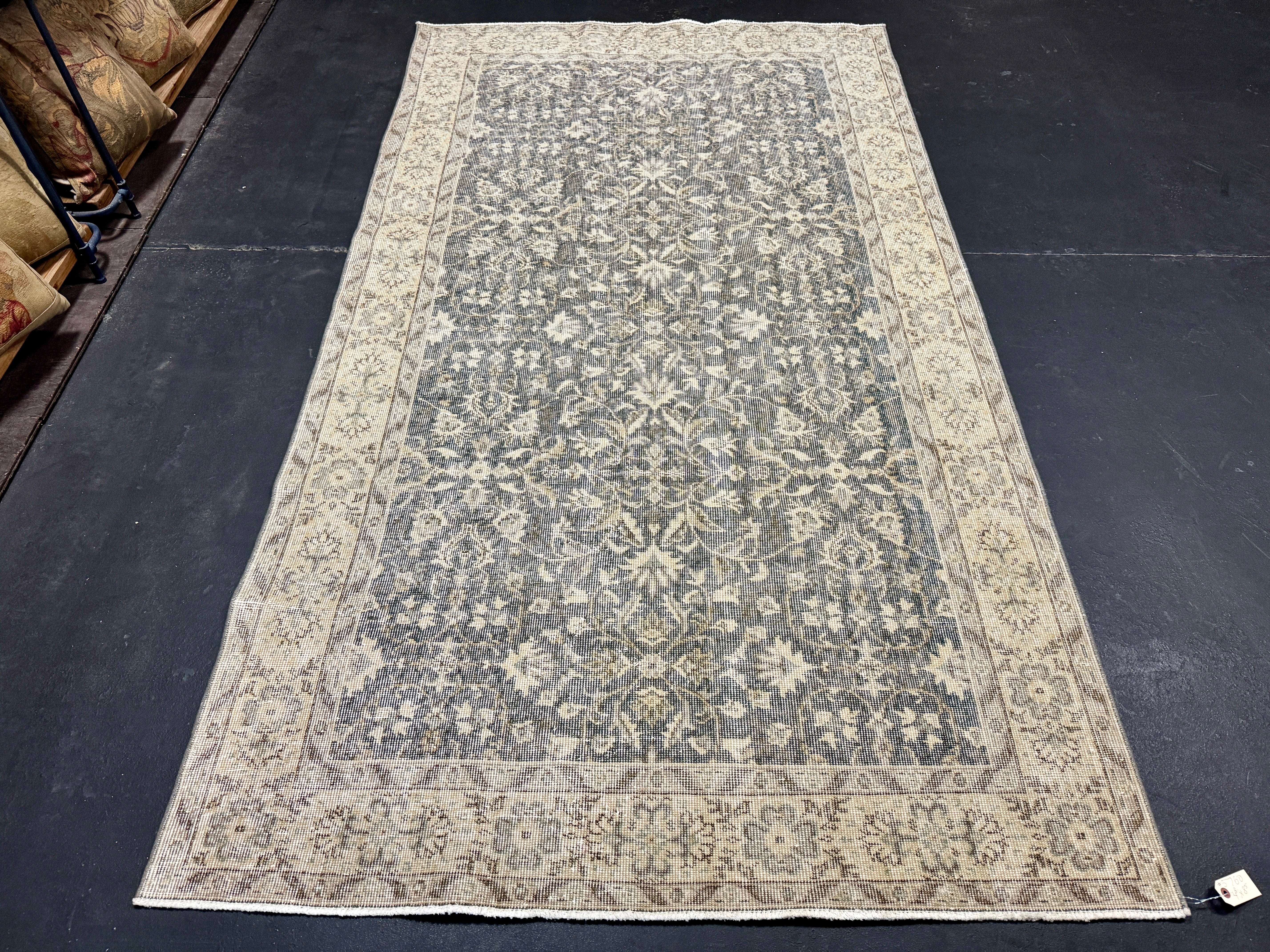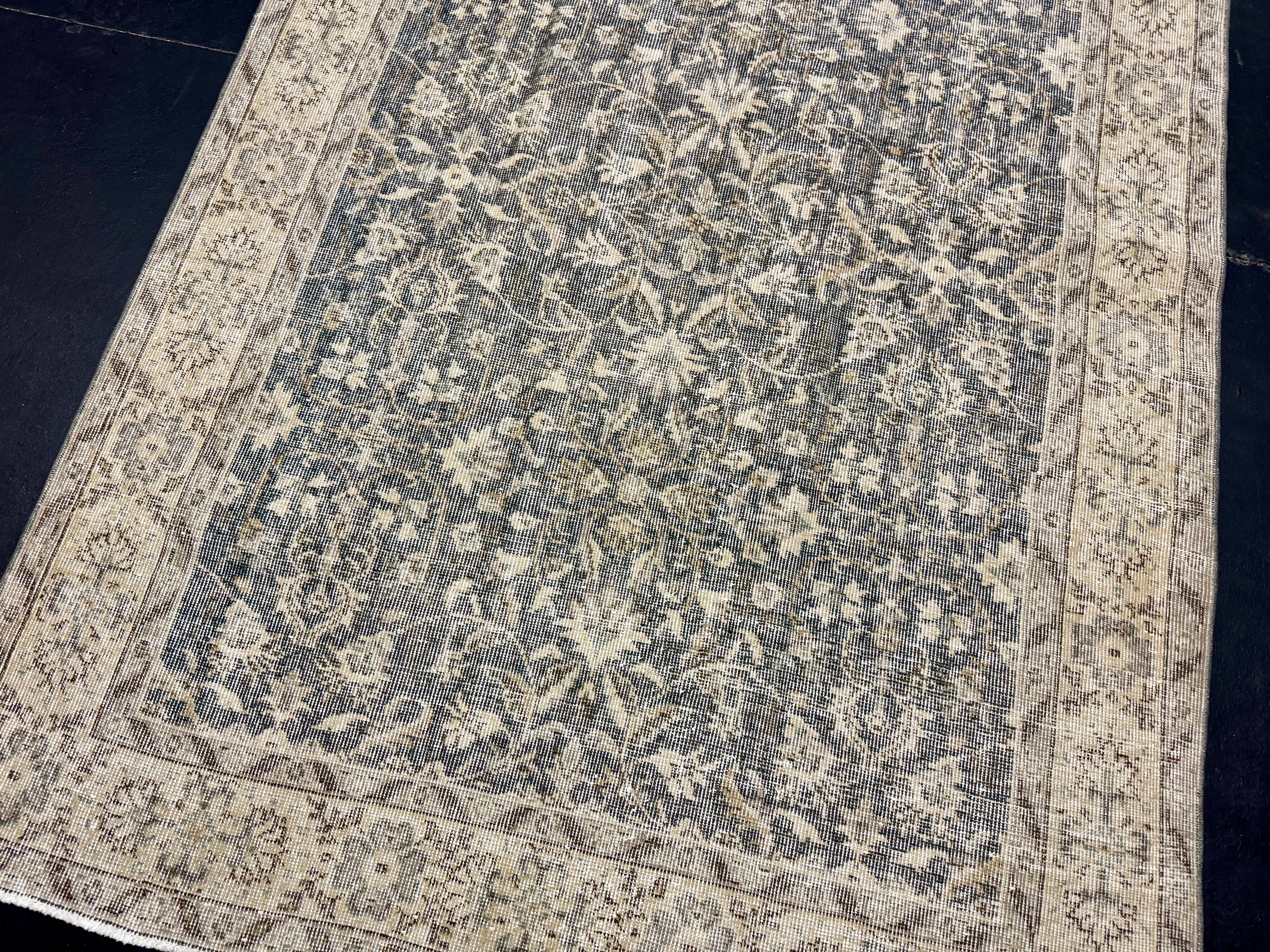 4’8 x 8’5 Vintage Oushak Rug Muted Forest Green and Beige 5760