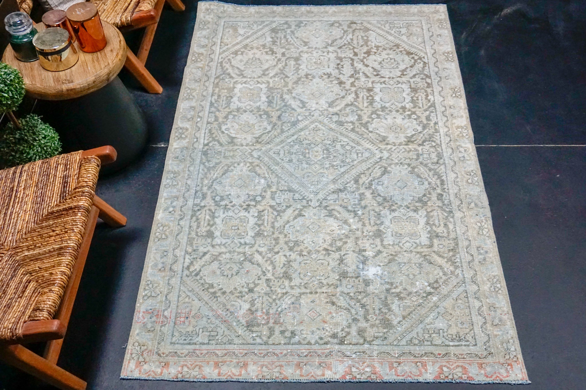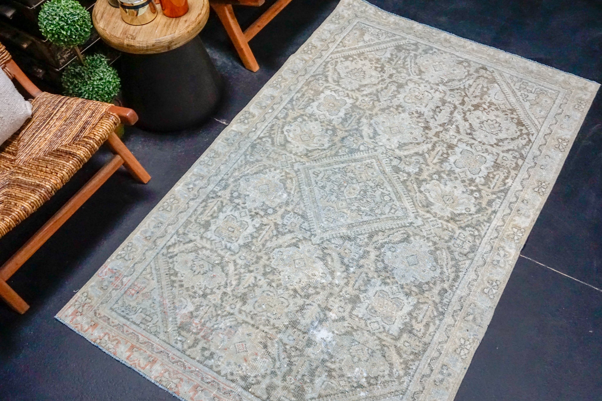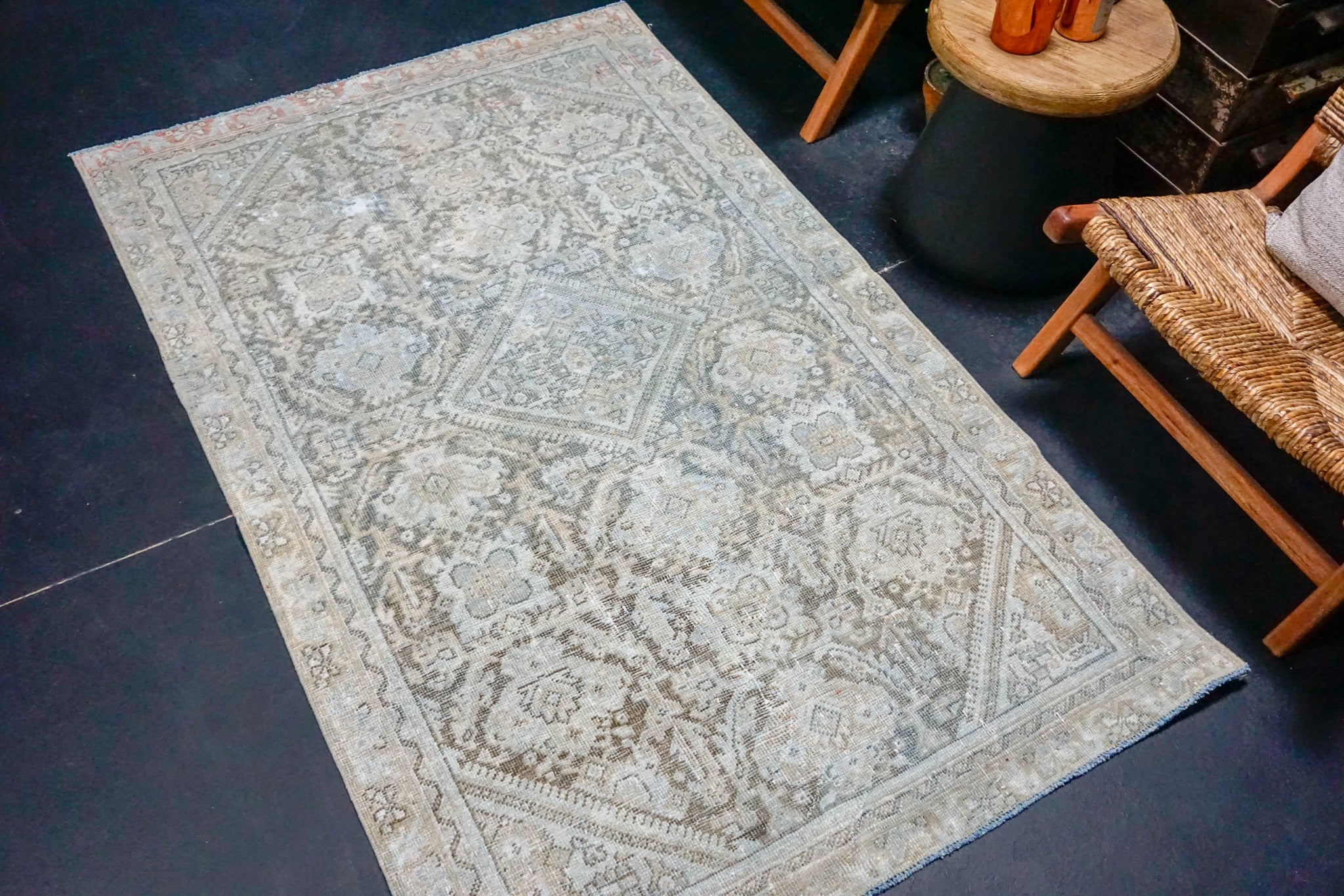4’ x 6’4 Classic Antique Rug Muted Eggshell Blue, Camel Beige + Taupe SB '4296