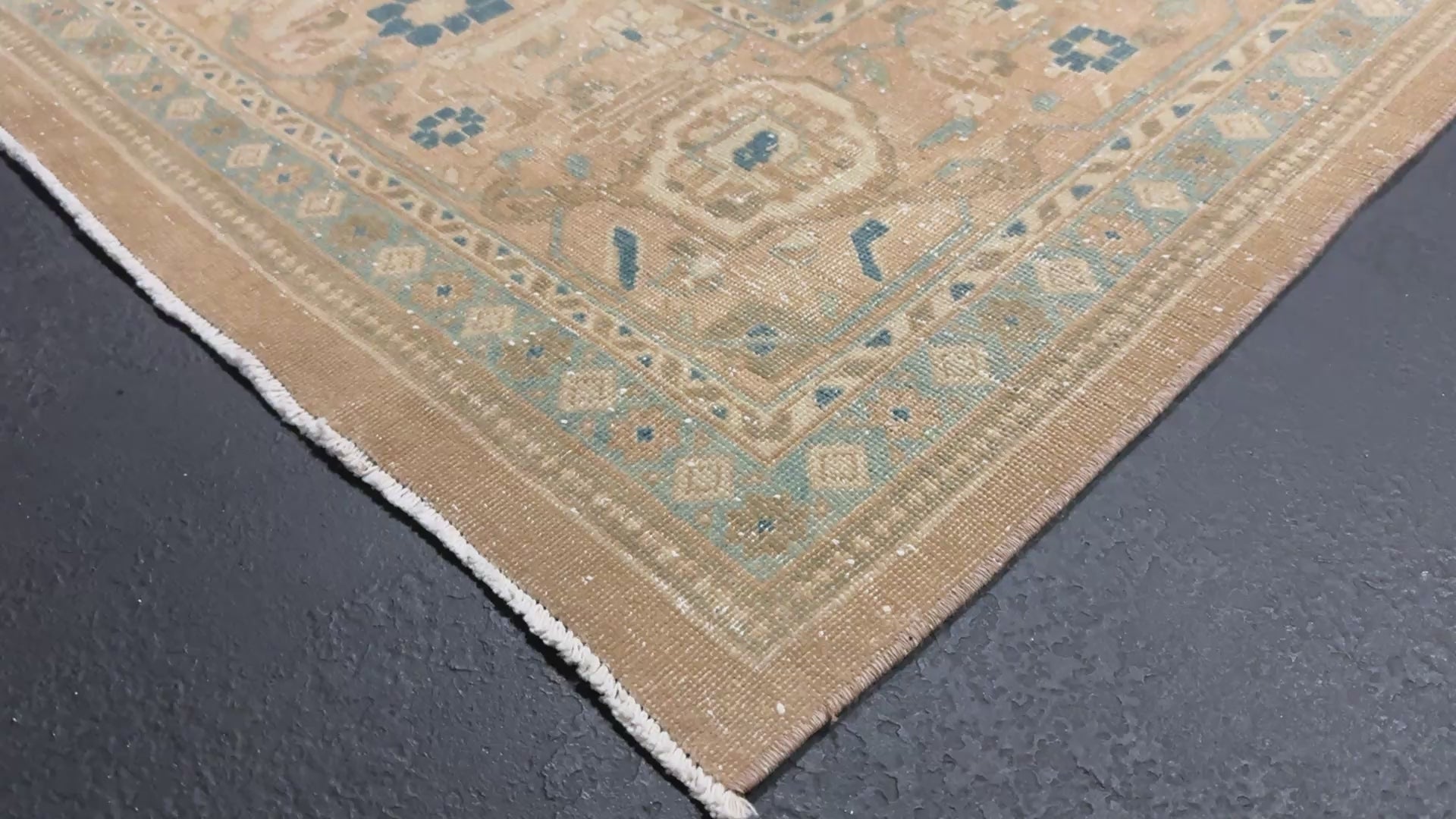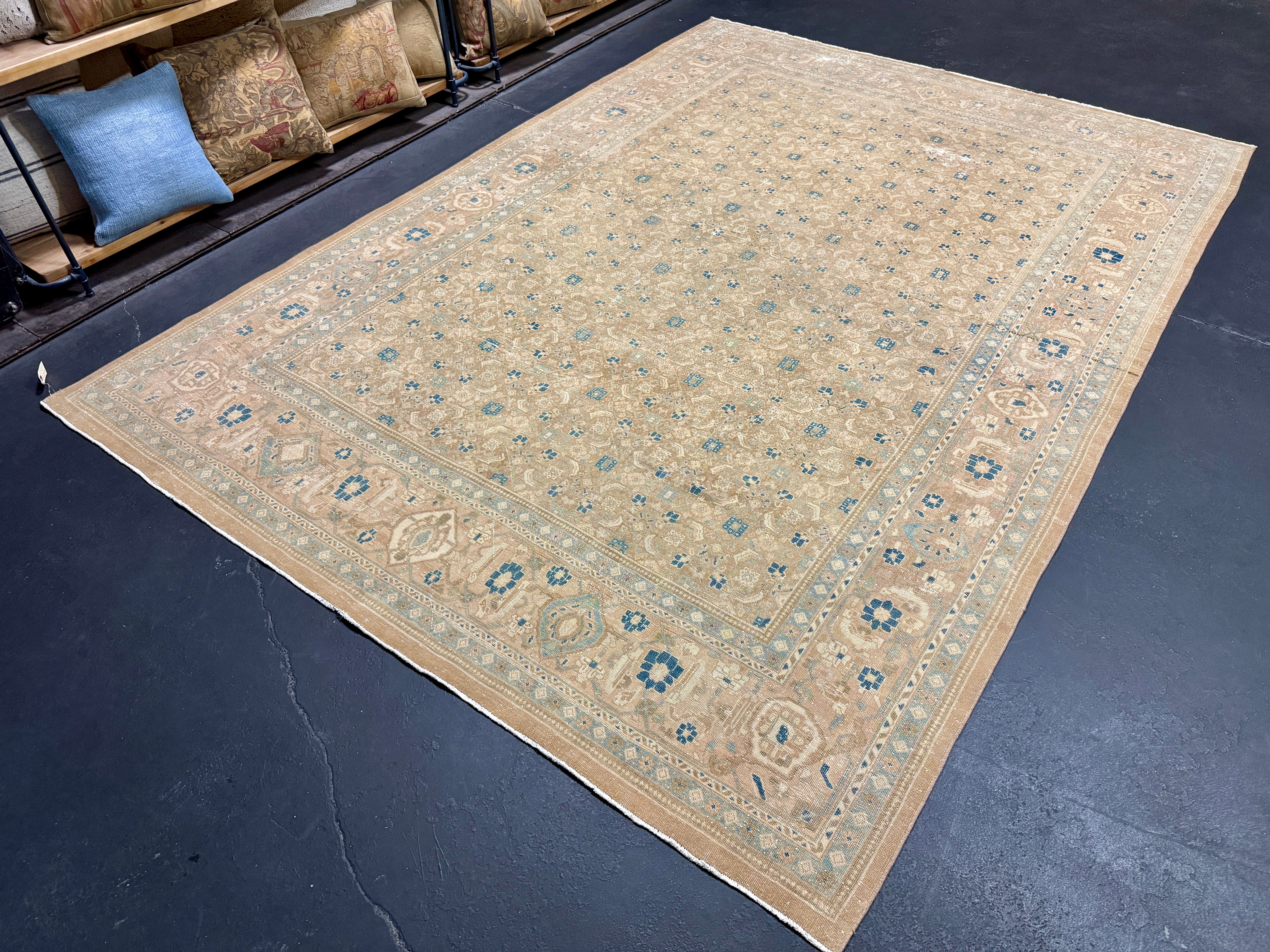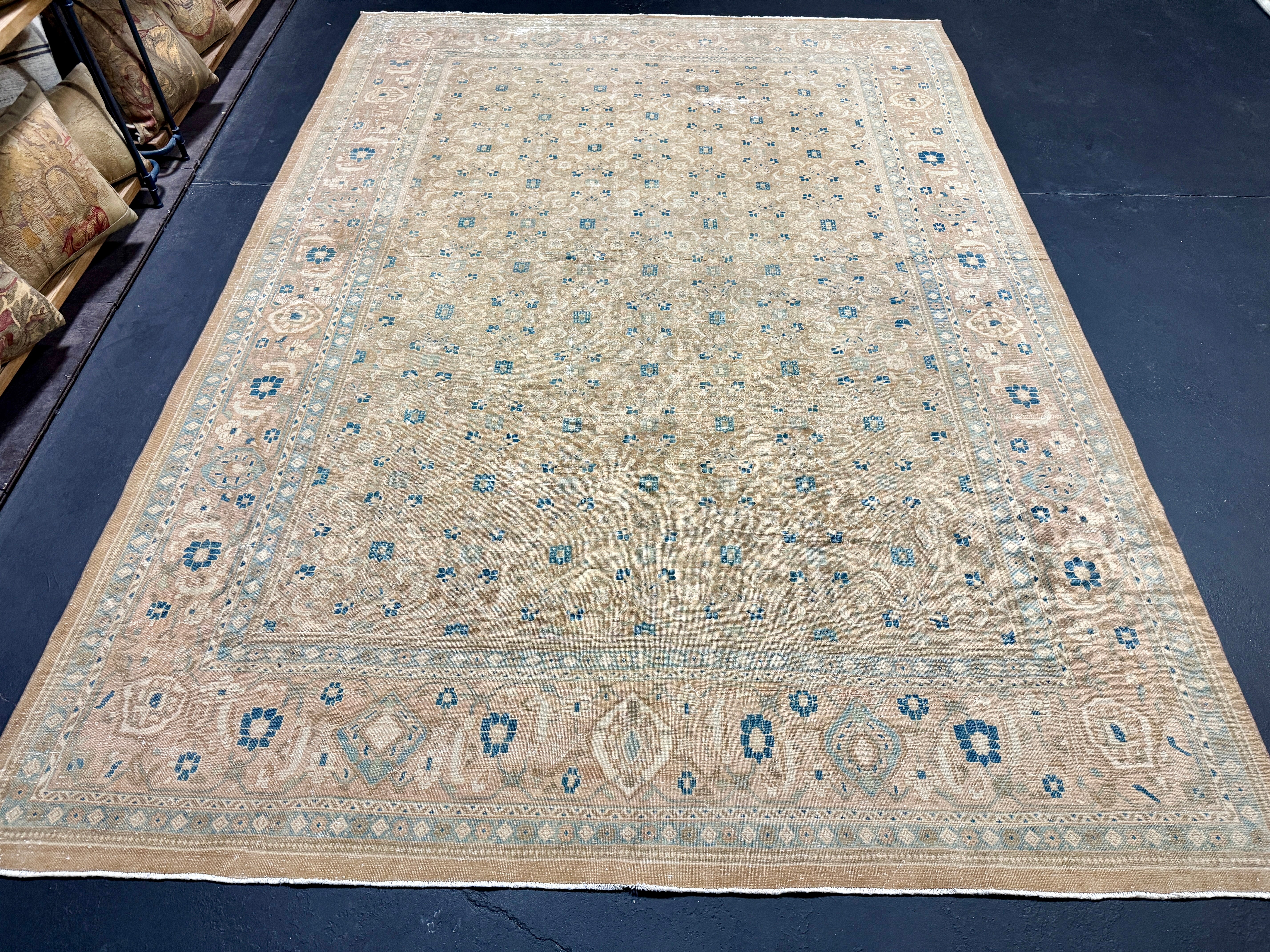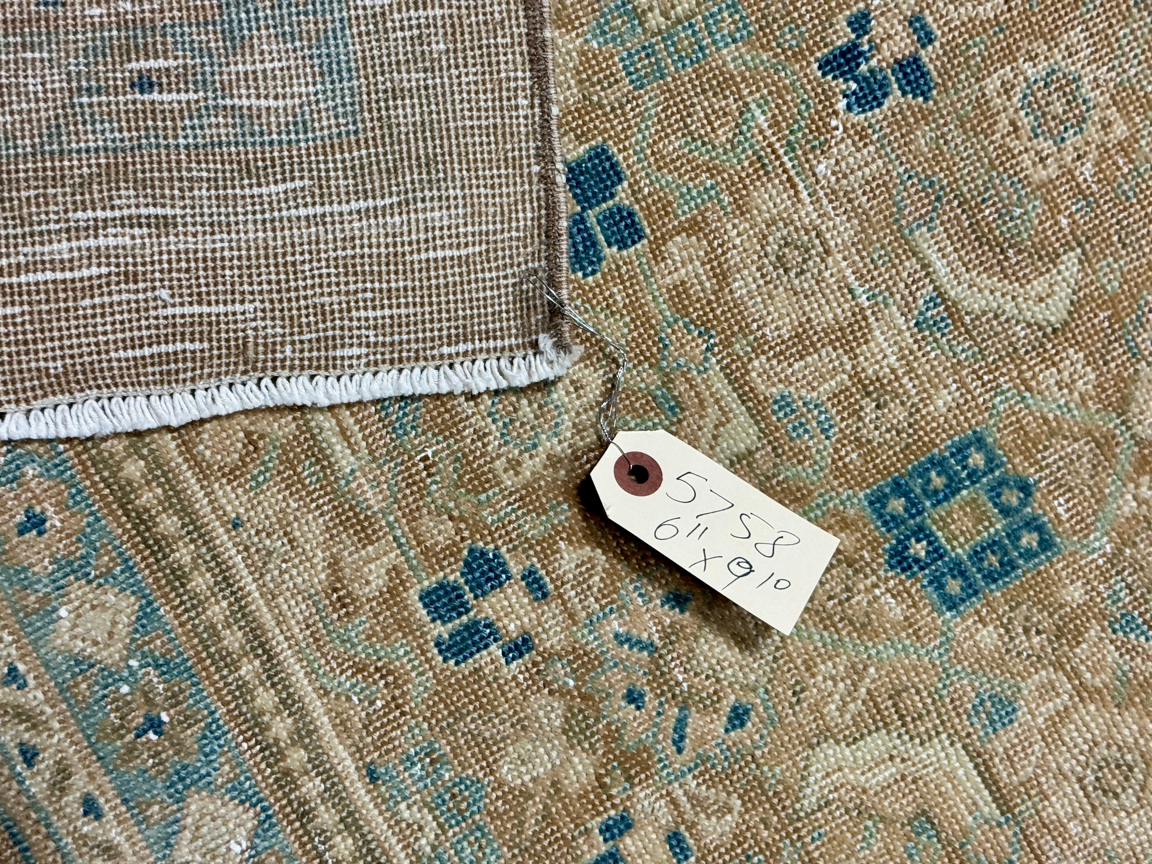 6’11 x 9’10 Classic Vintage Tabriz Rug Muted Camel Beige, Sand Beige & Blue 5758