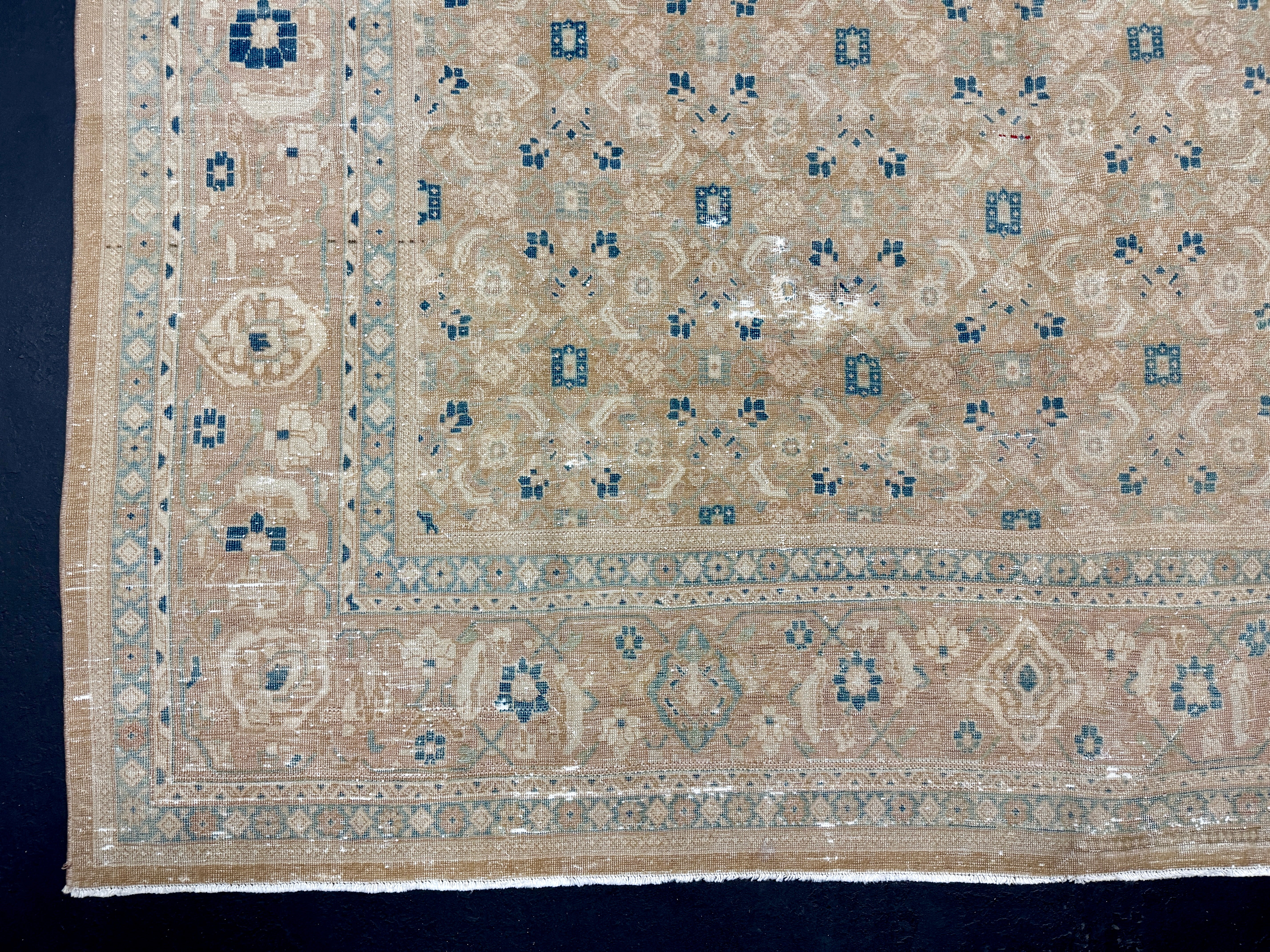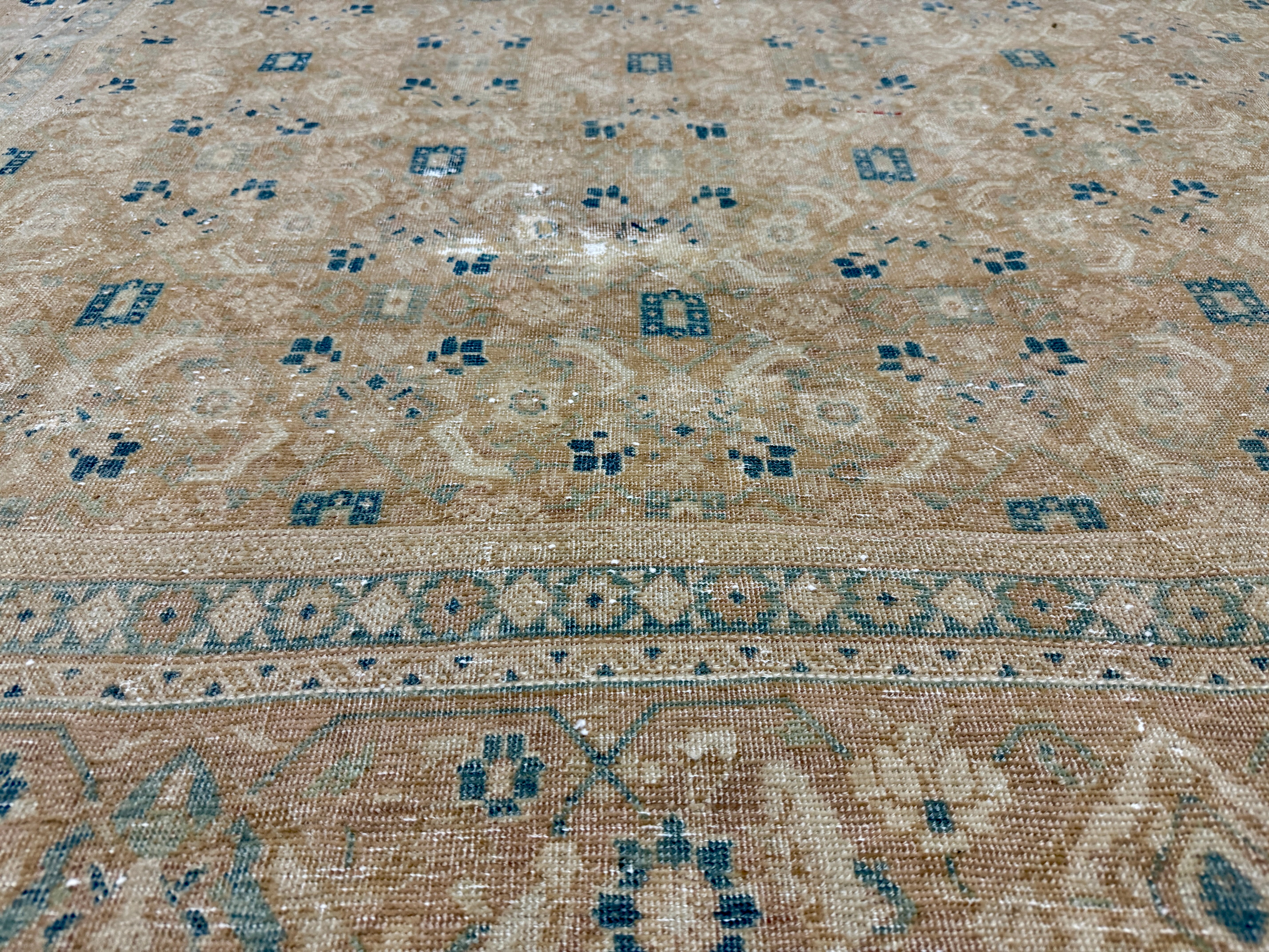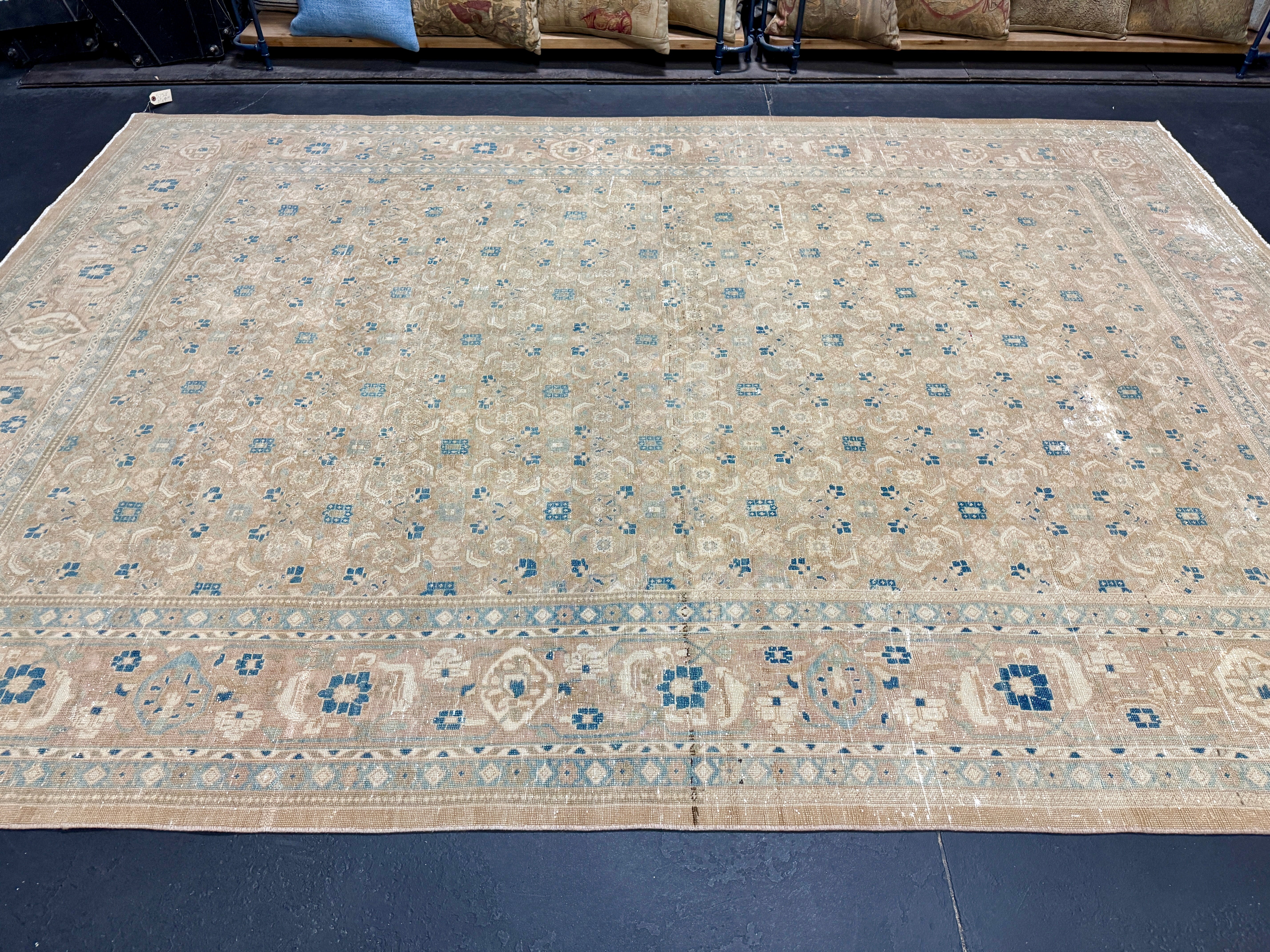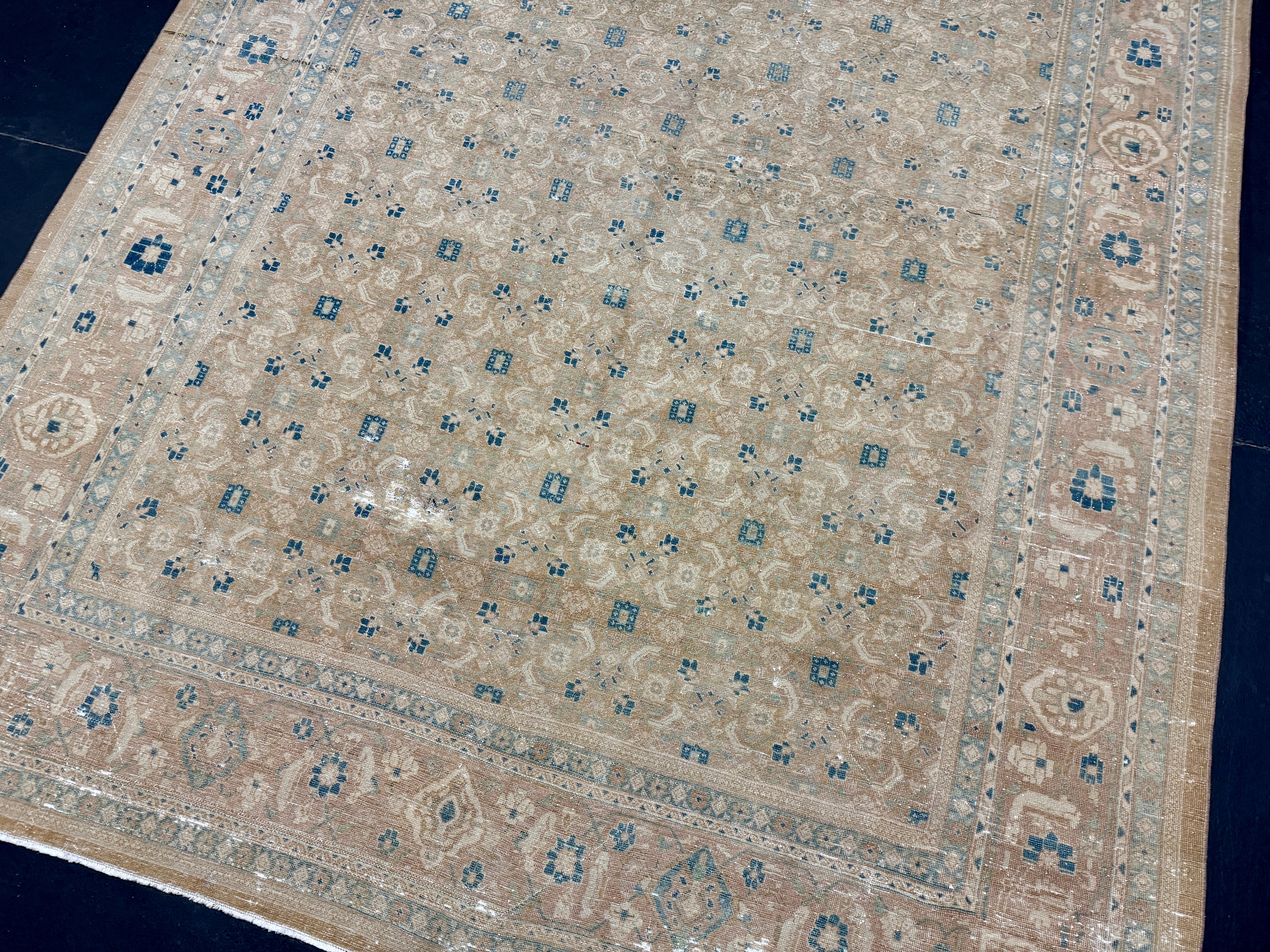 6’11 x 9’10 Classic Vintage Tabriz Rug Muted Camel Beige, Sand Beige & Blue 5758