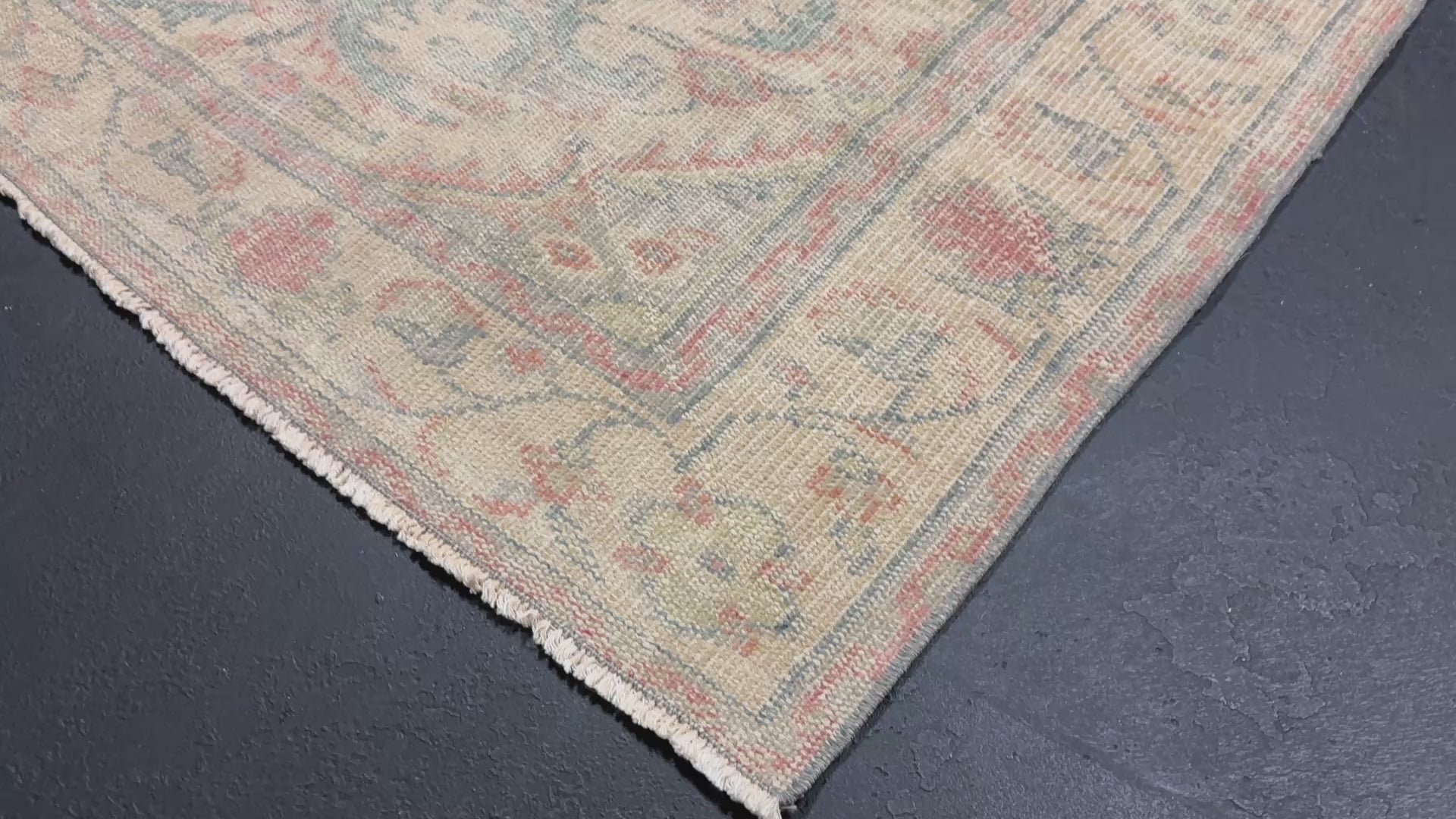 From the Oushak region of Turkey. This vintage Oushak rug is pure wool on a cotton foundation.