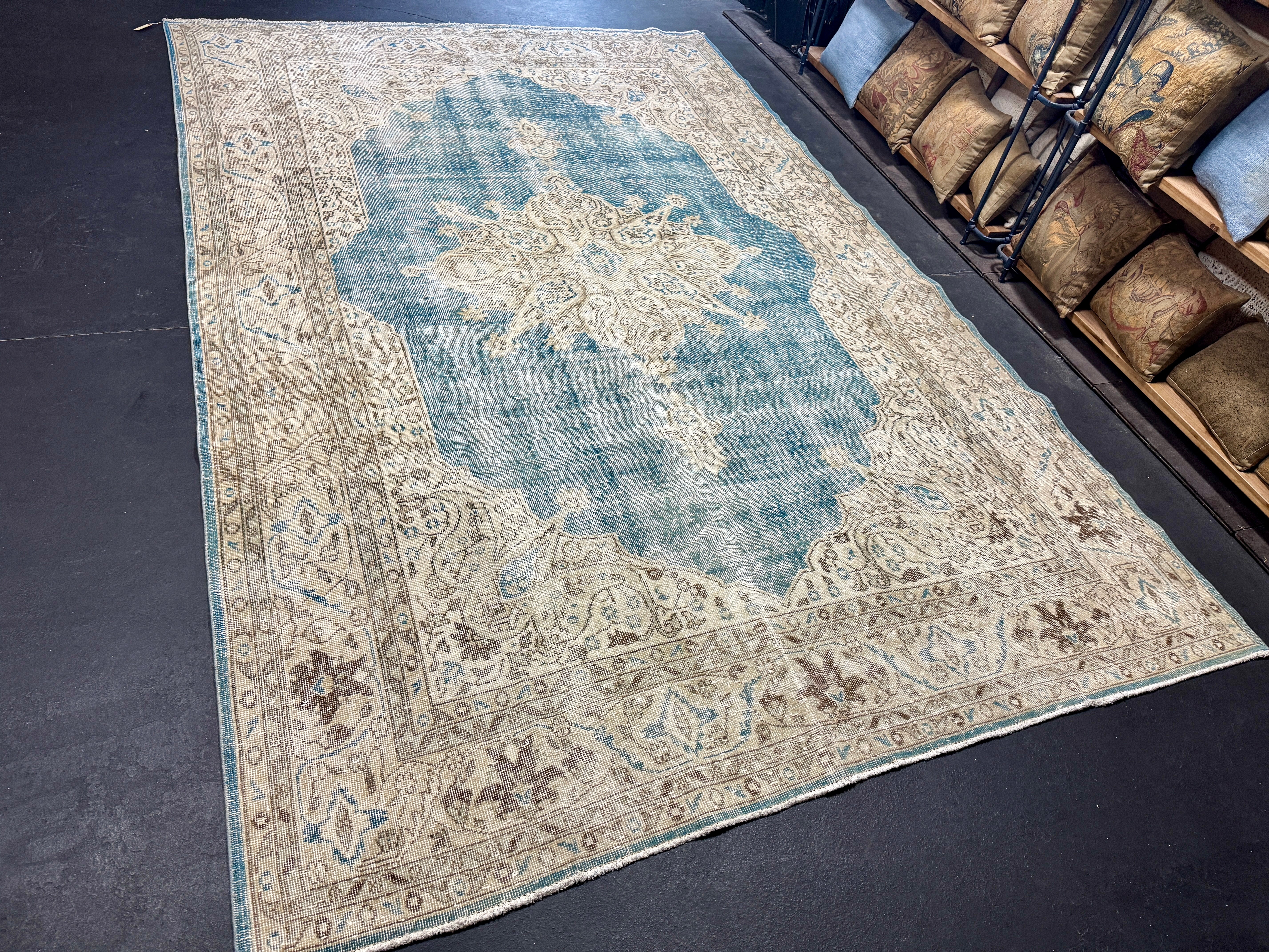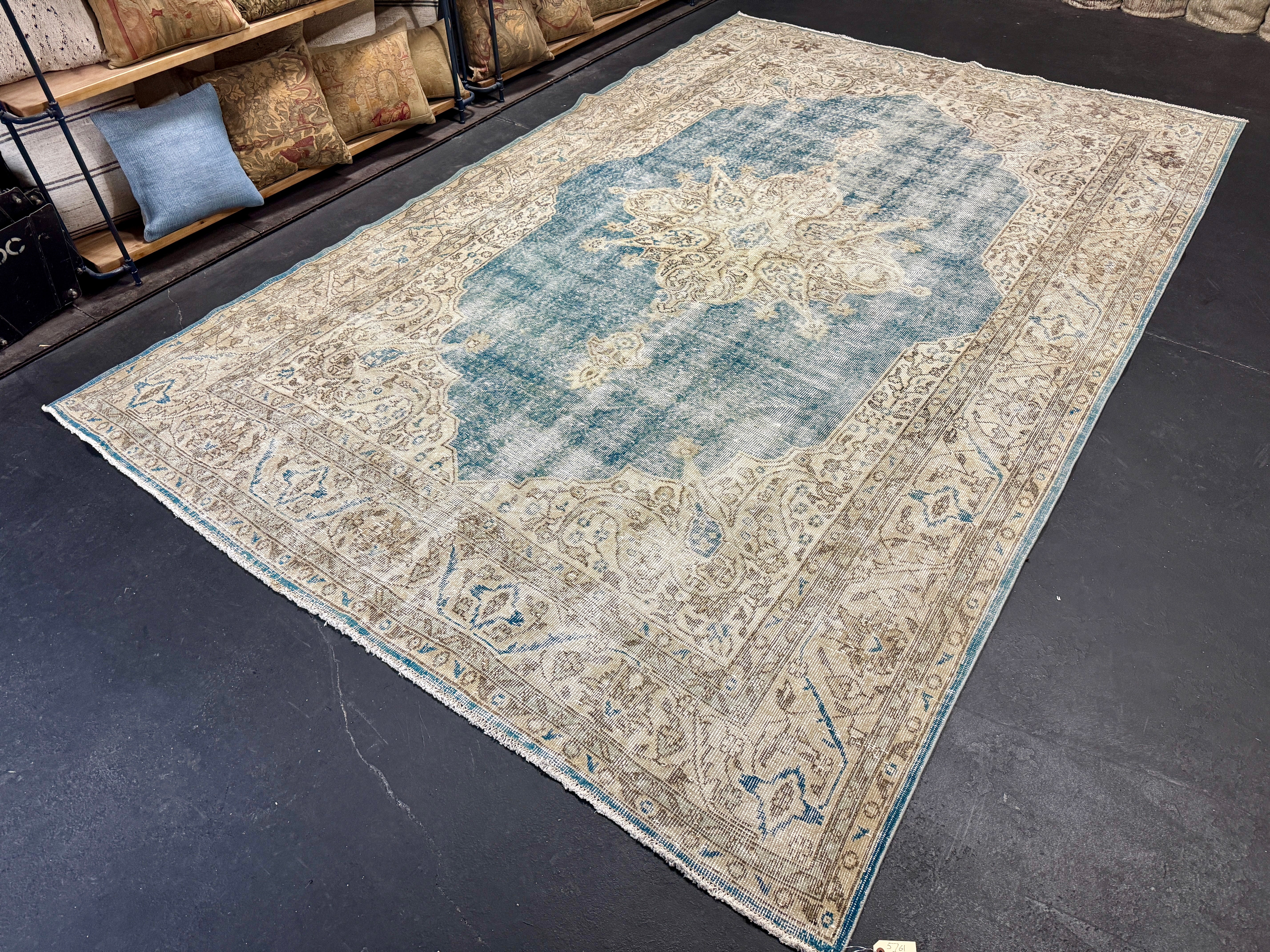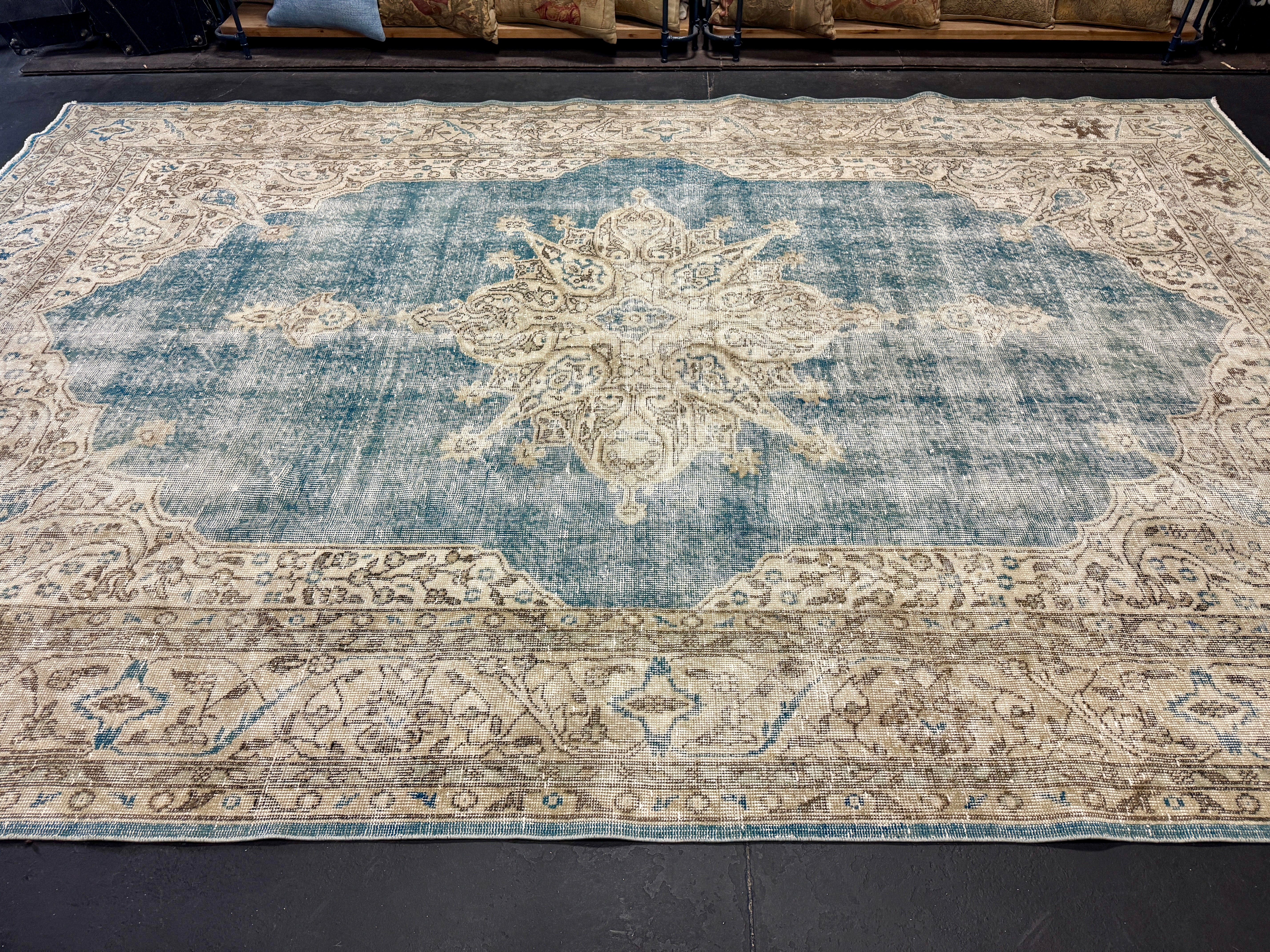 7’7 x 11’10 Classic Vintage Rug Muted Sea Blue, Beige + Brown 5761