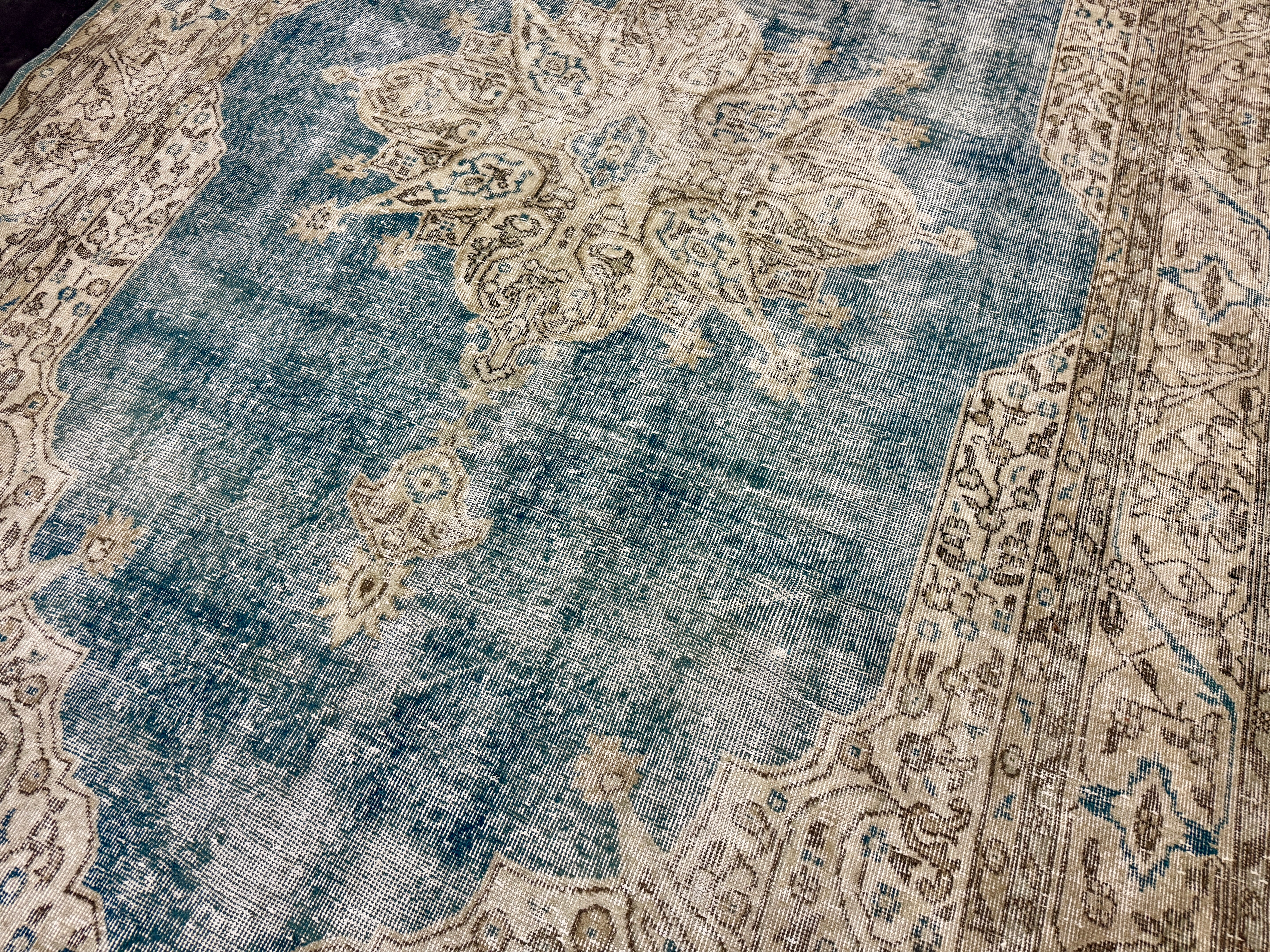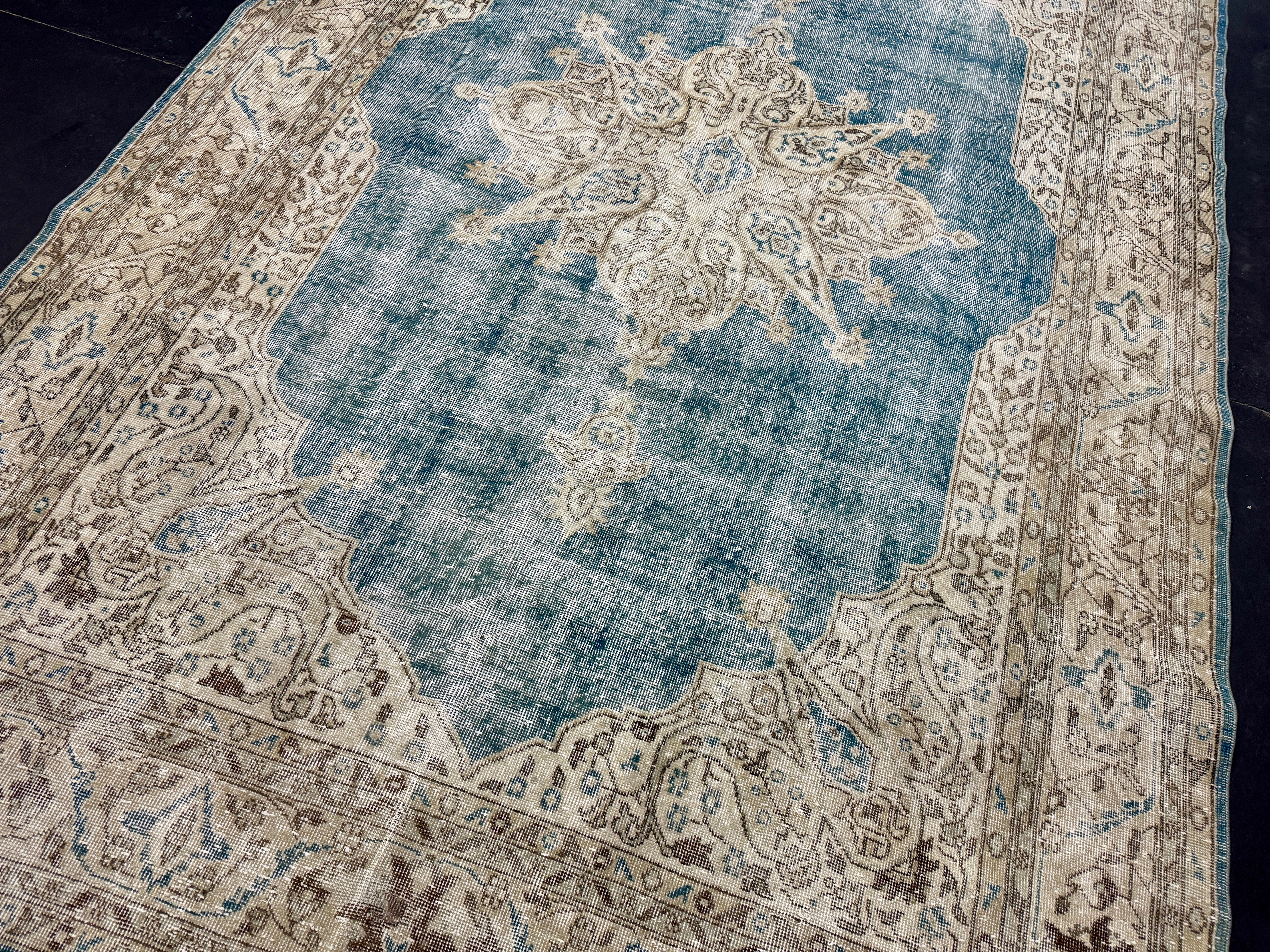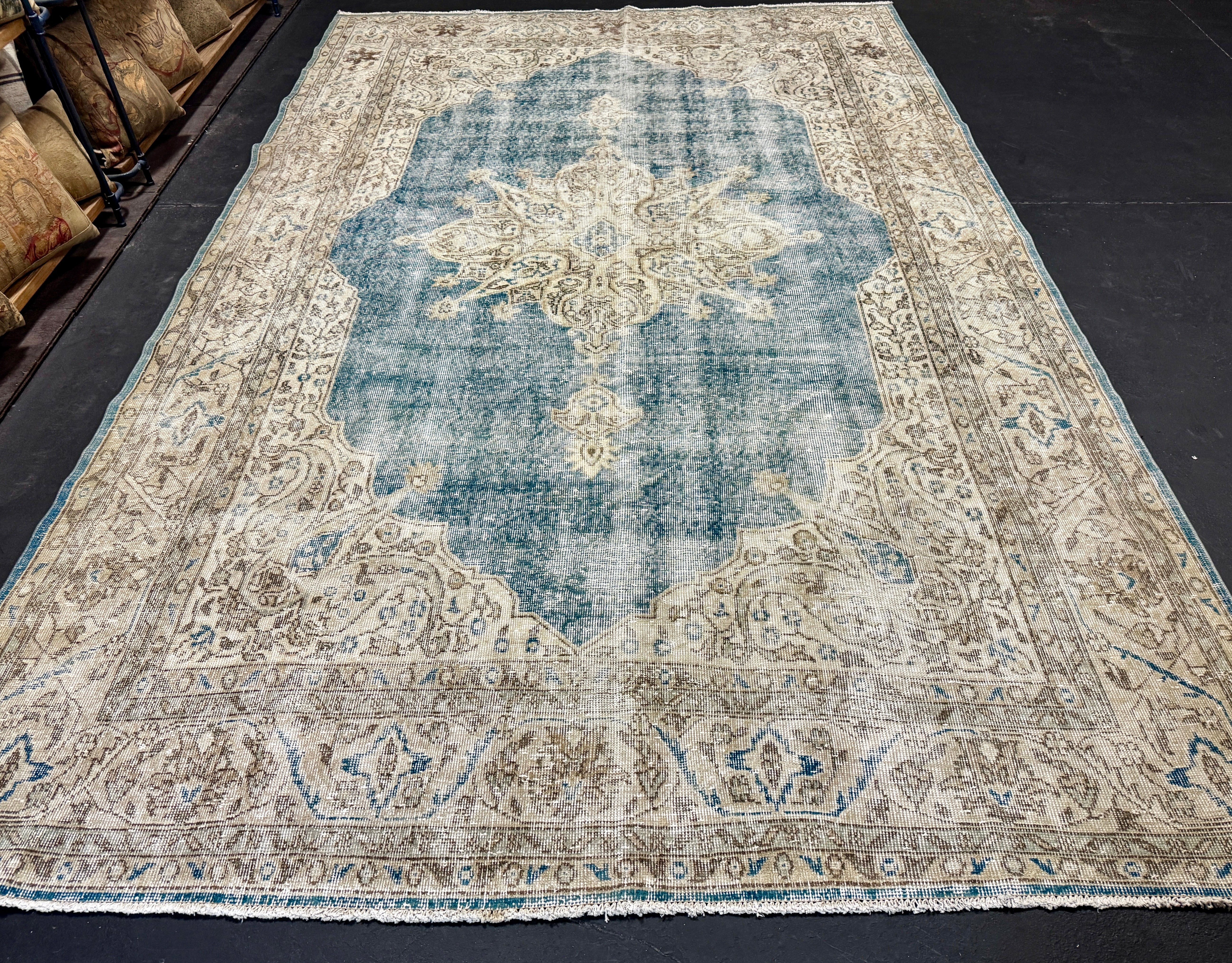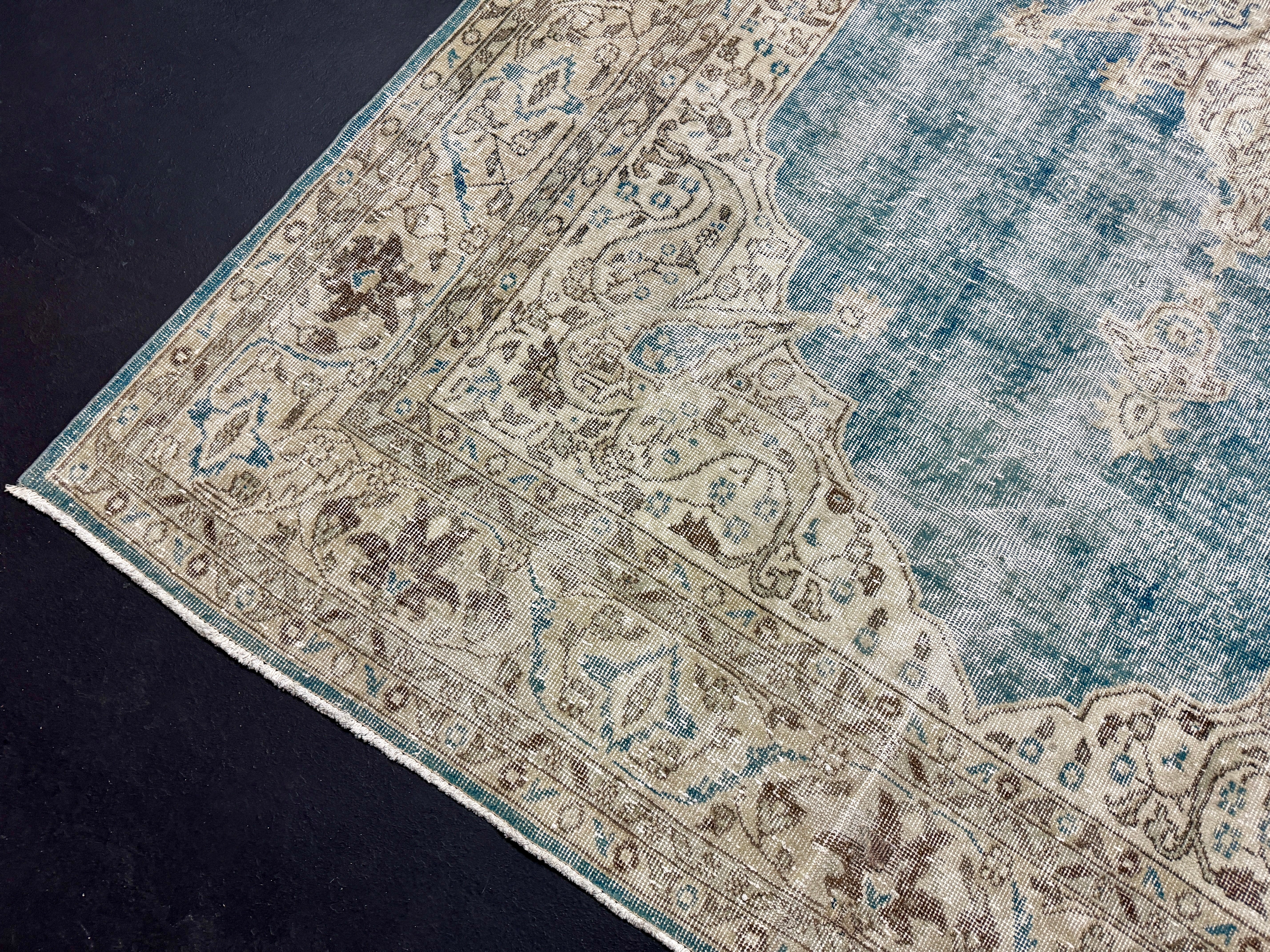 7’7 x 11’10 Classic Vintage Rug Muted Sea Blue, Beige + Brown 5761