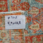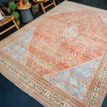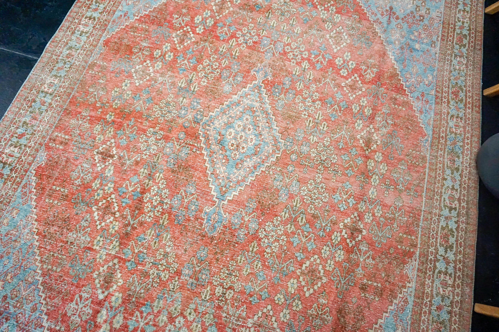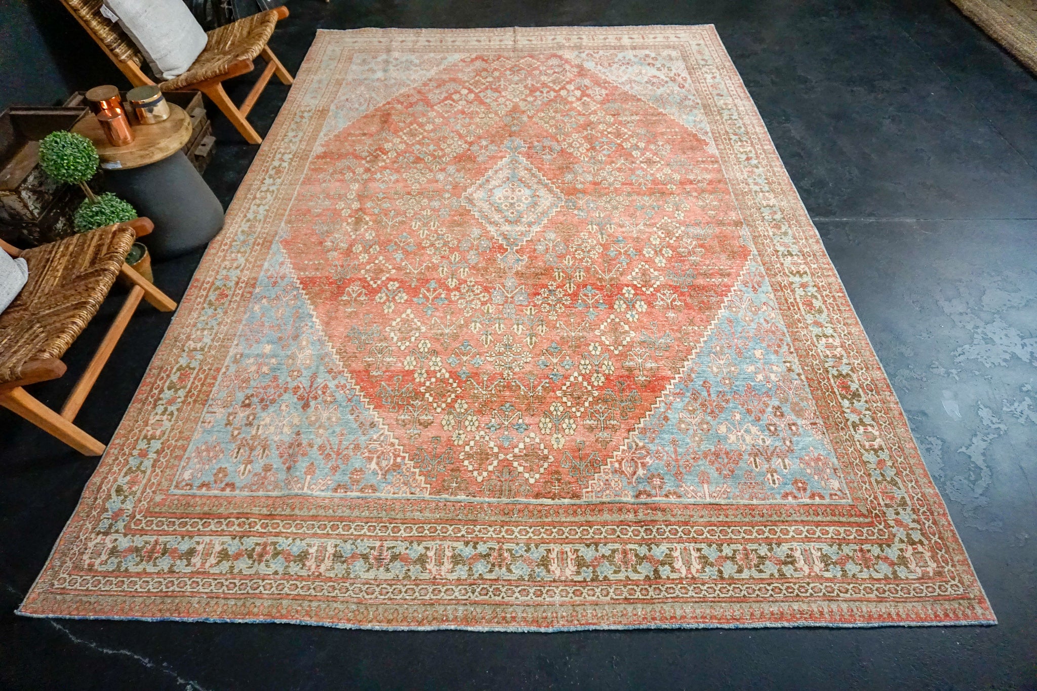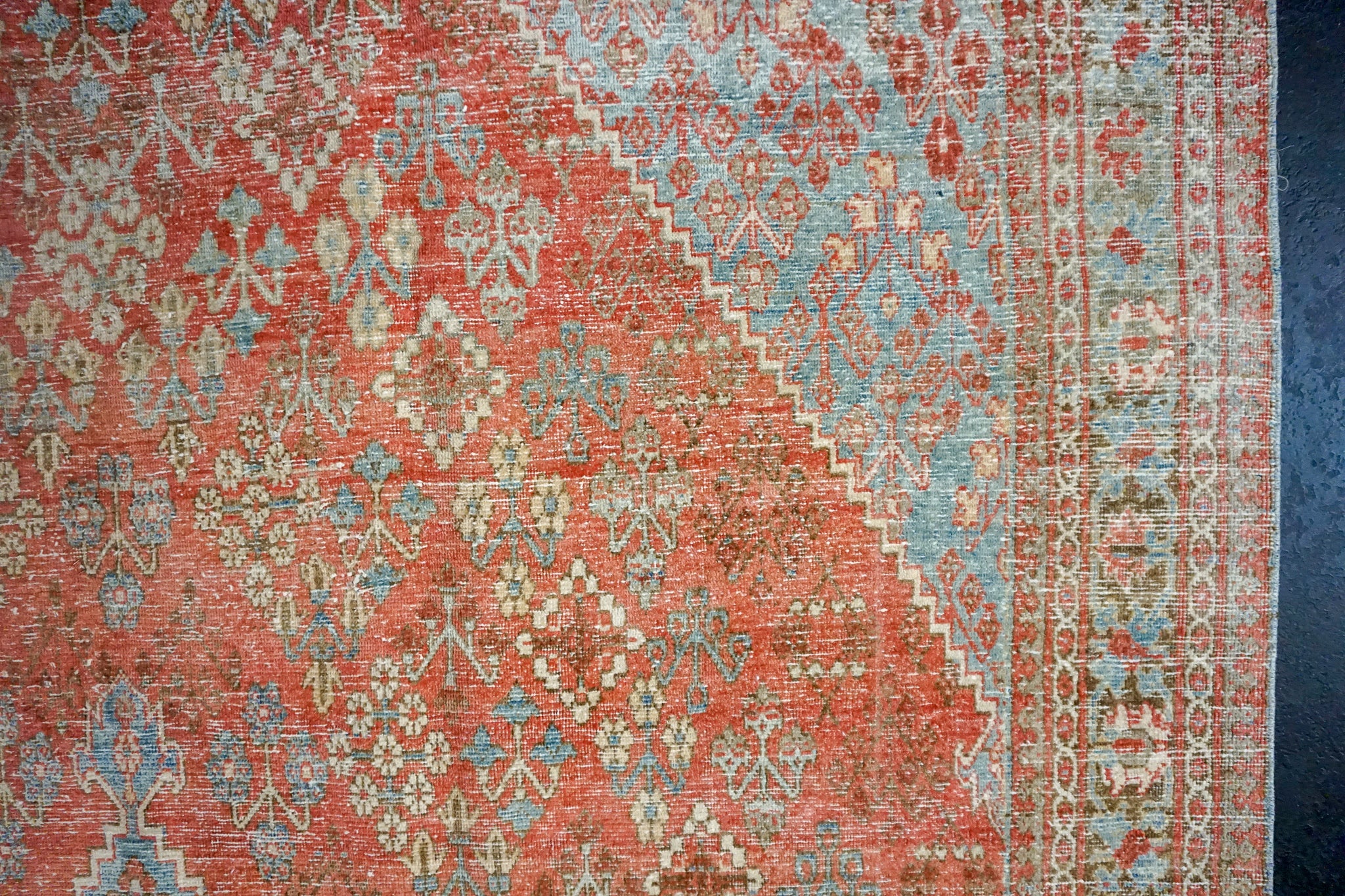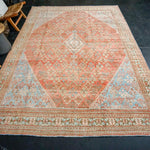 7’9 x 11’8 Vintage Joshagan Rug Muted Salmon Red, Ecru and Blue Carpet '3549