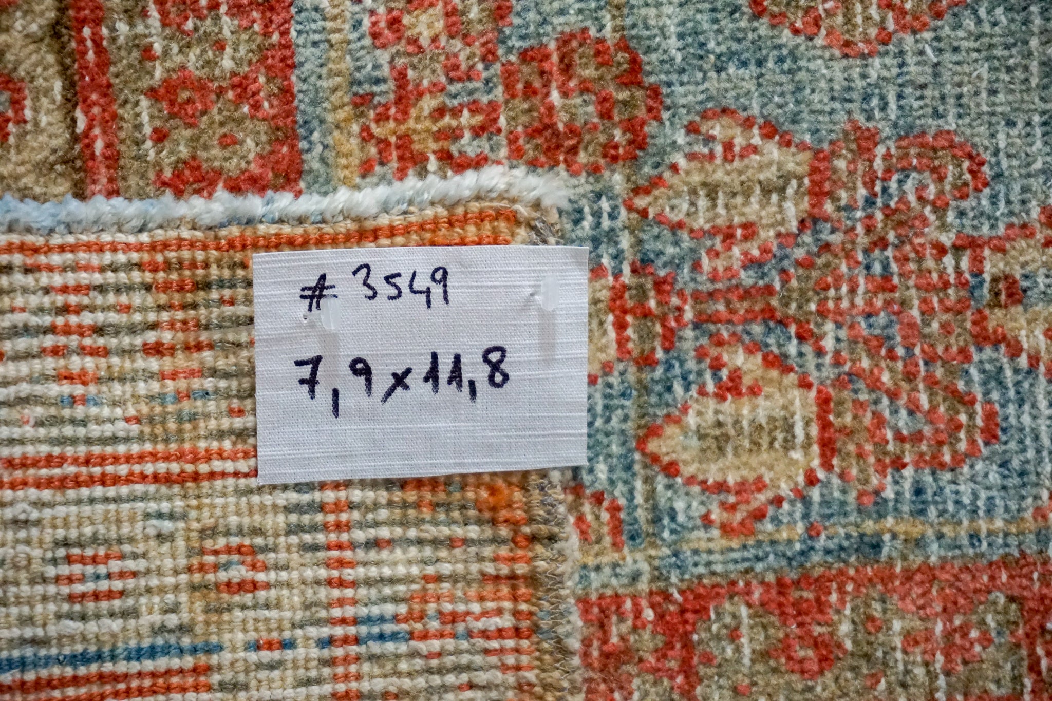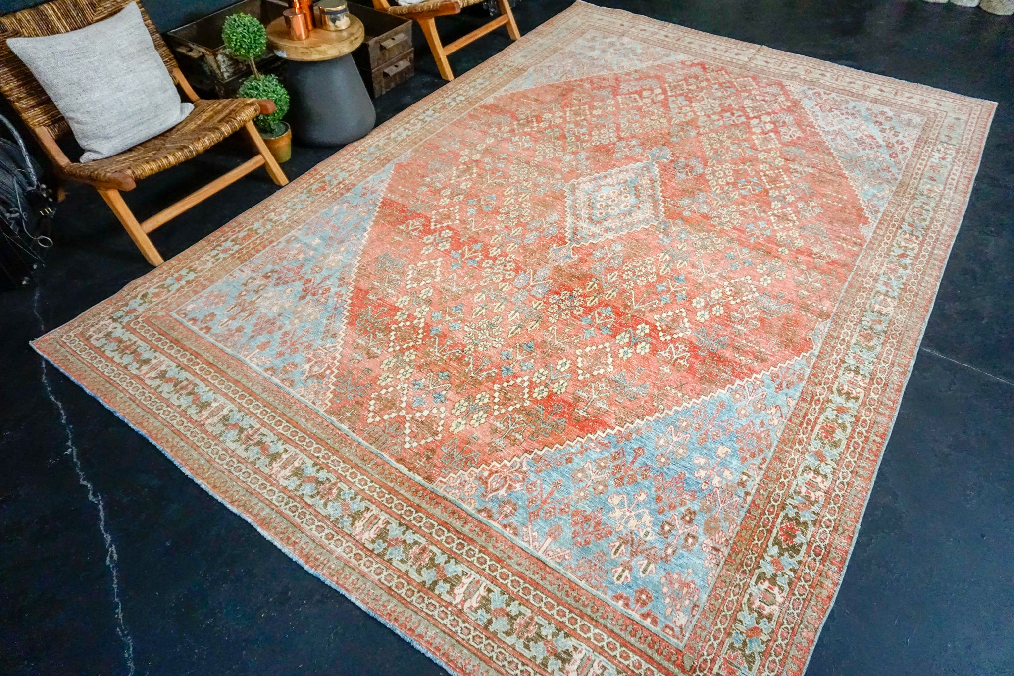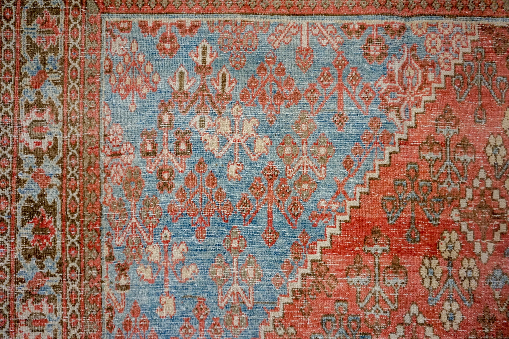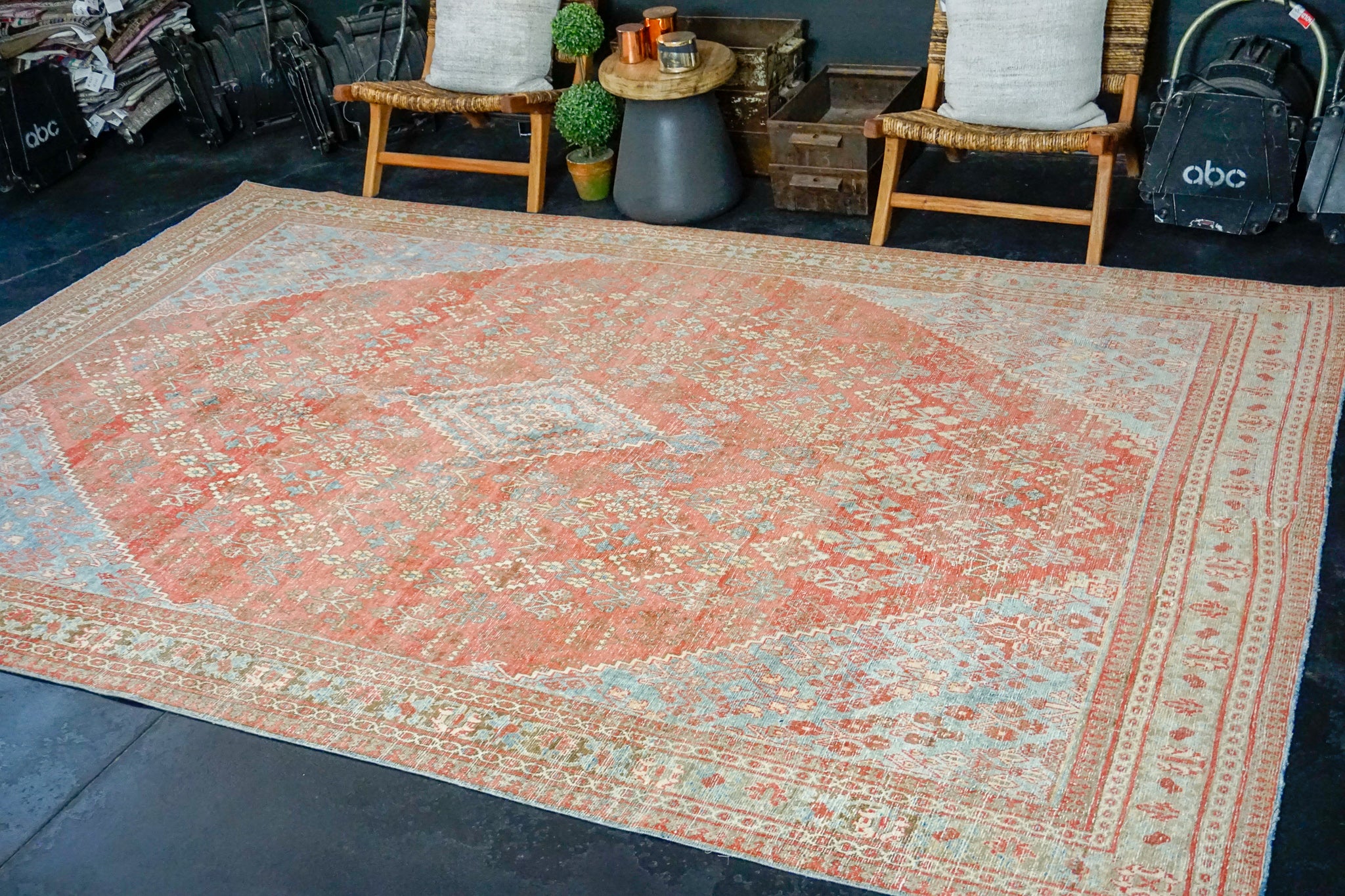 7’9 x 11’8 Vintage Joshagan Rug Muted Salmon Red, Ecru and Blue Carpet '3549