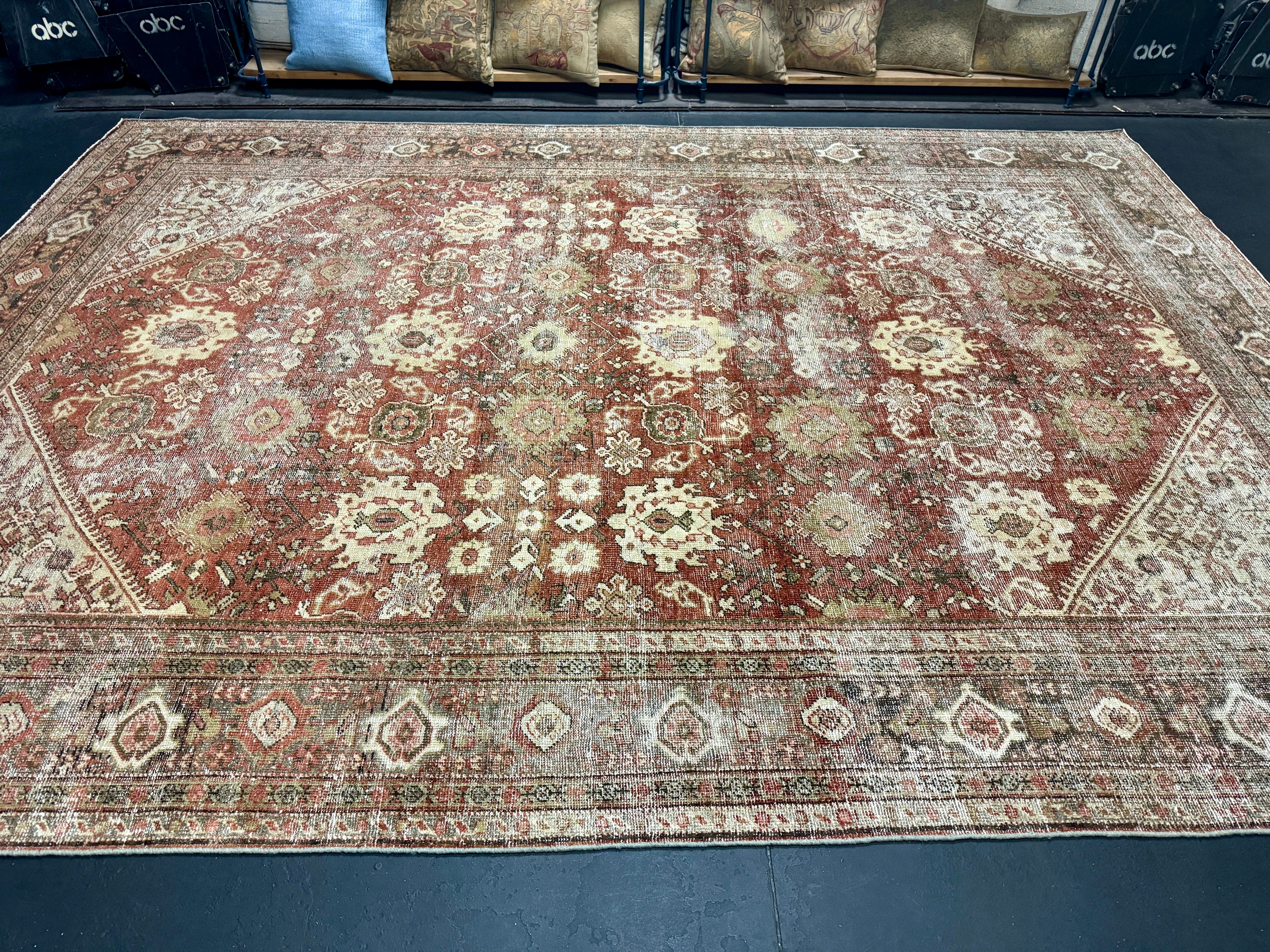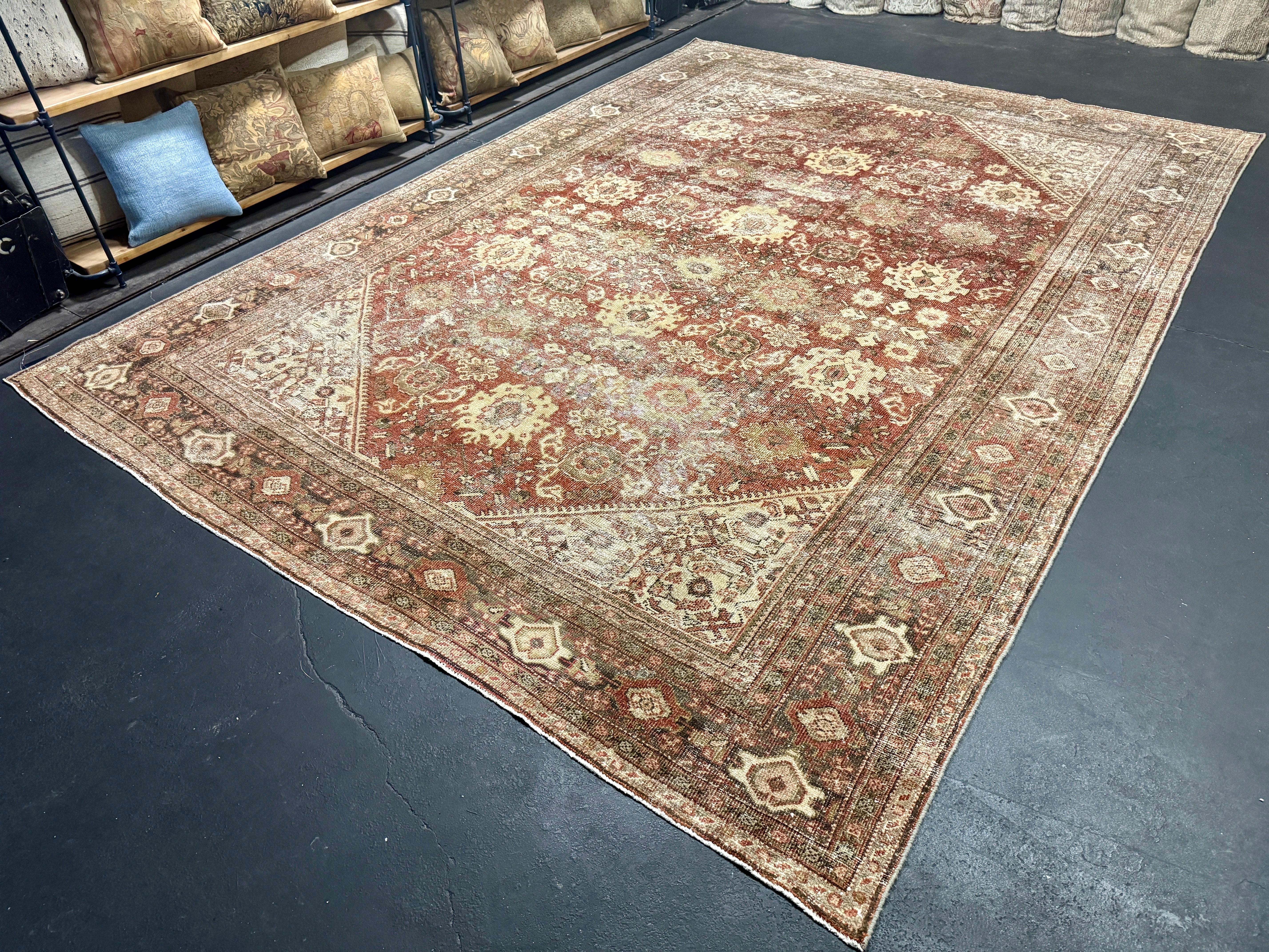 8’10 x 12’2 Classic Antique Rug Muted Rust, Charcoal, Taupe & Brown 5765
